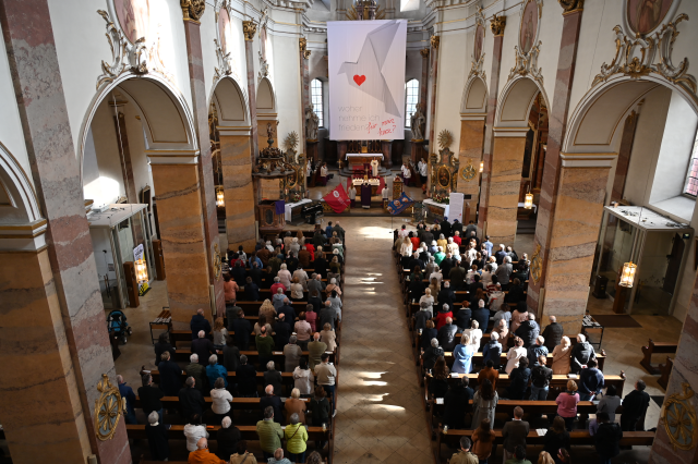 Gott, unser Vater, wir sind deine Kirche hier am Ort in der Innenstadt von Fulda. Wir sind als dein Volk, deine Gemeinde unterwegs in eine neue Zeit. Wir haben unsere Vergangenheit mit Licht und Dunkel, doch du warst und bist immer unser Gott.