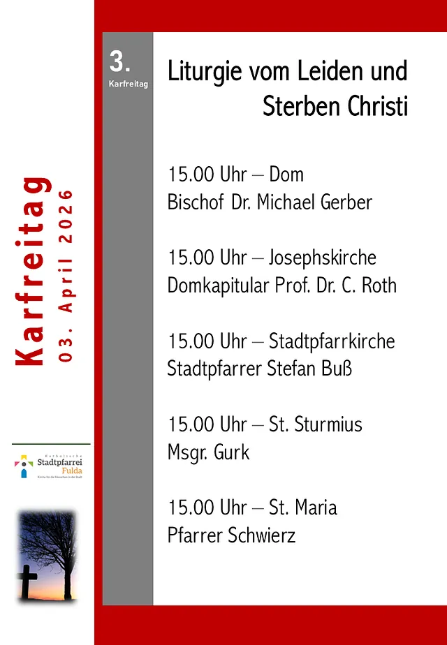 Gottesdienstgestaltung am Palmsonntag um 11:00 Uhr in der Stadtpfarrkirche und zur Auferstehungsfeier am Ostersonntag um 08:00 Uhr im Hohen Dom zu Fulda