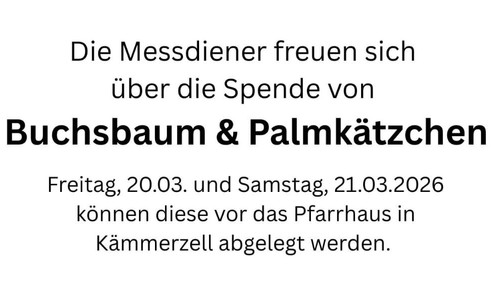 Verkauf von Palmsträuschen durch die Messdiener am 28.03. in Lüdermünd und am 29.03. in Gläserzell