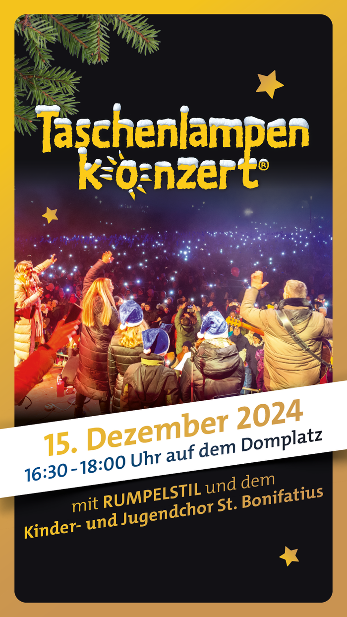 Am Sonntagabend leuchteten Kinderaugen und zahlreiche Lichter auf dem Fuldaer Domplatz beim Mitmachkonzert mit „Rumpelstil“. Viele Familien versammelten sich vor der festlich beleuchteten Bühne direkt vor dem Dom.