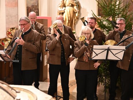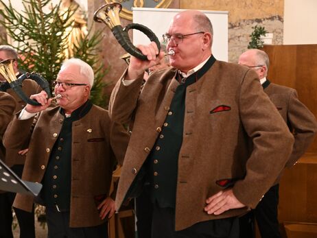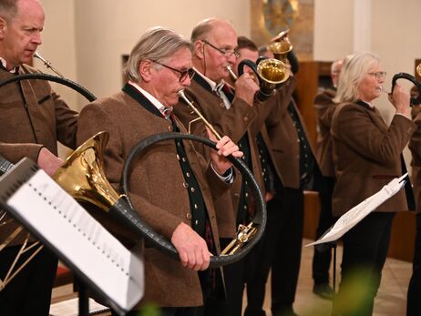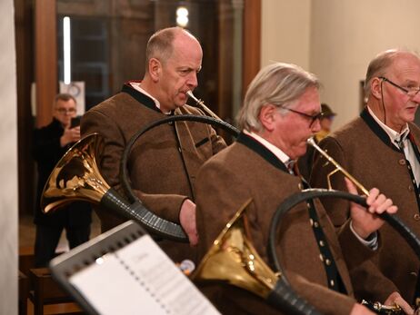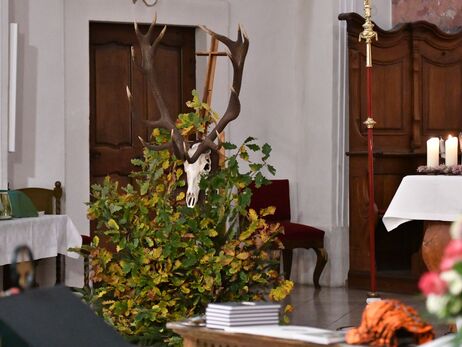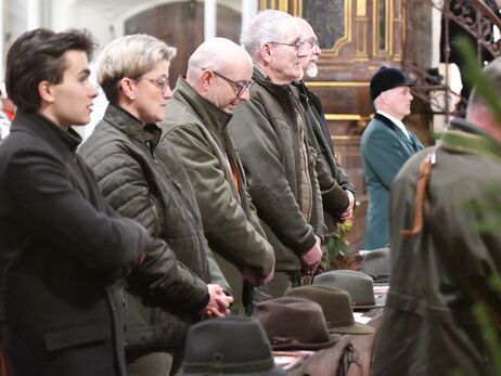 Hubertusmesse mit dem Bläsern Rhön - Vogelsberg und dem Parforcehornbläser Hoher Vogelsberg. Stadtpfarrer Stefan Buß feiert die Messe und hält die Anbsprache. elit.