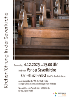 Gott, unser Vater, wir sind deine Kirche hier am Ort in der Innenstadt von Fulda. Wir sind als dein Volk, deine Gemeinde unterwegs in eine neue Zeit. Wir haben unsere Vergangenheit mit Licht und Dunkel, doch du warst und bist immer unser Gott.