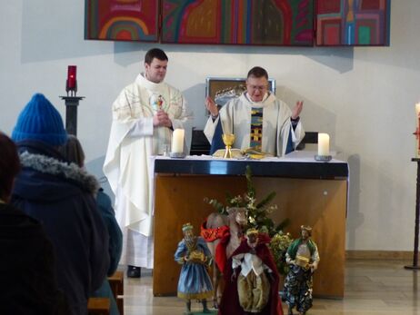 . Der Pilger der Hoffnung ist in Betlehem angekommen und bringt seine Geschenke mit den Kindern zur Krippe. Es sind das Herz, die Liebe, gute Taten, aber auch Fragen, Ängste und Wunden. Alles können wir beim göttlichen Kind ablegen. Er nimmt uns so wie wir sind. Der Kinder- und Jugendchor gestaltete unter der Leitung von Johannes Haubs den Gottesdienst.