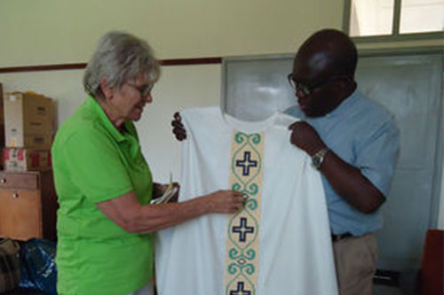 Unser Gastgeschenk an den Bischof: ein ehrenamtlich gefertigtes Messgewand von MAKADI.