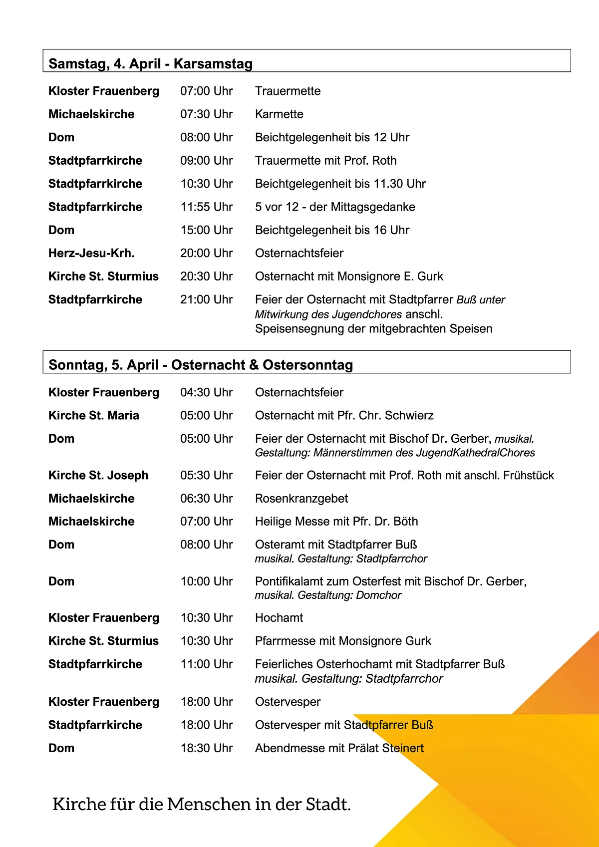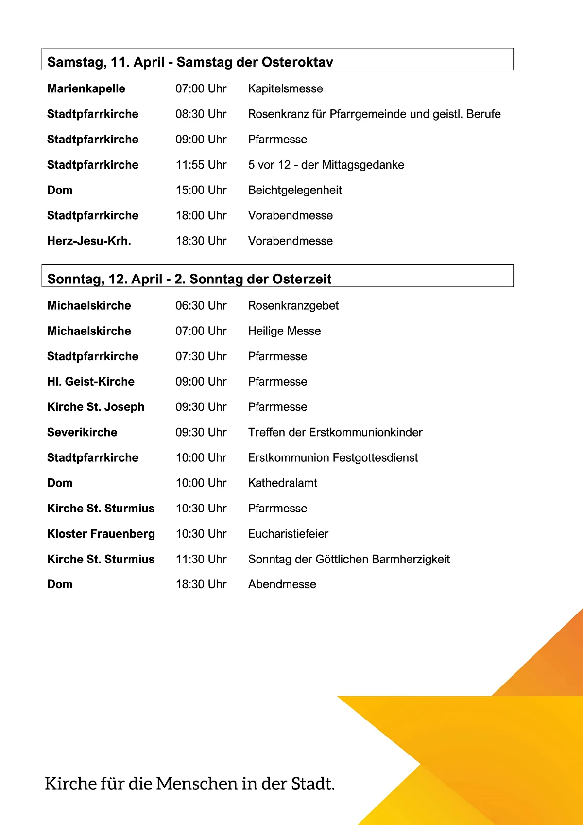 - Sonntag: 7:30 Uhr und 11 Uhr Hl. Messe