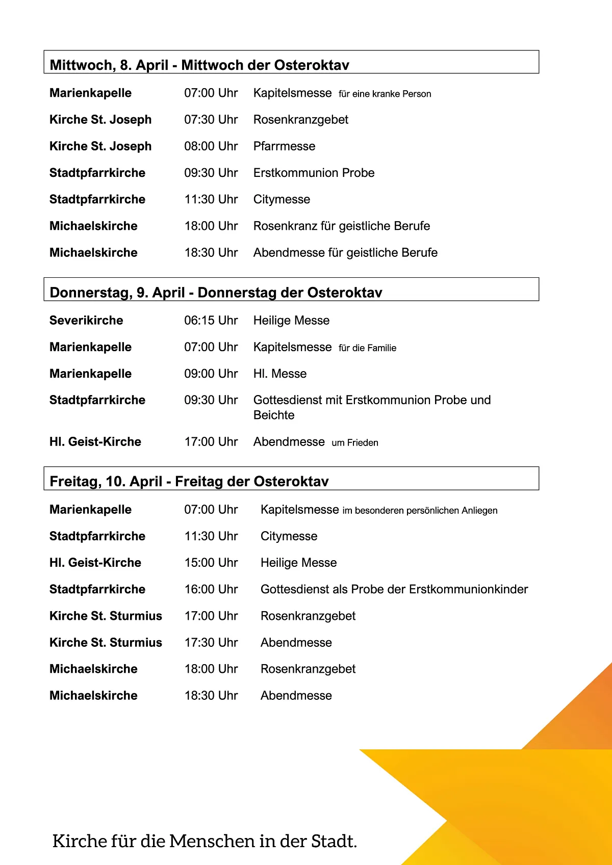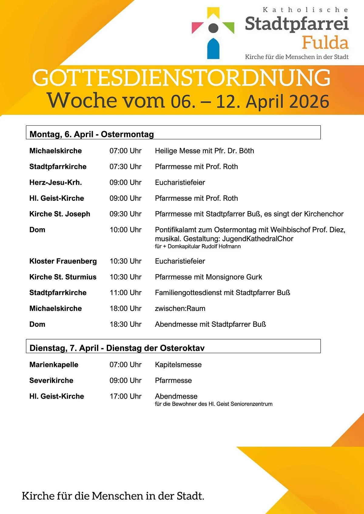 Gottesdienstordnung aktuelle Woche