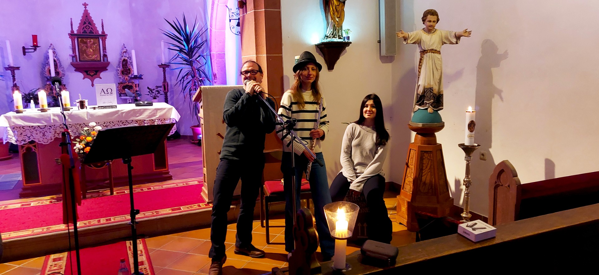 Ein besonderer Abend voller Besinnung und musikalischer Inspiration fand am 25. Februar 2025 in der Severikirche in Fulda statt. Helmut Krause sorgte für Kerzenlicht und eine stimmungsvolle Atmosphäre in der Kirche. Ab 19.00 Uhr strömten die Gäste herein und wurden von den sanften Klängen von Divine Concern empfangen, die eine friedliche und erwartungsvolle Stimmung erzeugten. Um 19.30 Uhr begann das Programm mit Luke von der Band Tonebridge. Mit seinem eigenen Lied "SEARCH" fesselte er das Publikum. Anschließend erzählte Diakon Dr. Meins Coetsier die nachdenkliche Geschichte "DER RAUM DER ENTSCHEIDUNG". Divine Concern setzten den Abend mit ihrem Song "TRUTH IN DUSTY SANDS" fort, gefolgt von einer bewegenden Bibellesung über "Jesus und die Ehebrecherin". Luke kehrte mit "SONG FOR A FRIEND" zurück, bevor Divine Concern mit "DECIDE" das Publikum erneut begeisterte. Die Geschichte "DEIN KOMPASS - DEIN HERZ" berührte die Zuhörer tief. Danach verzauberte Luke das Publikum mit "SYMPHONY". Zum Abschluss präsentierte Divine Concern das Lied "THE SPACES IN BETWEEN", gefolgt vom gemeinsamen Vaterunser und Ave Maria. Ein feierliches Segensgebet rundete den spirituellen Teil des Abends ab und sorgte für einen unvergesslichen Ausklang.