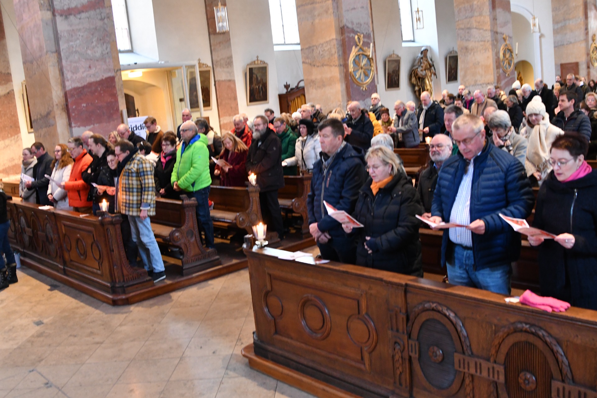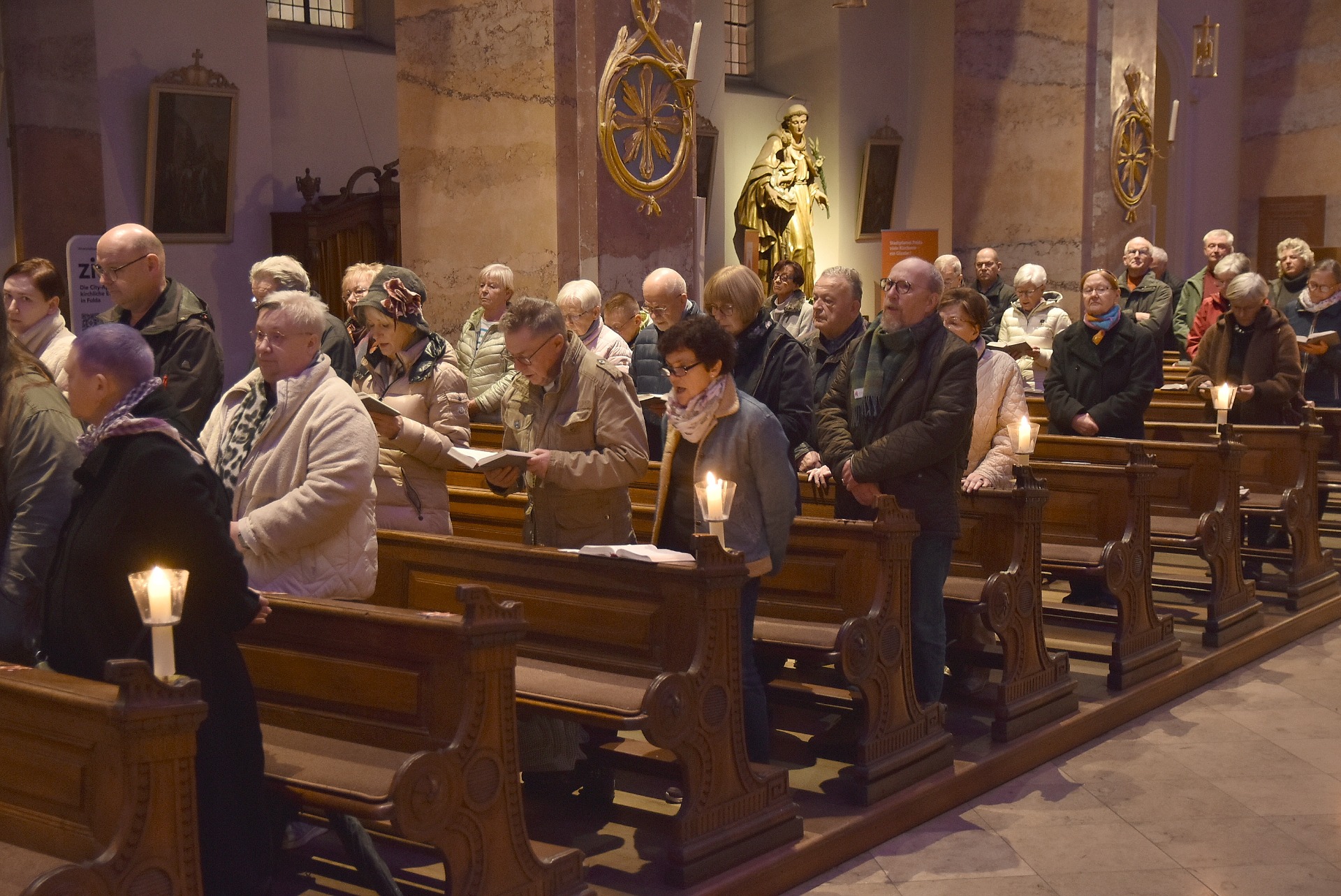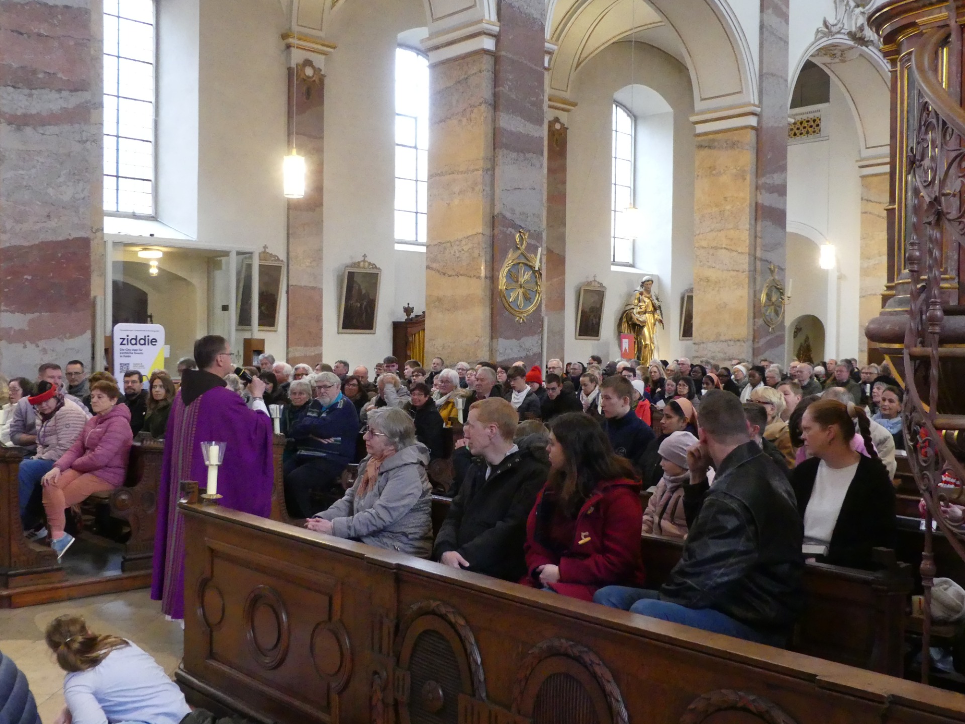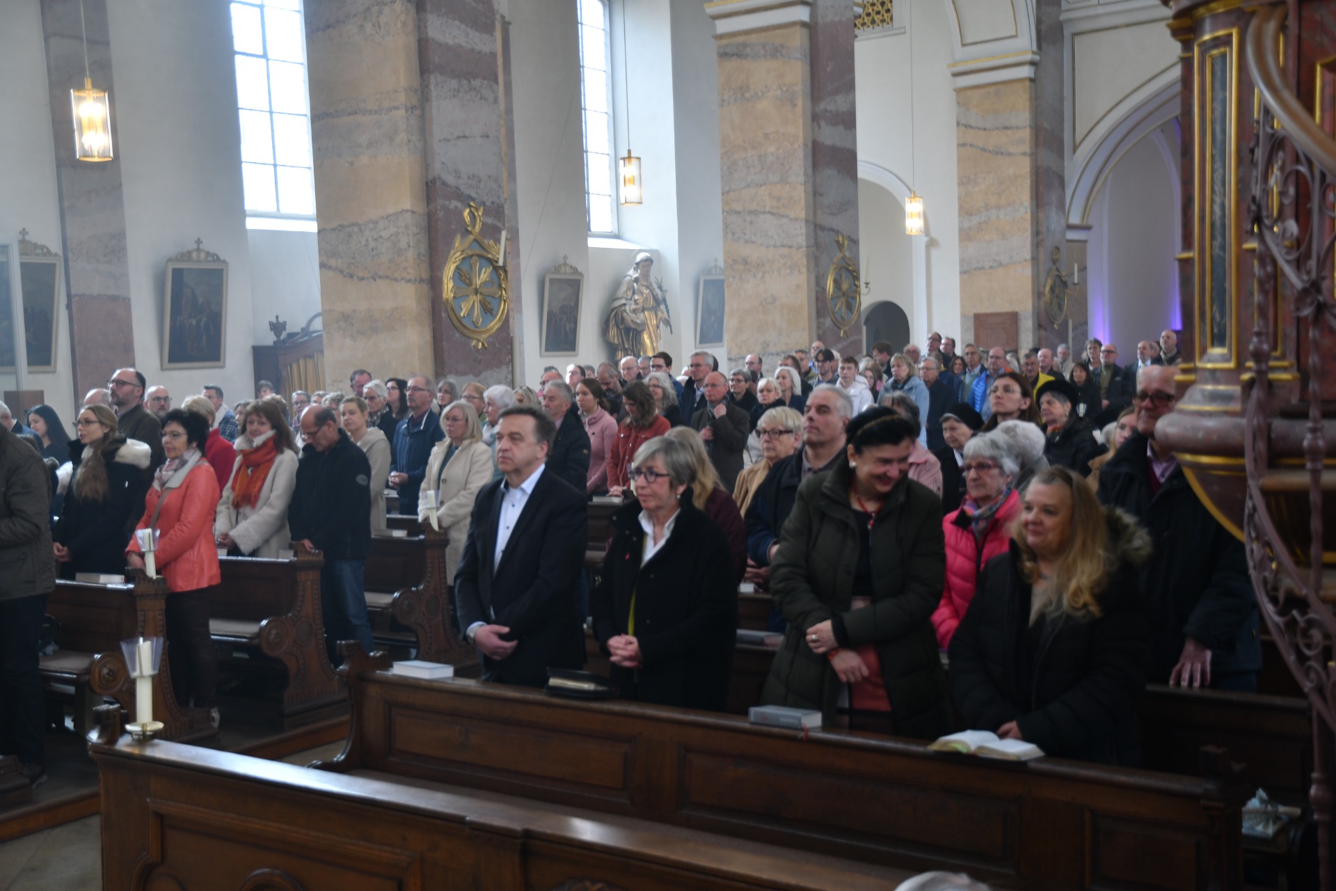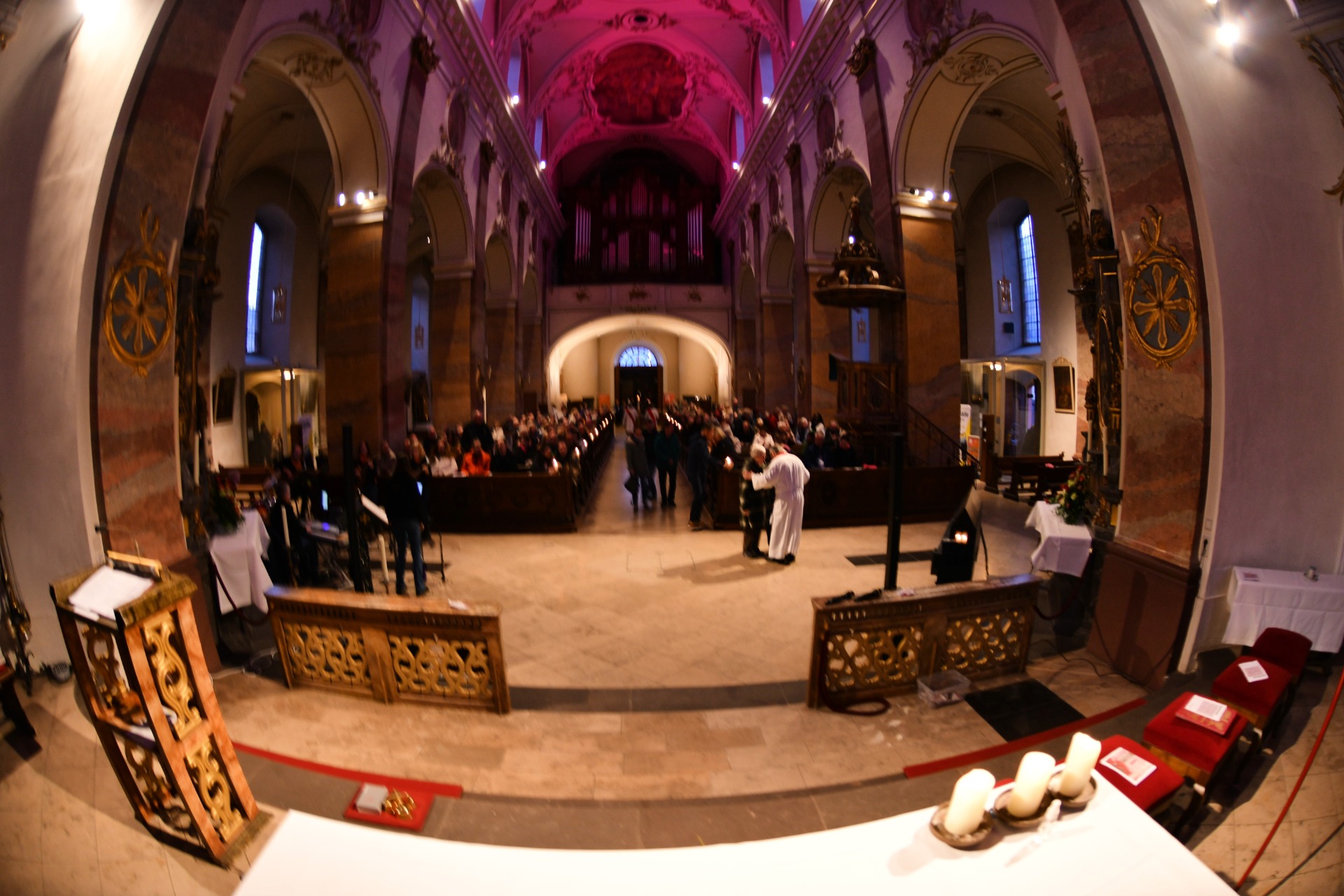 Friedensgottesdienst der Karnevalisten mit Stadtpfarrer Stefan Buß , Susi Süssemilch von der Brunnenzeche und dem Musikverein Niesig , sowie Jochen Rill an der Orgel. Anzündung der Friedenskerze gestieftet von den Randstaaten der Fuldaer Fastnacht.