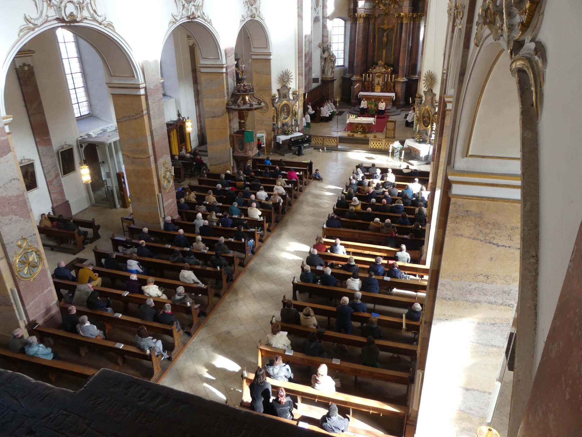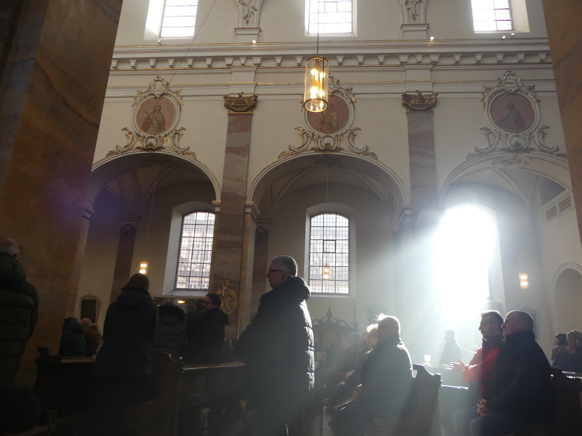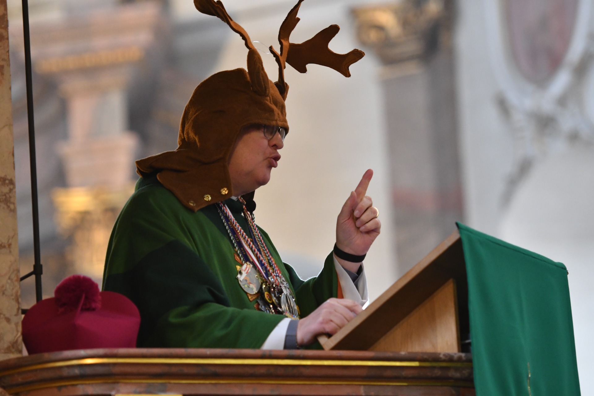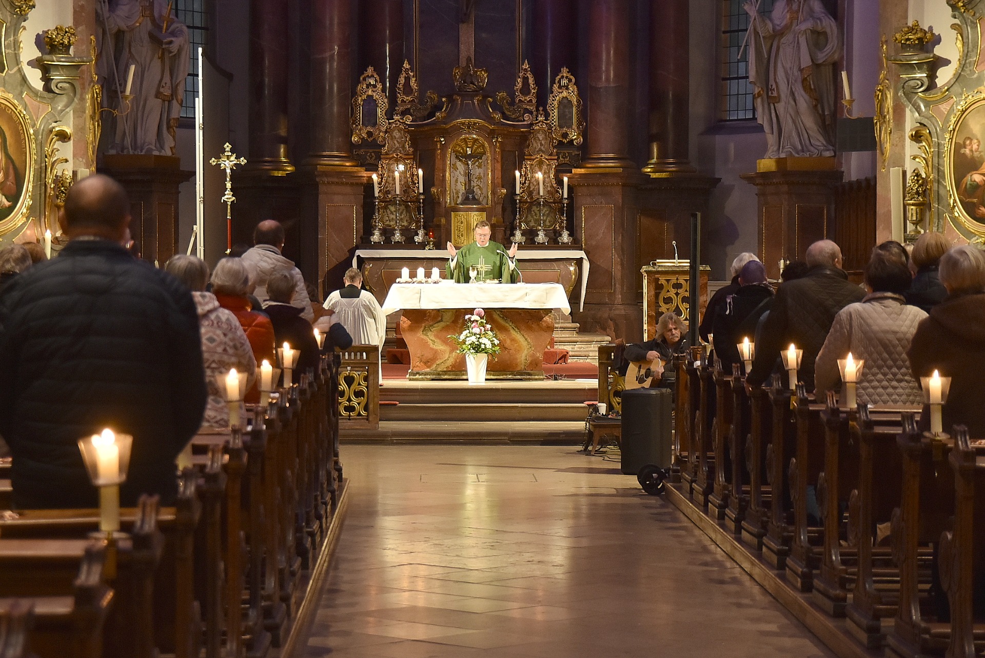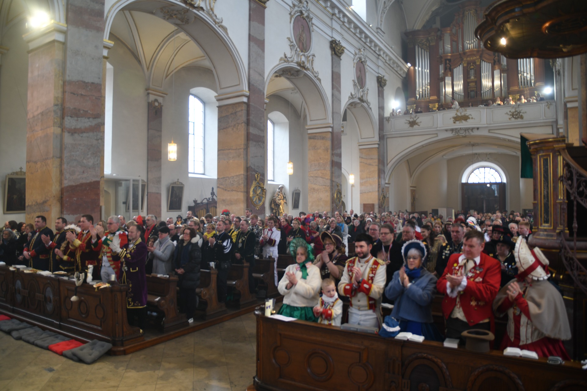 Friedensgottesdienst der Karnevalisten mit Stadtpfarrer Stefan Buß , Susi Süssemilch von der Brunnenzeche und dem Musikverein Niesig , sowie Jochen Rill an der Orgel. Anzündung der Friedenskerze gestieftet von den Randstaaten der Fuldaer Fastnacht.