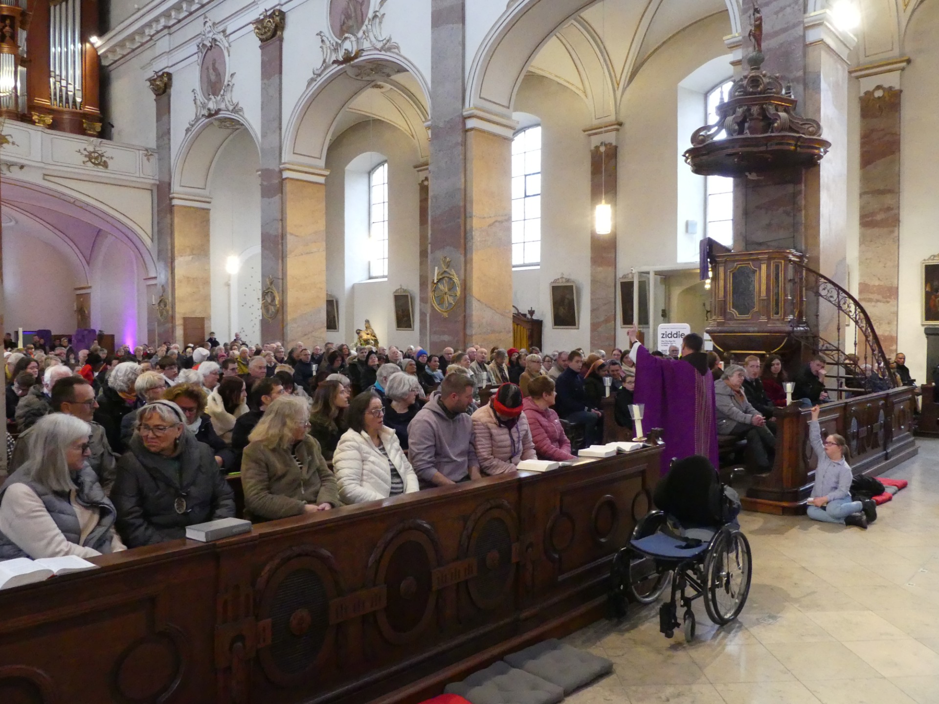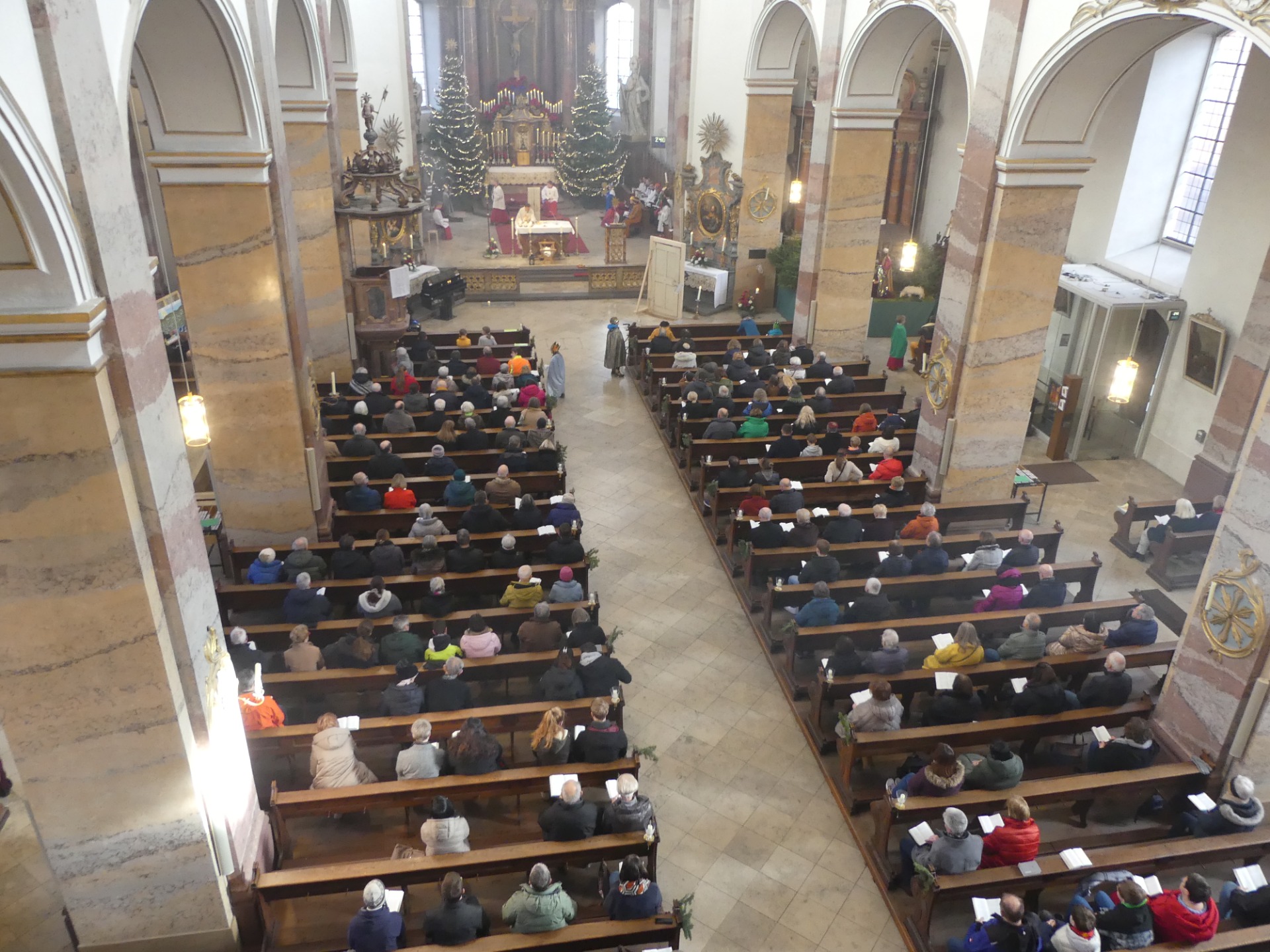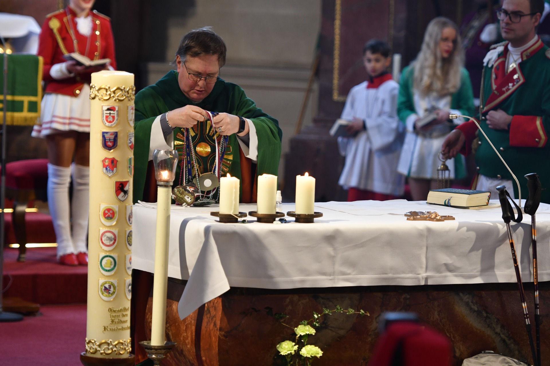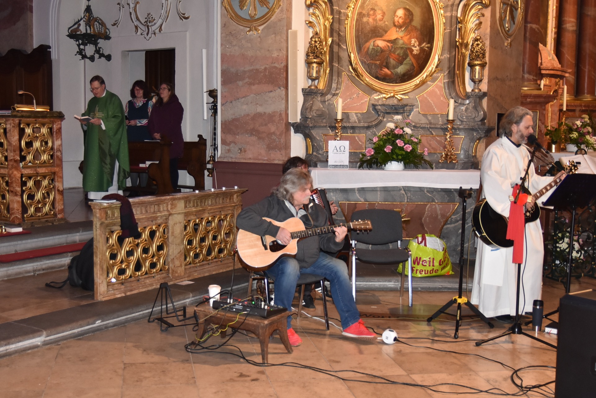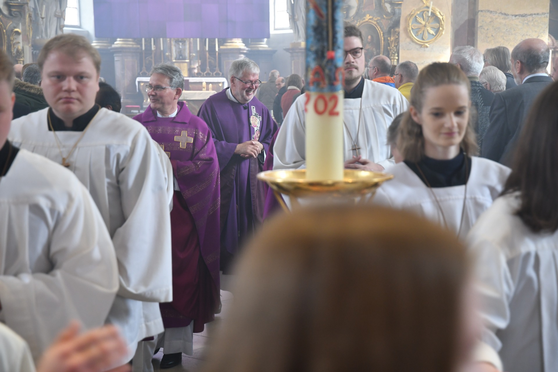 Friedensgottesdienst der Karnevalisten mit Stadtpfarrer Stefan Buß , Susi Süssemilch von der Brunnenzeche und dem Musikverein Niesig , sowie Jochen Rill an der Orgel. Anzündung der Friedenskerze gestieftet von den Randstaaten der Fuldaer Fastnacht.