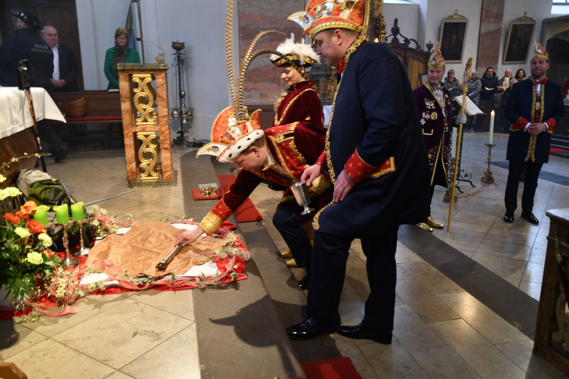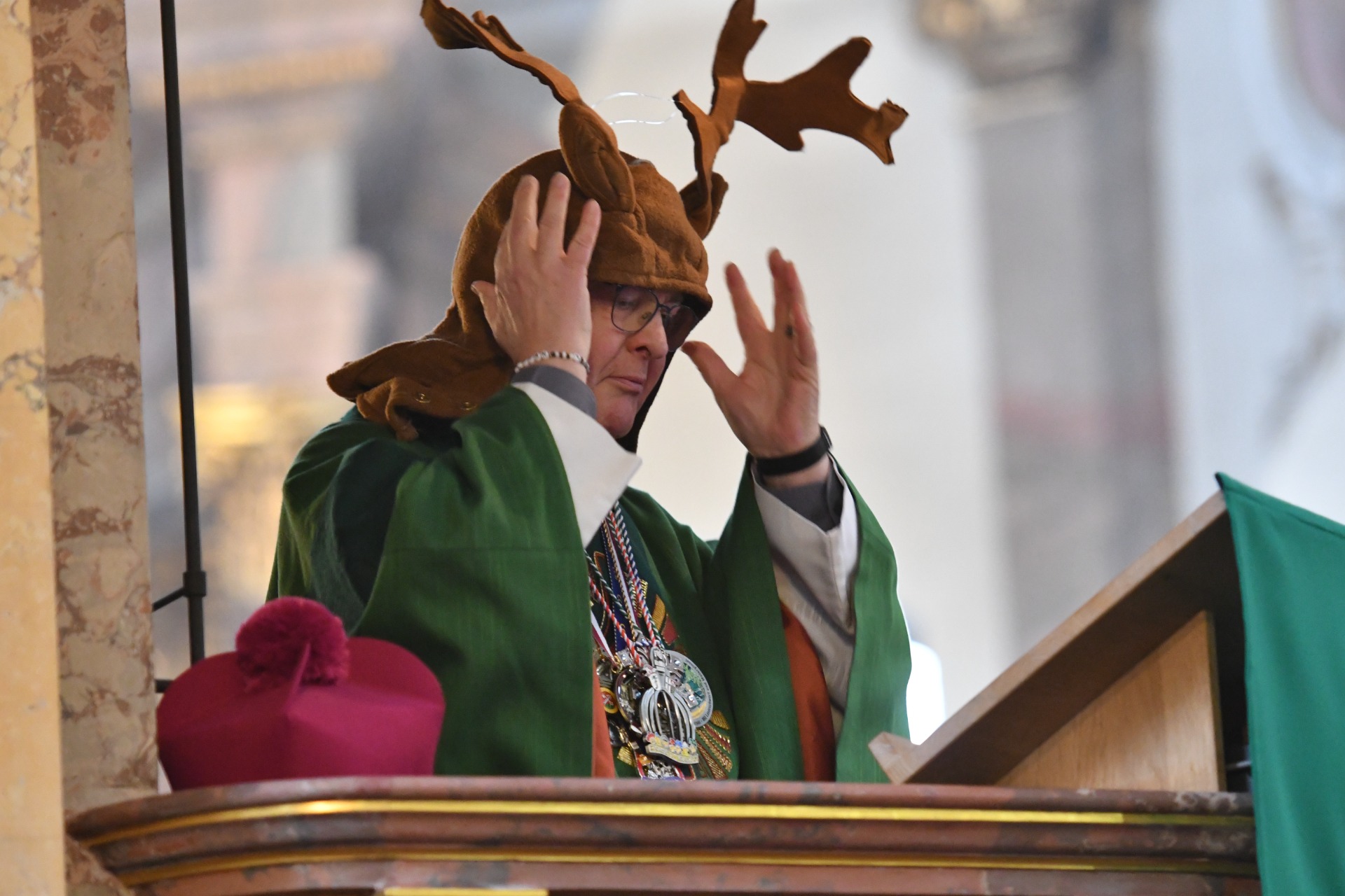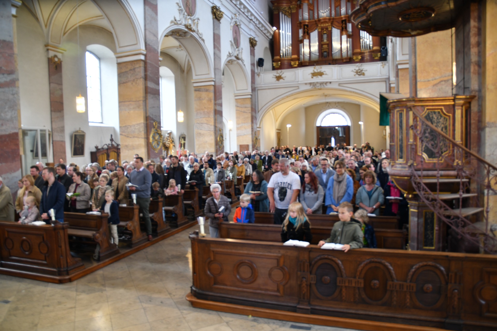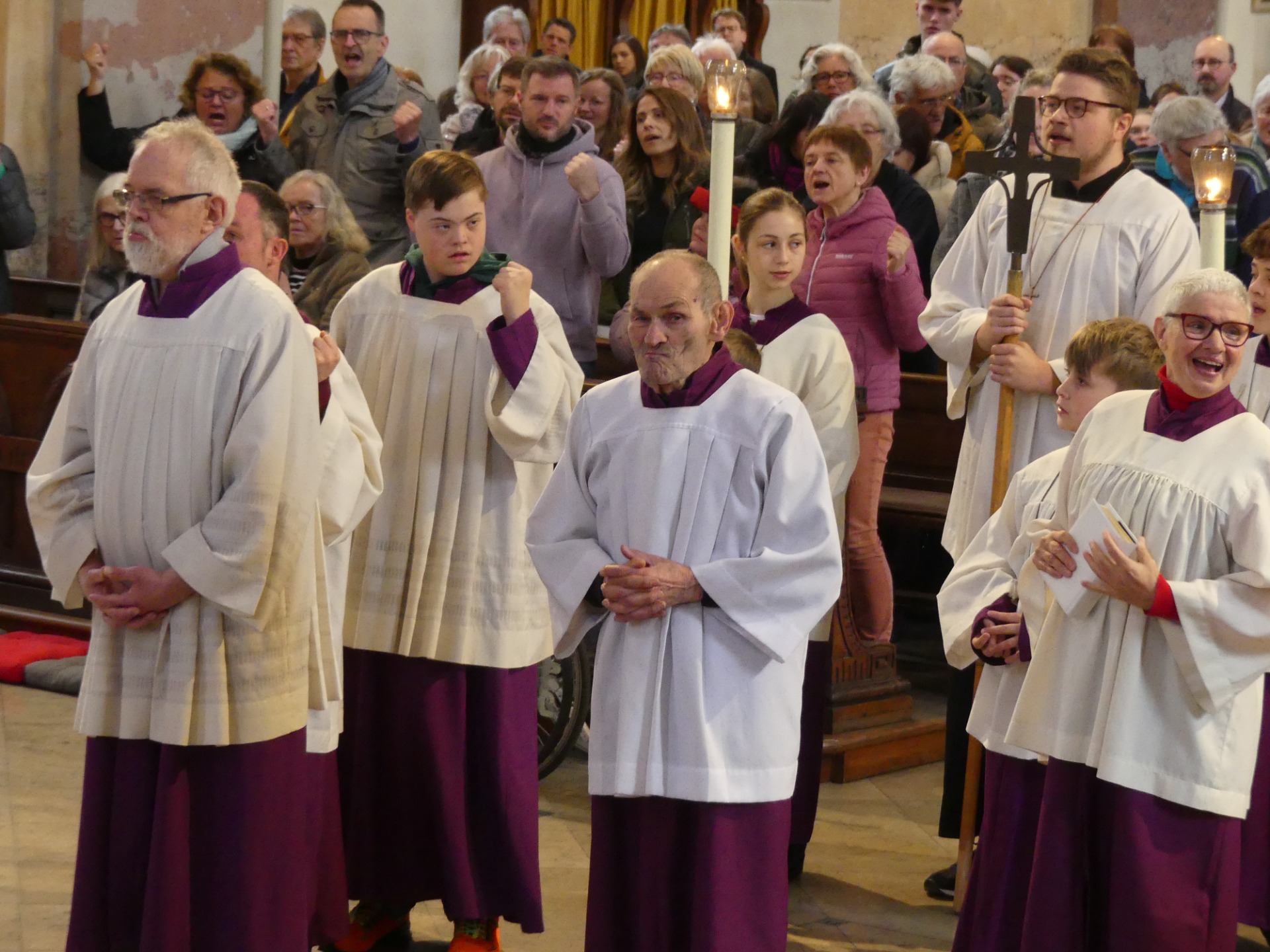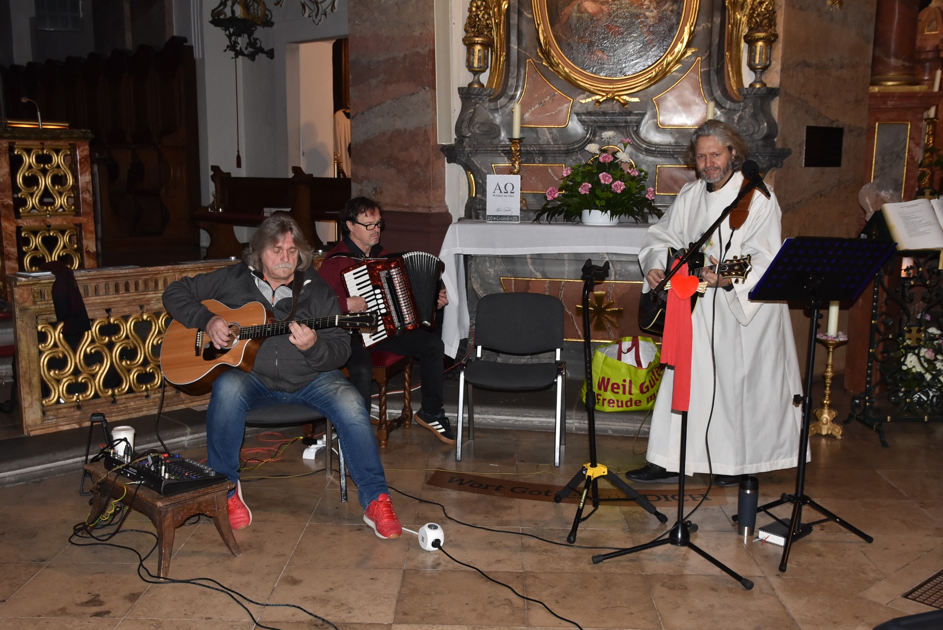Friedensgottesdienst der Karnevalisten mit Stadtpfarrer Stefan Buß , Susi Süssemilch von der Brunnenzeche und dem Musikverein Niesig , sowie Jochen Rill an der Orgel. Anzündung der Friedenskerze gestieftet von den Randstaaten der Fuldaer Fastnacht.