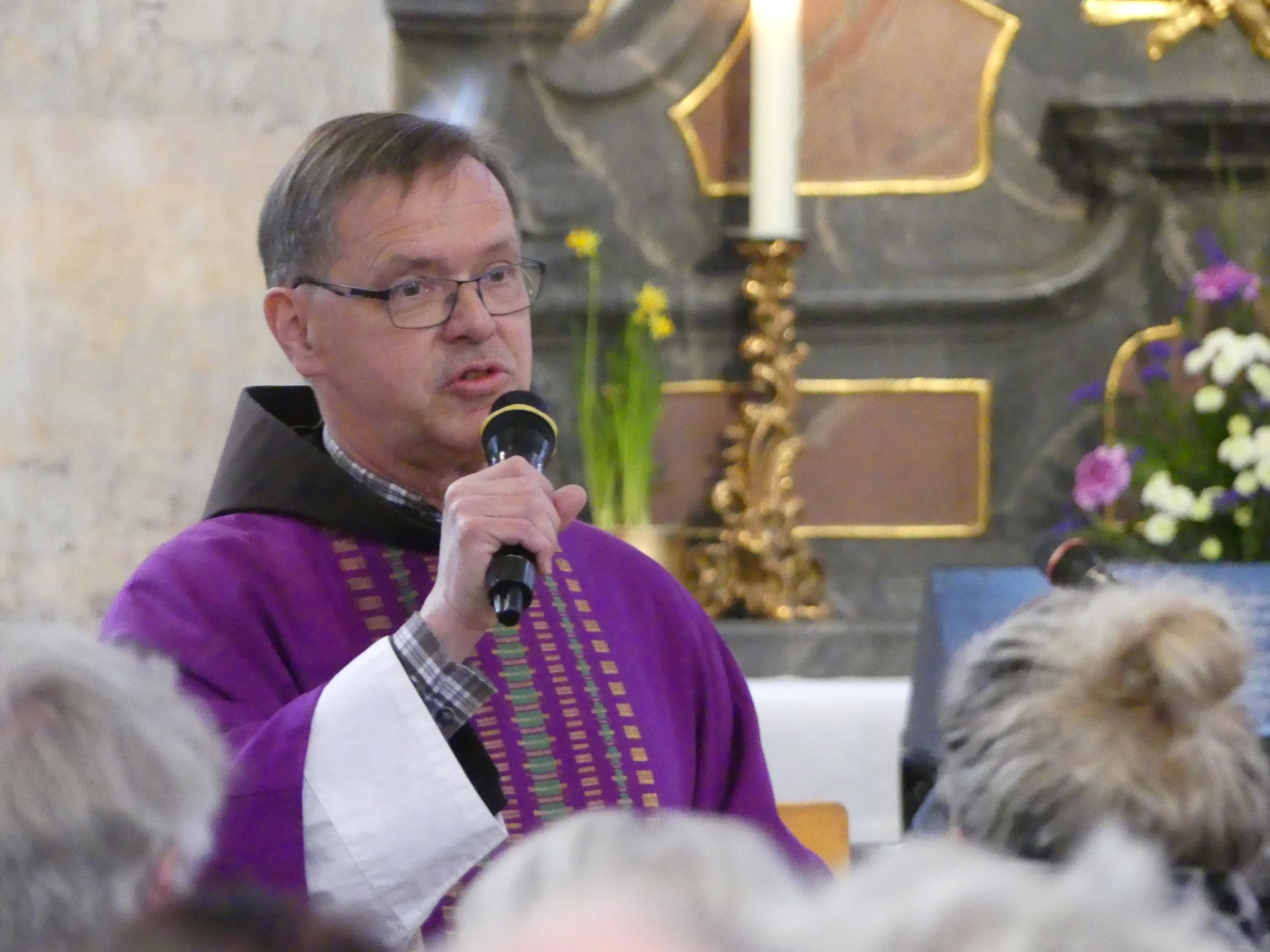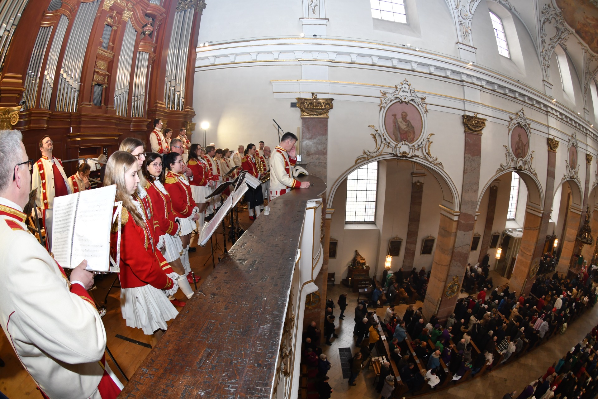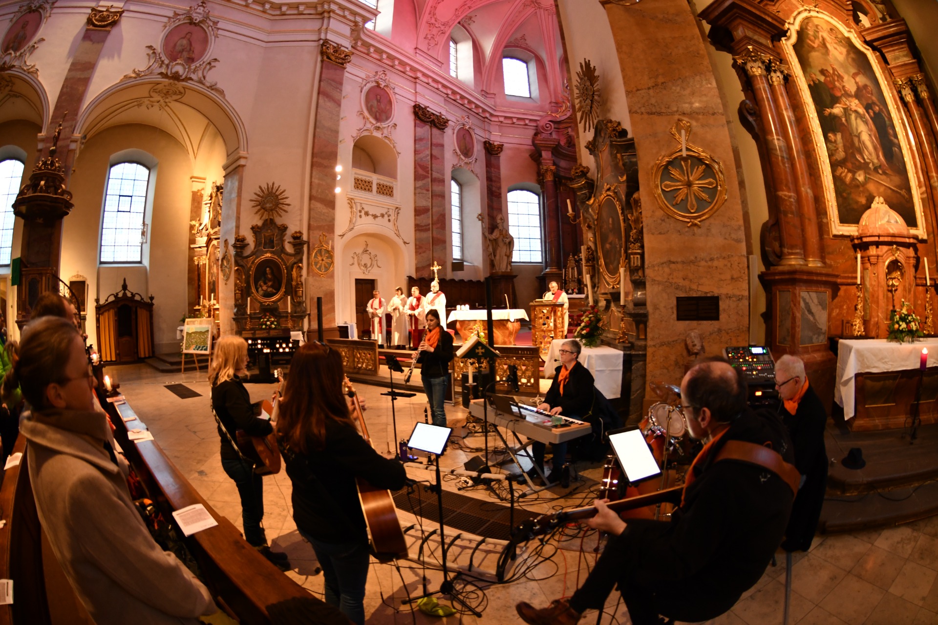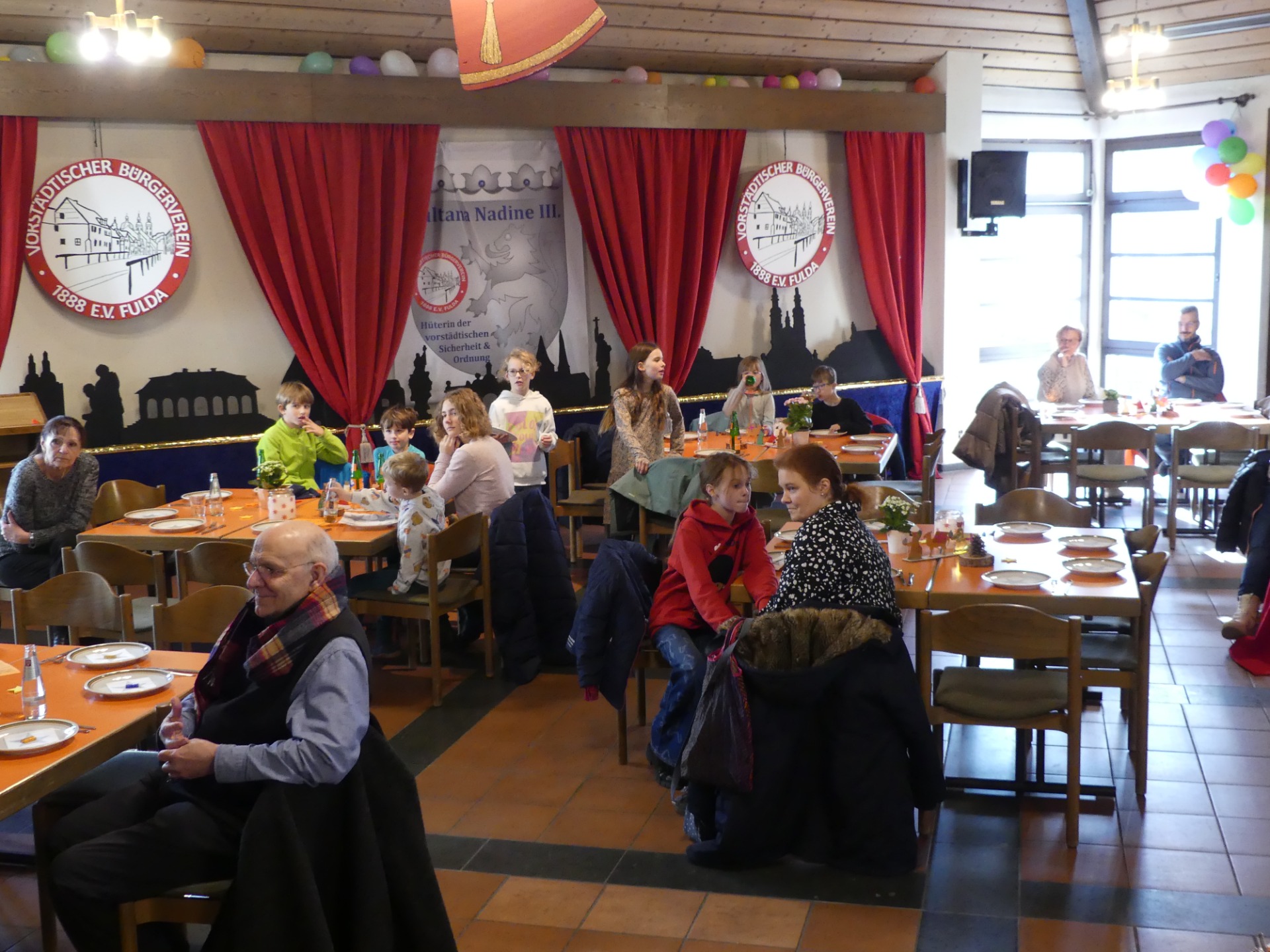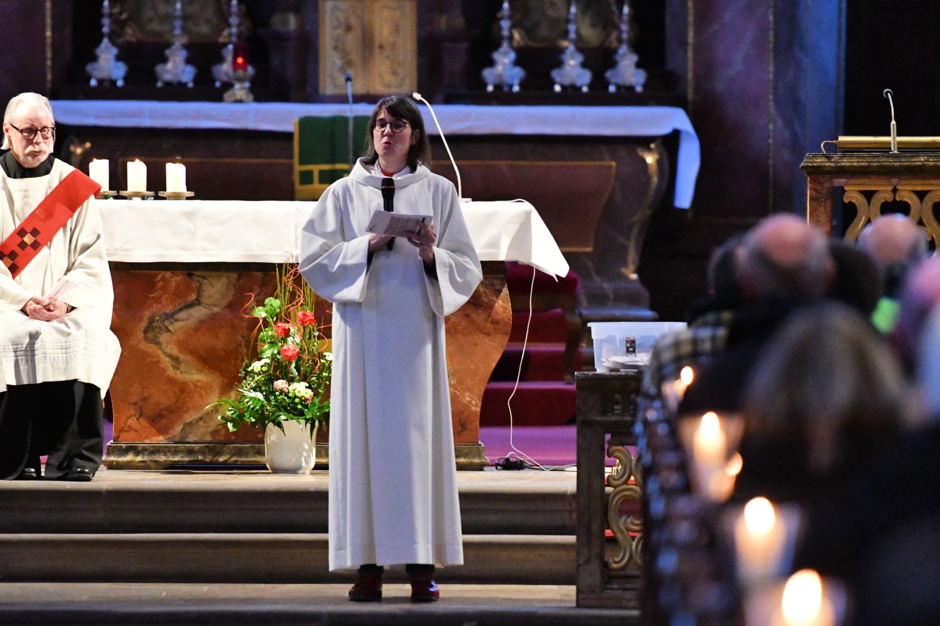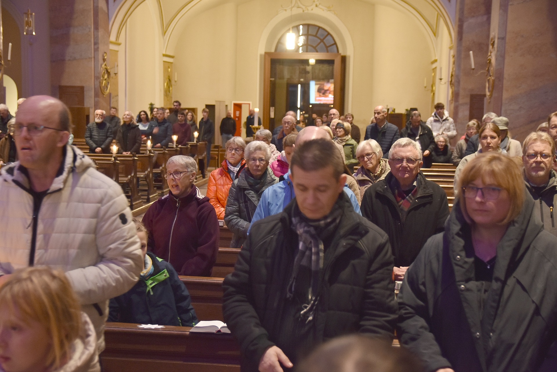 Friedensgottesdienst der Karnevalisten mit Stadtpfarrer Stefan Buß , Susi Süssemilch von der Brunnenzeche und dem Musikverein Niesig , sowie Jochen Rill an der Orgel. Anzündung der Friedenskerze gestieftet von den Randstaaten der Fuldaer Fastnacht.