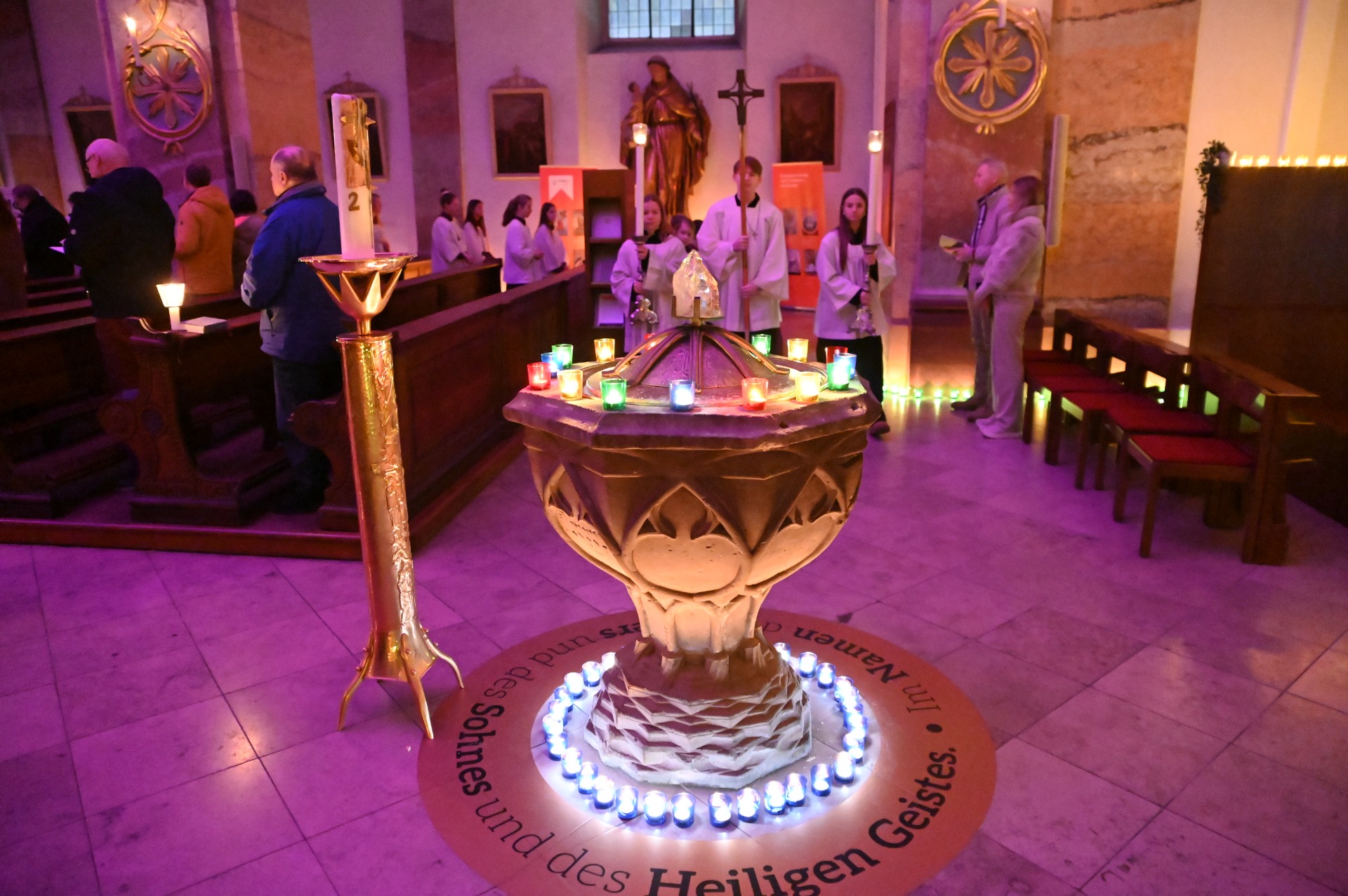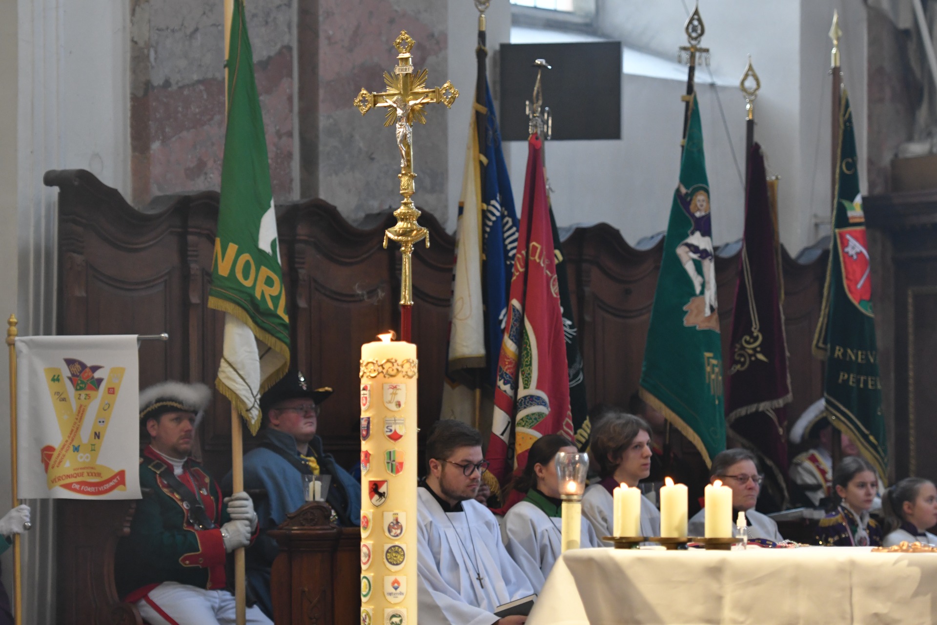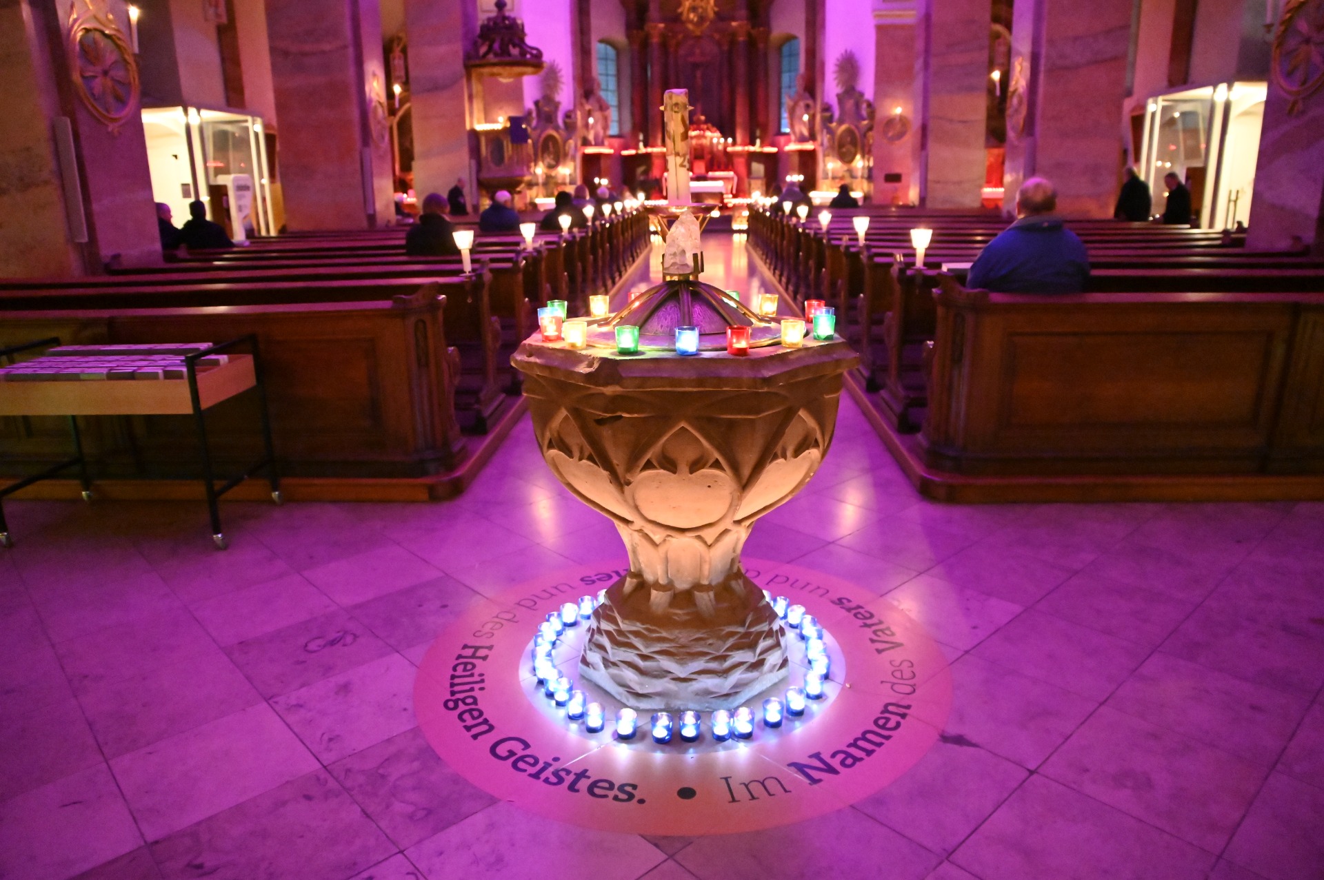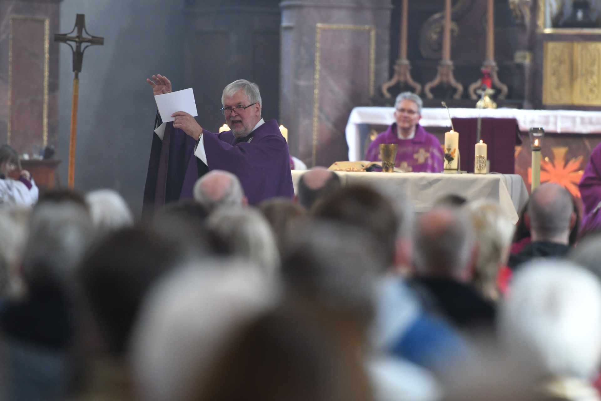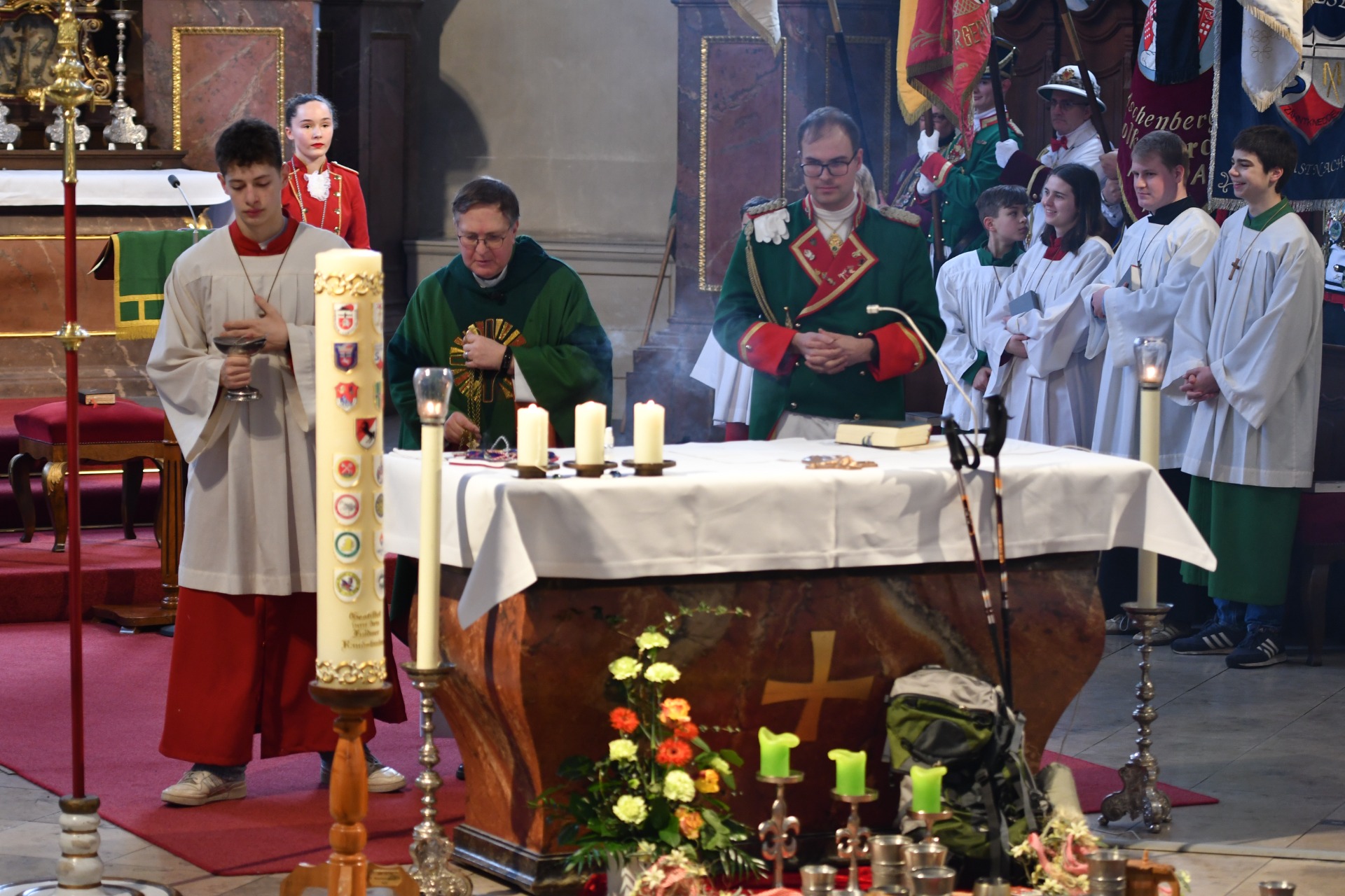 Friedensgottesdienst der Karnevalisten mit Stadtpfarrer Stefan Buß , Susi Süssemilch von der Brunnenzeche und dem Musikverein Niesig , sowie Jochen Rill an der Orgel. Anzündung der Friedenskerze gestieftet von den Randstaaten der Fuldaer Fastnacht.