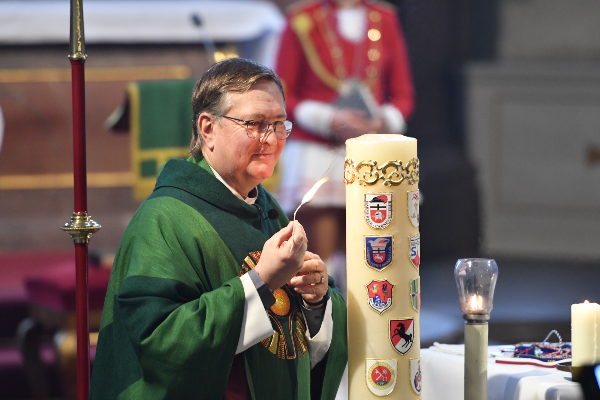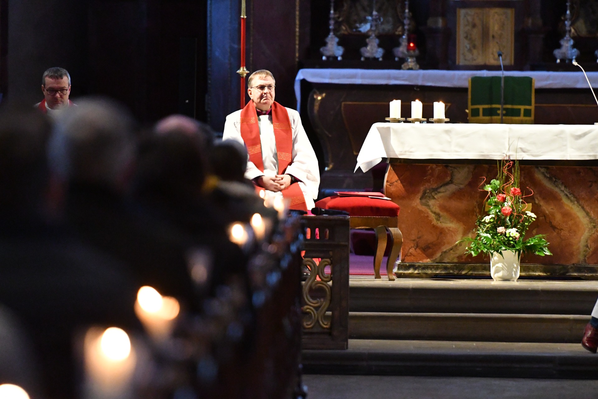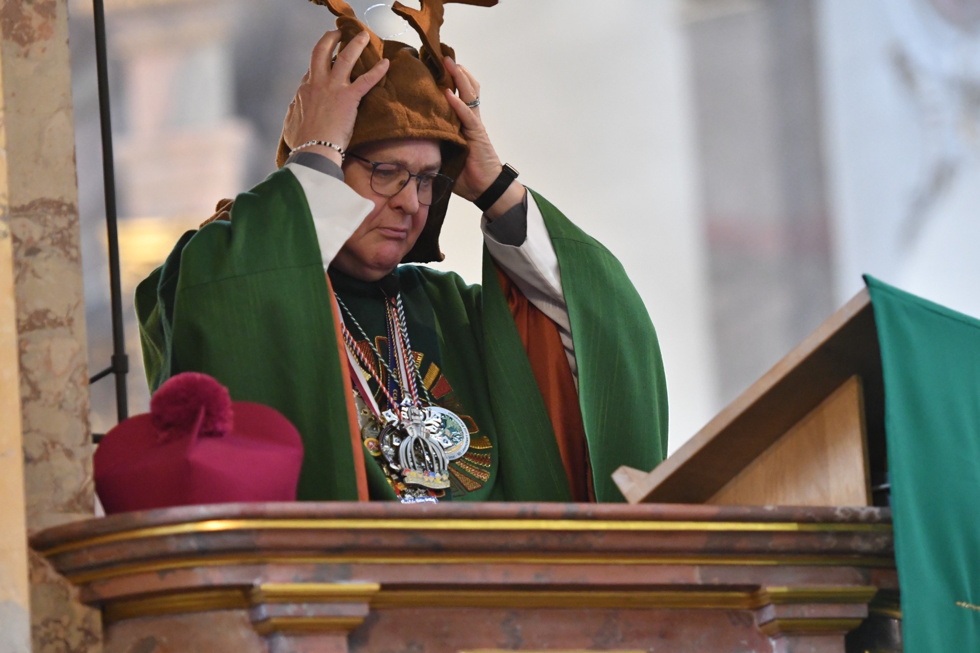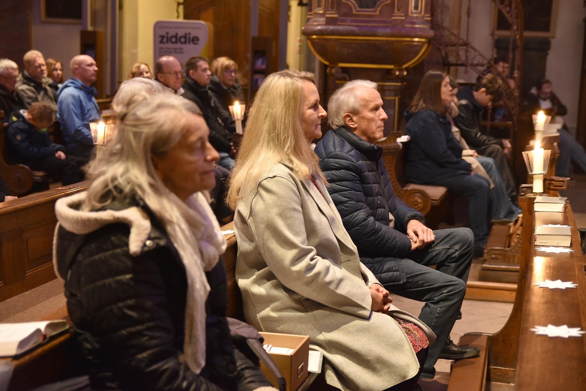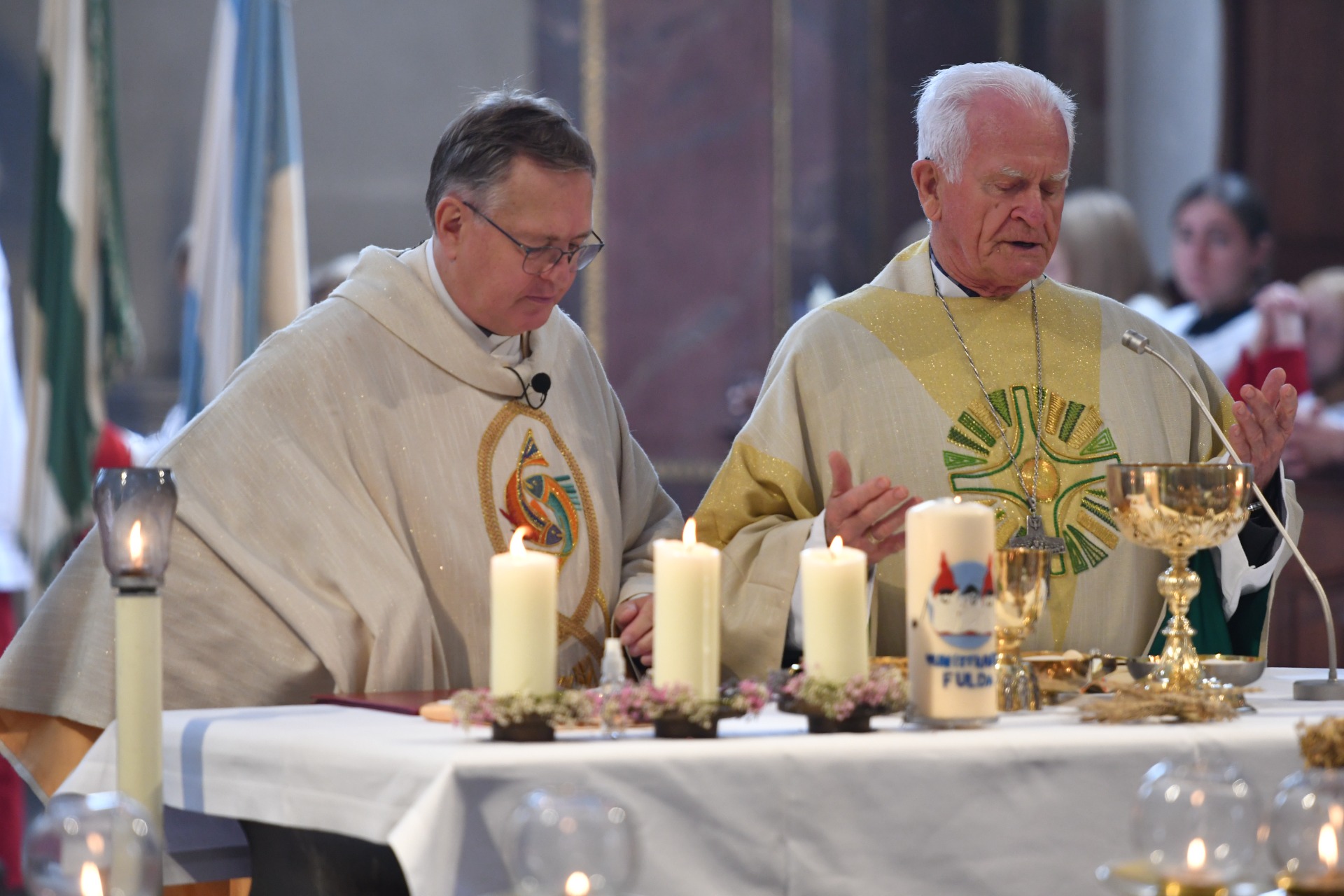 Friedensgottesdienst der Karnevalisten mit Stadtpfarrer Stefan Buß , Susi Süssemilch von der Brunnenzeche und dem Musikverein Niesig , sowie Jochen Rill an der Orgel. Anzündung der Friedenskerze gestieftet von den Randstaaten der Fuldaer Fastnacht.