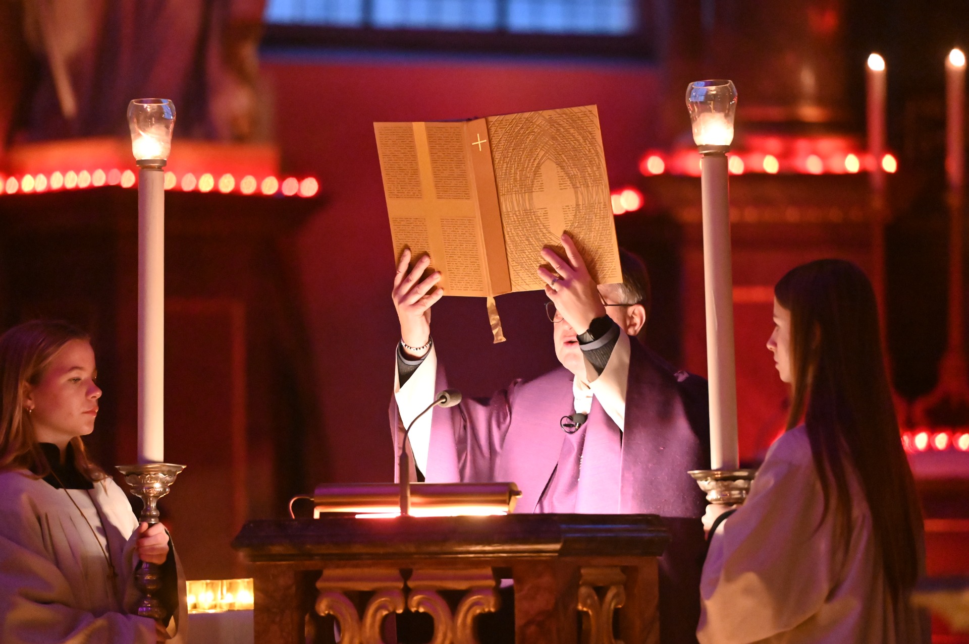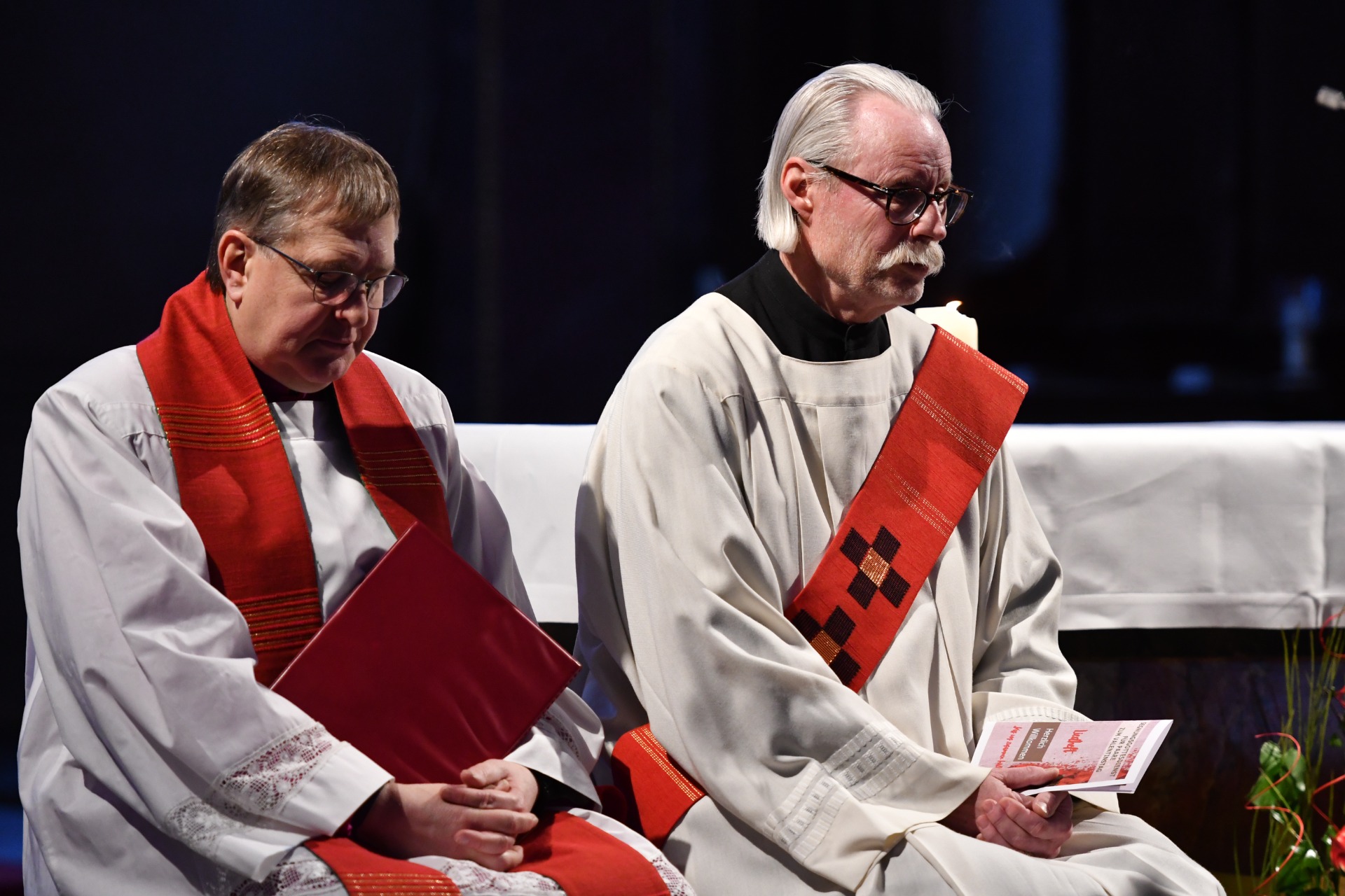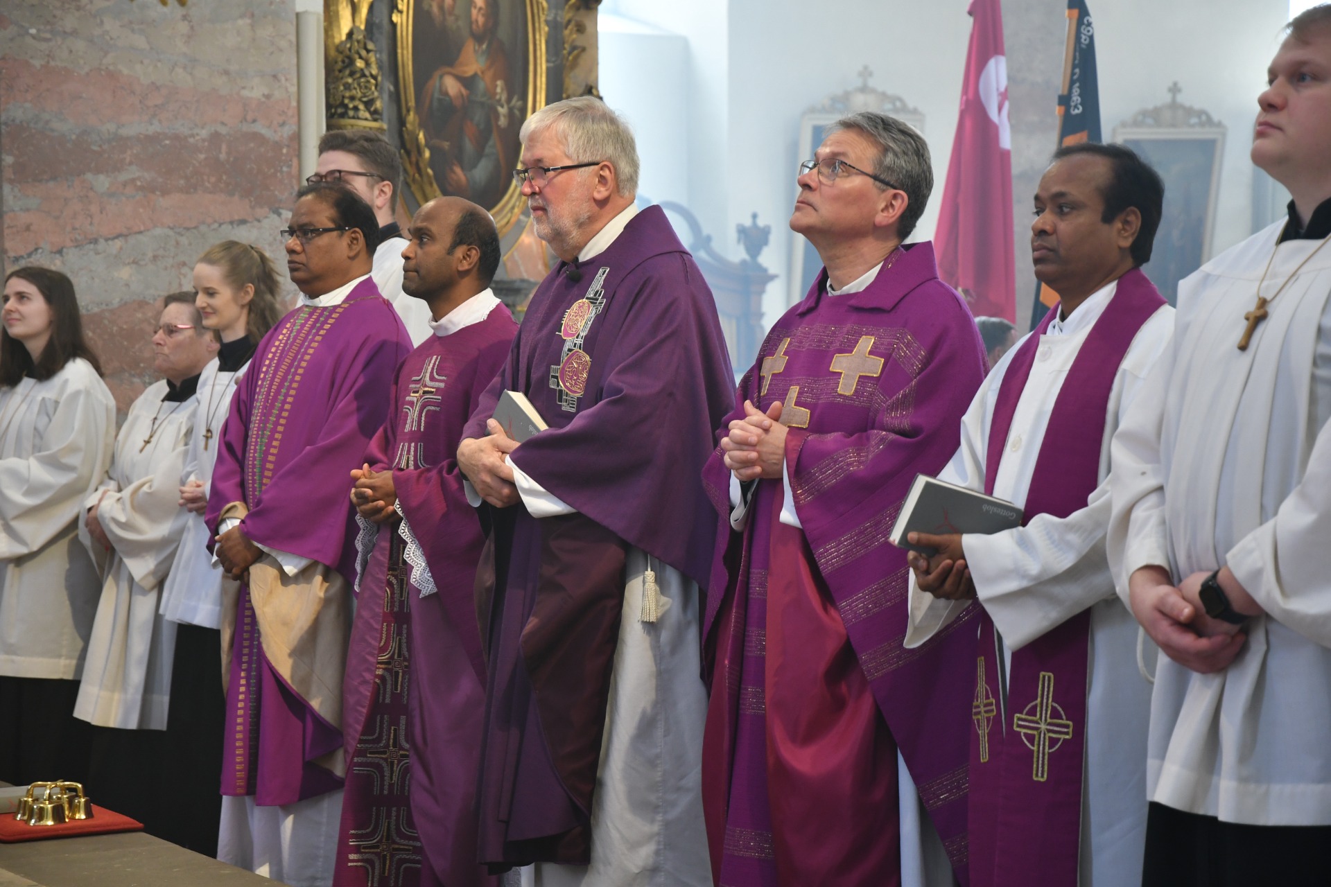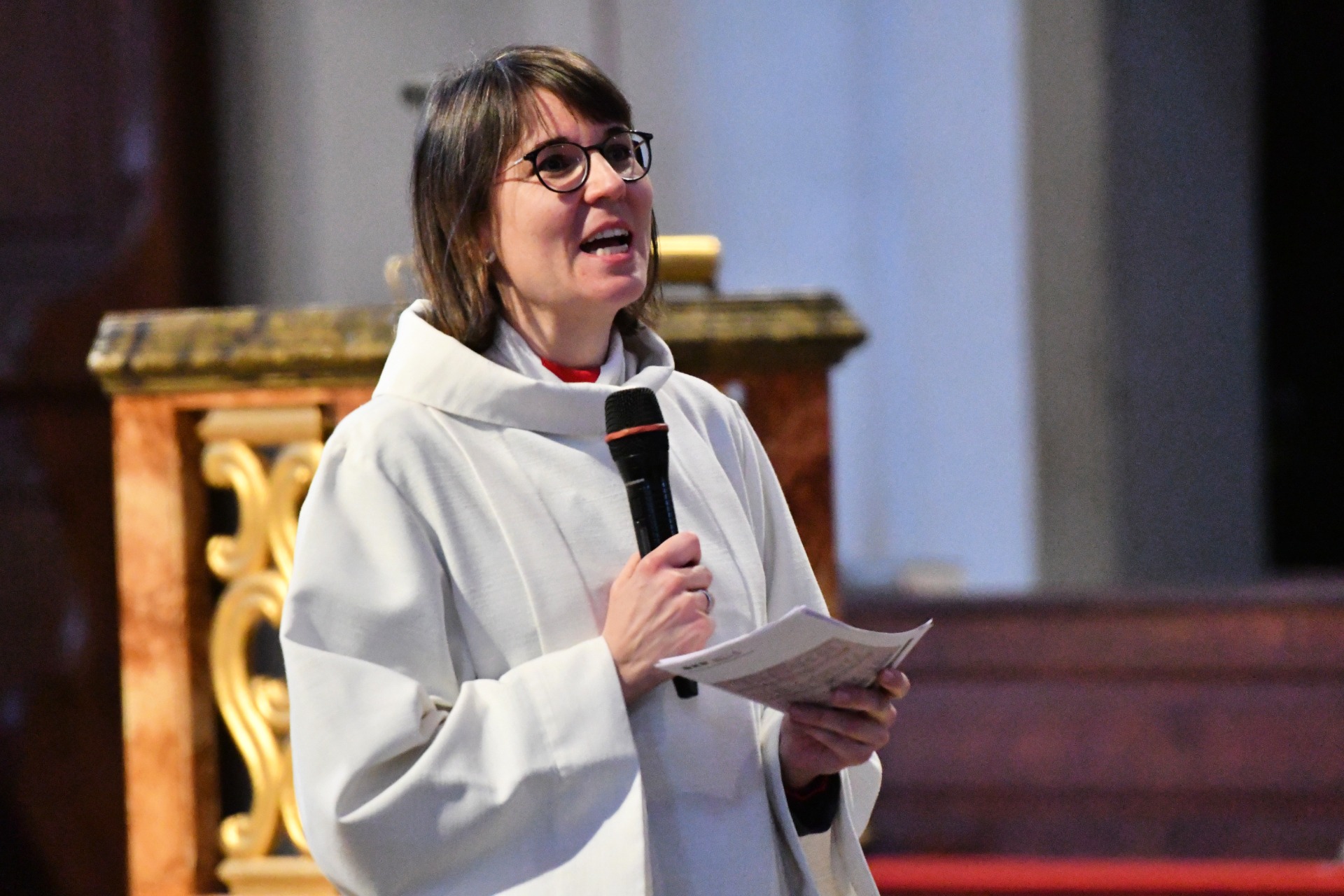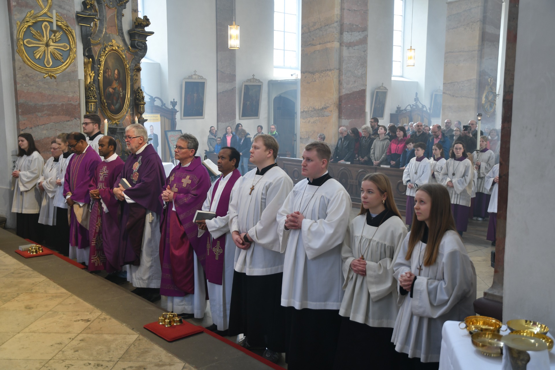 Friedensgottesdienst der Karnevalisten mit Stadtpfarrer Stefan Buß , Susi Süssemilch von der Brunnenzeche und dem Musikverein Niesig , sowie Jochen Rill an der Orgel. Anzündung der Friedenskerze gestieftet von den Randstaaten der Fuldaer Fastnacht.