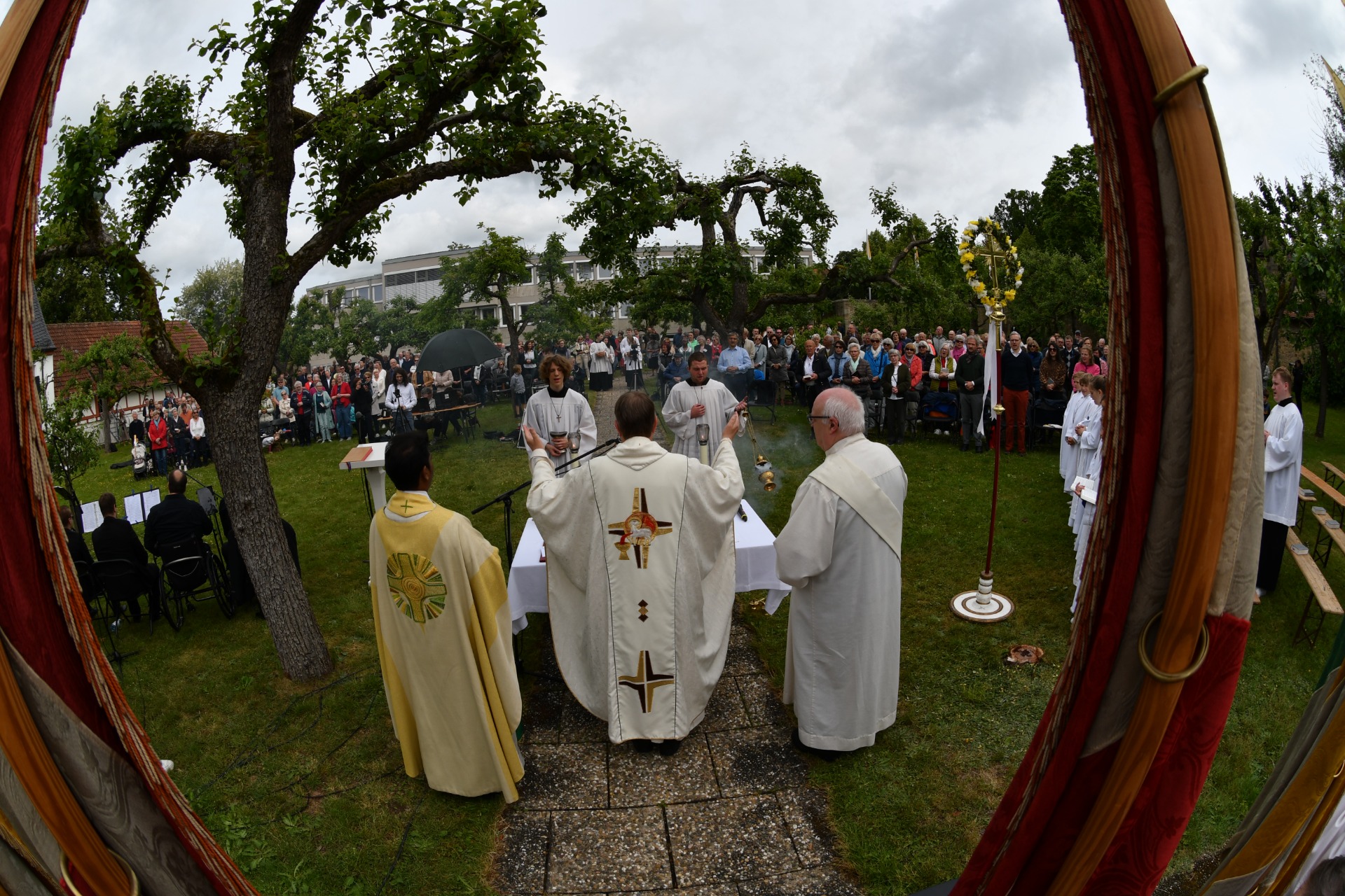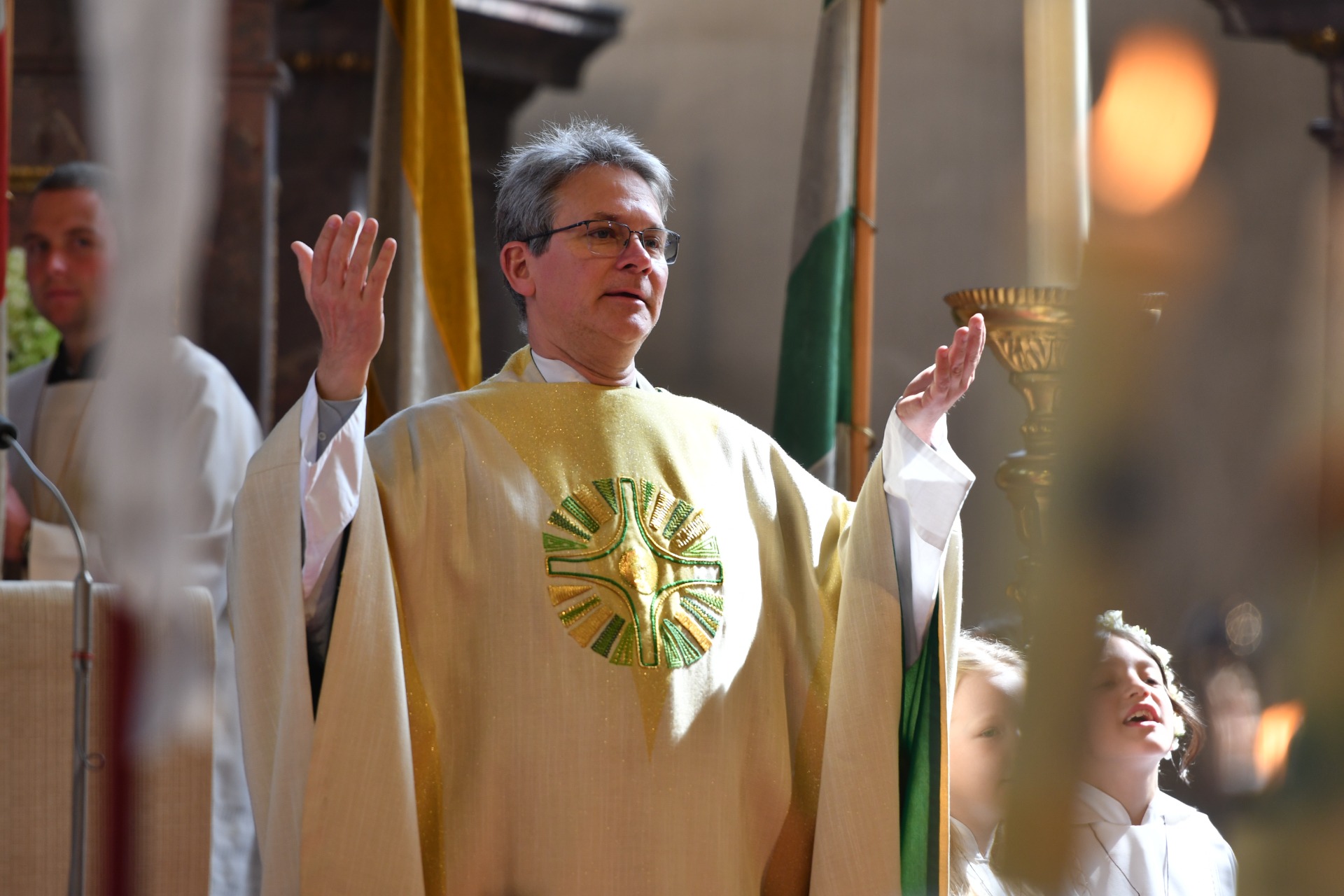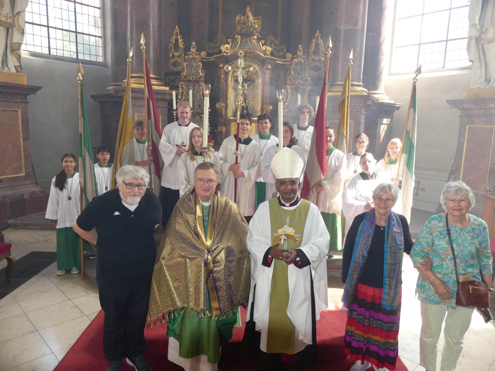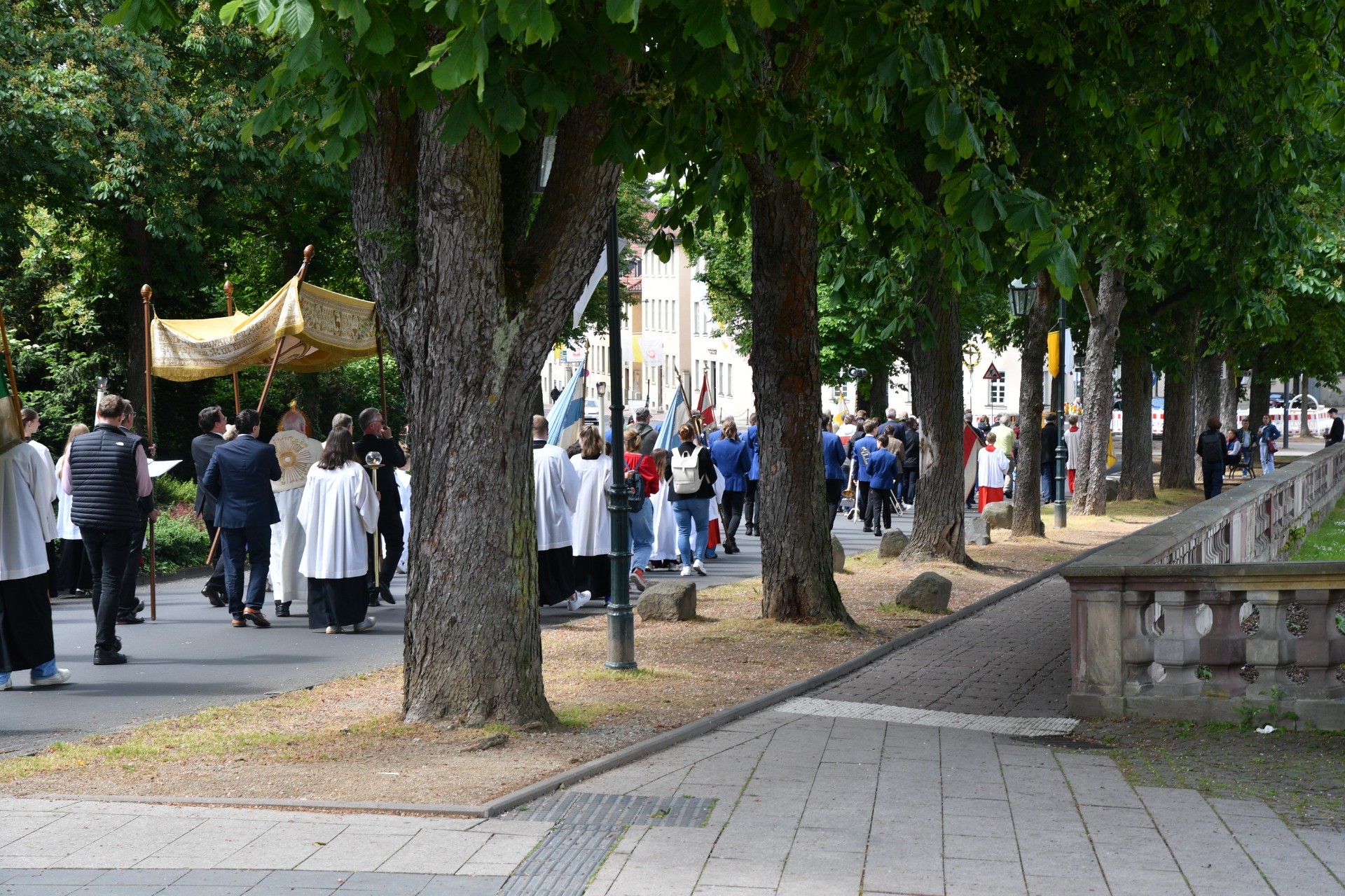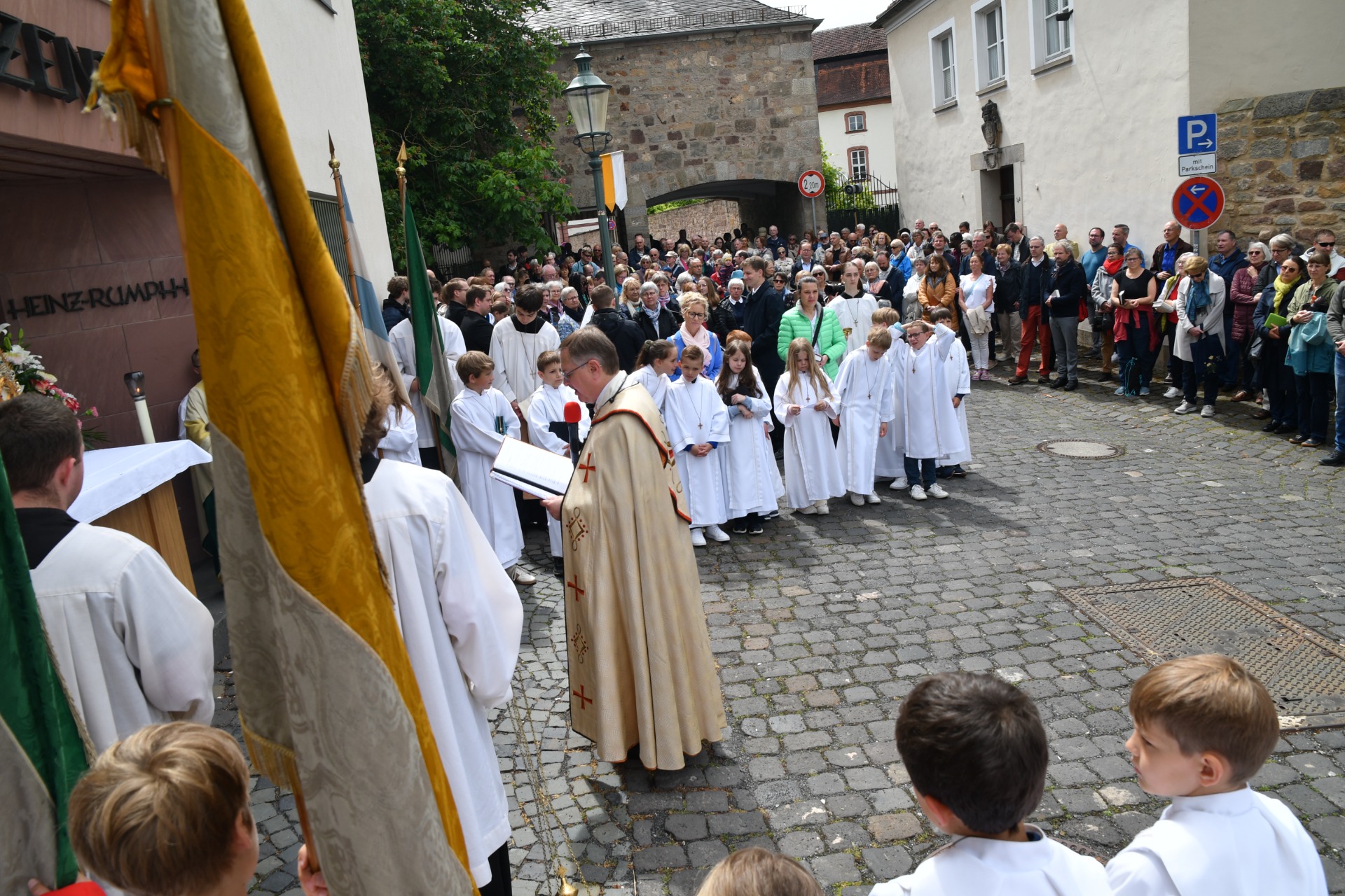 Gottesdienst mit Stadtpfarrer Stefan Buß. Ihm assistierten der indische Priester Suresh Jesudoss und Diakon Rudi Bohl. Musikalisch wurde der Gottesdienst und die Prozession vom Stadtpfarrchor, dem Kinder- und Jugendchor, der Bläsergruppe und dem Musikverein Niesig gestaltet. Nach der Prozession gab es ein frohes Miteiannder am Pfarrzentrum am Dom.