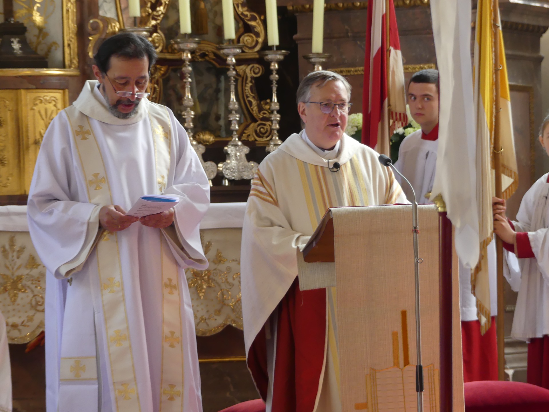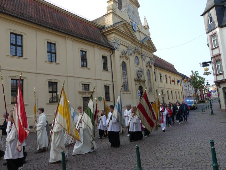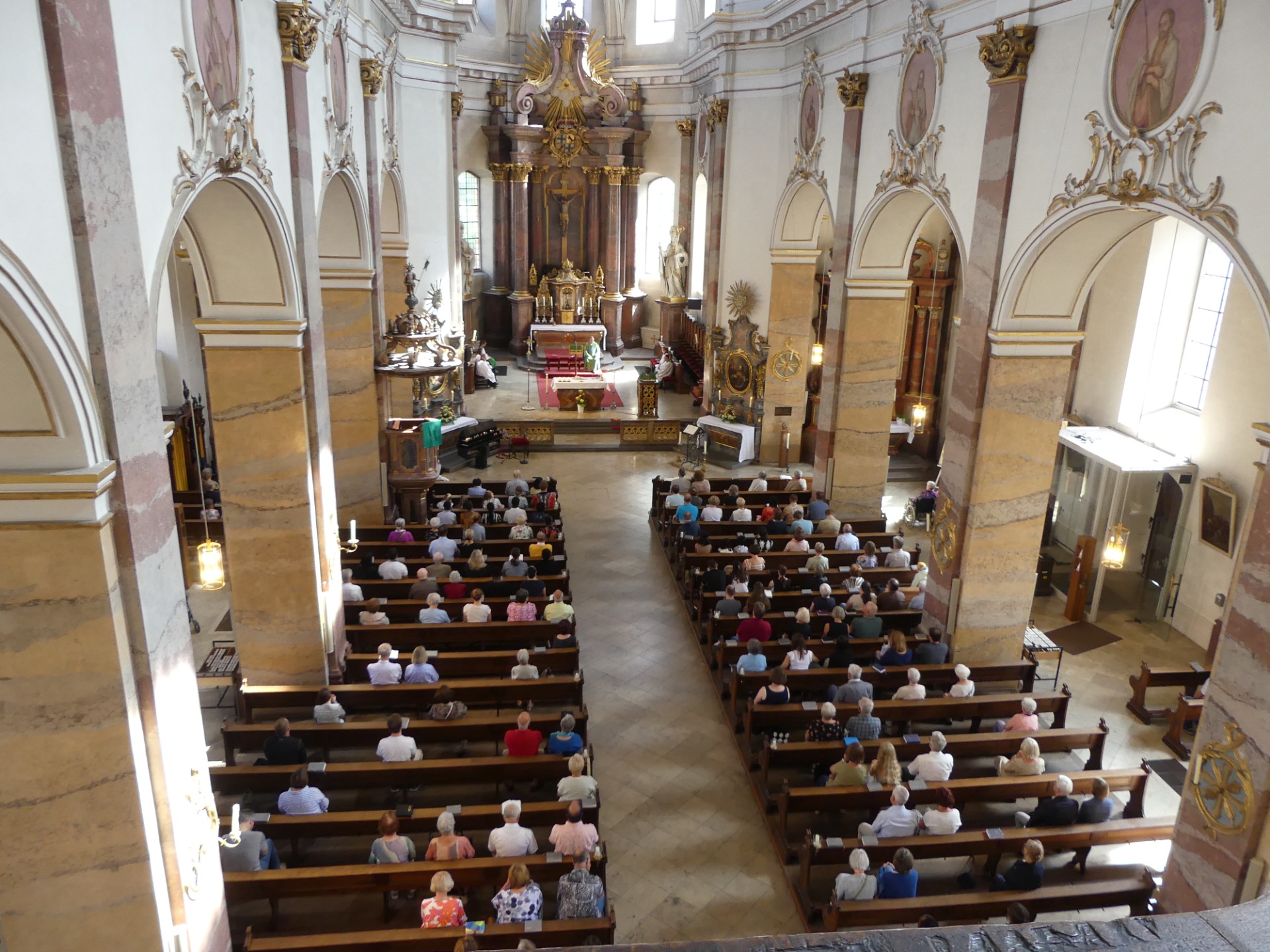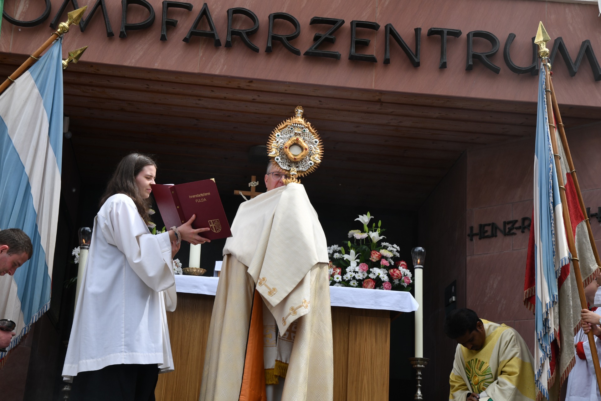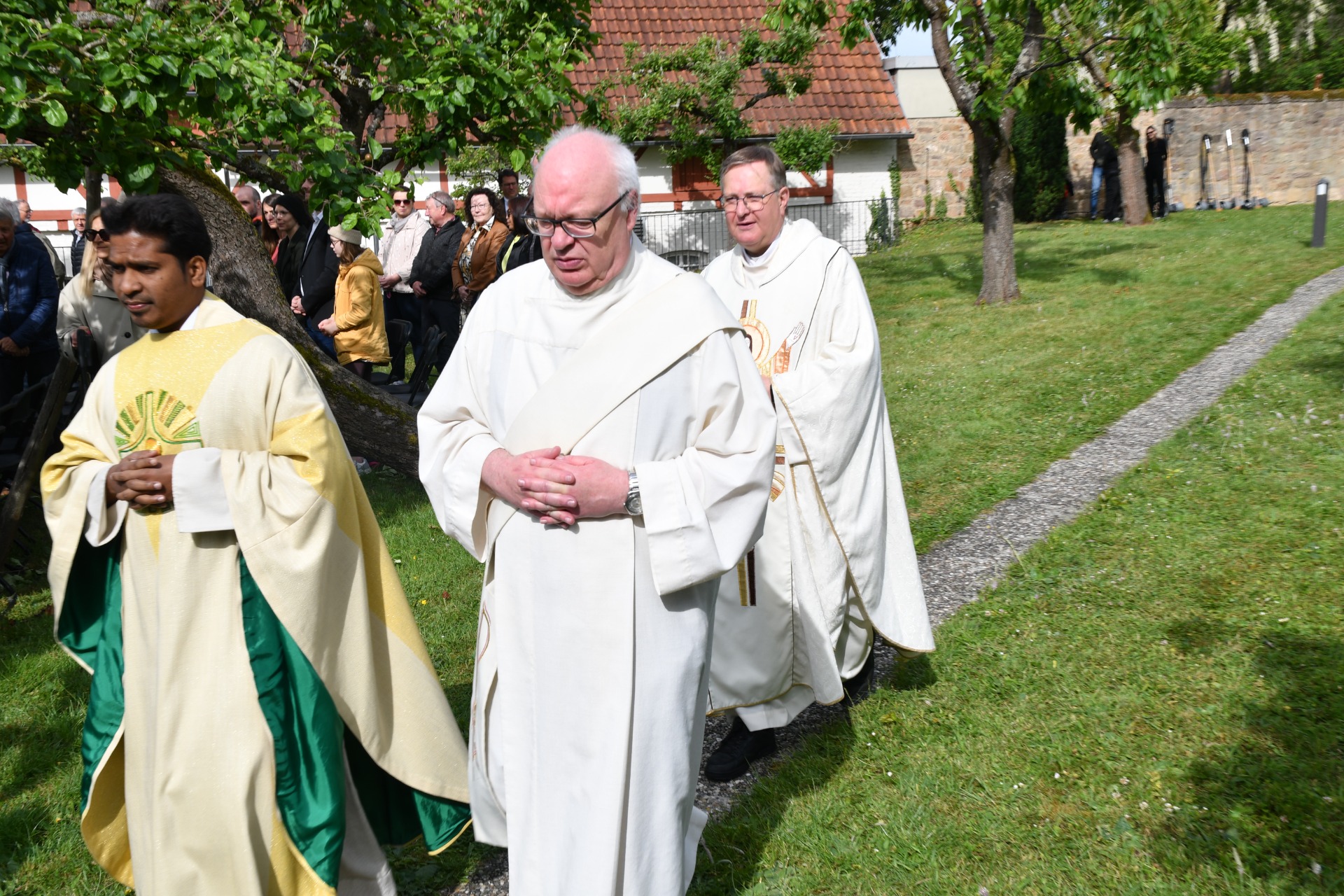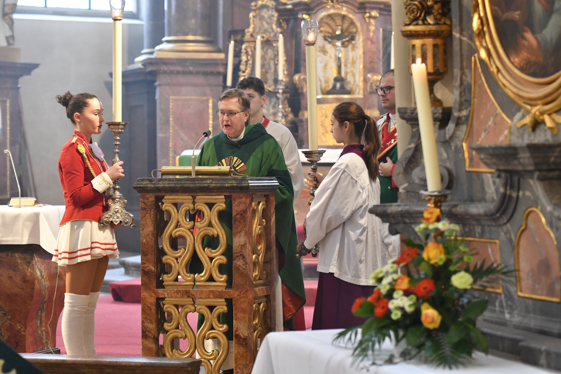 Gottesdienst mit Stadtpfarrer Stefan Buß. Ihm assistierten der indische Priester Suresh Jesudoss und Diakon Rudi Bohl. Musikalisch wurde der Gottesdienst und die Prozession vom Stadtpfarrchor, dem Kinder- und Jugendchor, der Bläsergruppe und dem Musikverein Niesig gestaltet. Nach der Prozession gab es ein frohes Miteiannder am Pfarrzentrum am Dom.