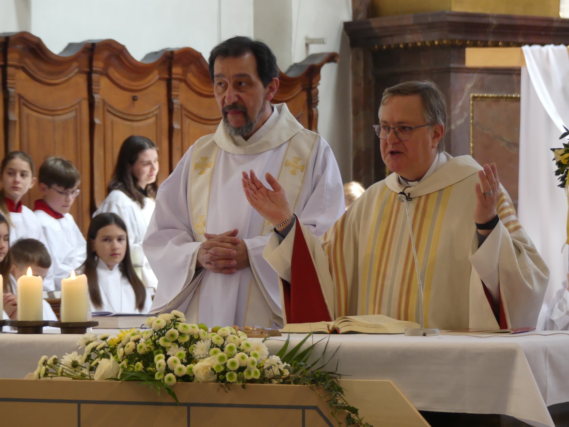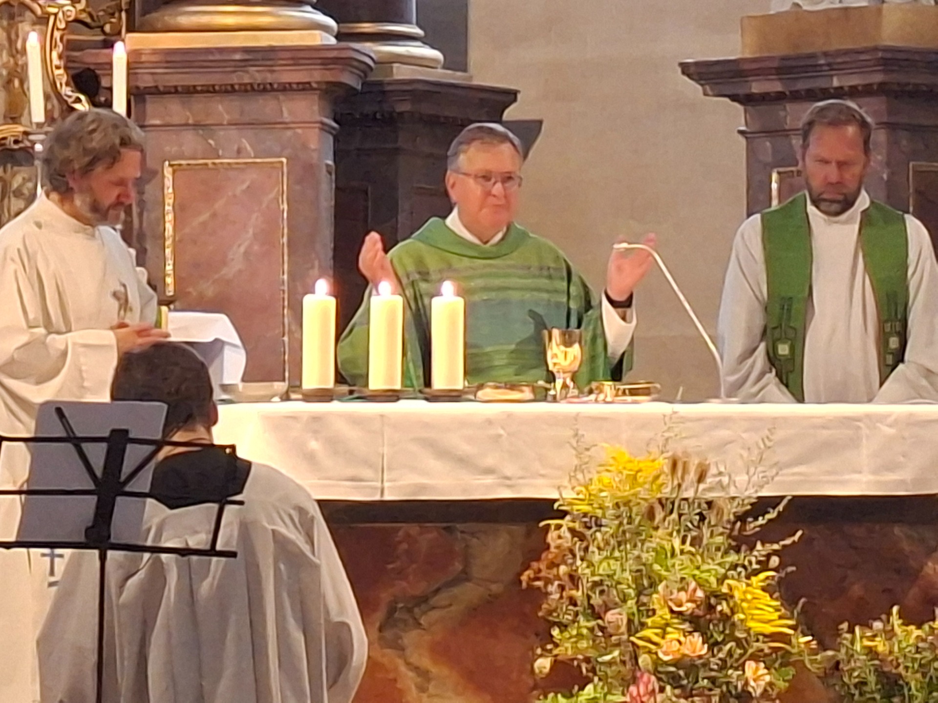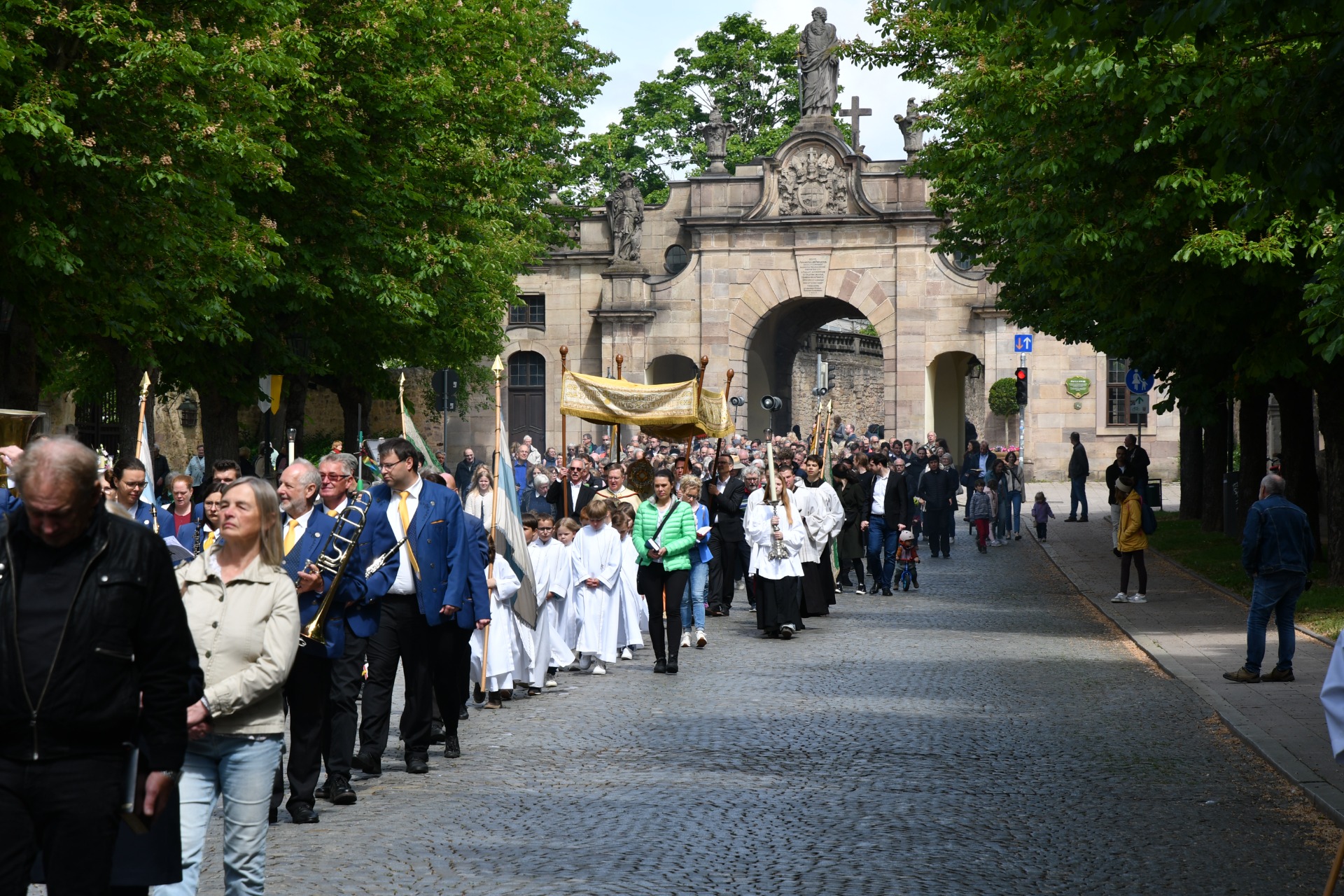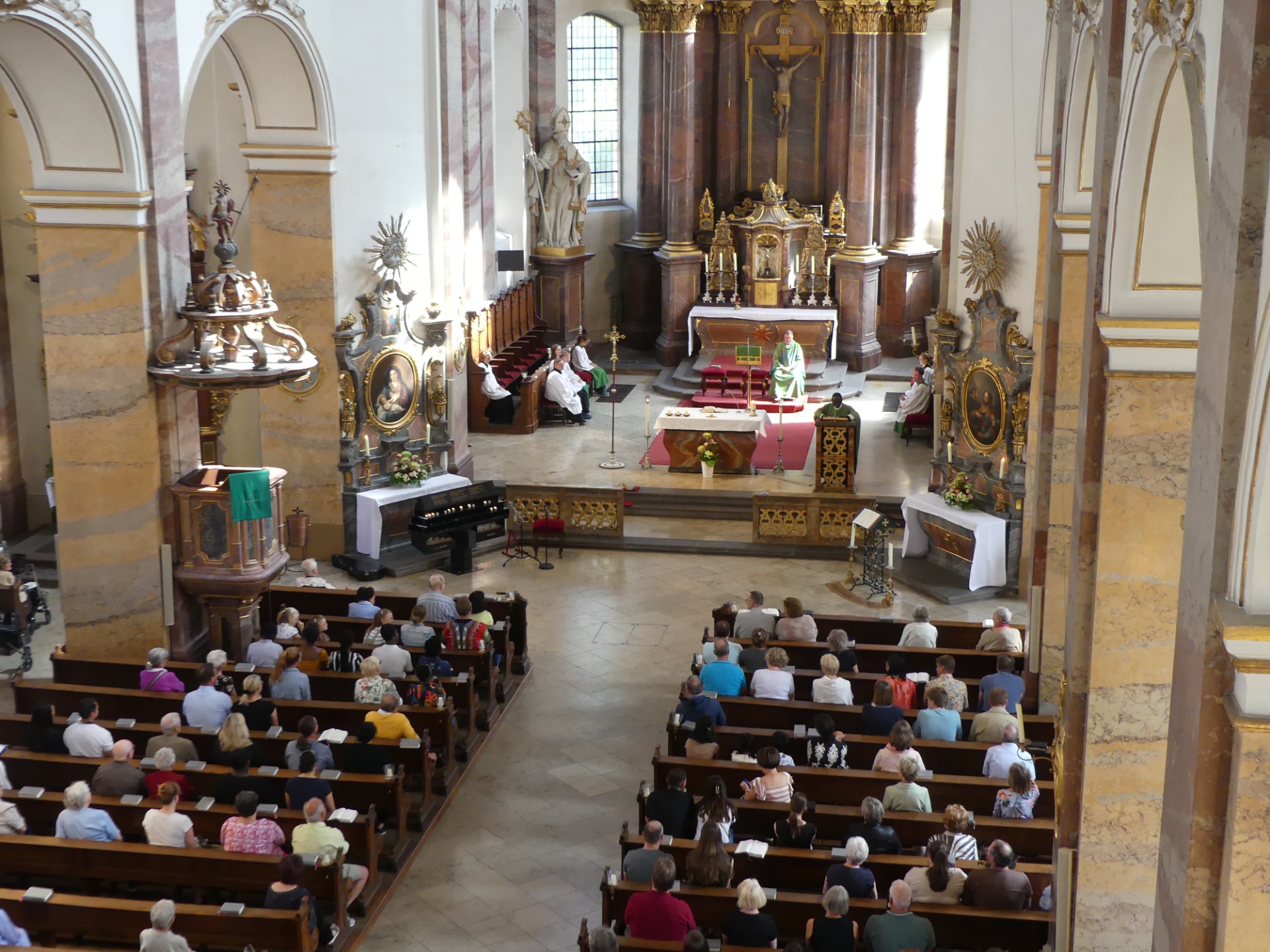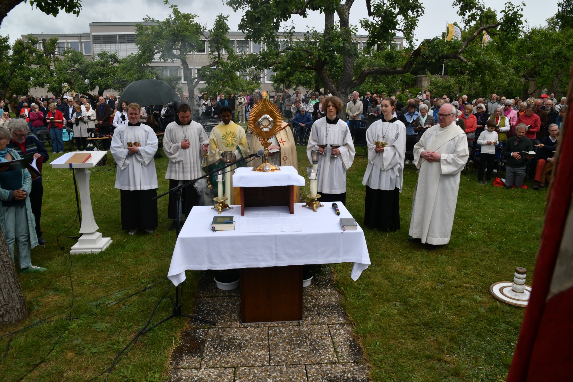 Gottesdienst mit Stadtpfarrer Stefan Buß. Ihm assistierten der indische Priester Suresh Jesudoss und Diakon Rudi Bohl. Musikalisch wurde der Gottesdienst und die Prozession vom Stadtpfarrchor, dem Kinder- und Jugendchor, der Bläsergruppe und dem Musikverein Niesig gestaltet. Nach der Prozession gab es ein frohes Miteiannder am Pfarrzentrum am Dom.