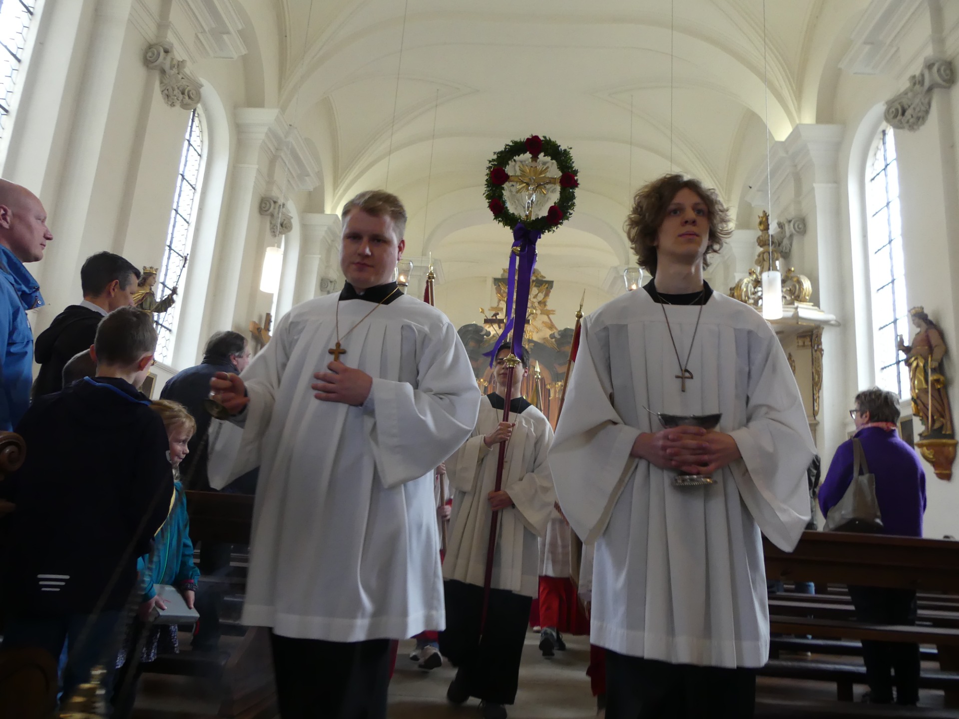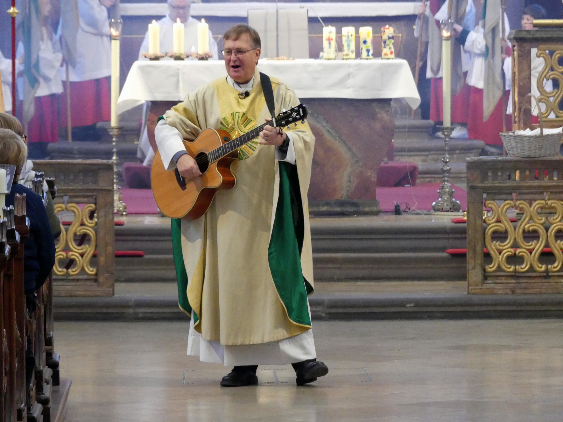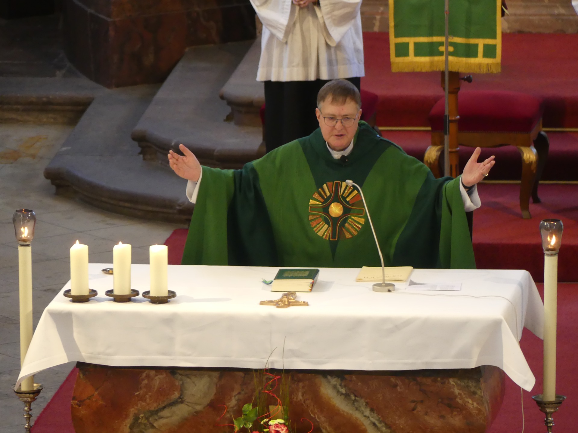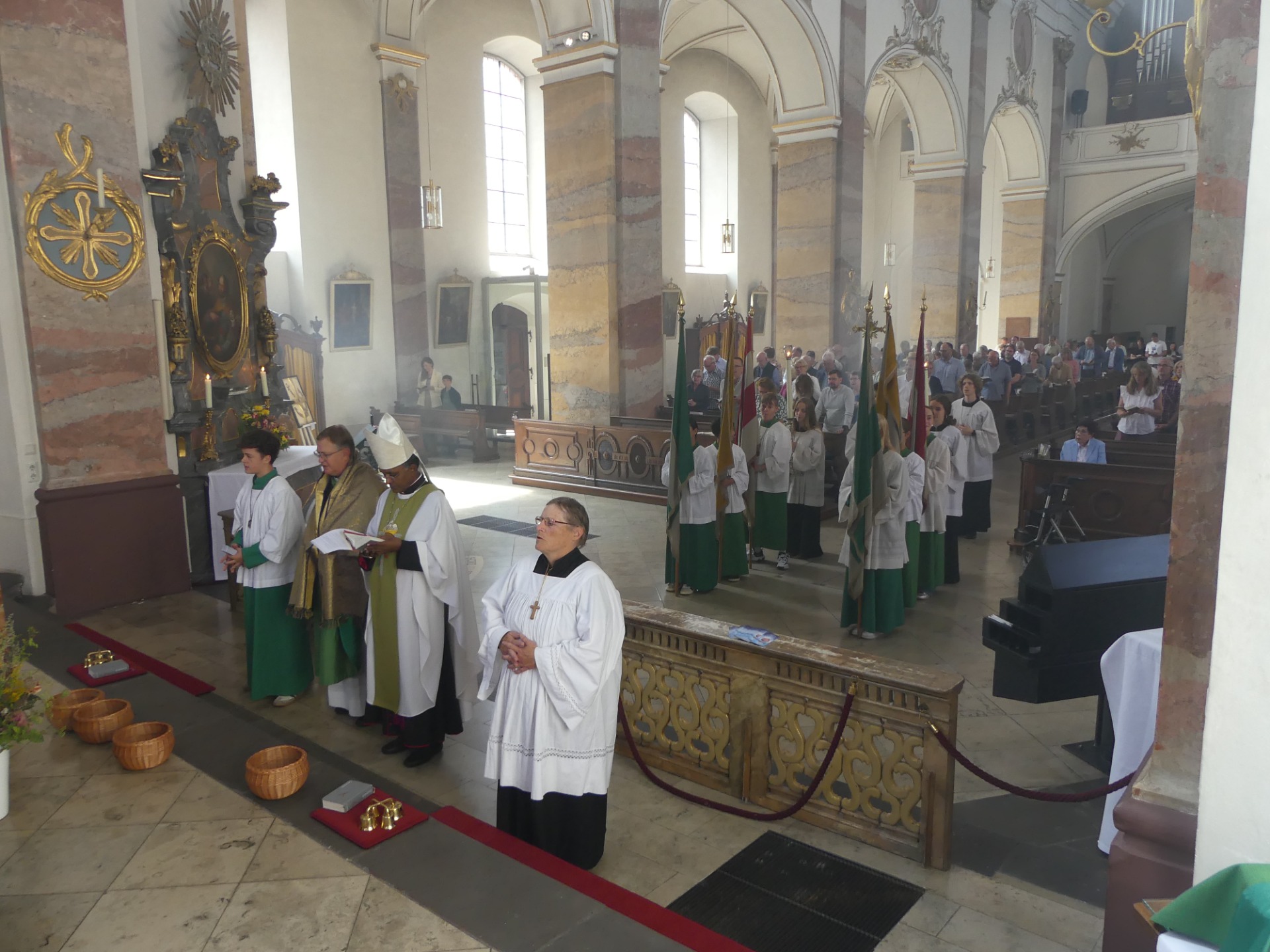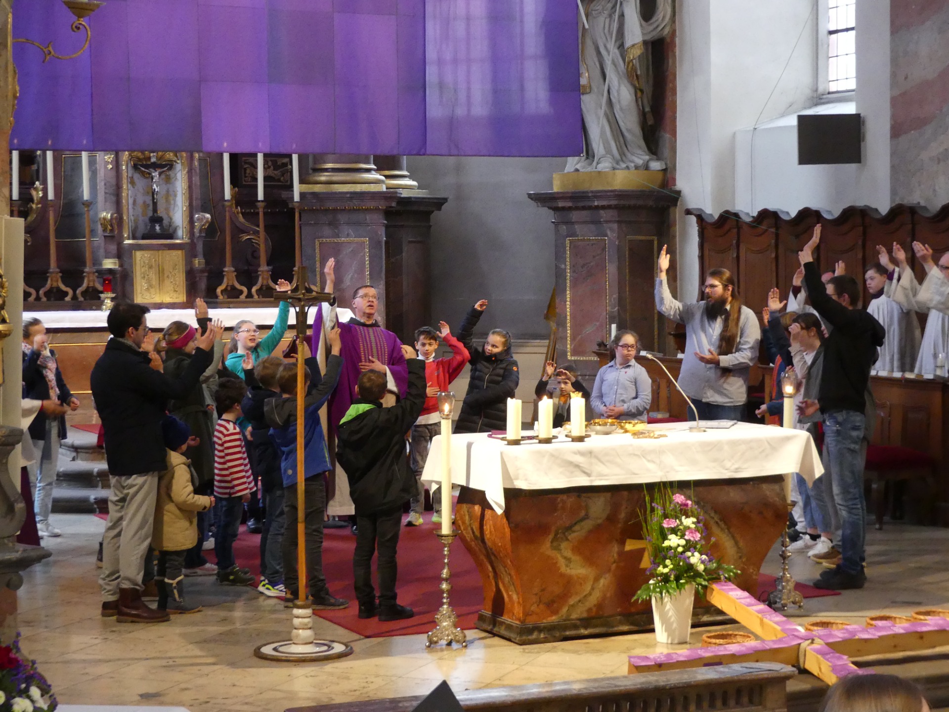 Gottesdienst mit Stadtpfarrer Stefan Buß. Ihm assistierten der indische Priester Suresh Jesudoss und Diakon Rudi Bohl. Musikalisch wurde der Gottesdienst und die Prozession vom Stadtpfarrchor, dem Kinder- und Jugendchor, der Bläsergruppe und dem Musikverein Niesig gestaltet. Nach der Prozession gab es ein frohes Miteiannder am Pfarrzentrum am Dom.