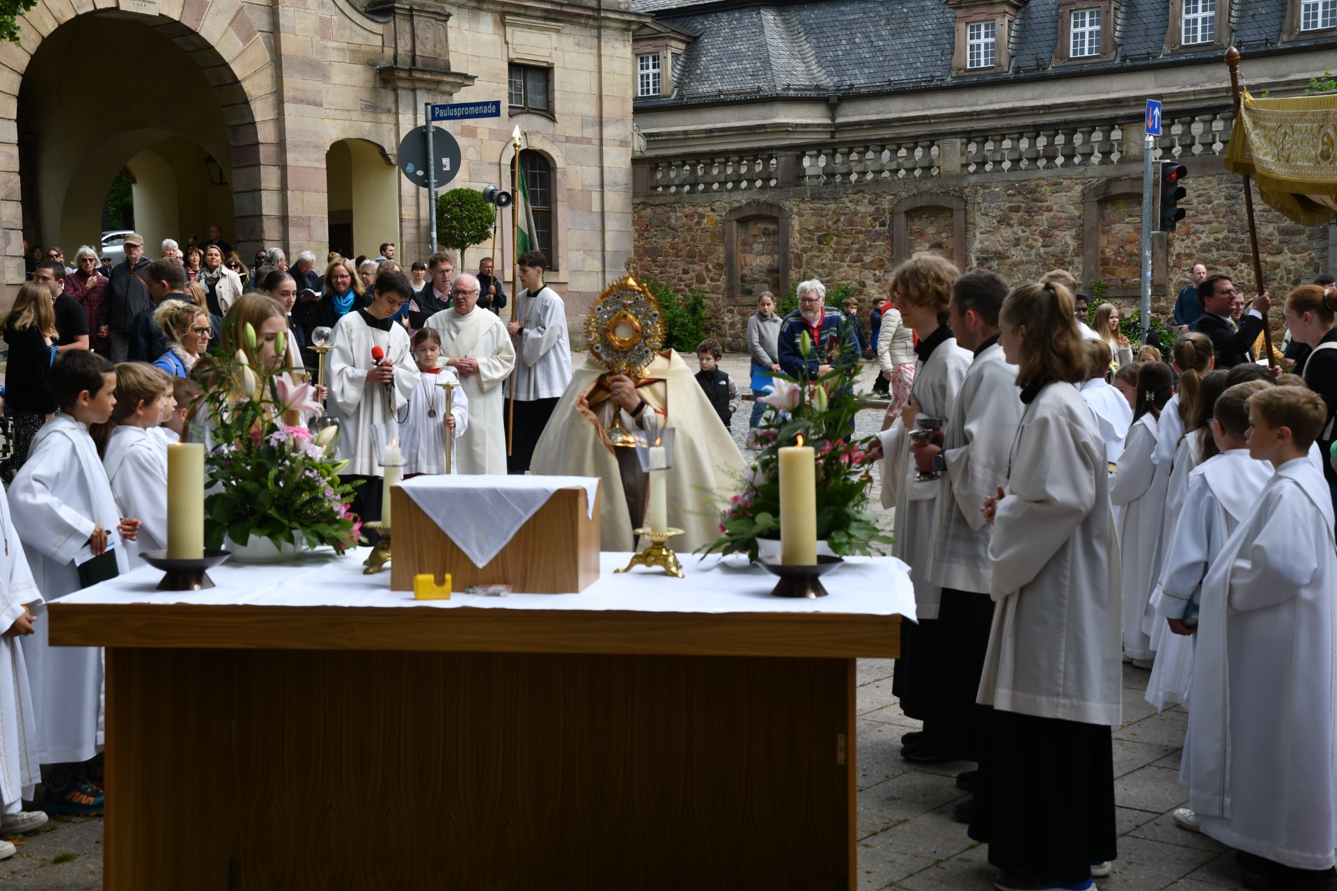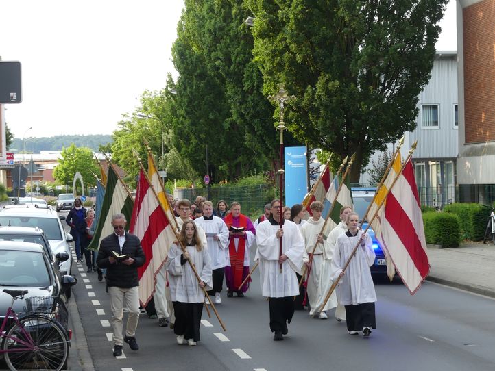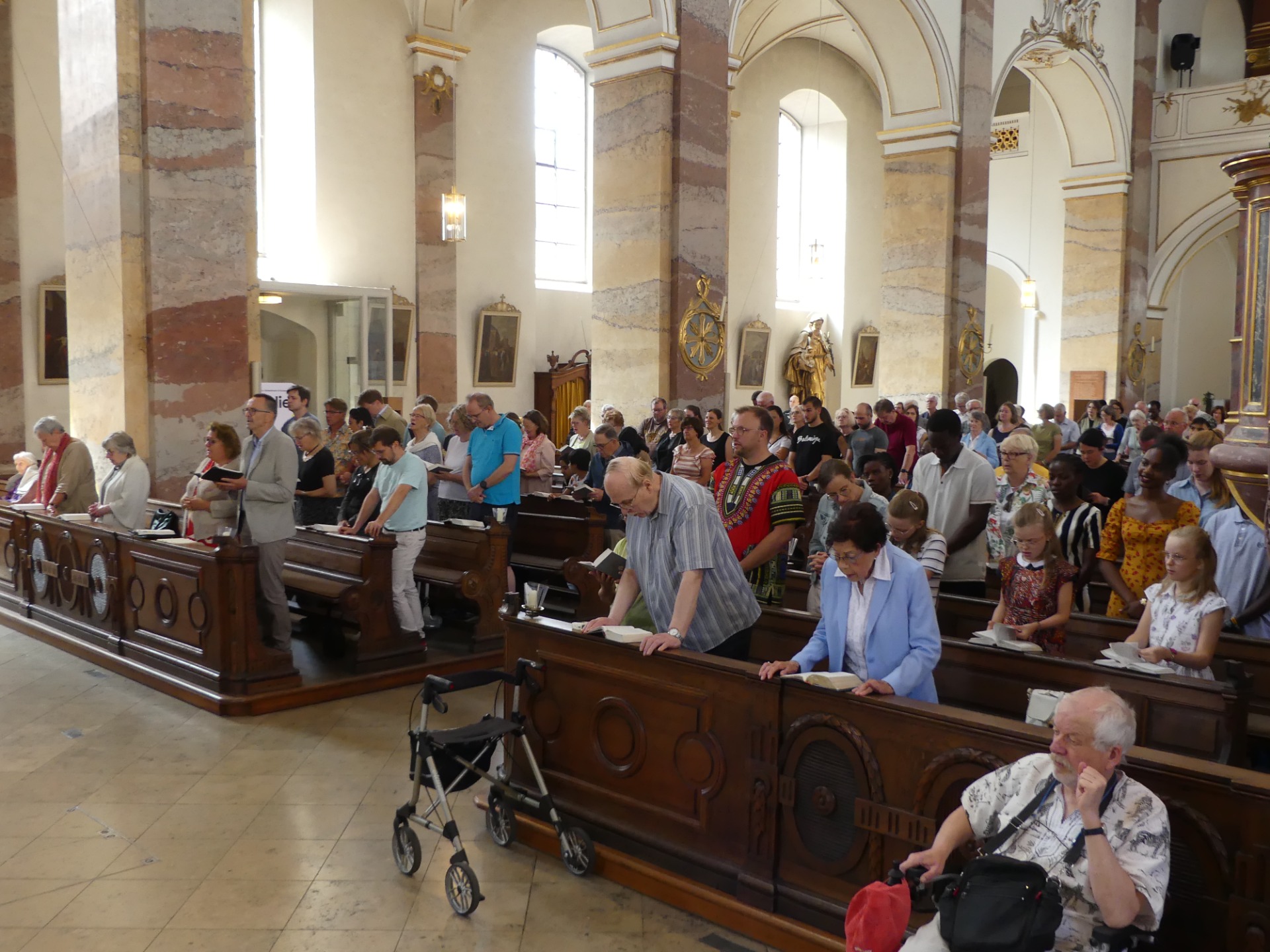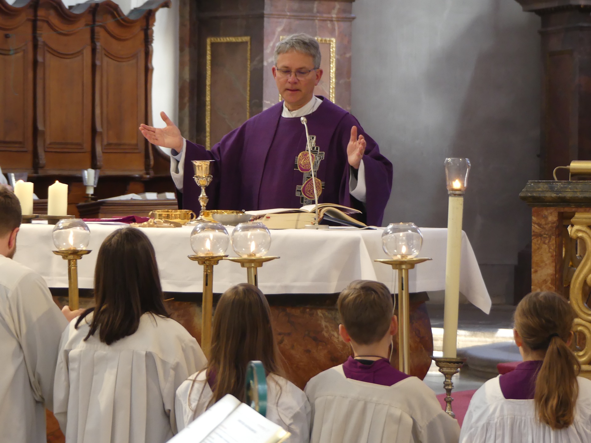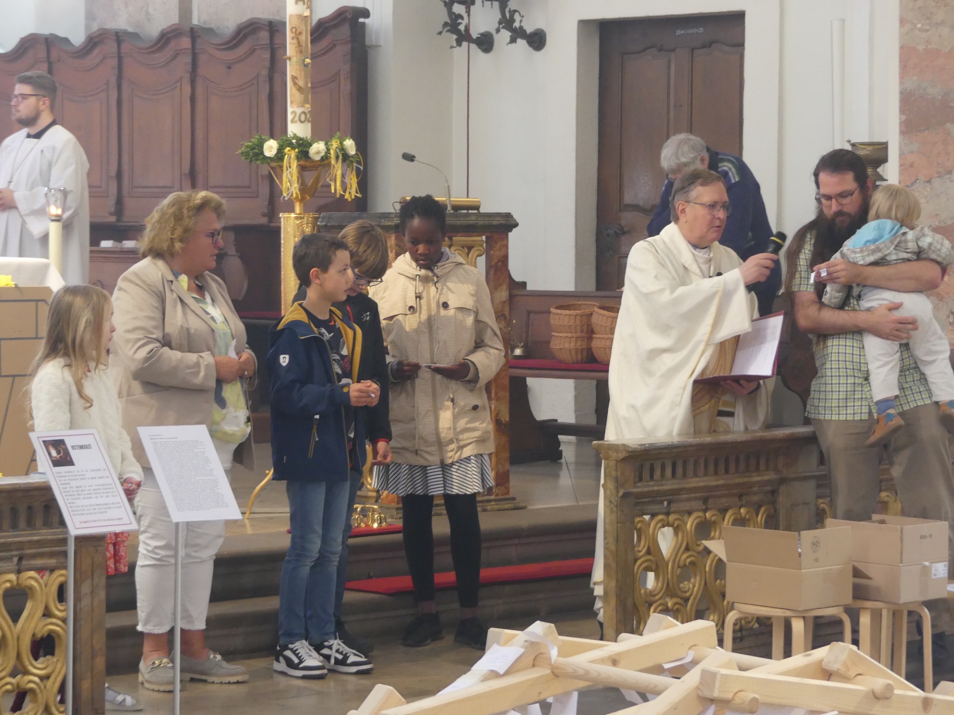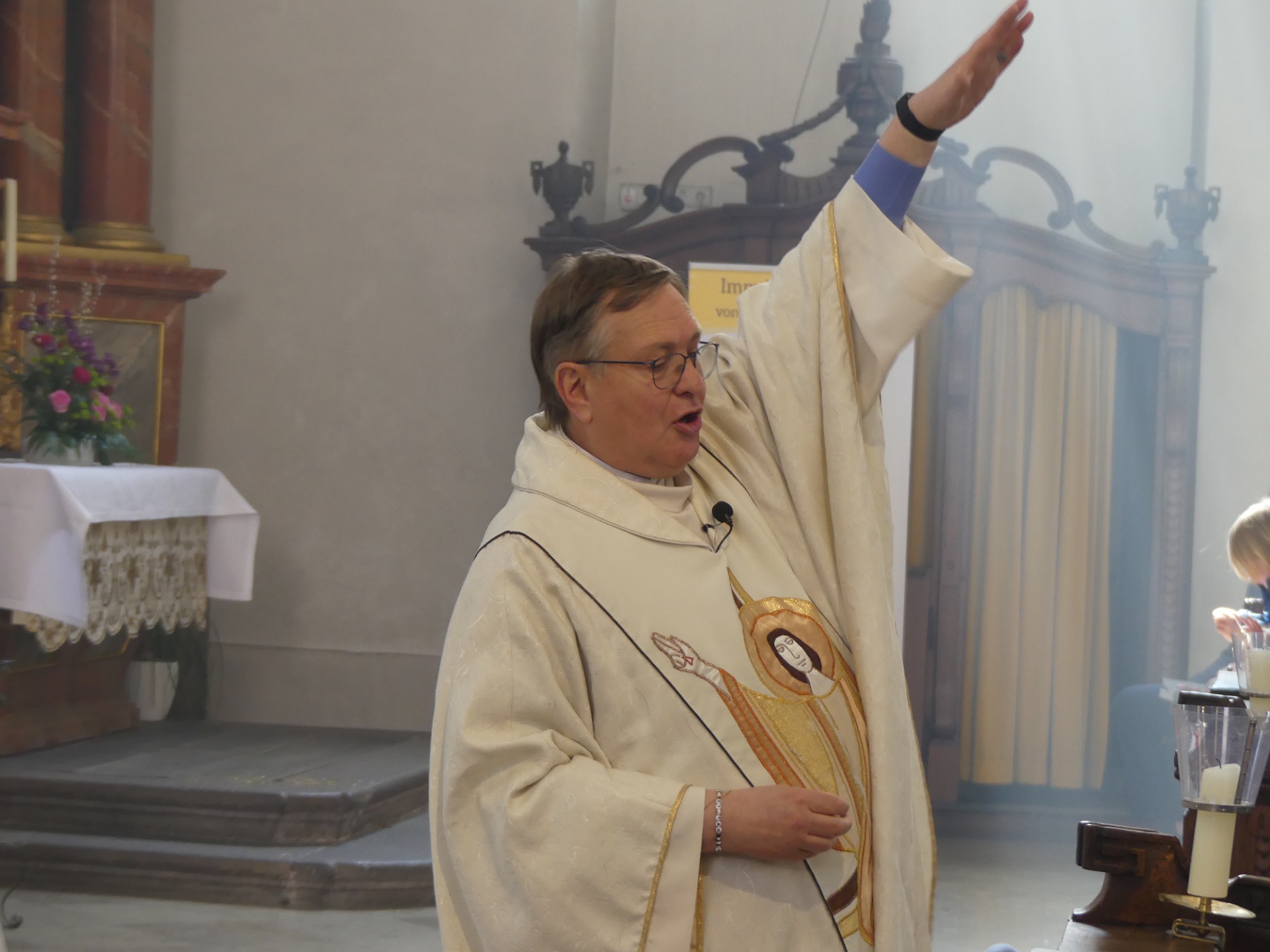 Gottesdienst mit Stadtpfarrer Stefan Buß. Ihm assistierten der indische Priester Suresh Jesudoss und Diakon Rudi Bohl. Musikalisch wurde der Gottesdienst und die Prozession vom Stadtpfarrchor, dem Kinder- und Jugendchor, der Bläsergruppe und dem Musikverein Niesig gestaltet. Nach der Prozession gab es ein frohes Miteiannder am Pfarrzentrum am Dom.