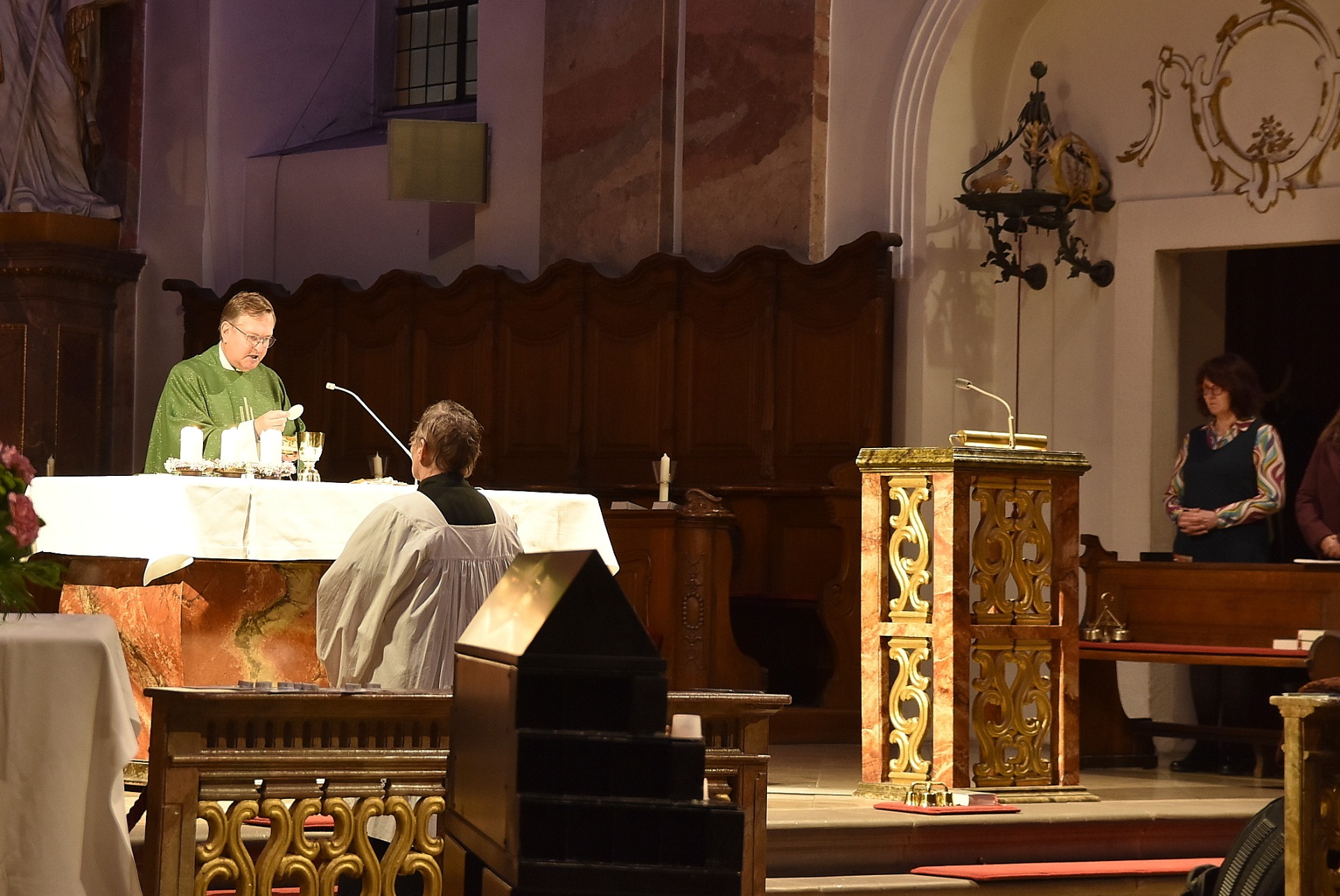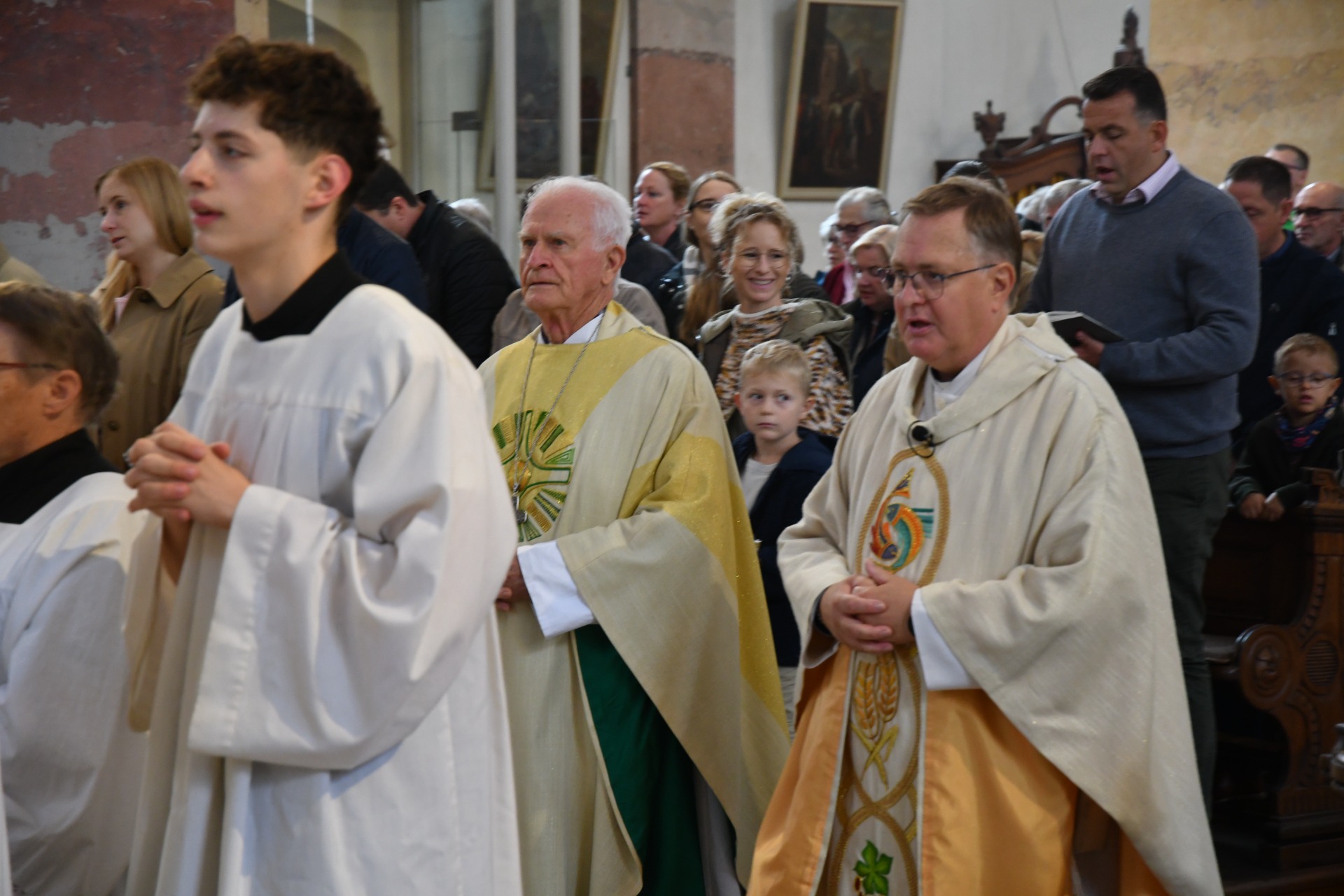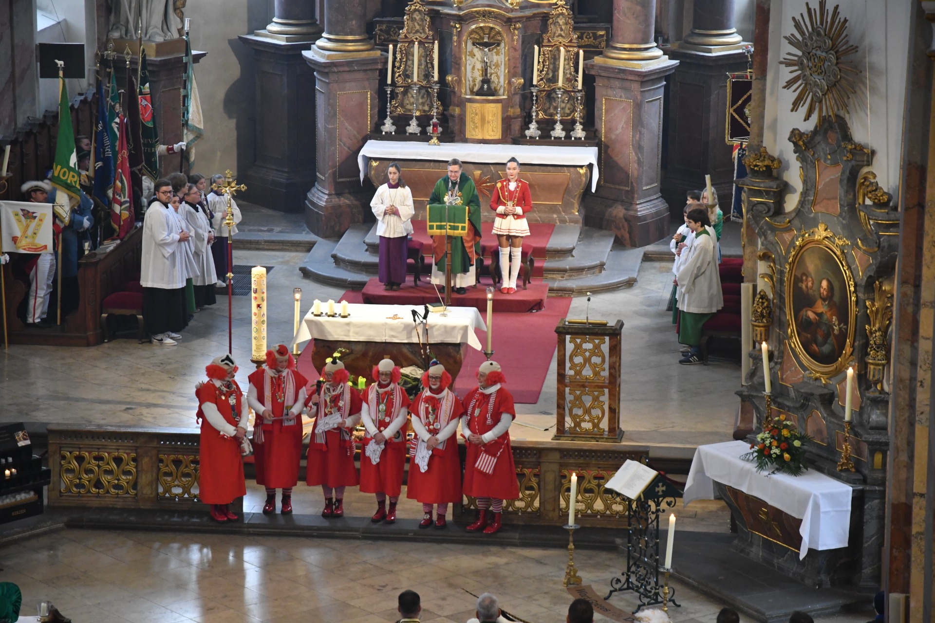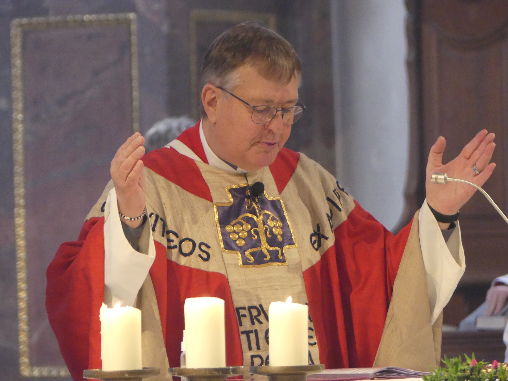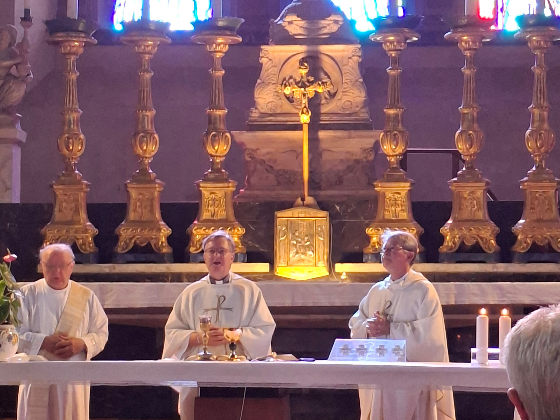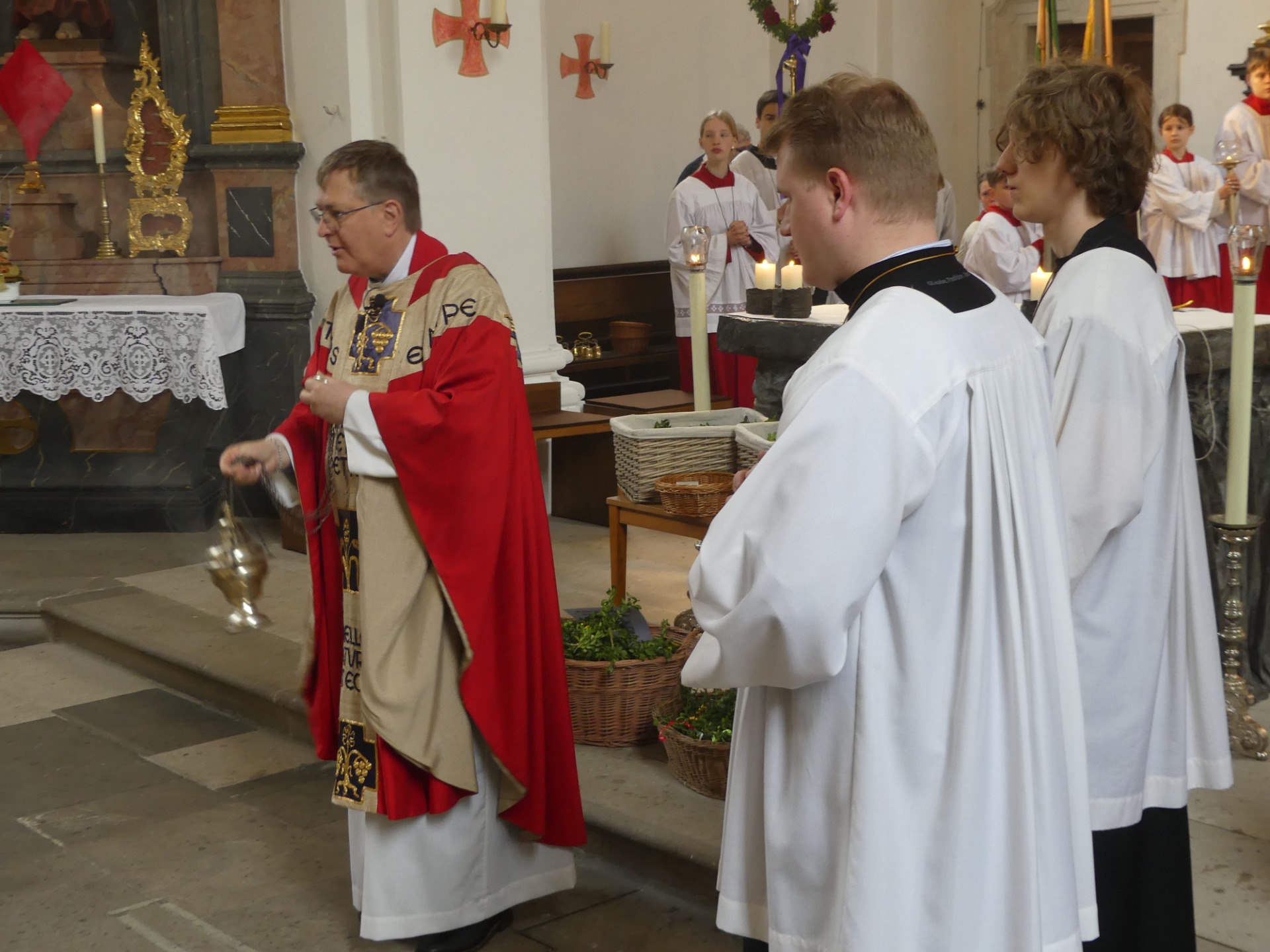 Gottesdienst mit Stadtpfarrer Stefan Buß. Ihm assistierten der indische Priester Suresh Jesudoss und Diakon Rudi Bohl. Musikalisch wurde der Gottesdienst und die Prozession vom Stadtpfarrchor, dem Kinder- und Jugendchor, der Bläsergruppe und dem Musikverein Niesig gestaltet. Nach der Prozession gab es ein frohes Miteiannder am Pfarrzentrum am Dom.