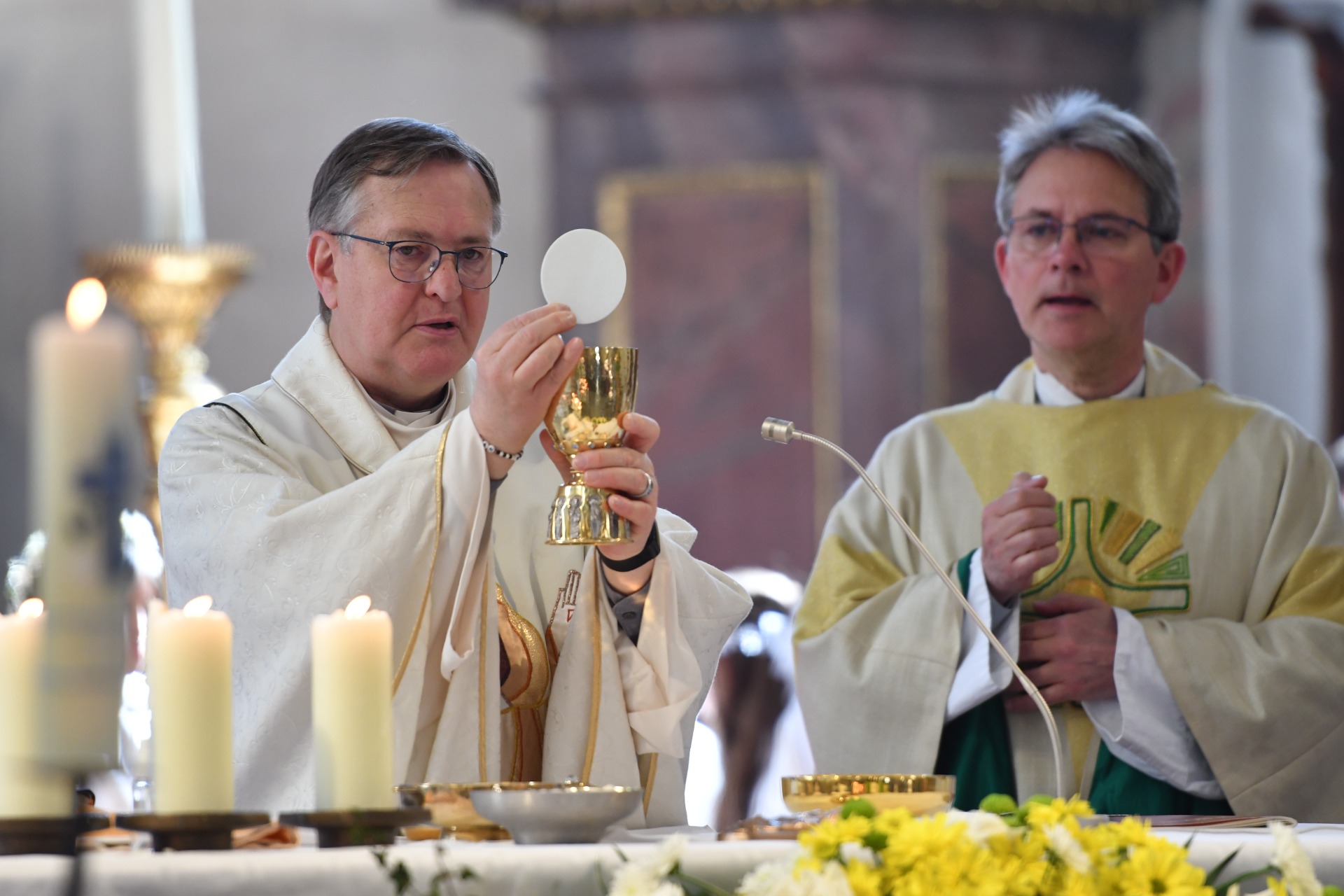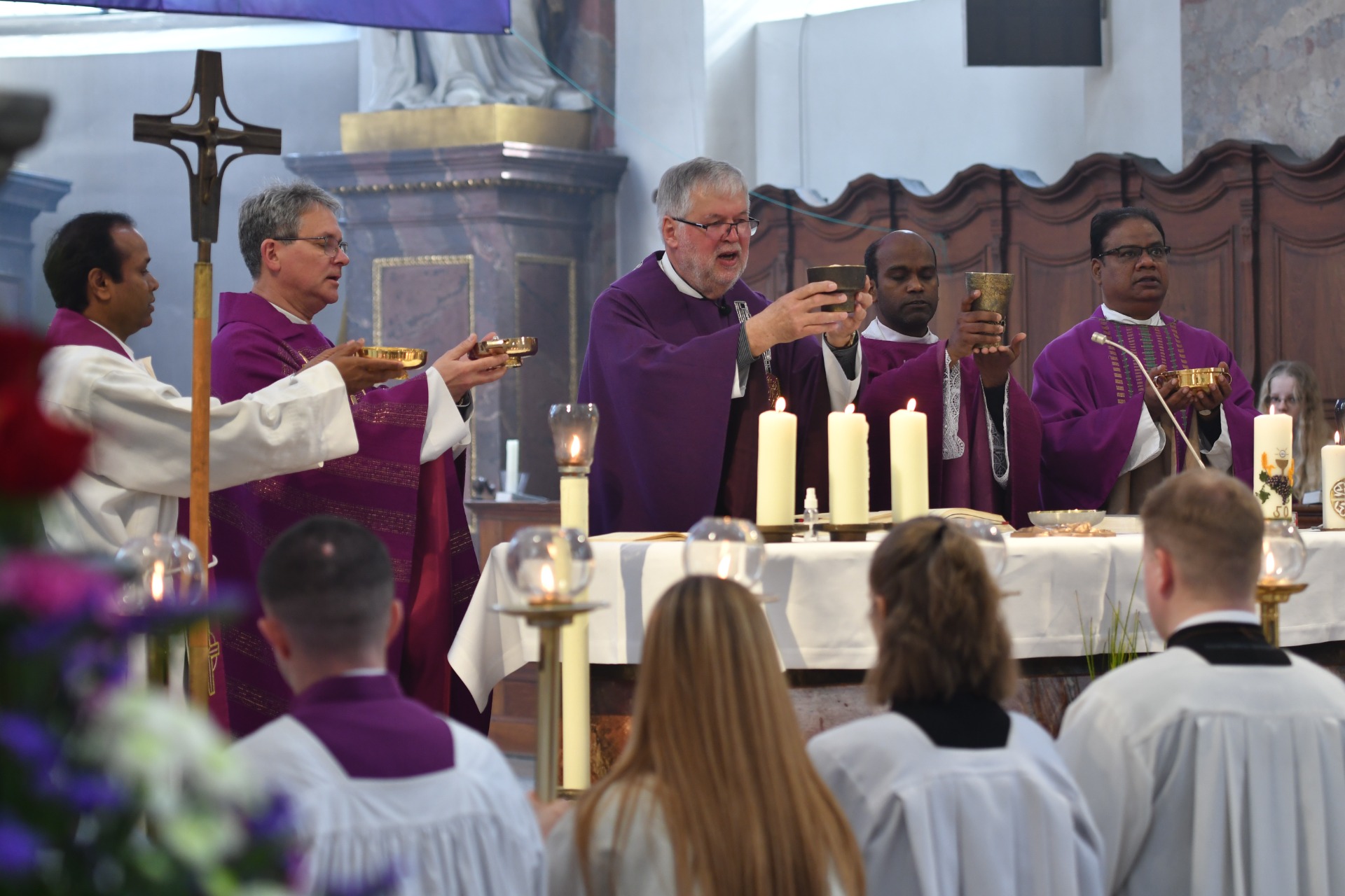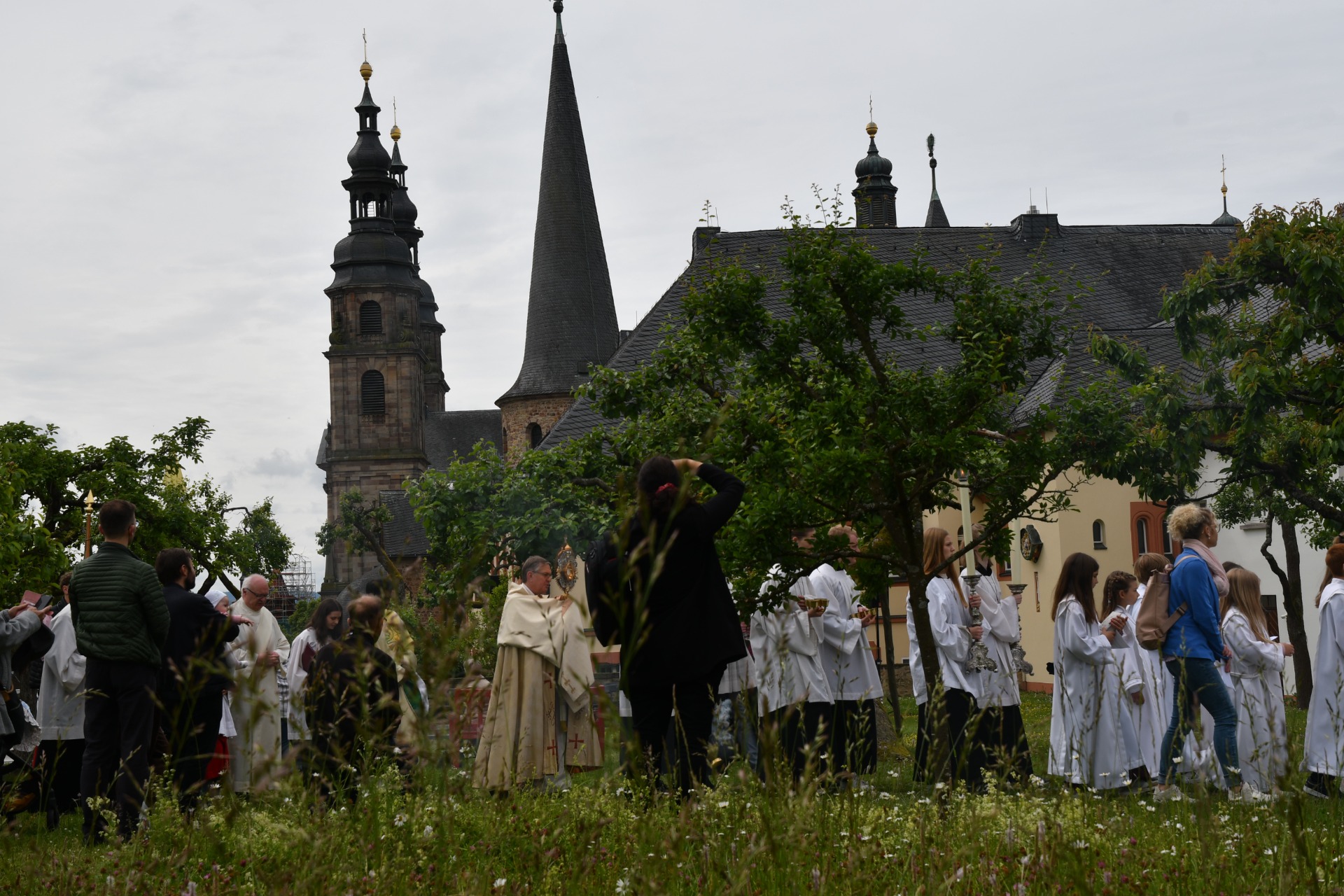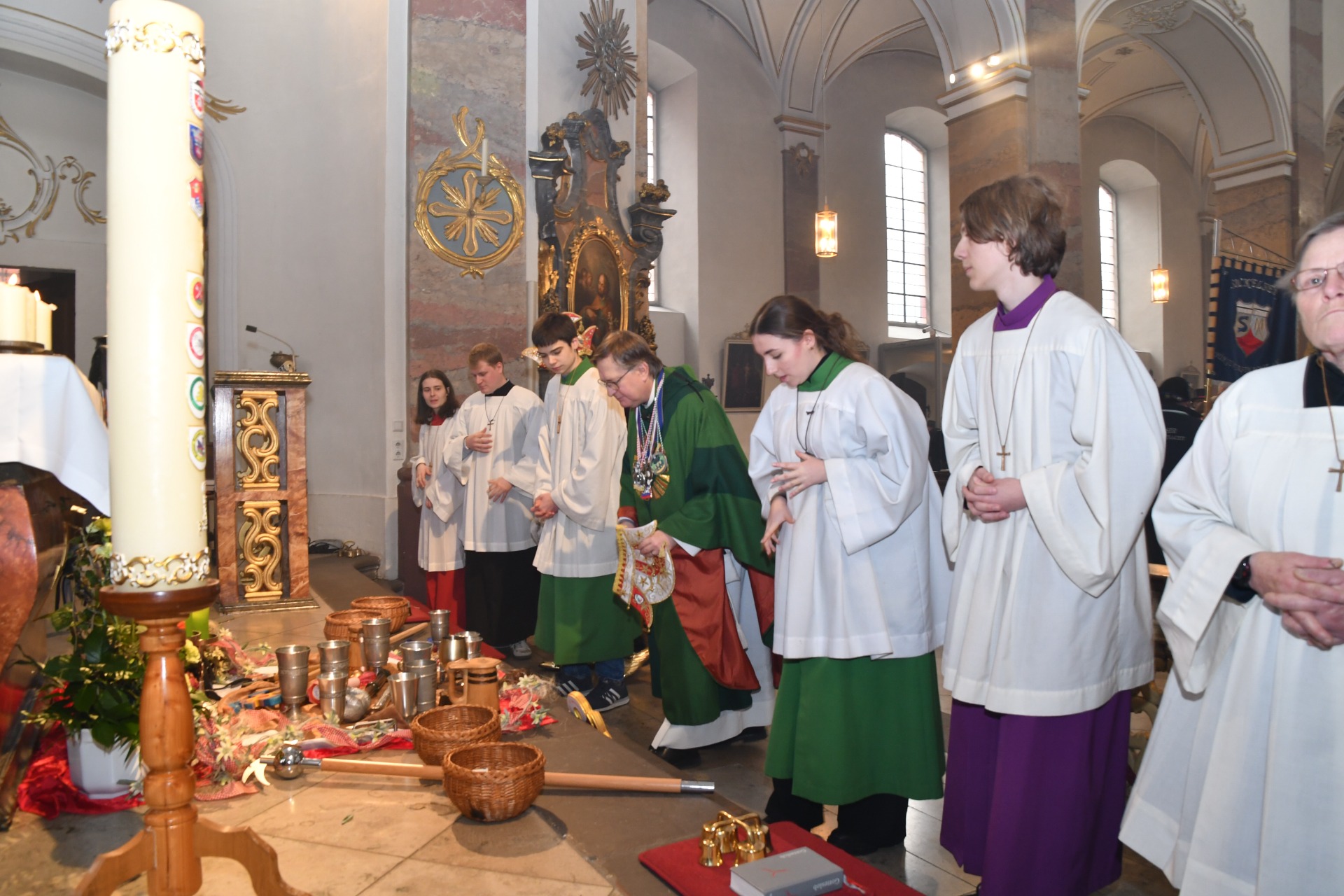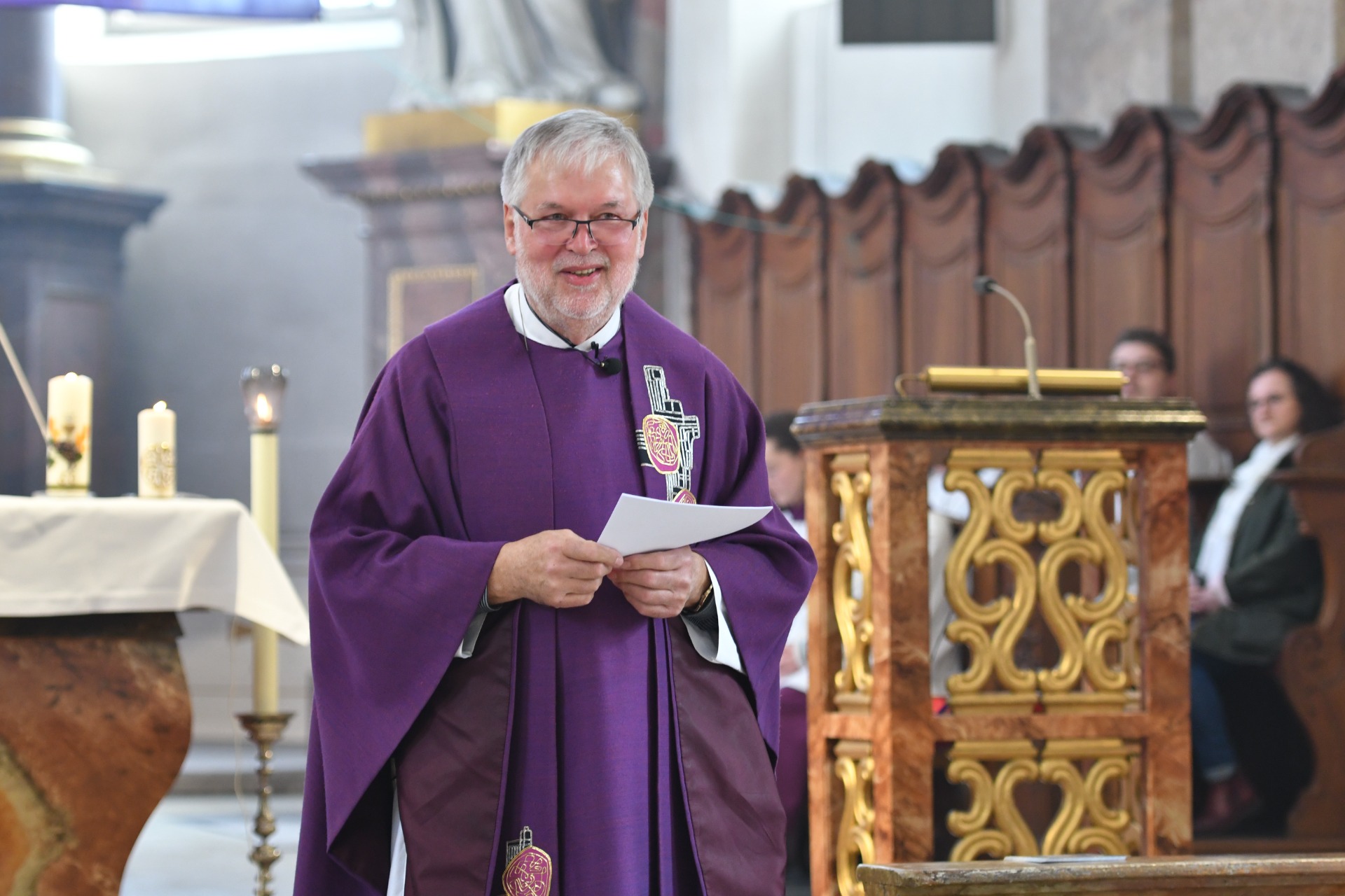 Gottesdienst mit Stadtpfarrer Stefan Buß. Ihm assistierten der indische Priester Suresh Jesudoss und Diakon Rudi Bohl. Musikalisch wurde der Gottesdienst und die Prozession vom Stadtpfarrchor, dem Kinder- und Jugendchor, der Bläsergruppe und dem Musikverein Niesig gestaltet. Nach der Prozession gab es ein frohes Miteiannder am Pfarrzentrum am Dom.