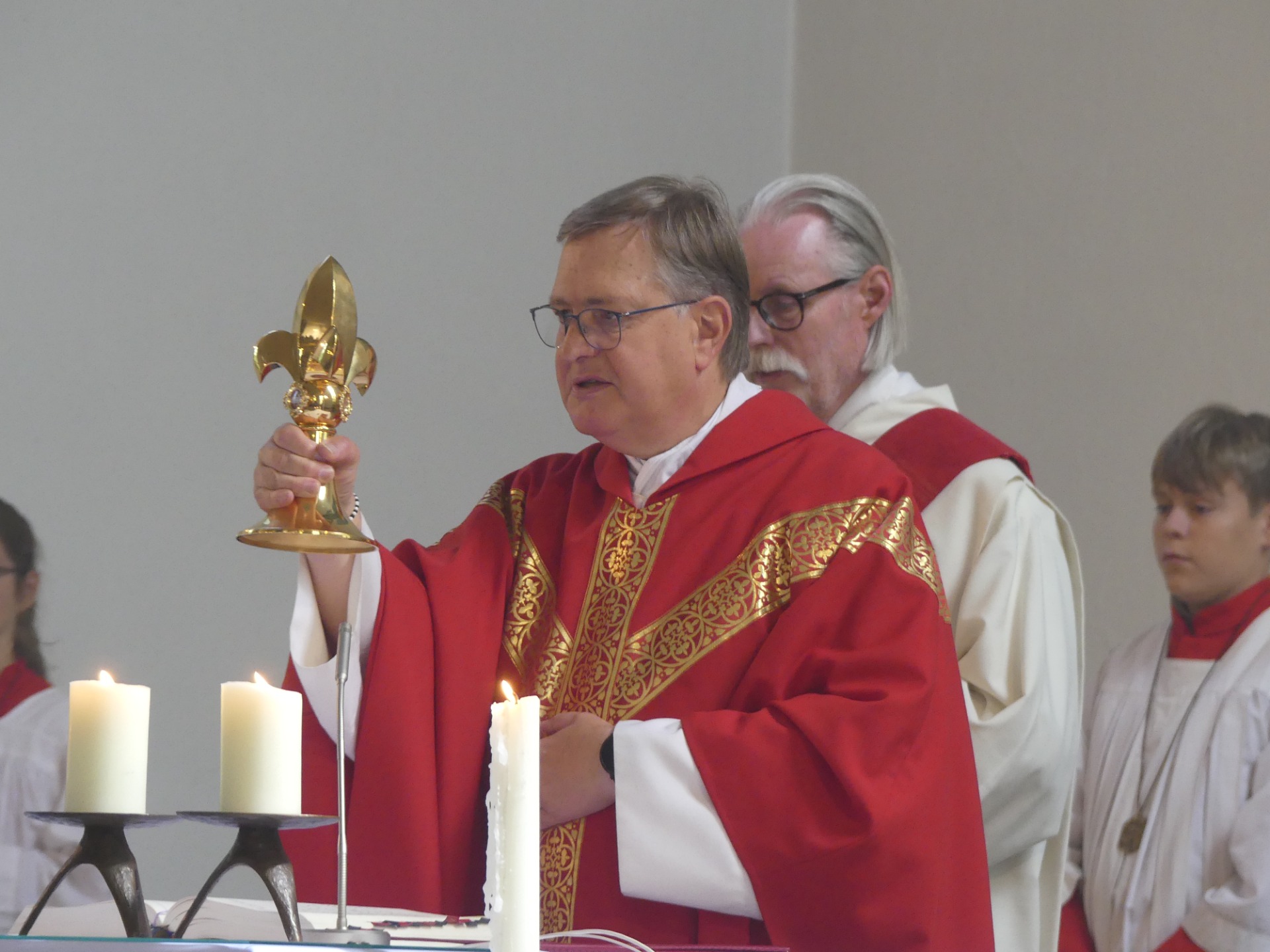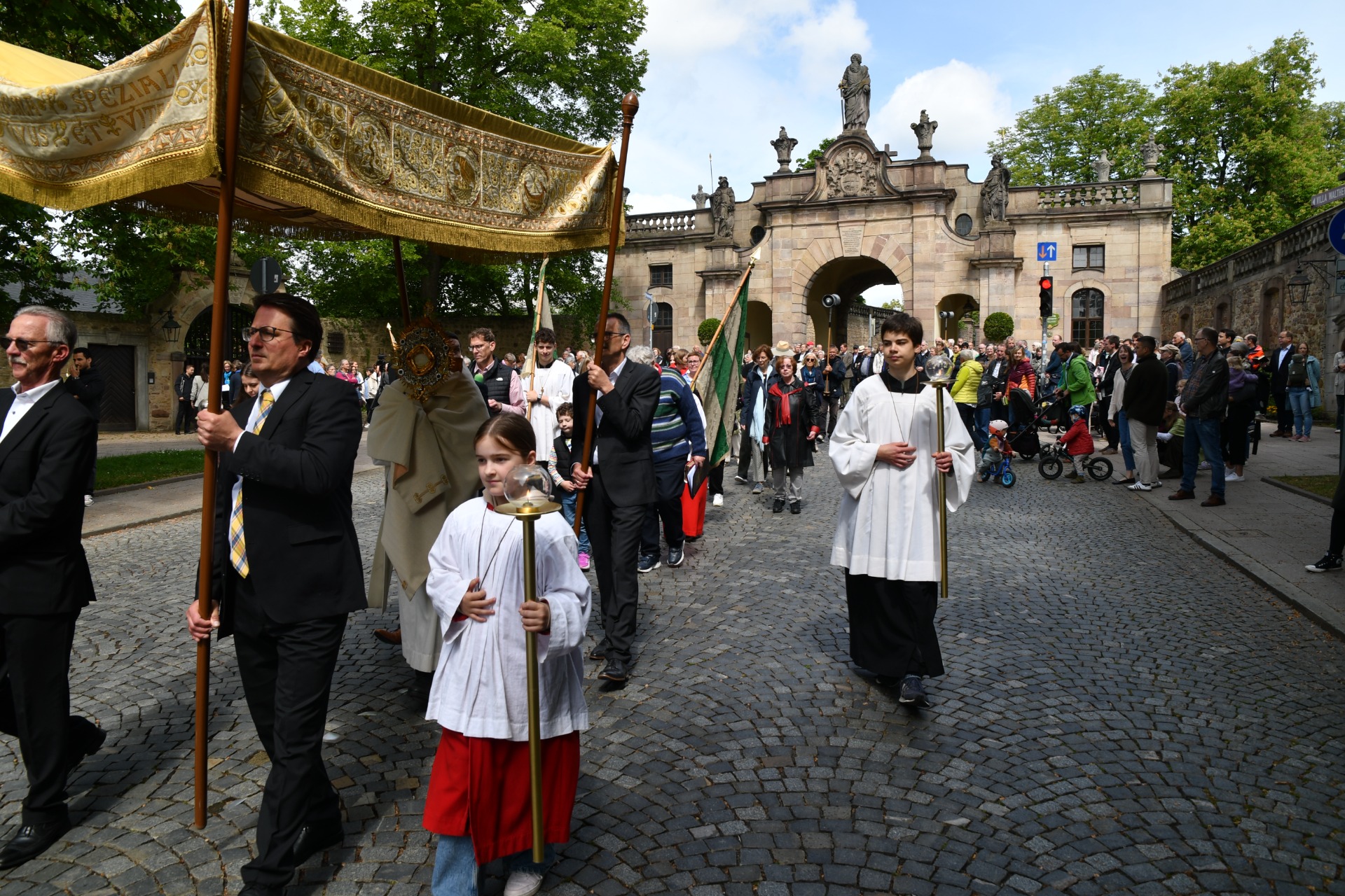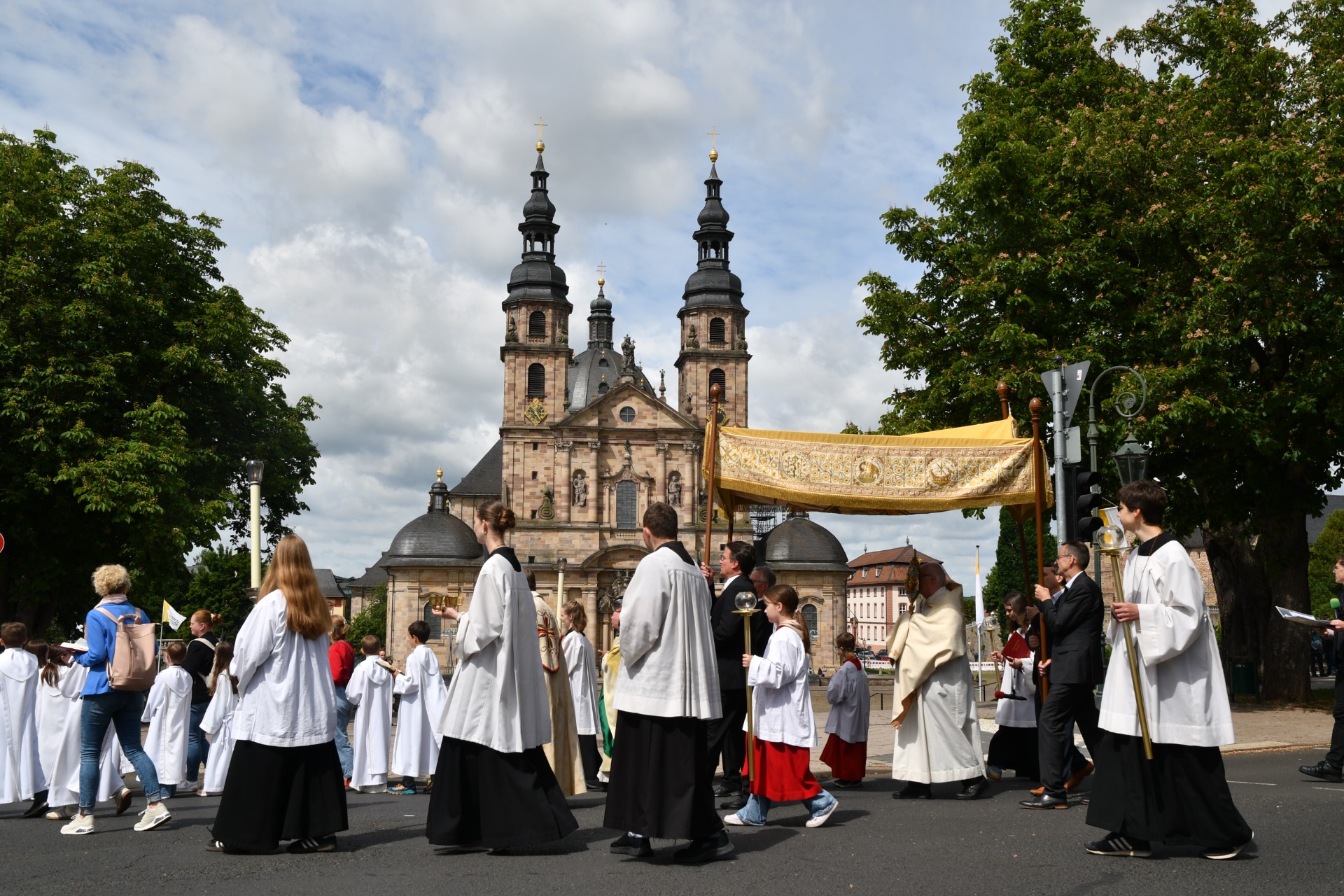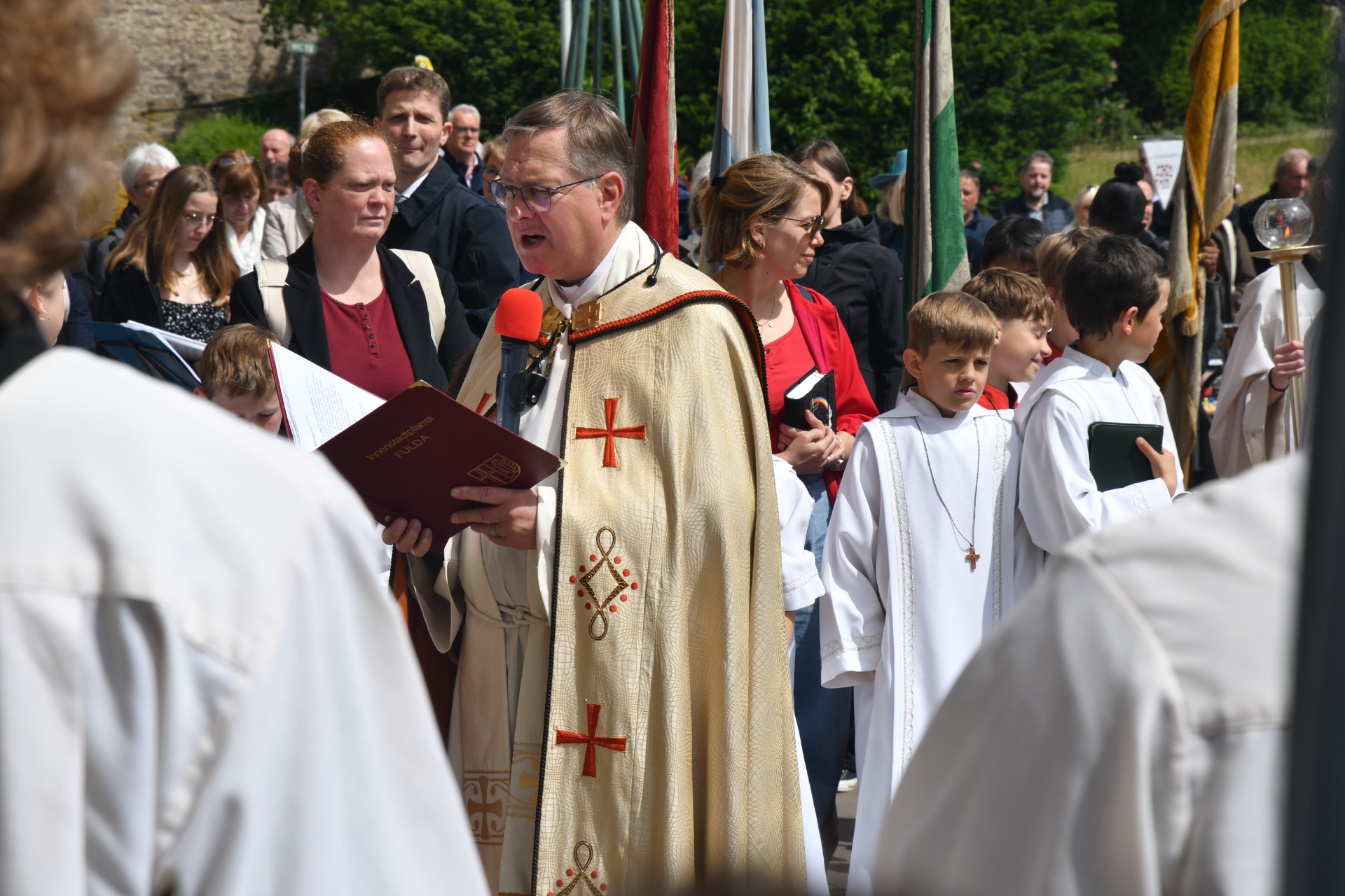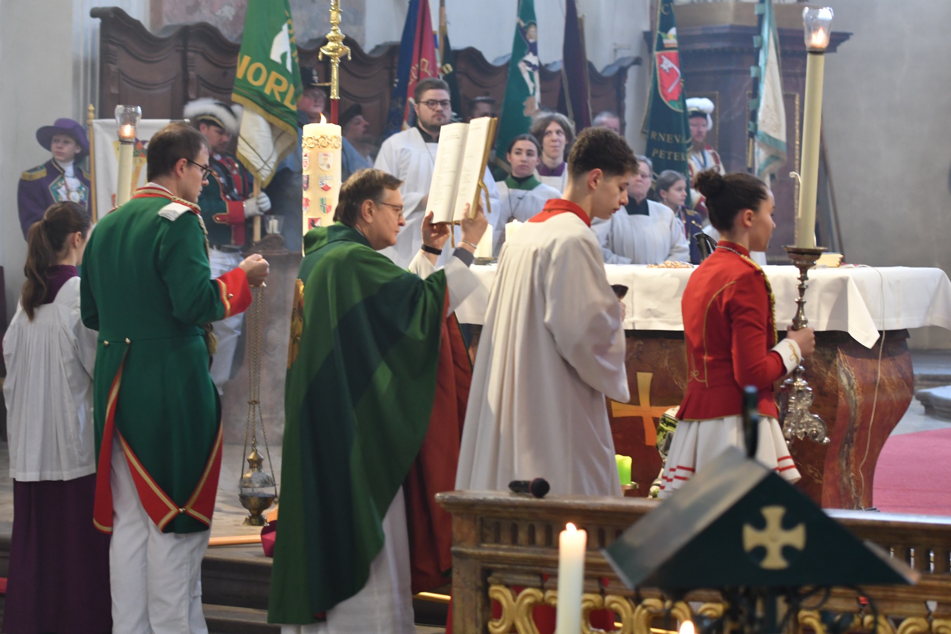 Gottesdienst mit Stadtpfarrer Stefan Buß. Ihm assistierten der indische Priester Suresh Jesudoss und Diakon Rudi Bohl. Musikalisch wurde der Gottesdienst und die Prozession vom Stadtpfarrchor, dem Kinder- und Jugendchor, der Bläsergruppe und dem Musikverein Niesig gestaltet. Nach der Prozession gab es ein frohes Miteiannder am Pfarrzentrum am Dom.