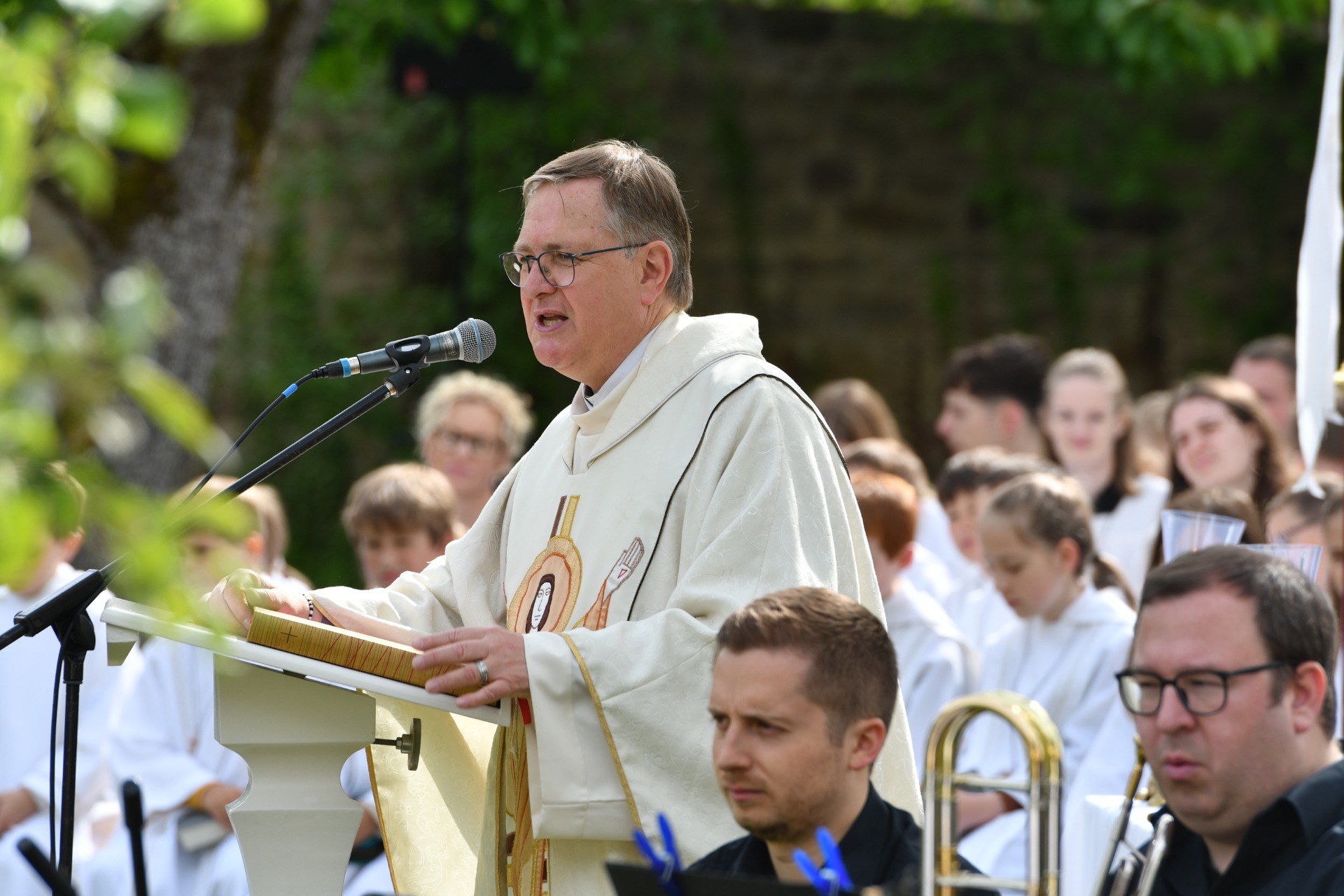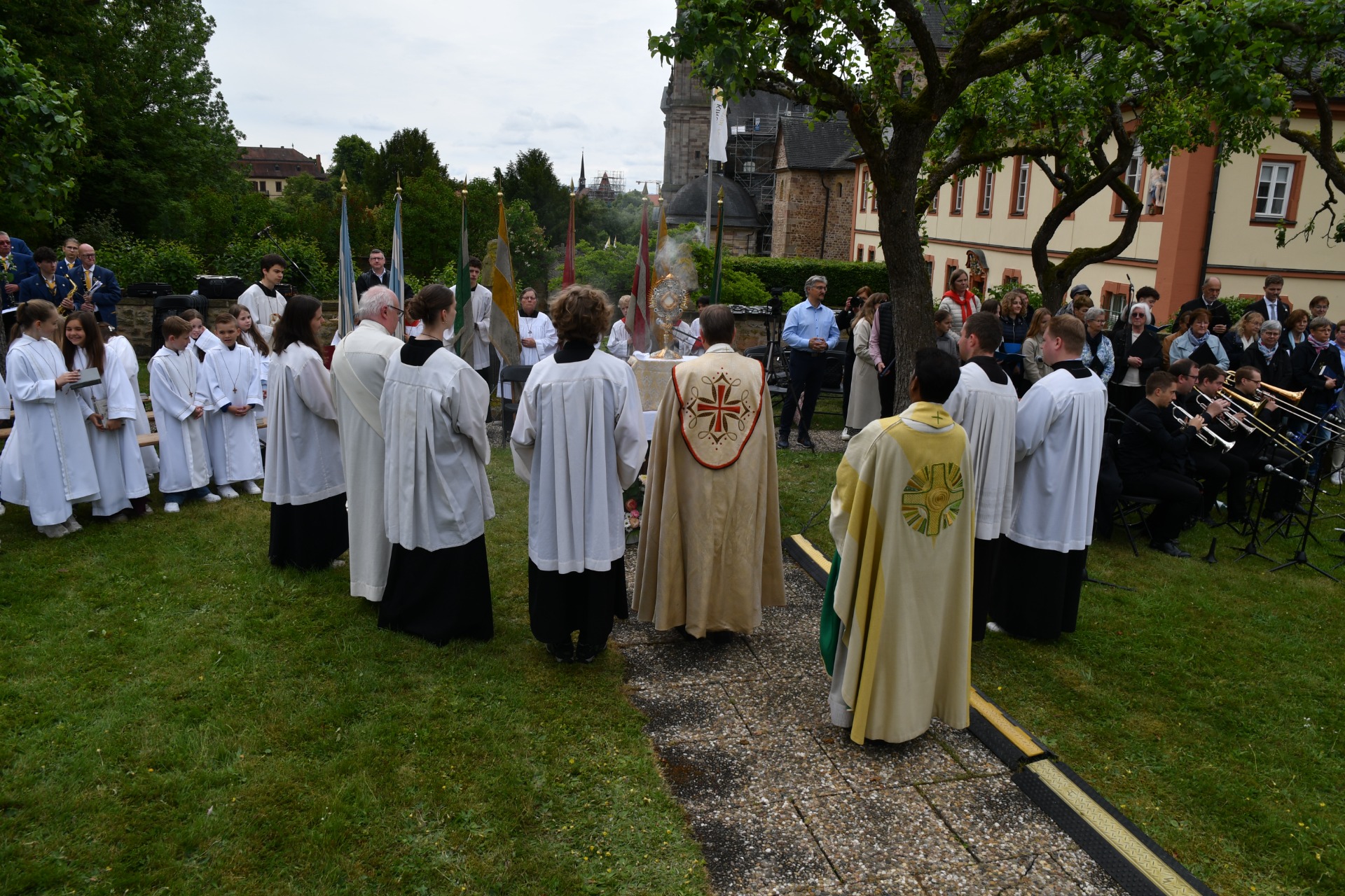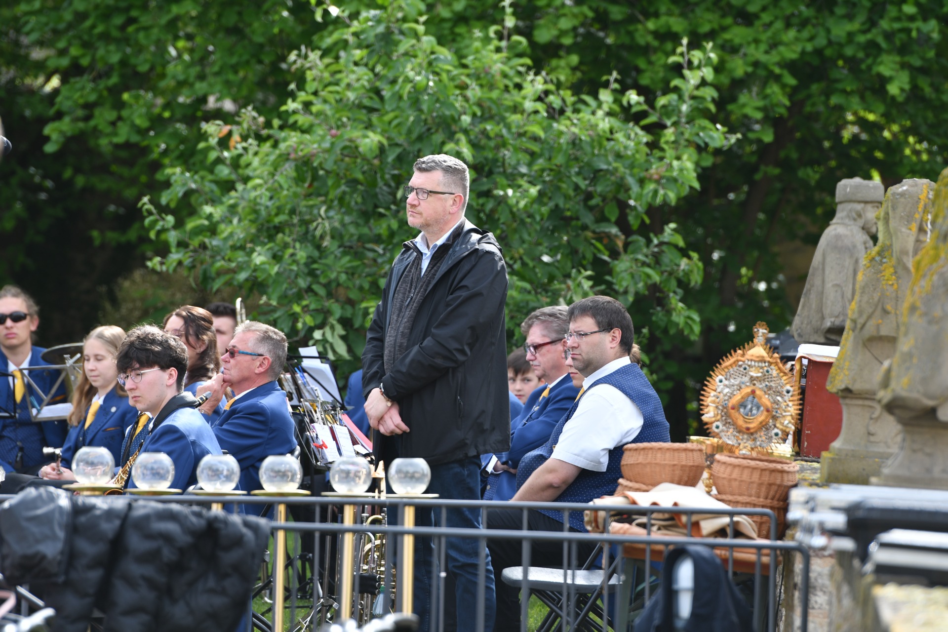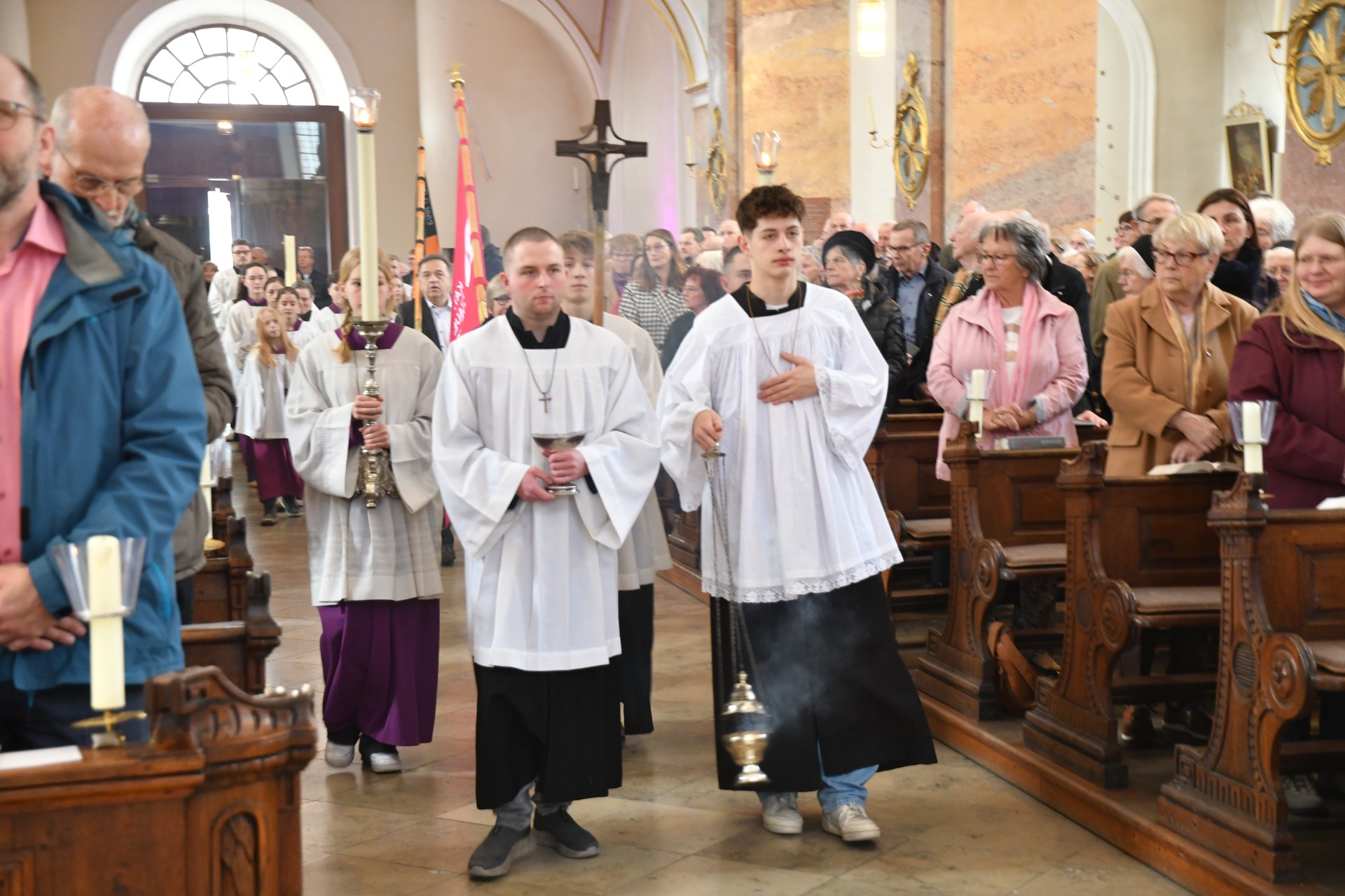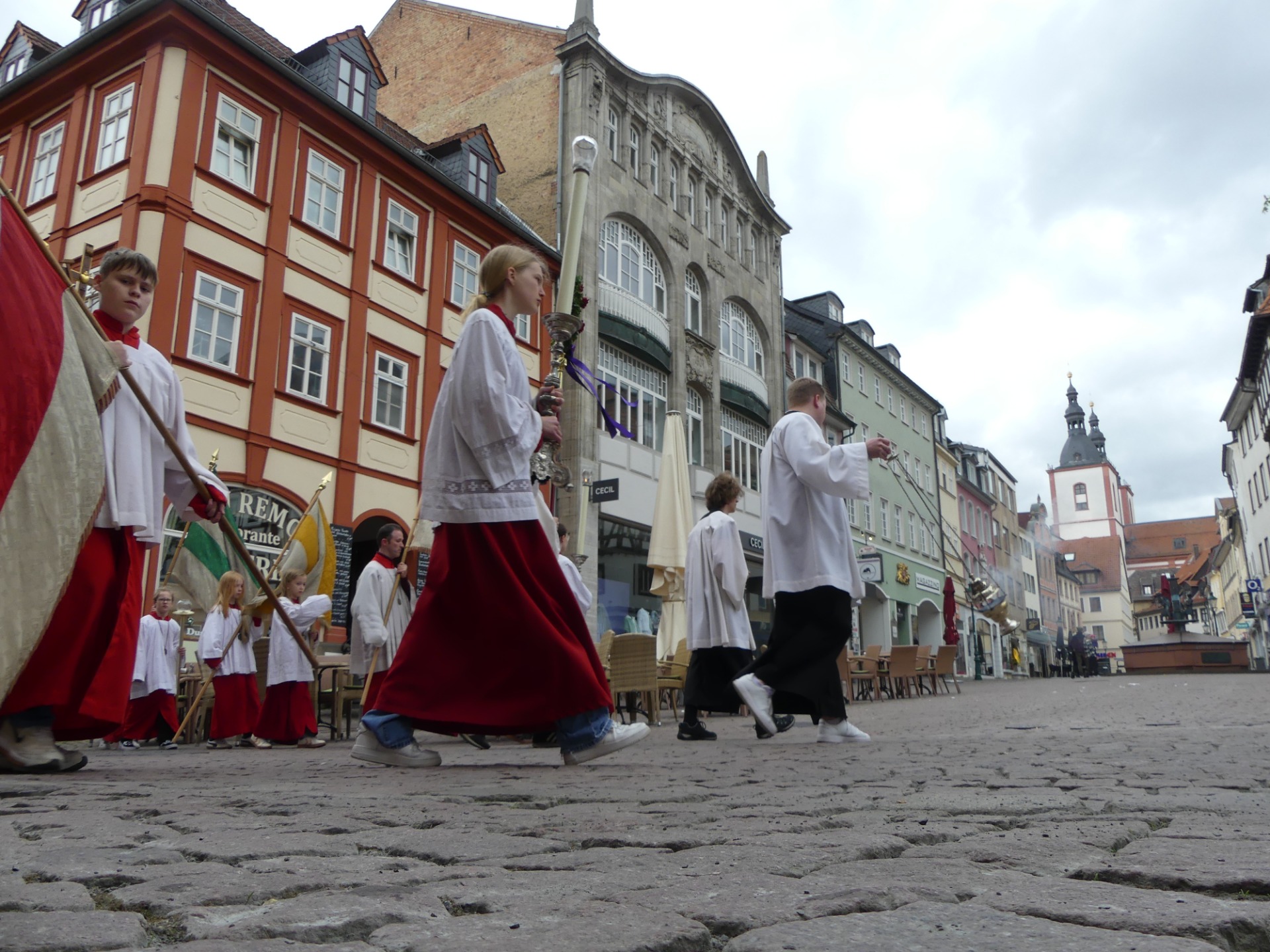 Gottesdienst mit Stadtpfarrer Stefan Buß. Ihm assistierten der indische Priester Suresh Jesudoss und Diakon Rudi Bohl. Musikalisch wurde der Gottesdienst und die Prozession vom Stadtpfarrchor, dem Kinder- und Jugendchor, der Bläsergruppe und dem Musikverein Niesig gestaltet. Nach der Prozession gab es ein frohes Miteiannder am Pfarrzentrum am Dom.