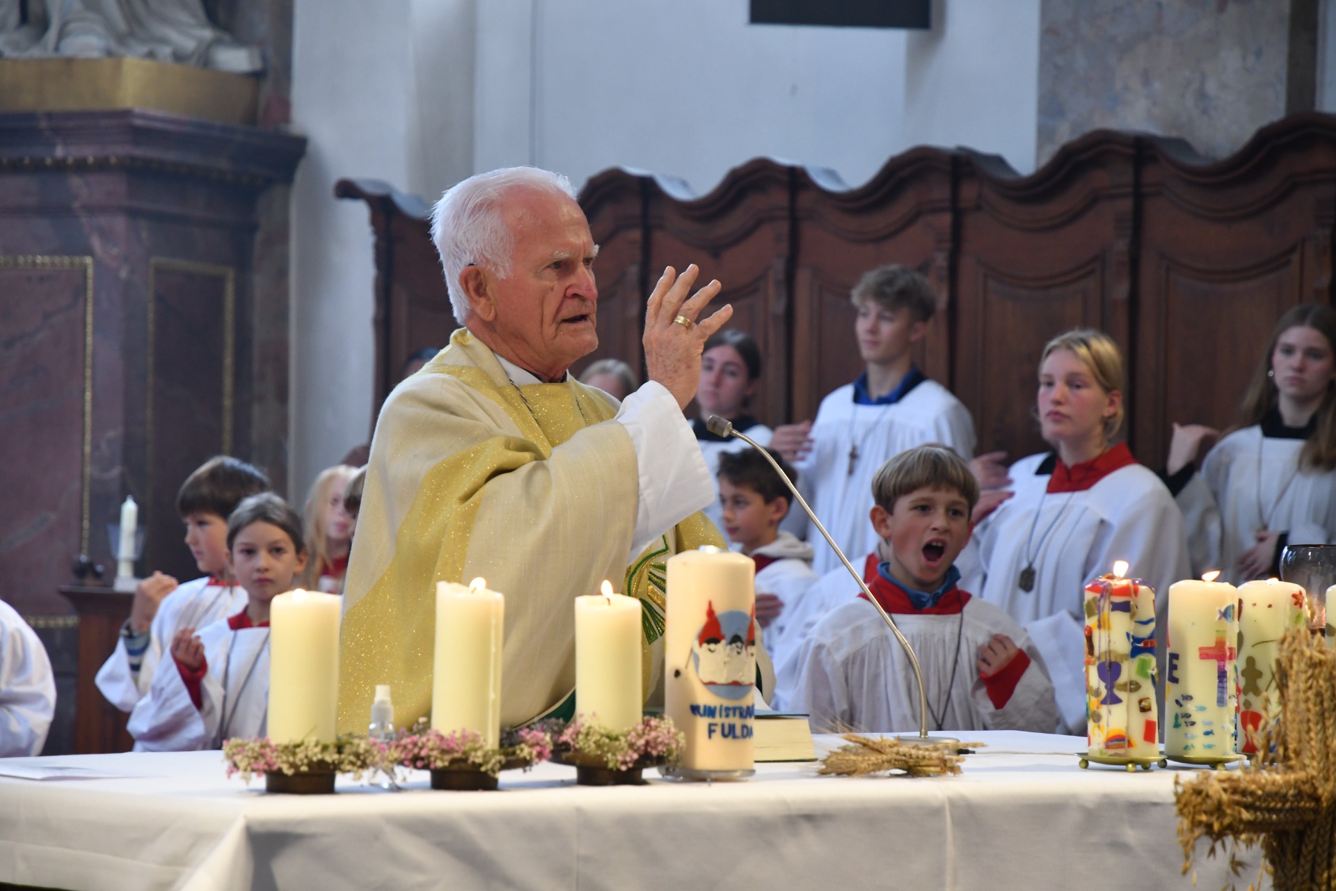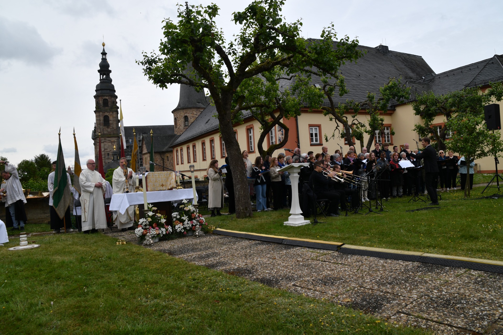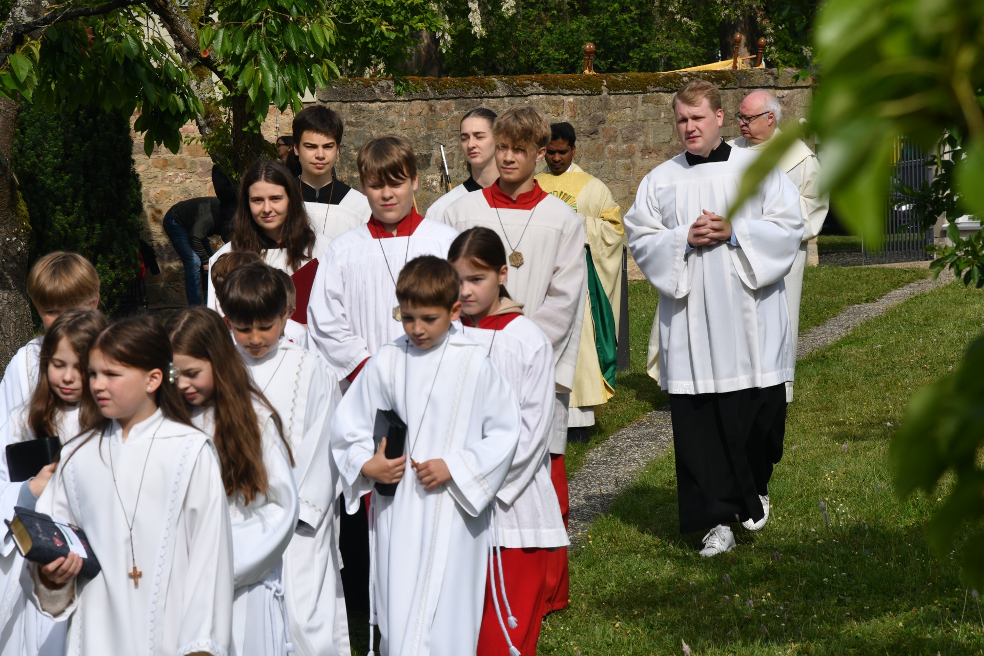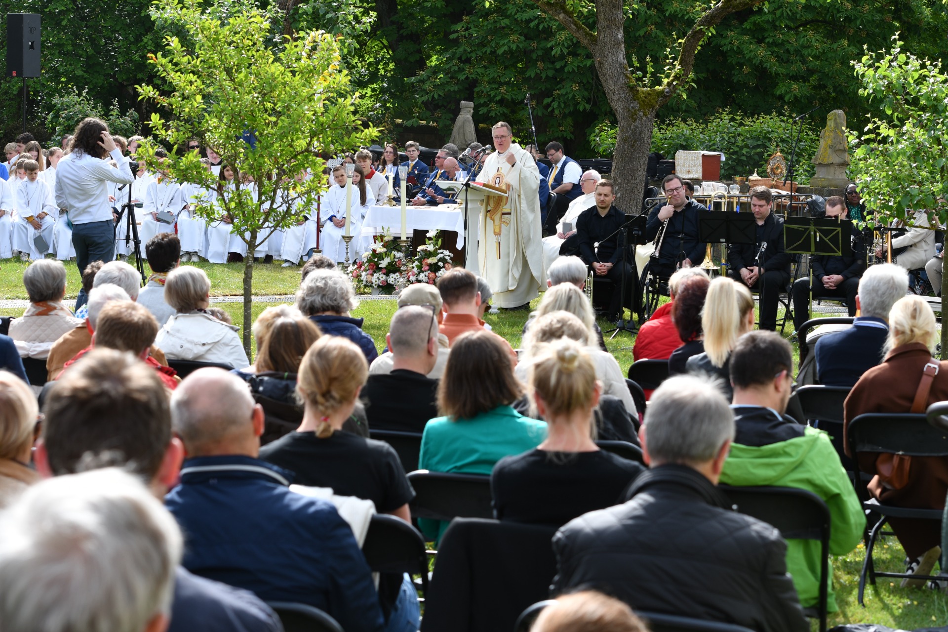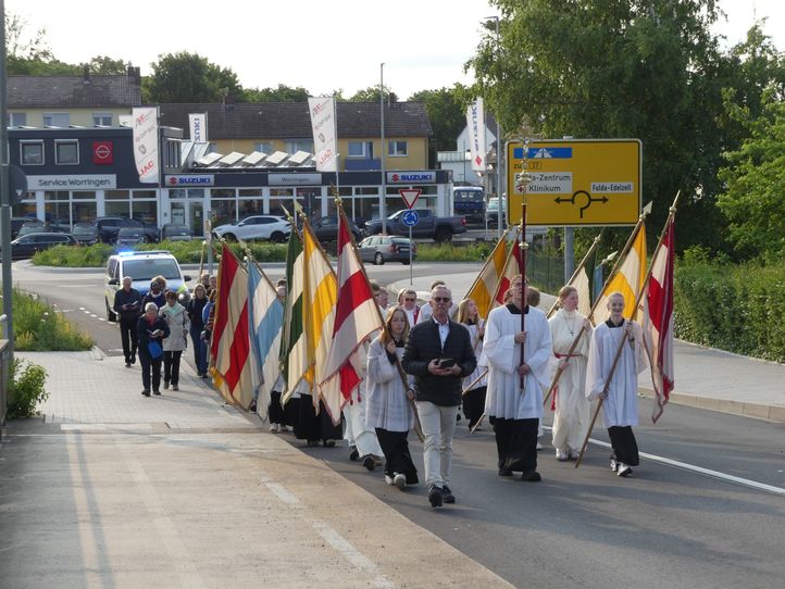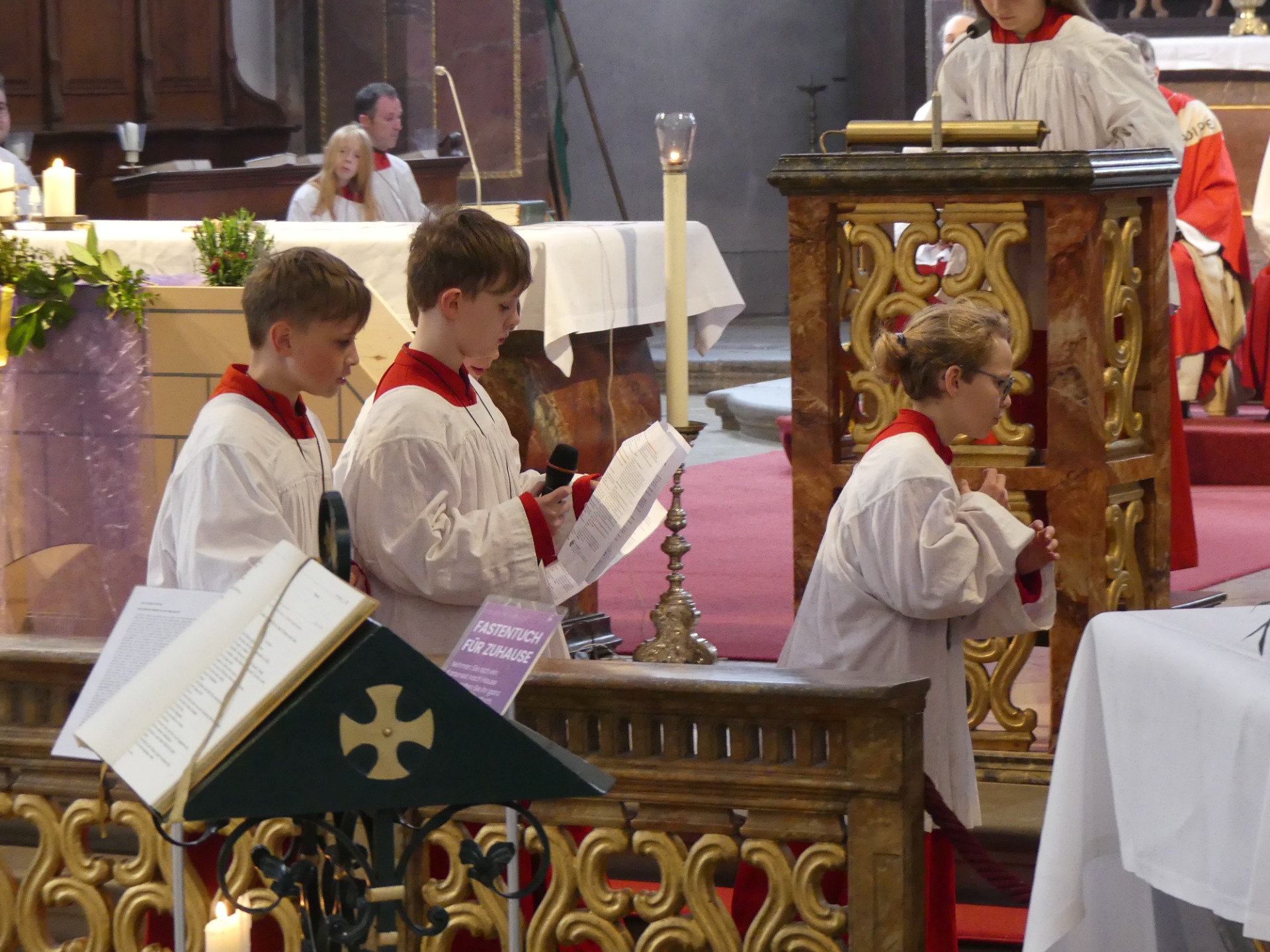 Gottesdienst mit Stadtpfarrer Stefan Buß. Ihm assistierten der indische Priester Suresh Jesudoss und Diakon Rudi Bohl. Musikalisch wurde der Gottesdienst und die Prozession vom Stadtpfarrchor, dem Kinder- und Jugendchor, der Bläsergruppe und dem Musikverein Niesig gestaltet. Nach der Prozession gab es ein frohes Miteiannder am Pfarrzentrum am Dom.