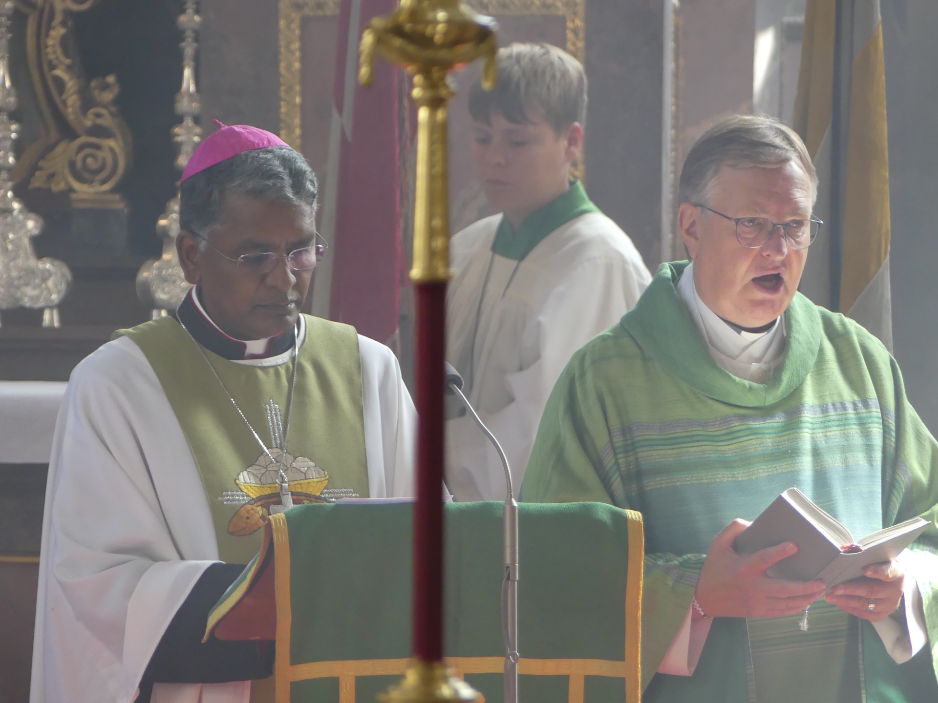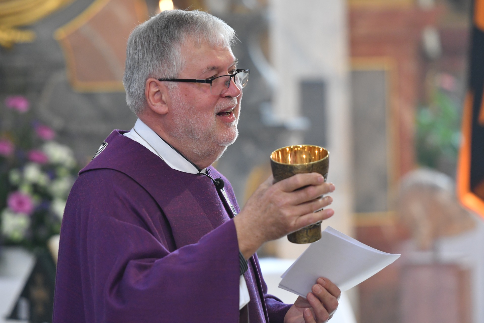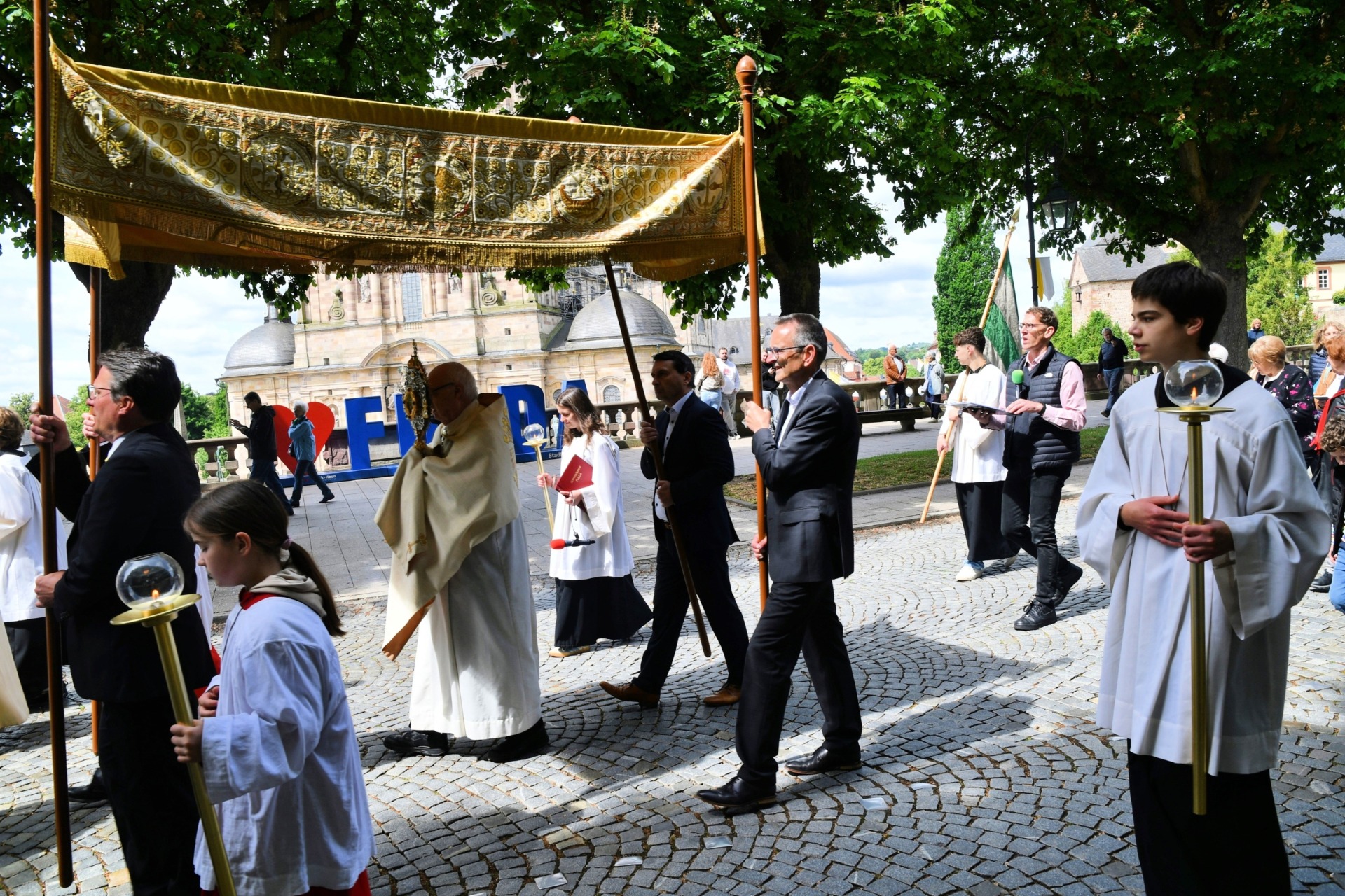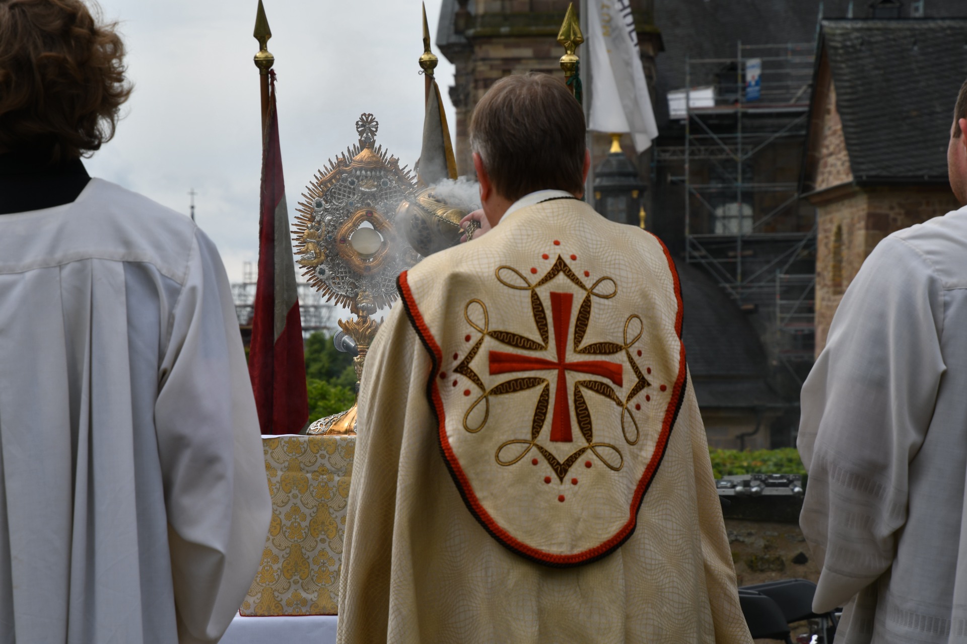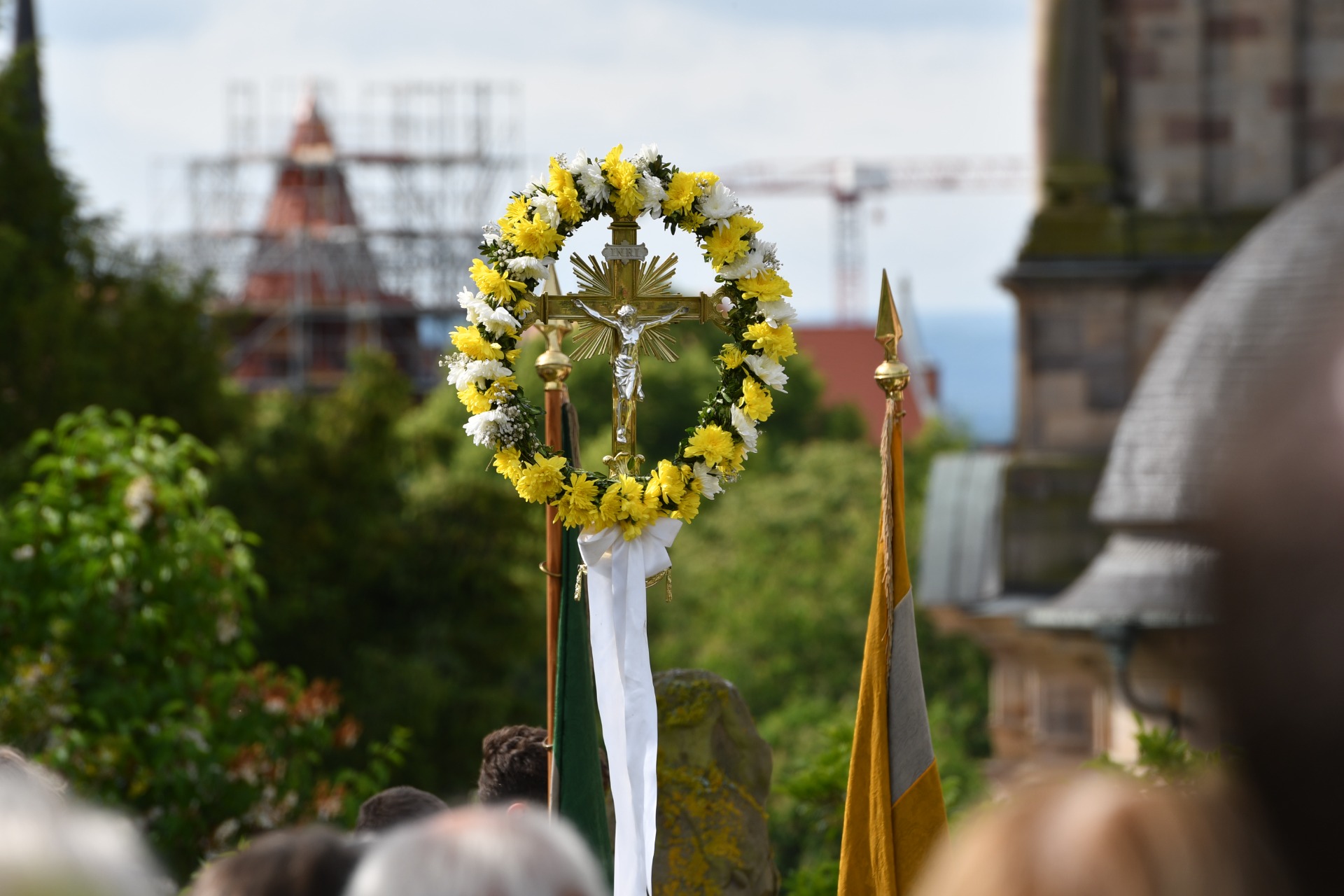 Gottesdienst mit Stadtpfarrer Stefan Buß. Ihm assistierten der indische Priester Suresh Jesudoss und Diakon Rudi Bohl. Musikalisch wurde der Gottesdienst und die Prozession vom Stadtpfarrchor, dem Kinder- und Jugendchor, der Bläsergruppe und dem Musikverein Niesig gestaltet. Nach der Prozession gab es ein frohes Miteiannder am Pfarrzentrum am Dom.