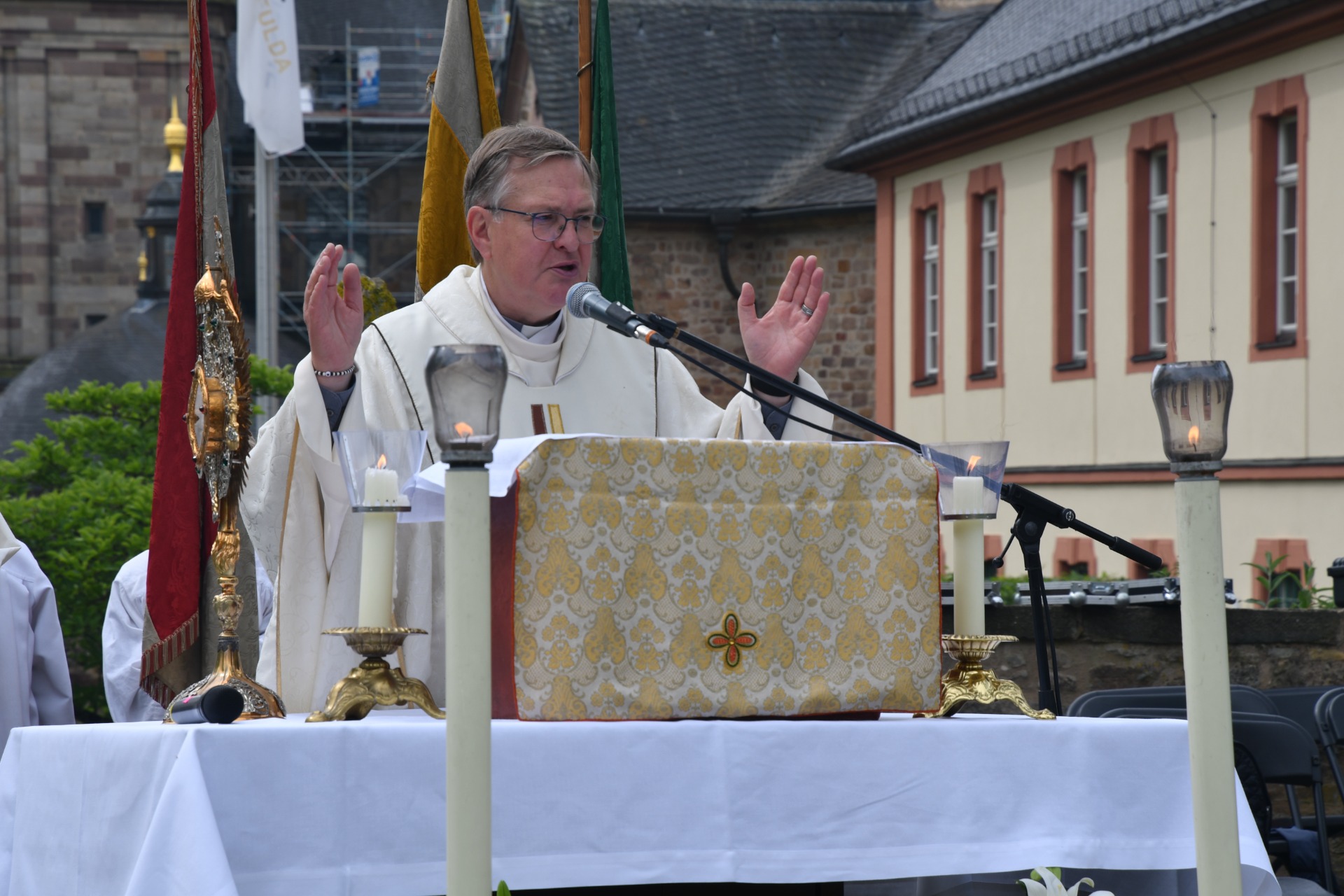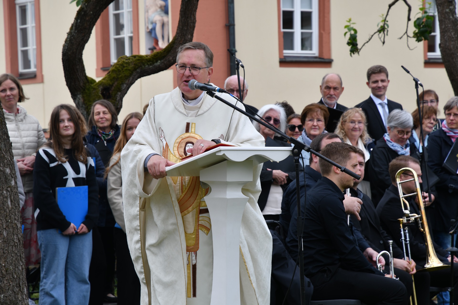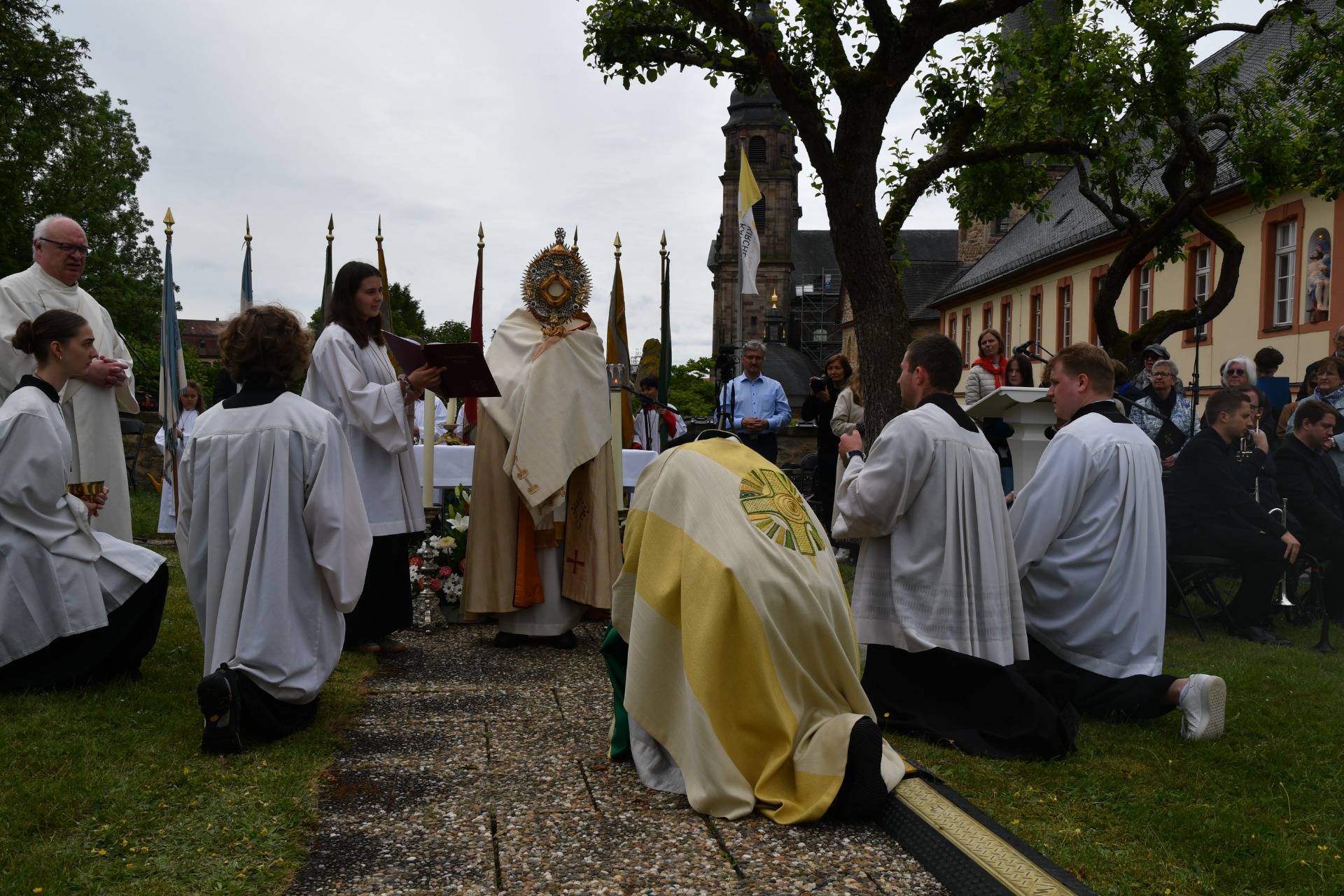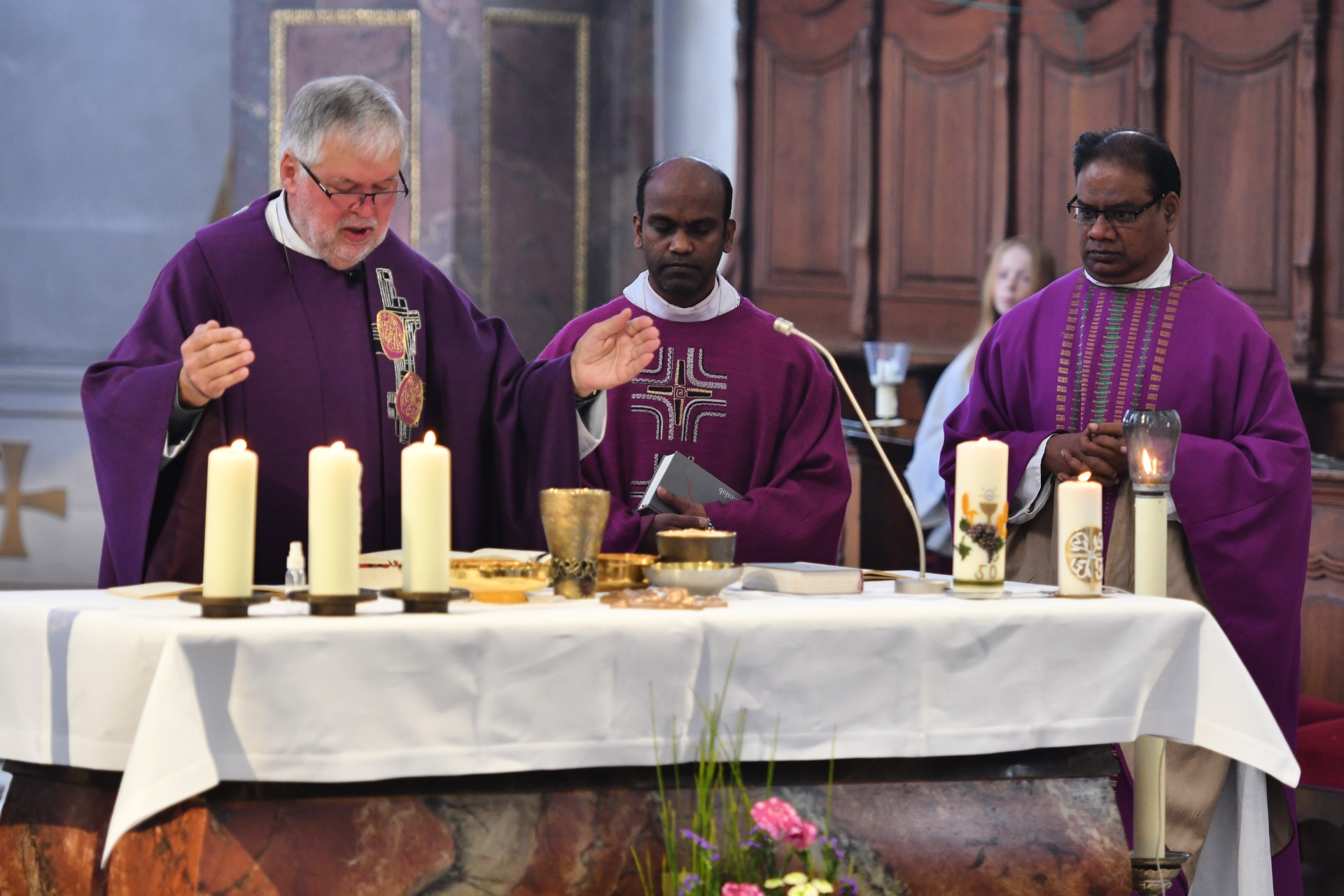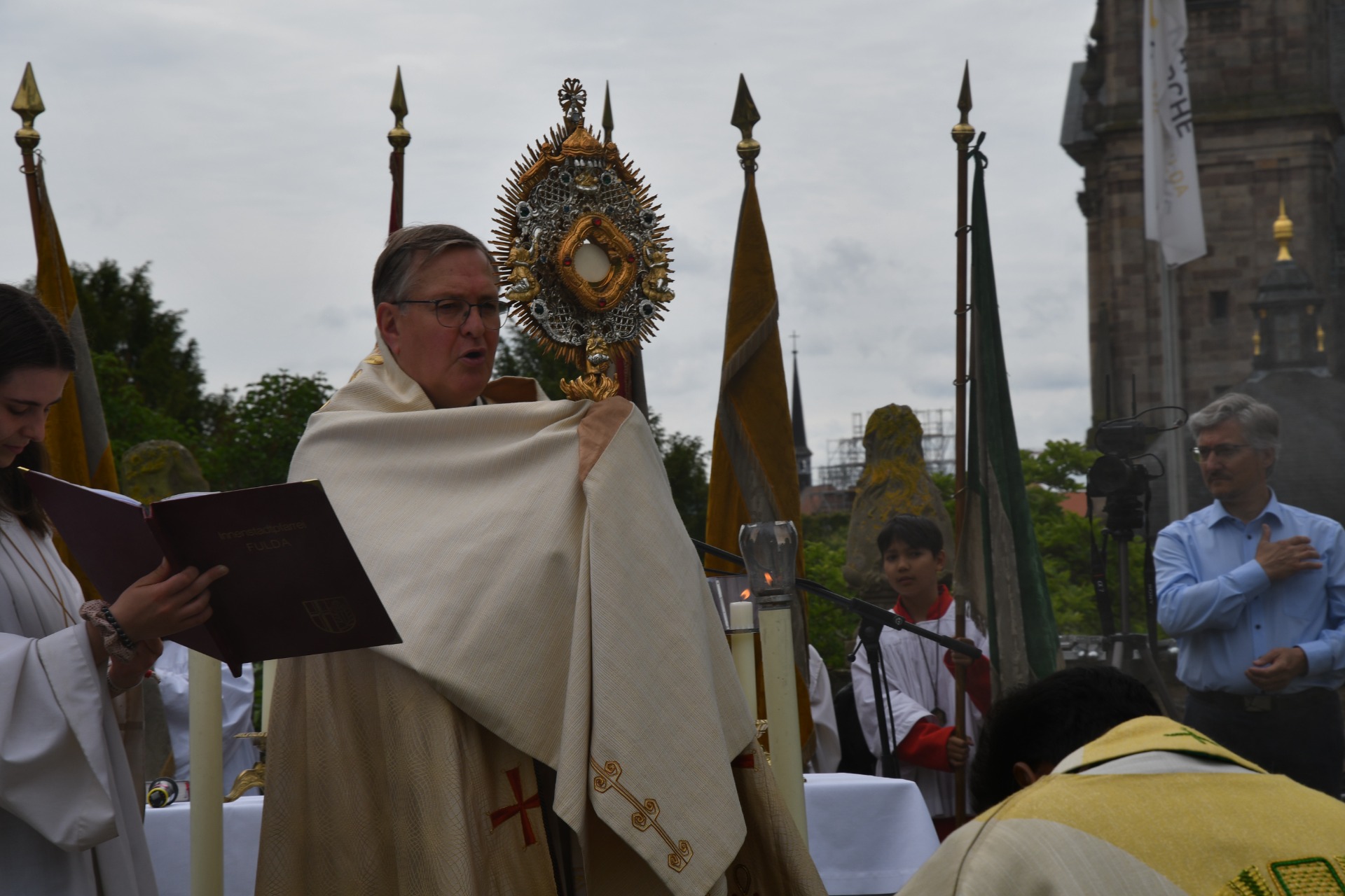 Gottesdienst mit Stadtpfarrer Stefan Buß. Ihm assistierten der indische Priester Suresh Jesudoss und Diakon Rudi Bohl. Musikalisch wurde der Gottesdienst und die Prozession vom Stadtpfarrchor, dem Kinder- und Jugendchor, der Bläsergruppe und dem Musikverein Niesig gestaltet. Nach der Prozession gab es ein frohes Miteiannder am Pfarrzentrum am Dom.