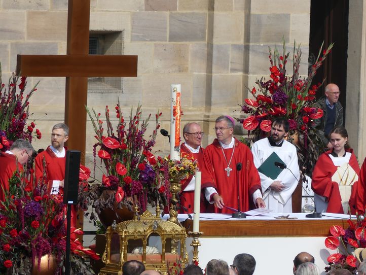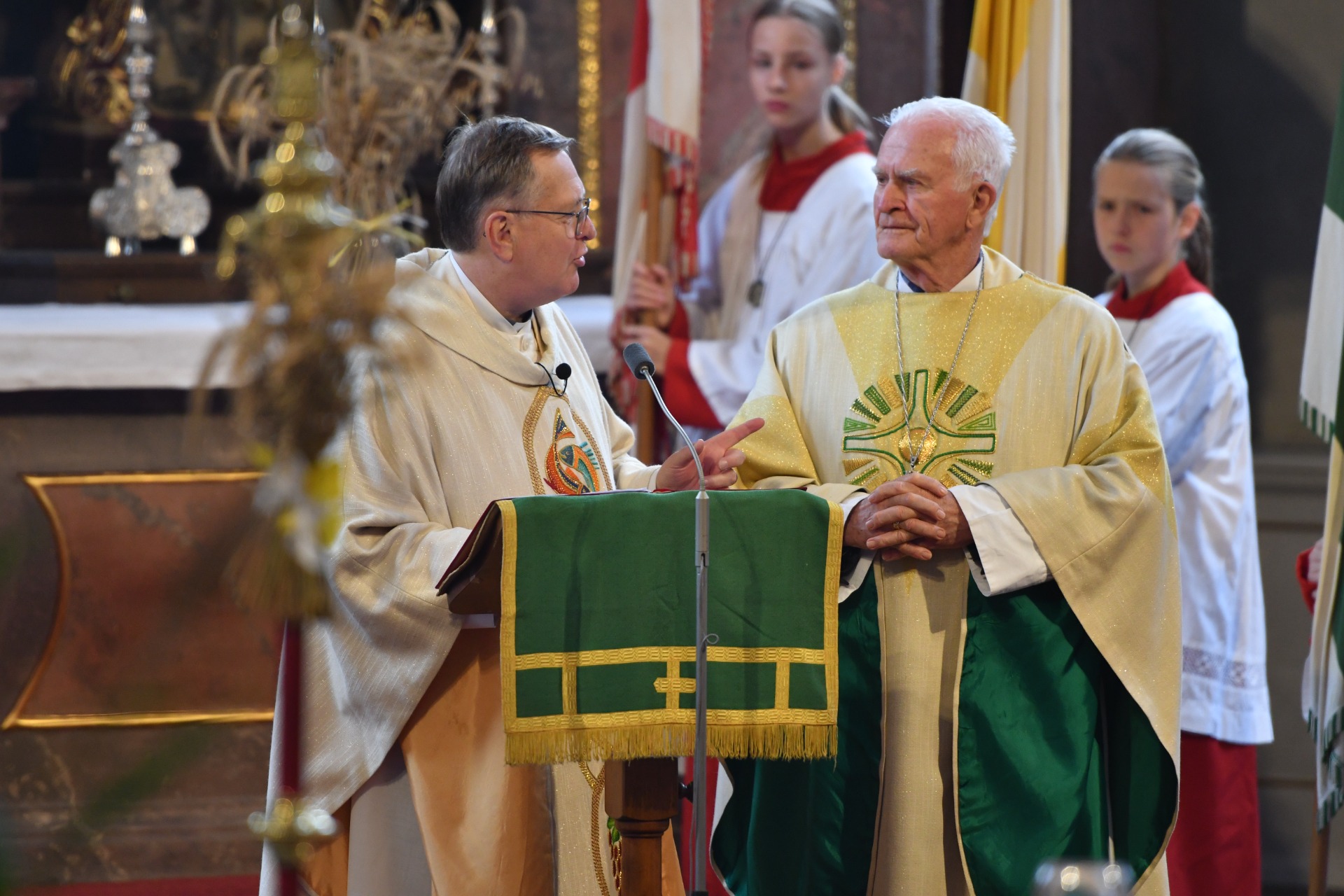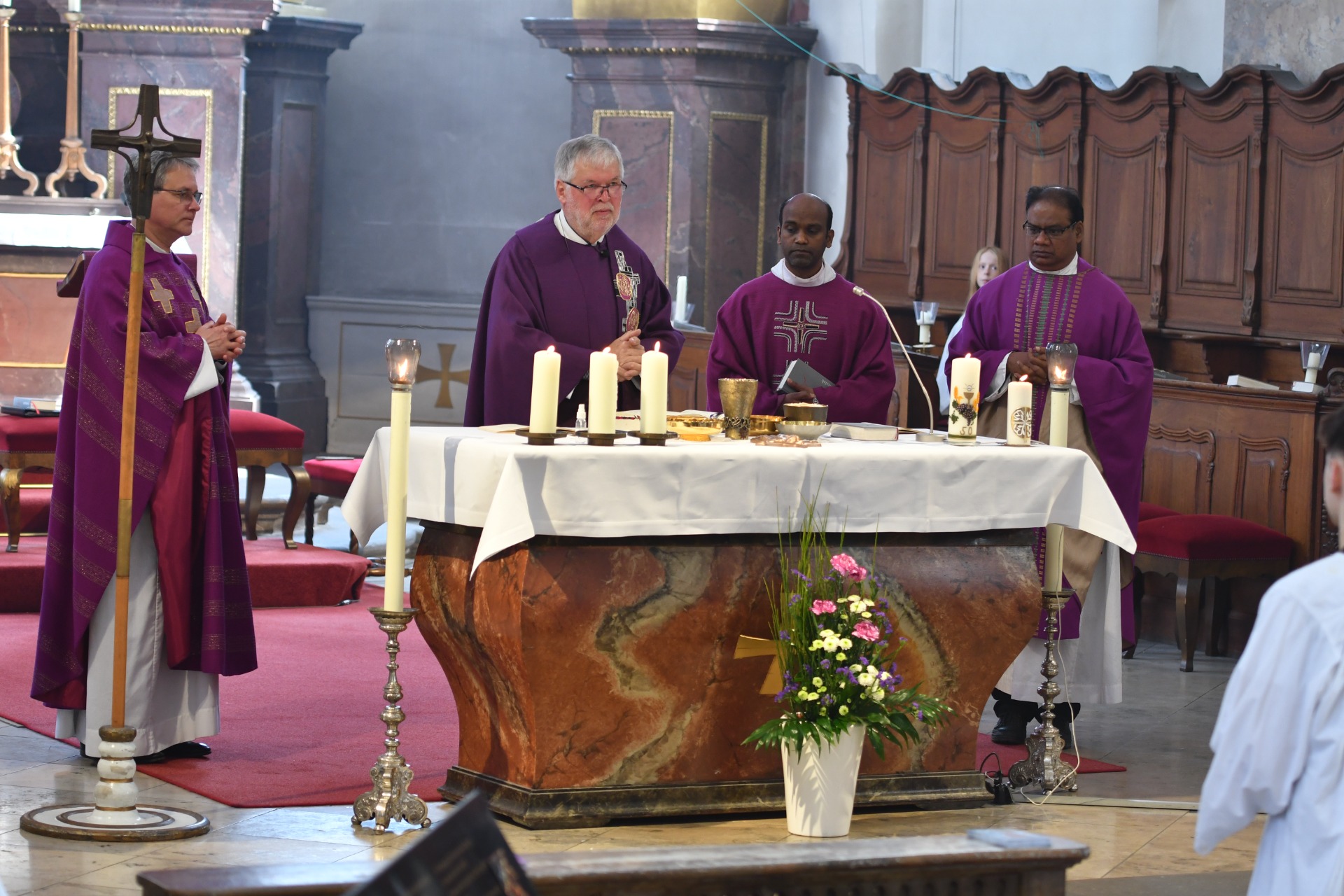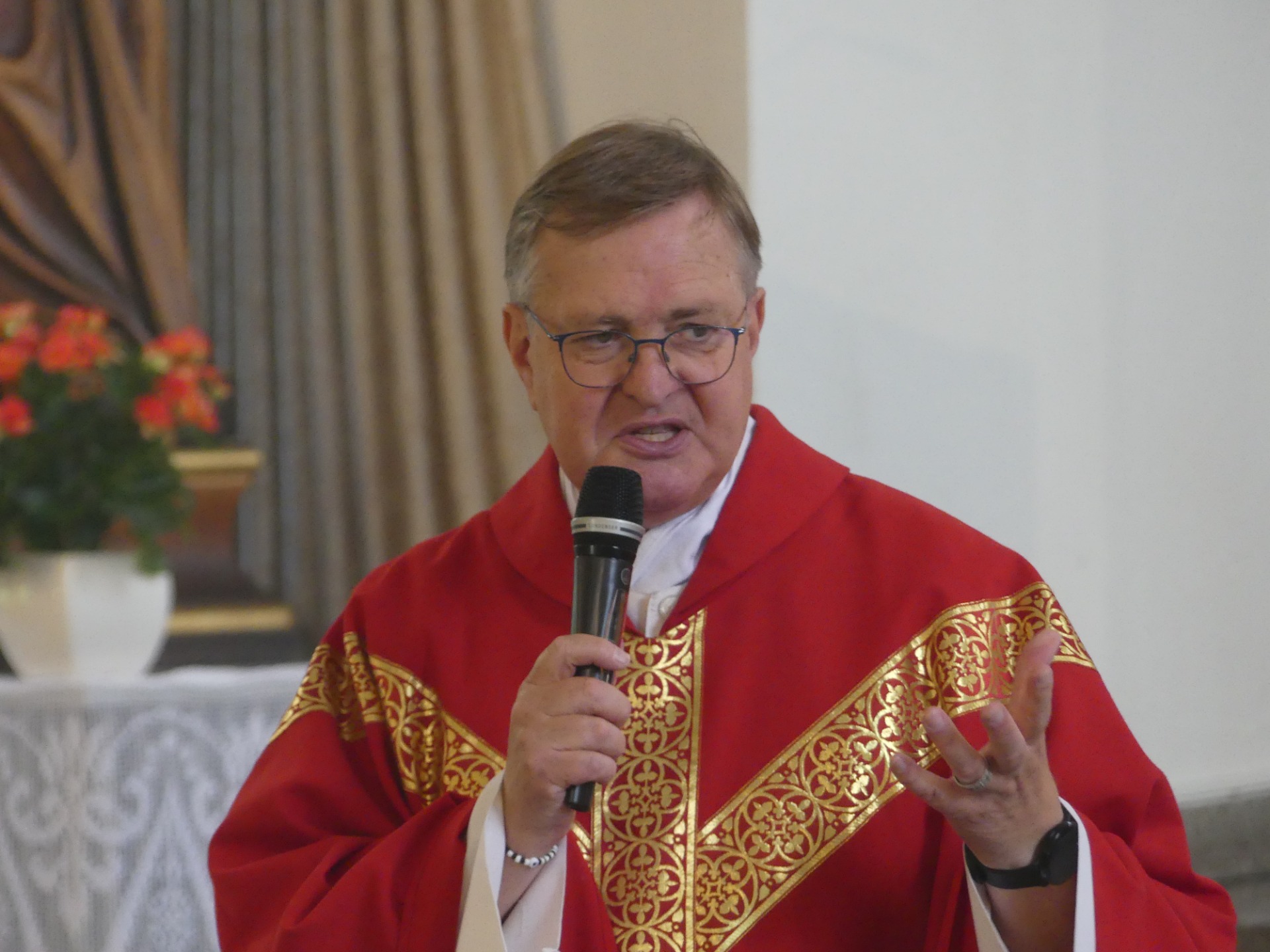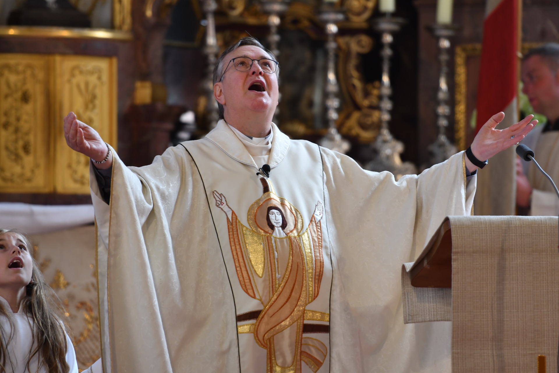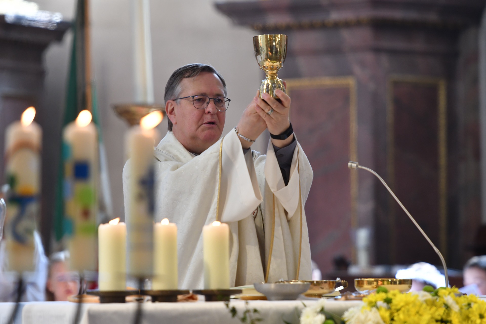 Gottesdienst mit Stadtpfarrer Stefan Buß. Ihm assistierten der indische Priester Suresh Jesudoss und Diakon Rudi Bohl. Musikalisch wurde der Gottesdienst und die Prozession vom Stadtpfarrchor, dem Kinder- und Jugendchor, der Bläsergruppe und dem Musikverein Niesig gestaltet. Nach der Prozession gab es ein frohes Miteiannder am Pfarrzentrum am Dom.