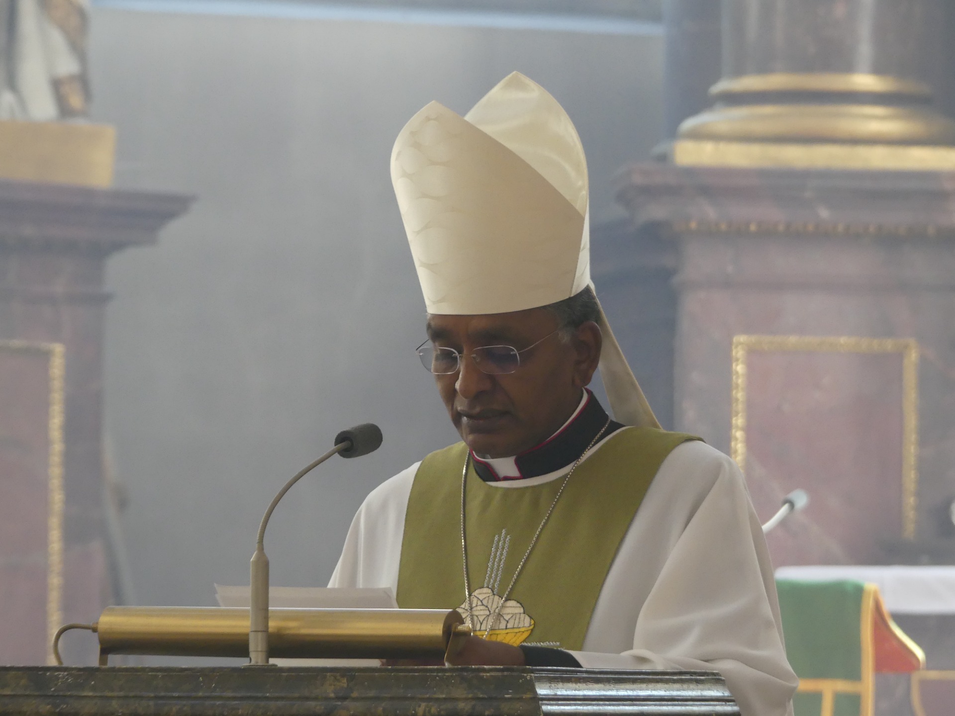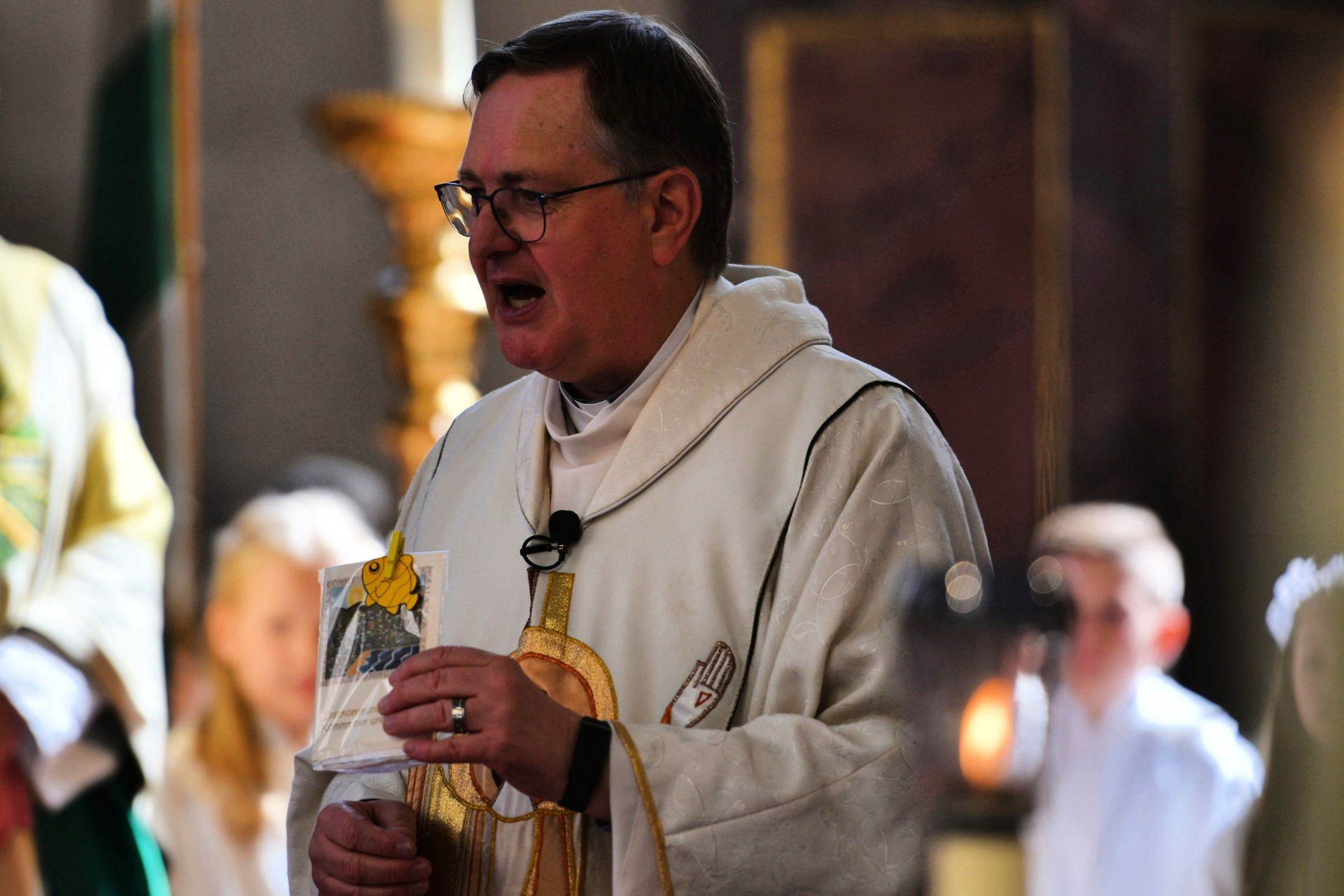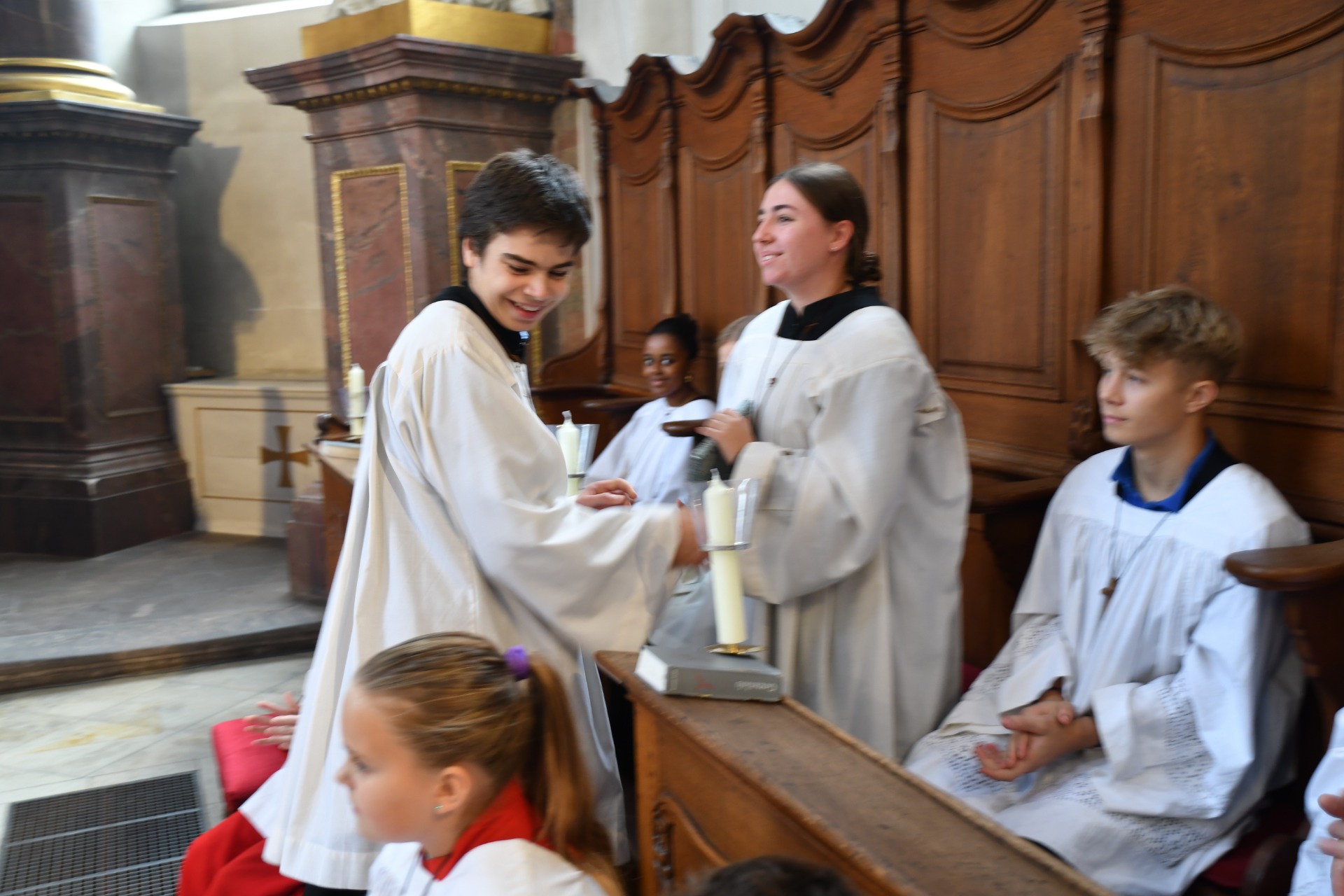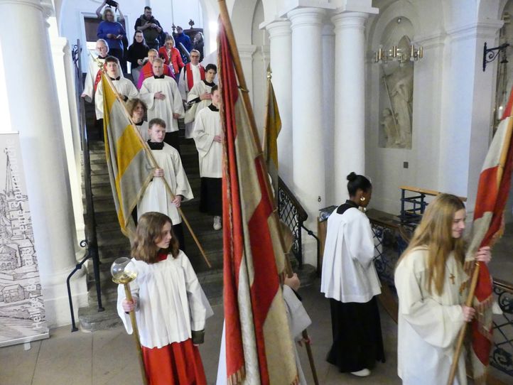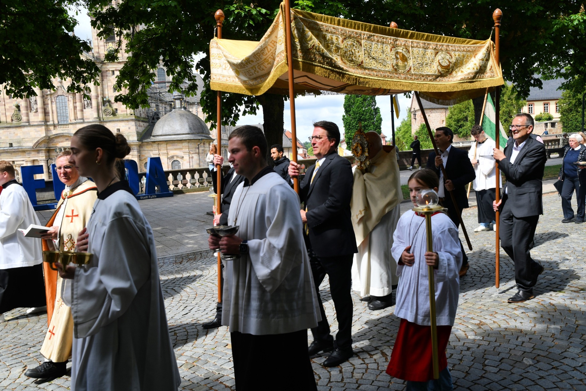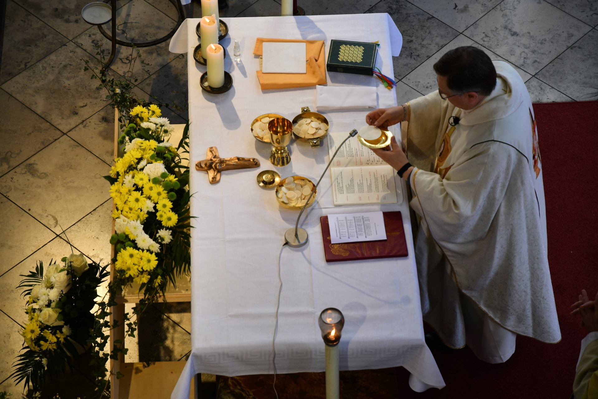 Gottesdienst mit Stadtpfarrer Stefan Buß. Ihm assistierten der indische Priester Suresh Jesudoss und Diakon Rudi Bohl. Musikalisch wurde der Gottesdienst und die Prozession vom Stadtpfarrchor, dem Kinder- und Jugendchor, der Bläsergruppe und dem Musikverein Niesig gestaltet. Nach der Prozession gab es ein frohes Miteiannder am Pfarrzentrum am Dom.