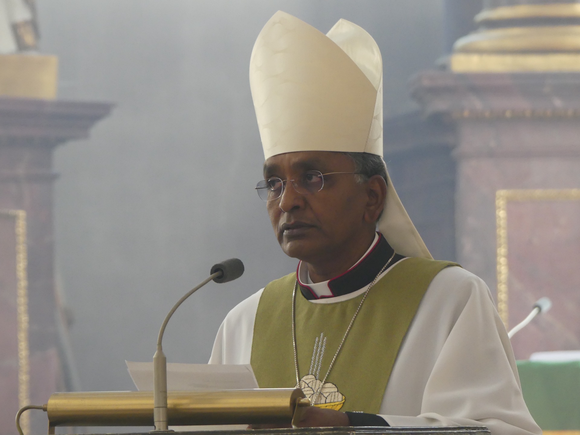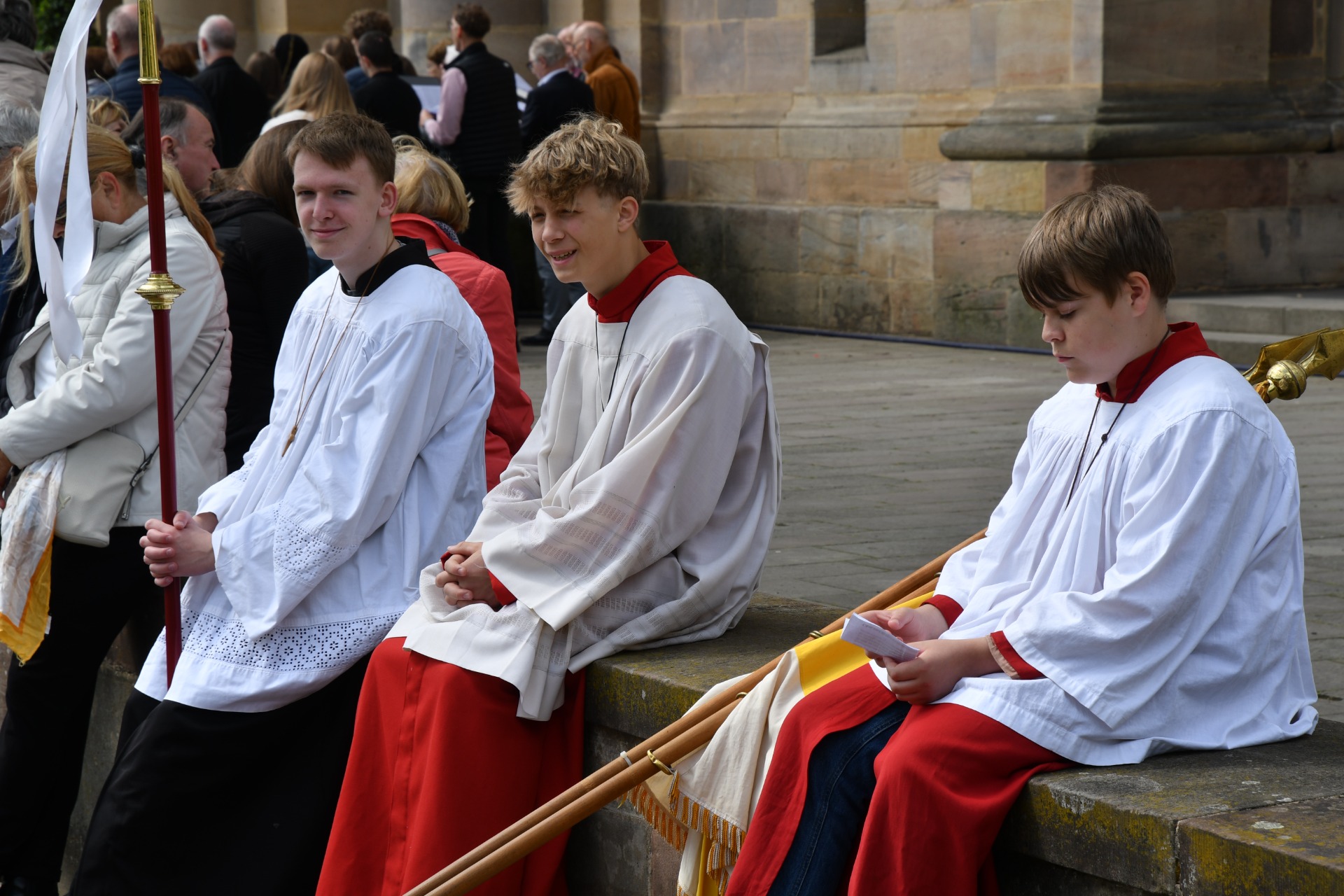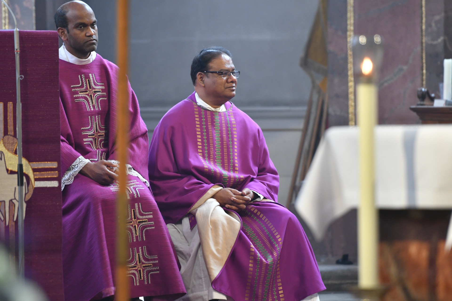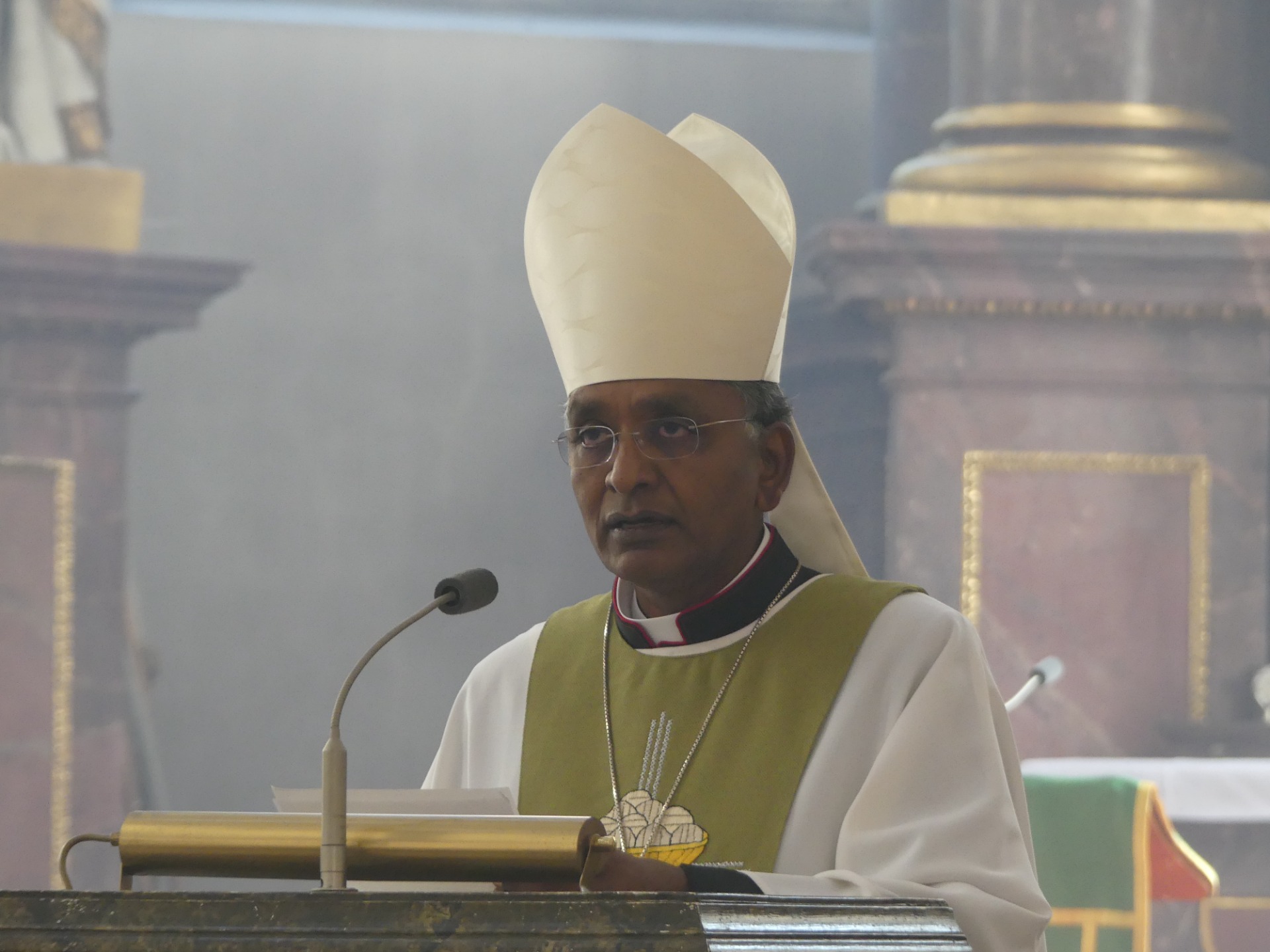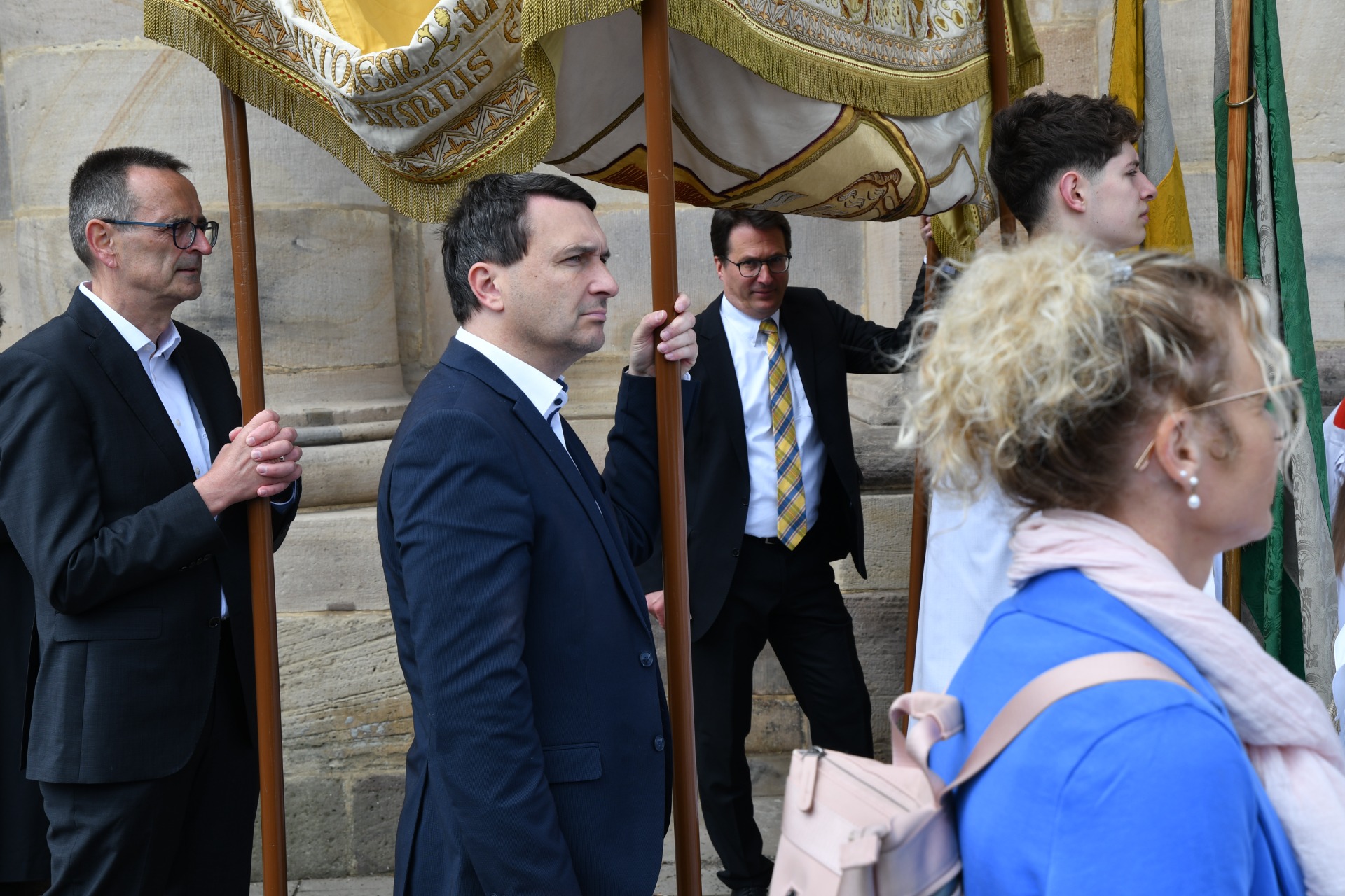 Gottesdienst mit Stadtpfarrer Stefan Buß. Ihm assistierten der indische Priester Suresh Jesudoss und Diakon Rudi Bohl. Musikalisch wurde der Gottesdienst und die Prozession vom Stadtpfarrchor, dem Kinder- und Jugendchor, der Bläsergruppe und dem Musikverein Niesig gestaltet. Nach der Prozession gab es ein frohes Miteiannder am Pfarrzentrum am Dom.