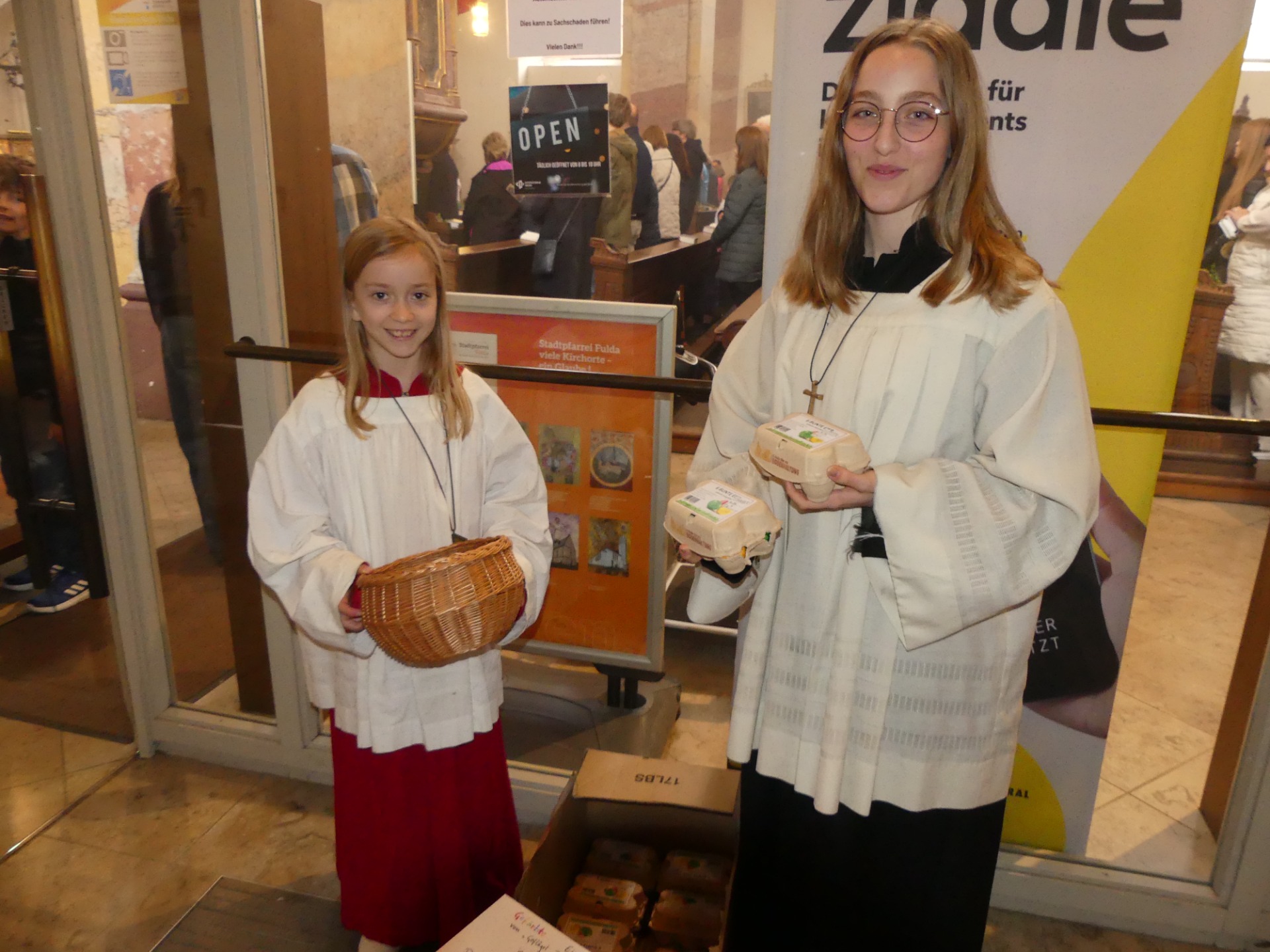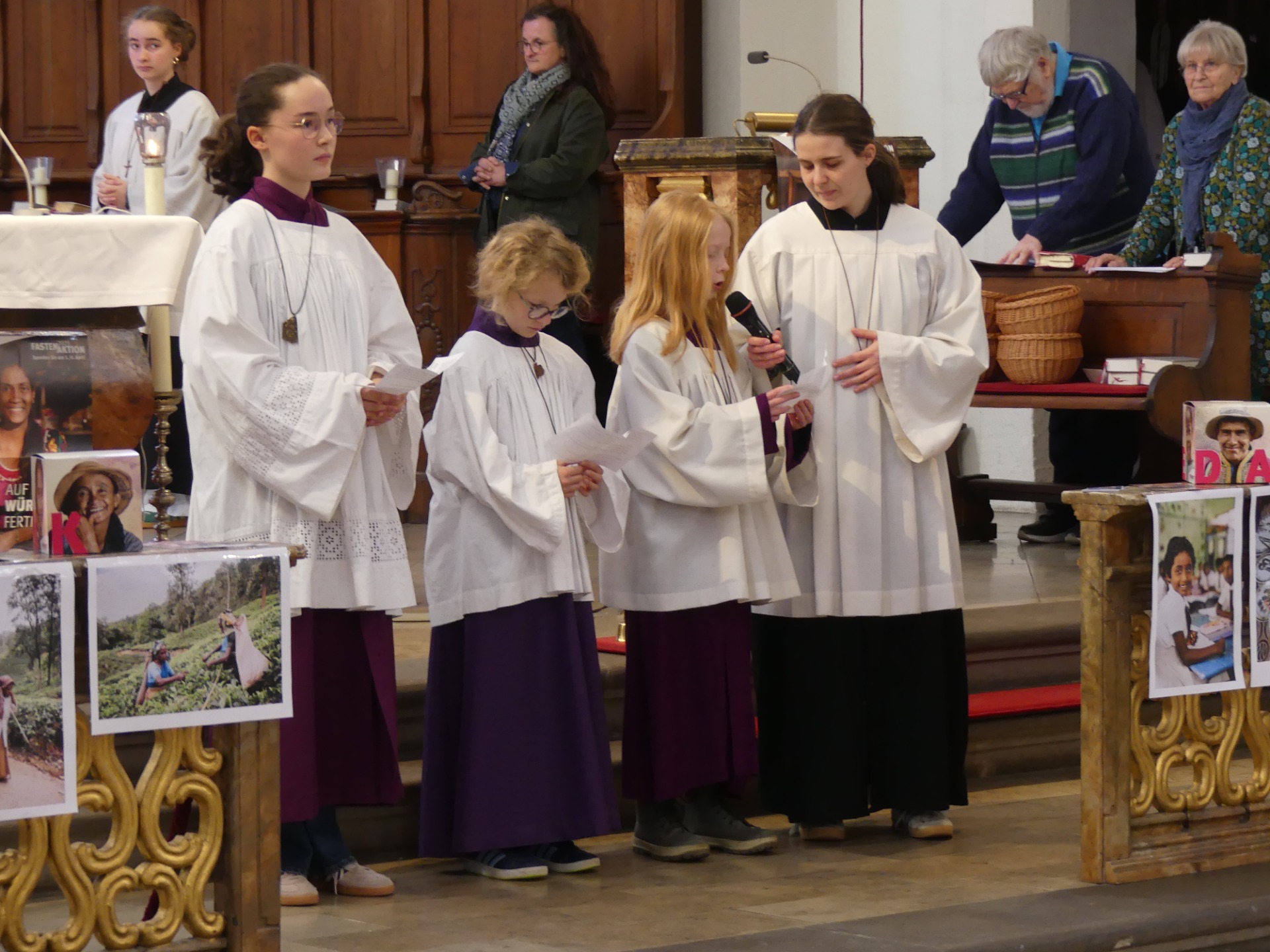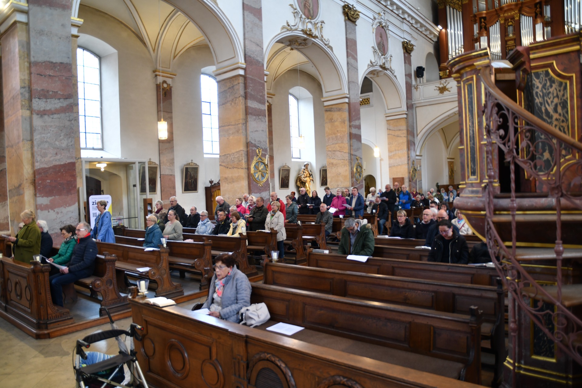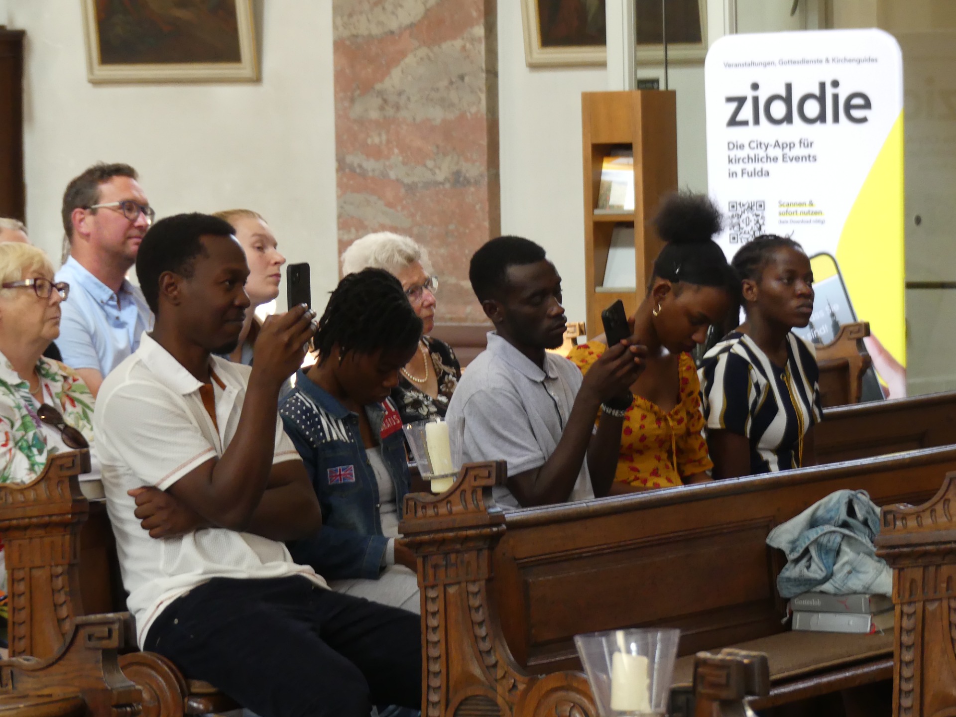 Die Solidaritätsaktion begann in der Stadtpfarrkirche Fulda mit einem Gottesdienst, den Innenstadtpfarrer Stefan Buß zelebrierte. Die Lesung trug Isabell Eckert vor, das Evangelium verkündete Diakon Dr. Meins G.S. Coetsier und die Fürbitten sprach Caritas-Geschäftsführerin Susanne Saradj.