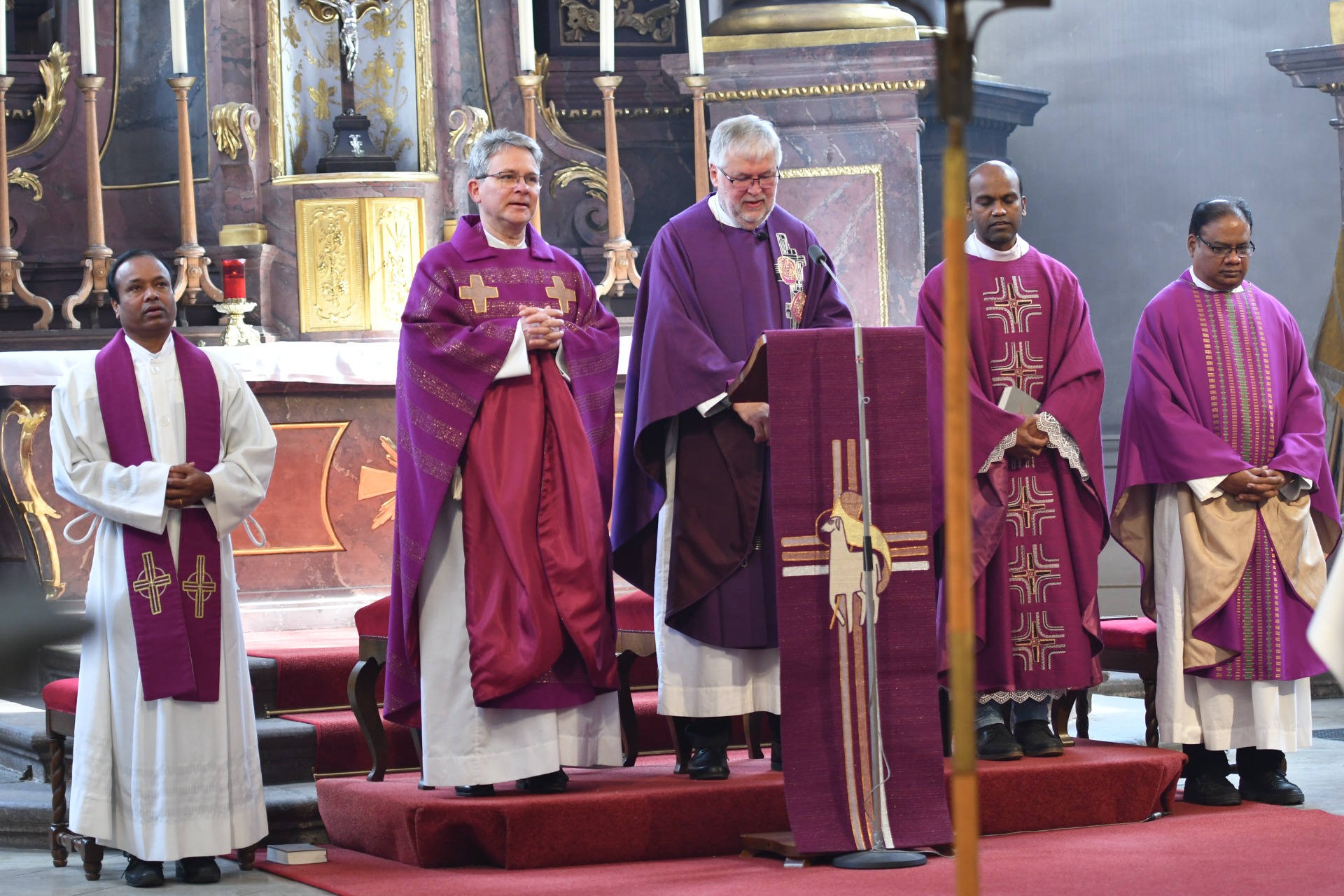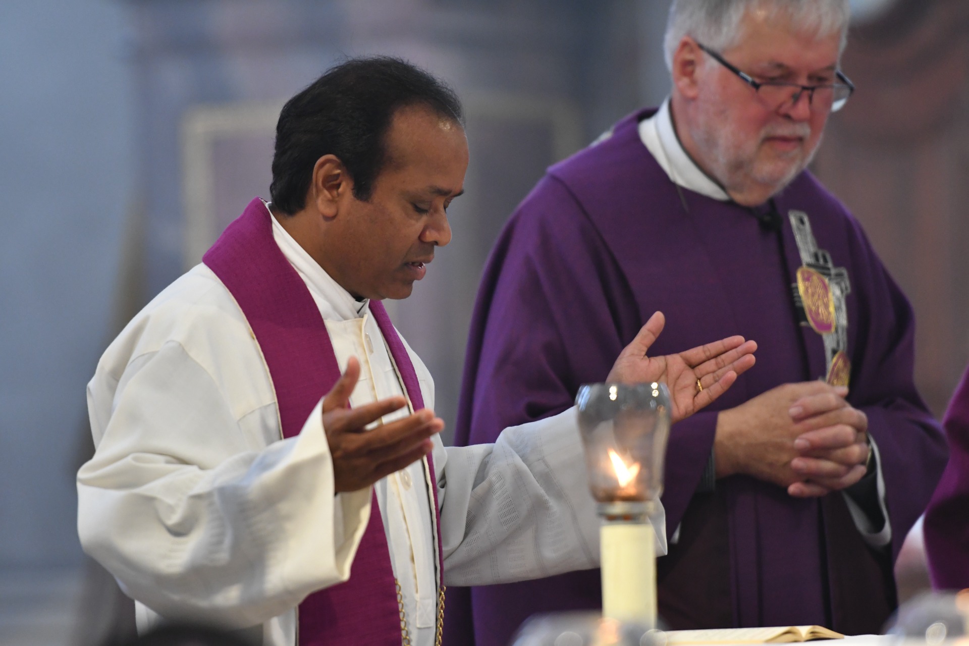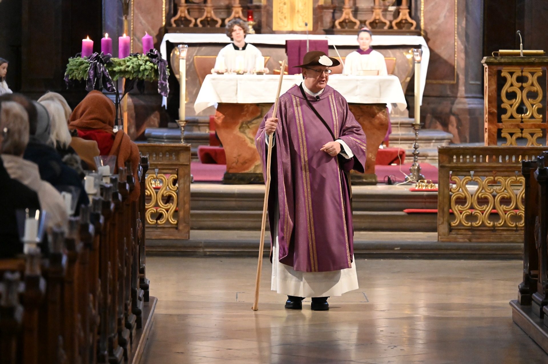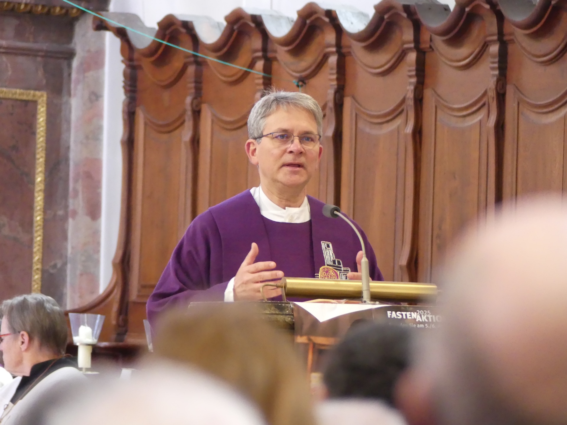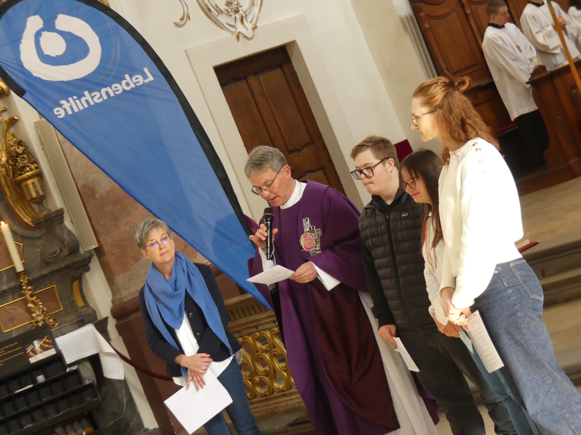 Die Solidaritätsaktion begann in der Stadtpfarrkirche Fulda mit einem Gottesdienst, den Innenstadtpfarrer Stefan Buß zelebrierte. Die Lesung trug Isabell Eckert vor, das Evangelium verkündete Diakon Dr. Meins G.S. Coetsier und die Fürbitten sprach Caritas-Geschäftsführerin Susanne Saradj.