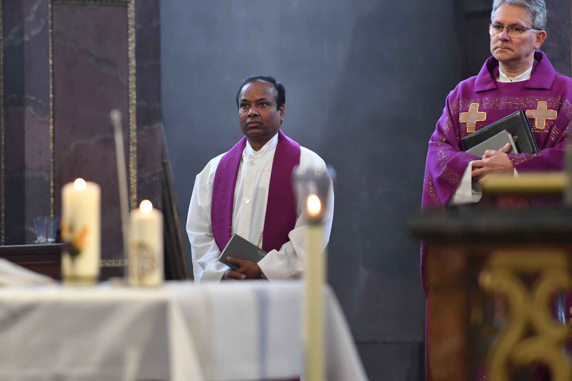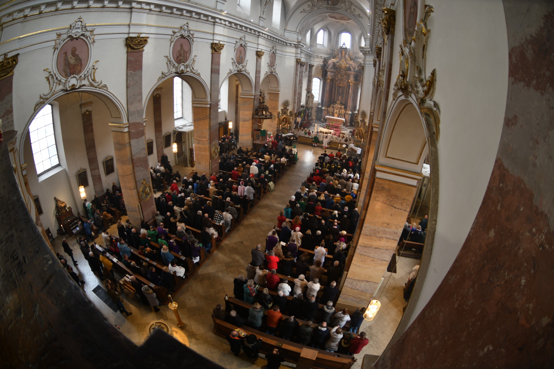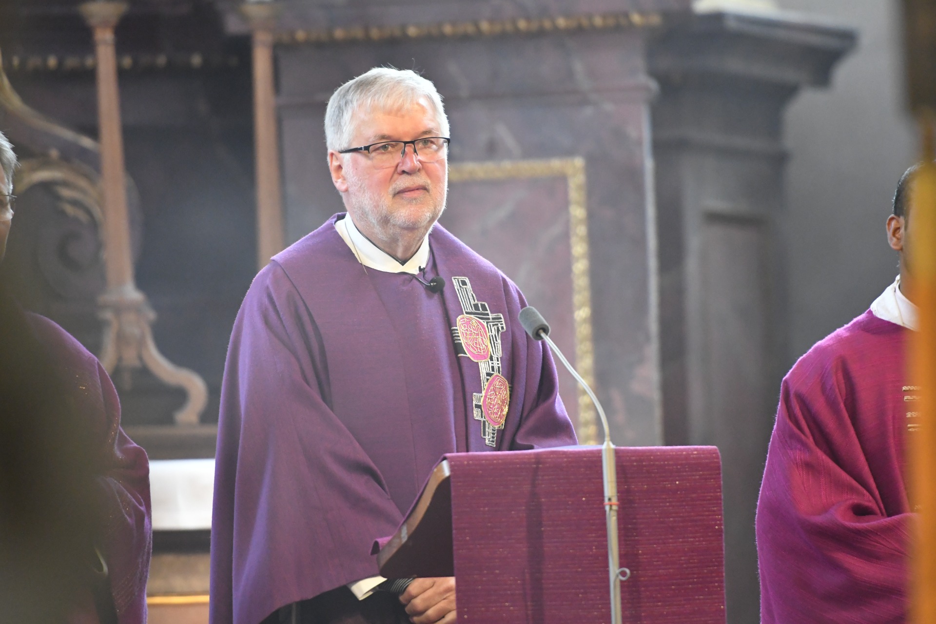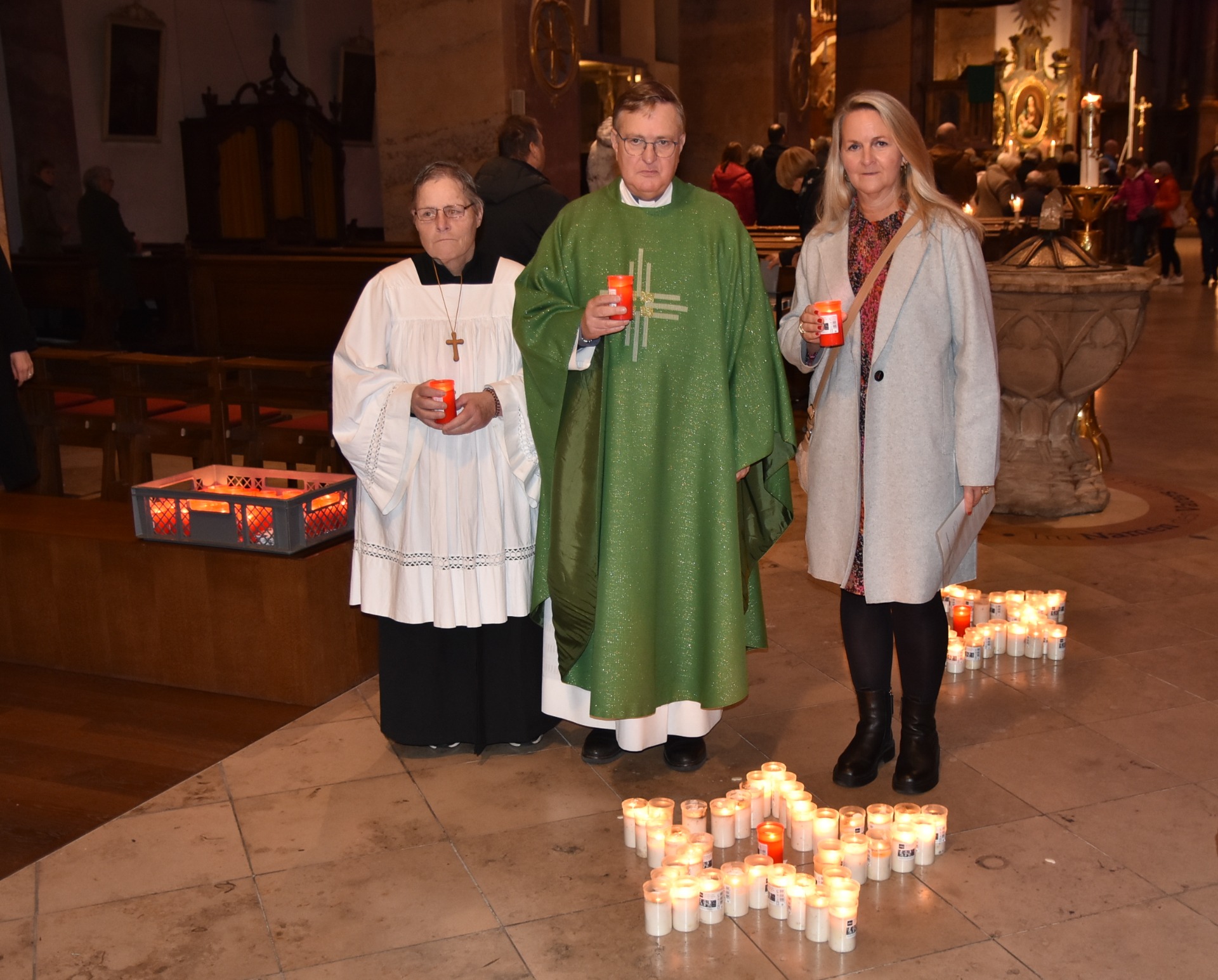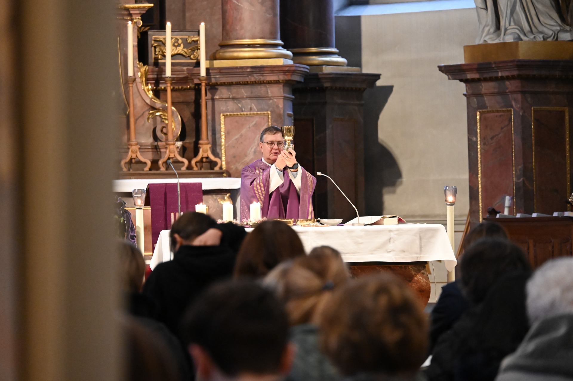 Die Solidaritätsaktion begann in der Stadtpfarrkirche Fulda mit einem Gottesdienst, den Innenstadtpfarrer Stefan Buß zelebrierte. Die Lesung trug Isabell Eckert vor, das Evangelium verkündete Diakon Dr. Meins G.S. Coetsier und die Fürbitten sprach Caritas-Geschäftsführerin Susanne Saradj.