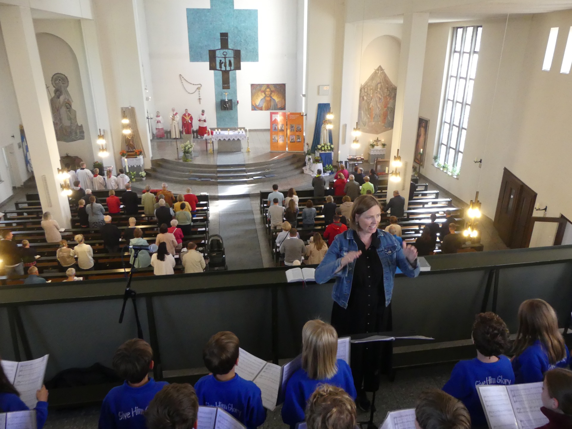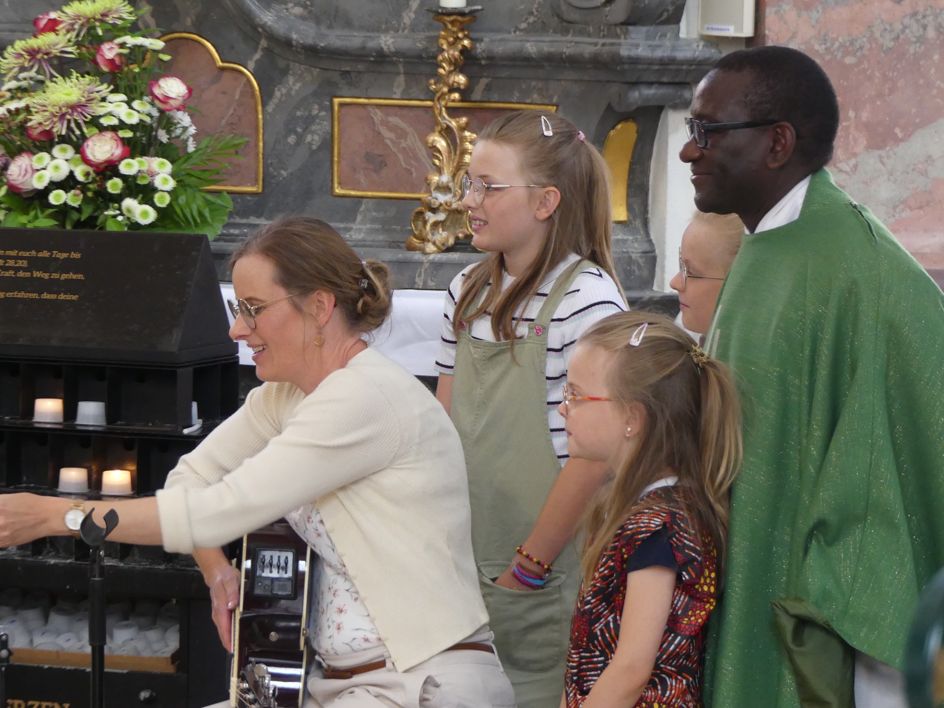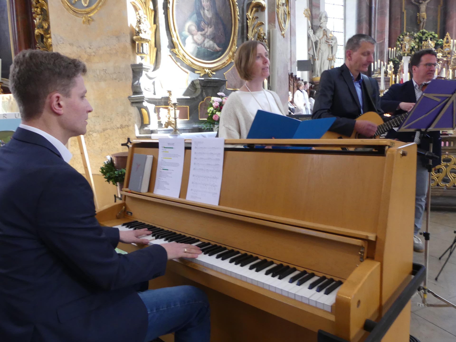 Anlässlich des Muttertages wurden nach dem Gottesdienst Mütter gesegnet. Musikalisch wurde der Gottesdienst gestaltet von Väter der Erstkommunionskinder und dem Ehepaar Haubs.