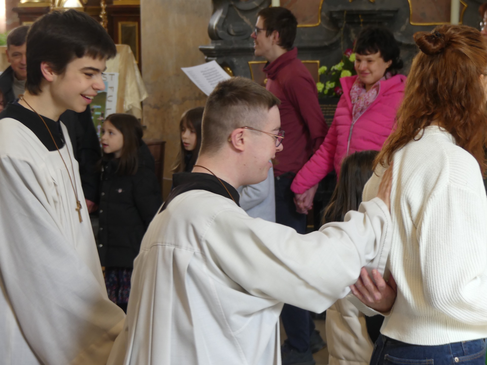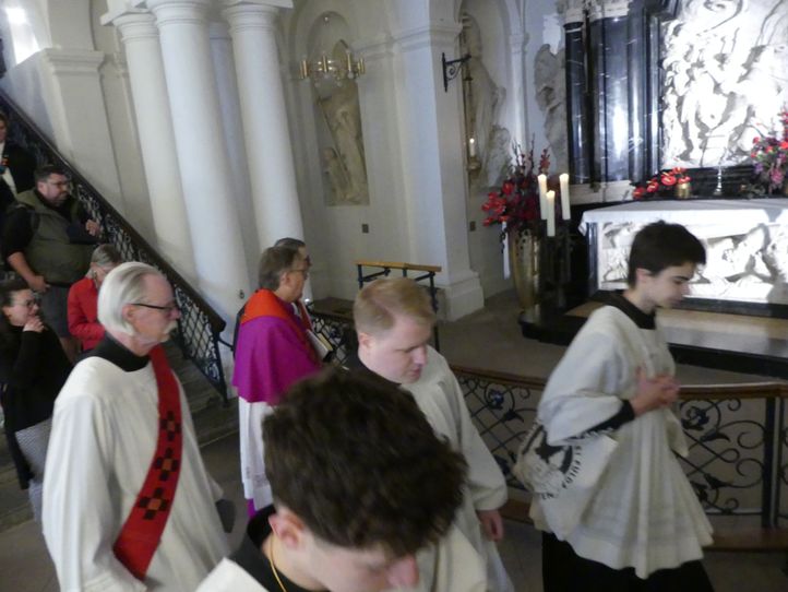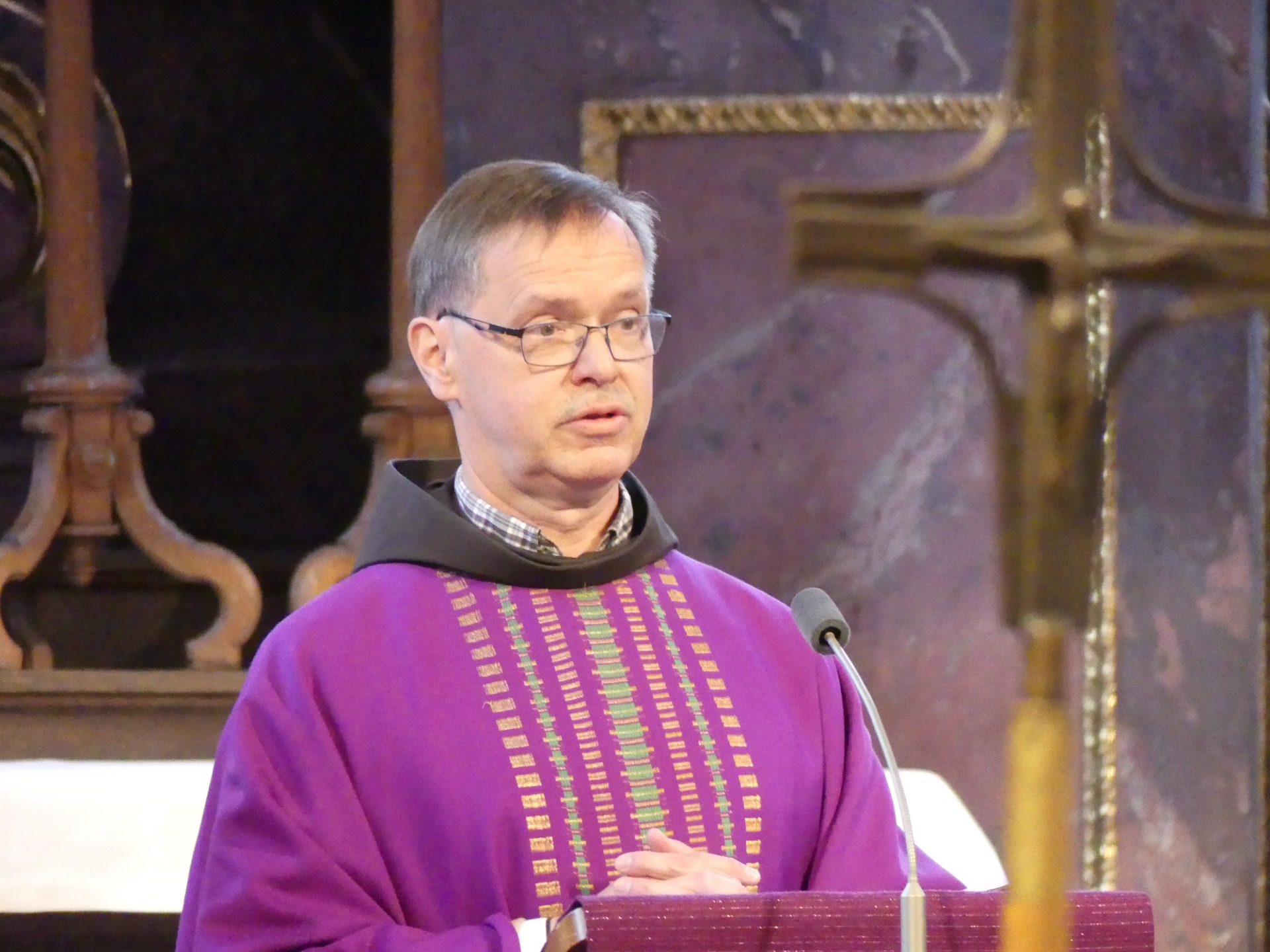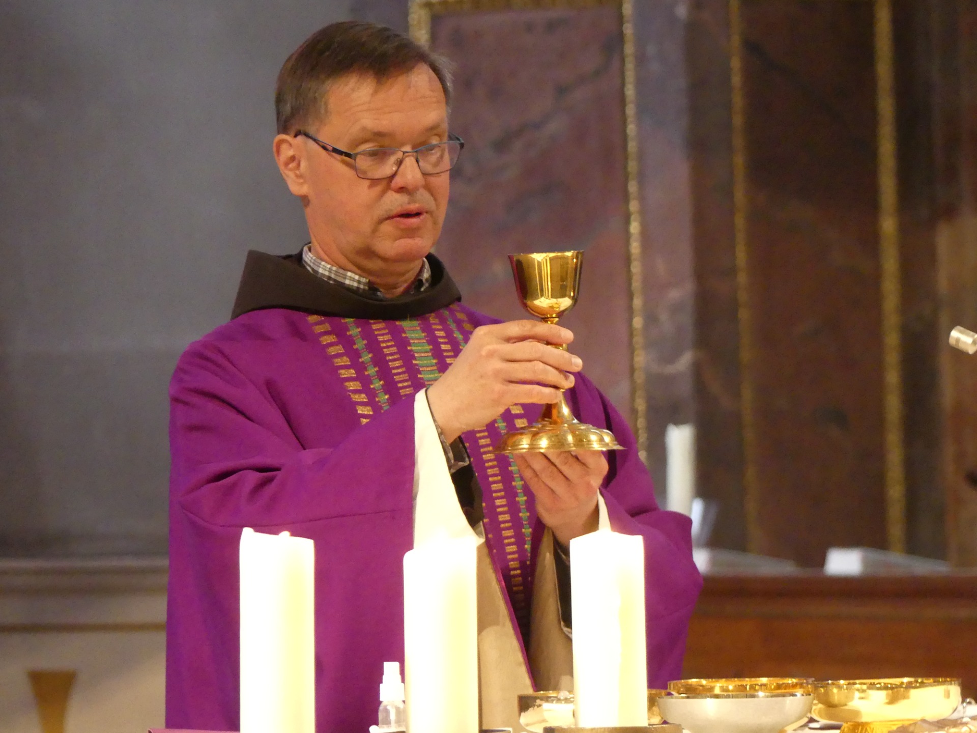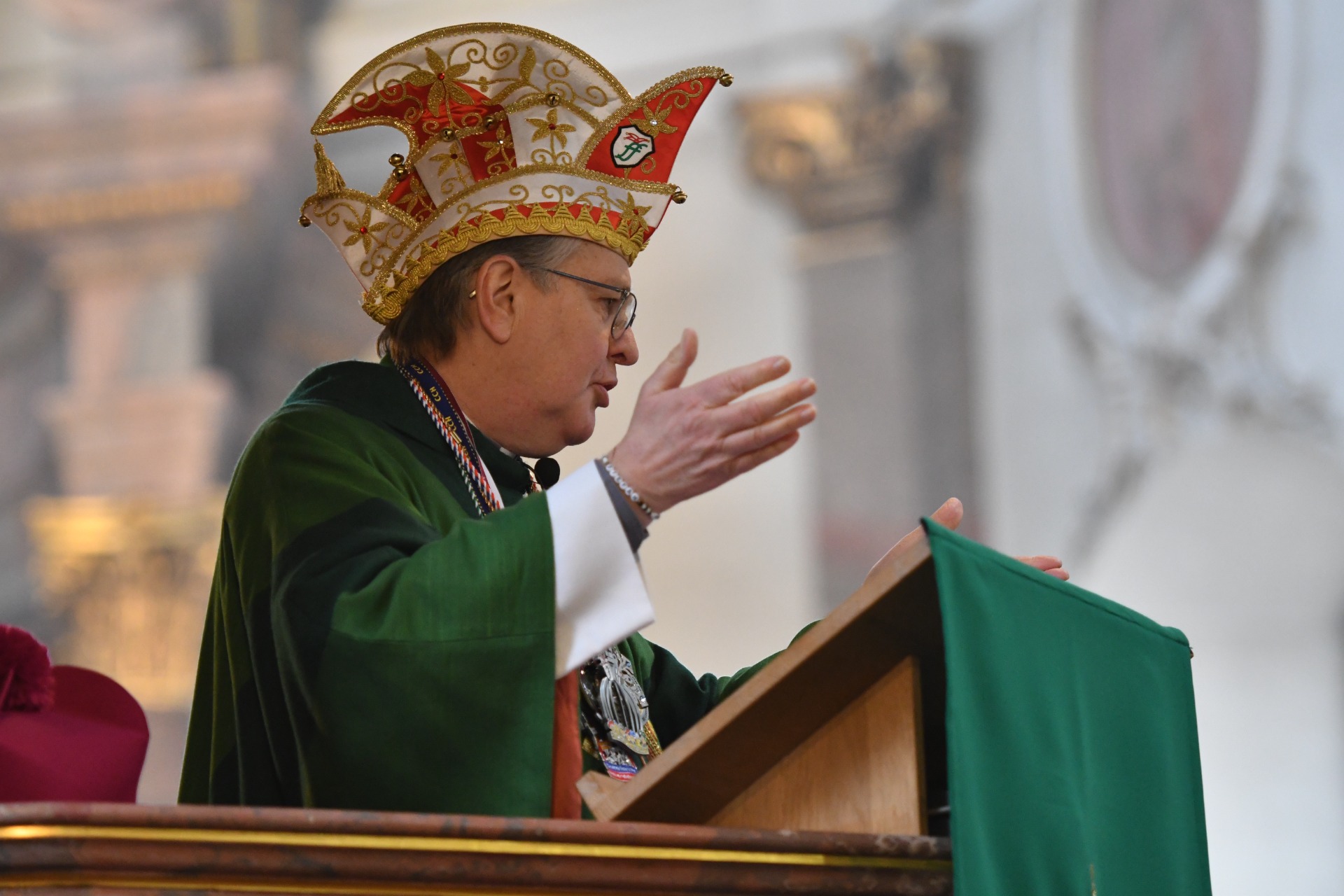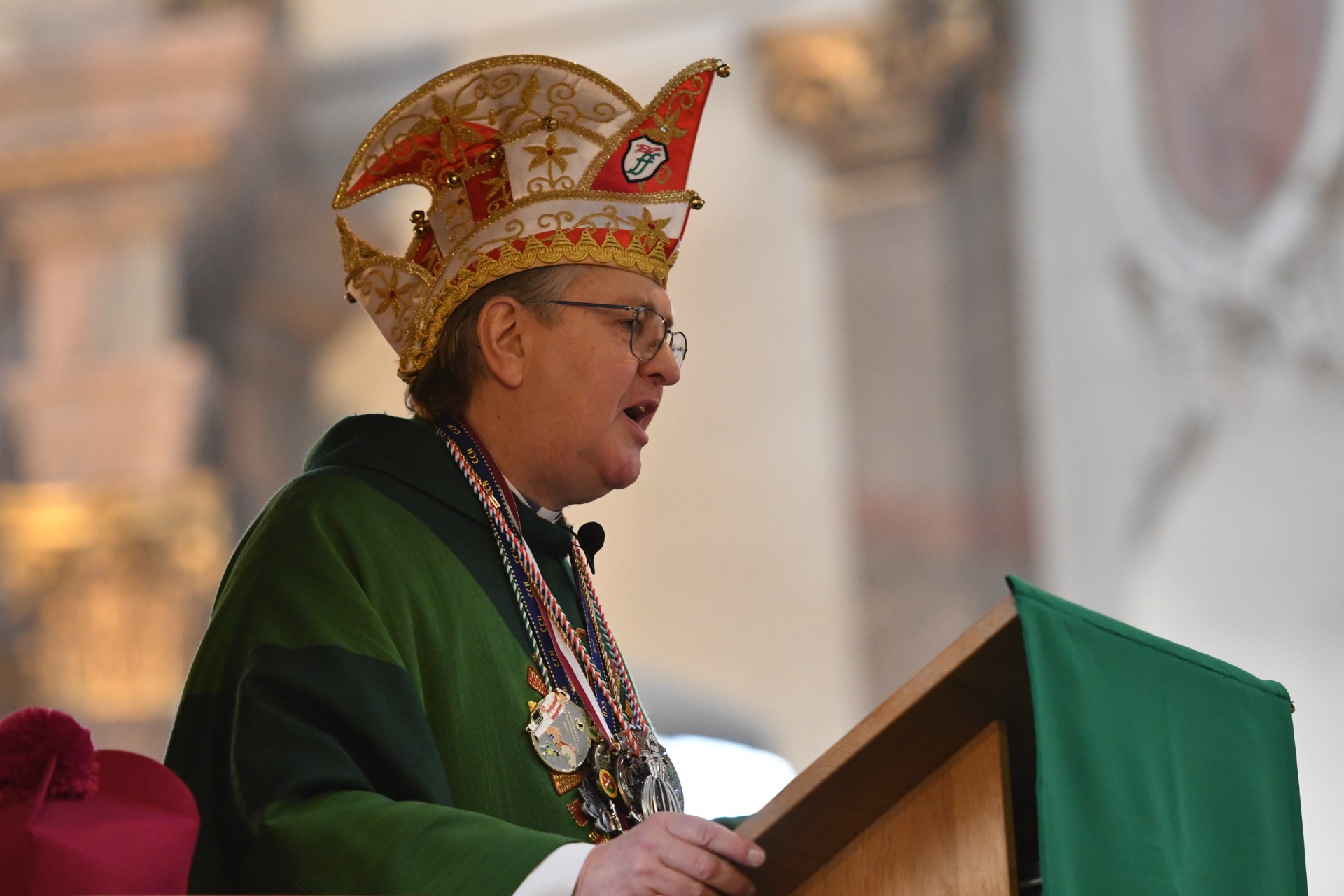 Heute am Fastnachtssonntag bestimmte das Thema Freude auch den Gottesdienst. Besondere Gäste konnte Stadtpfarrer Stefan Buß begrüßen. Die Gruppe aus Dokkum und aus Como, den beiden Partnerstädten Fuldas. Seine Predigt brachte Stadtpfarrer Buß wie es sich gehört in Reimform. Eine Sängerin aus der Gruppe von Como brachte einen Gesangsbeitrag und eine Fürbitte wurde in italenischer und eine in niederländischer Sprache gebetet.
