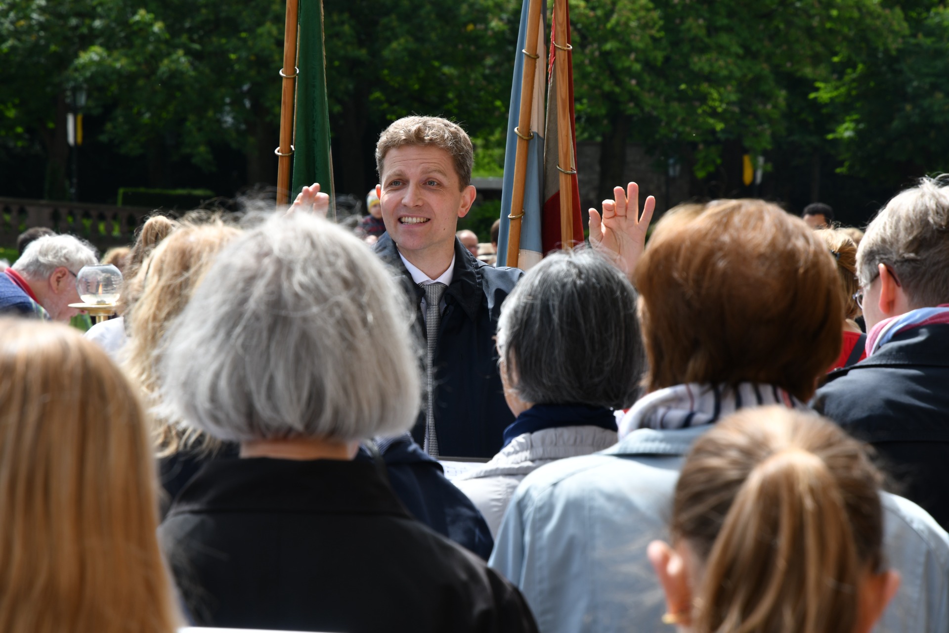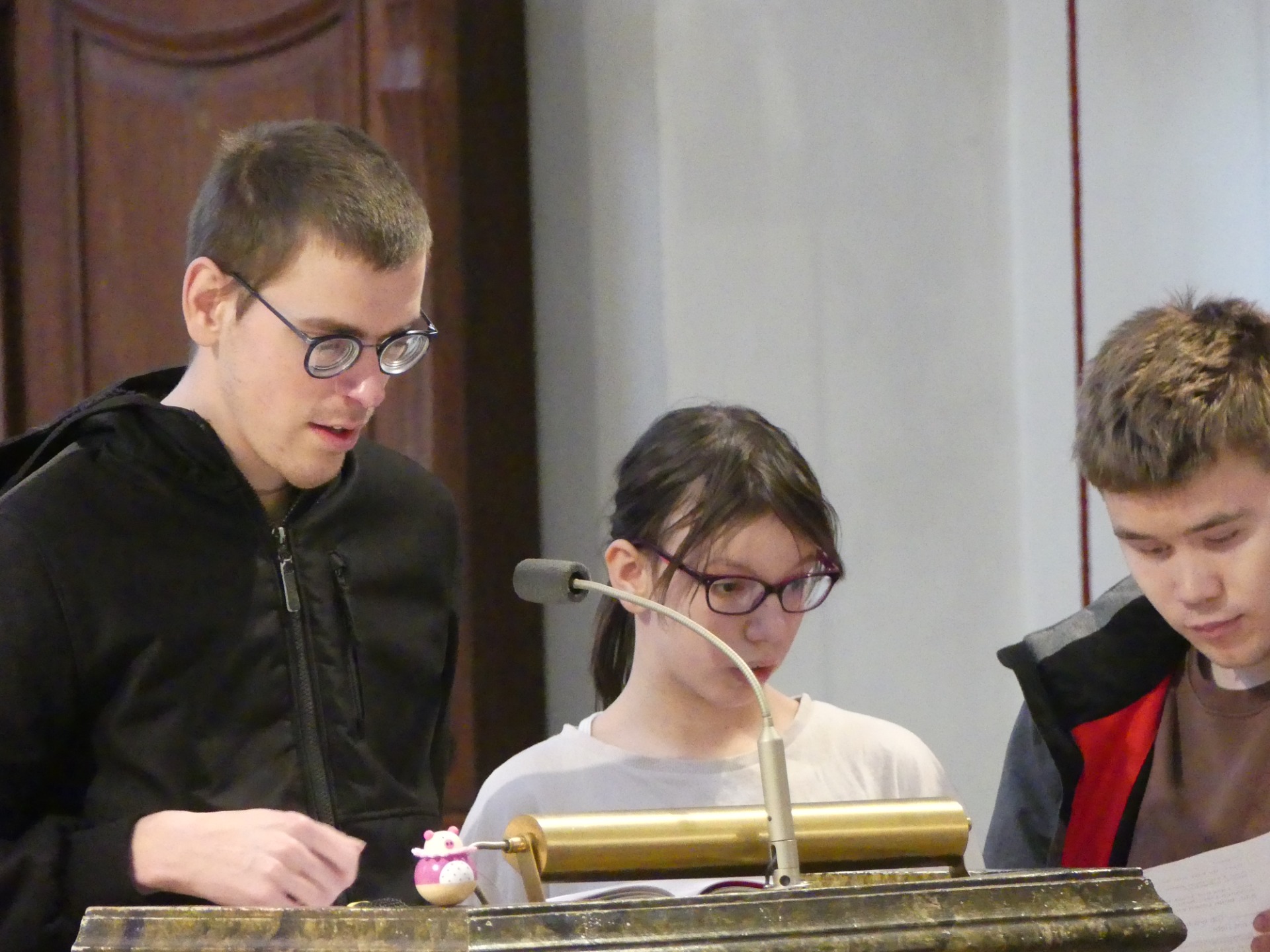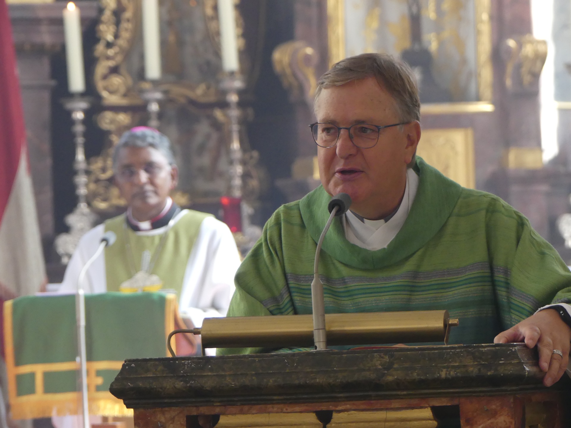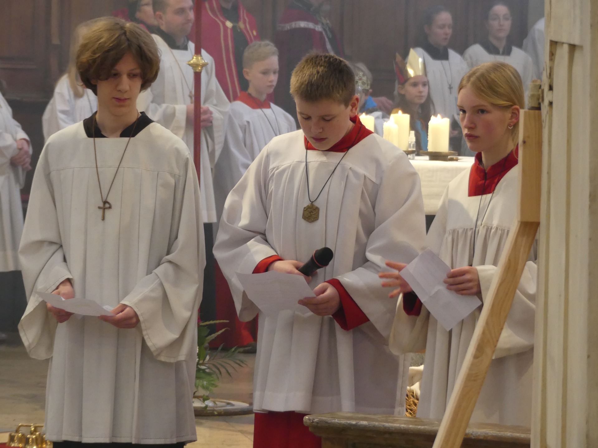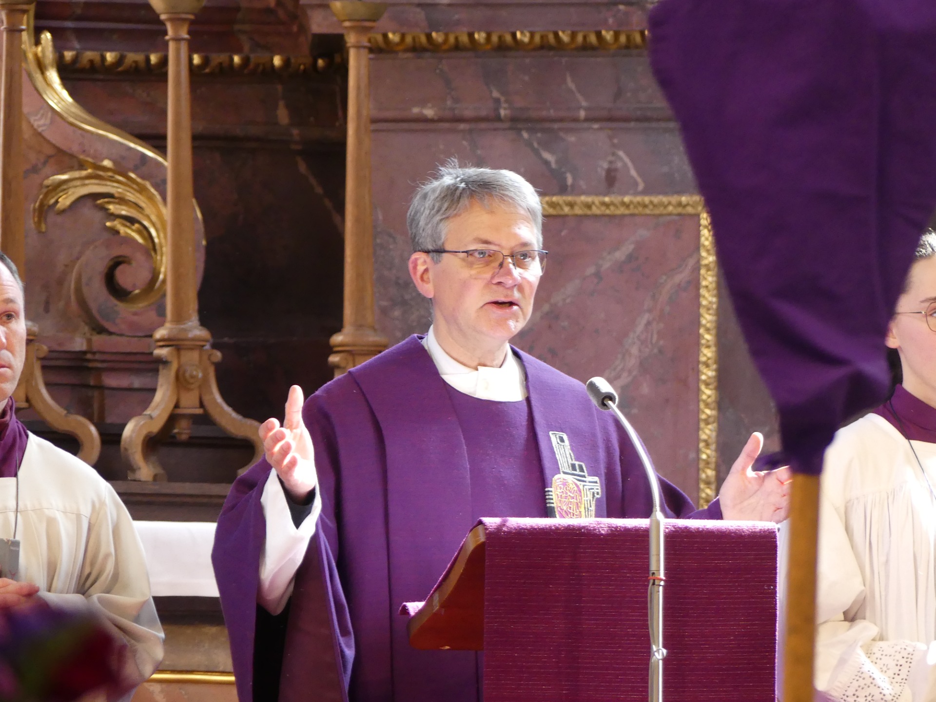 Heute am Fastnachtssonntag bestimmte das Thema Freude auch den Gottesdienst. Besondere Gäste konnte Stadtpfarrer Stefan Buß begrüßen. Die Gruppe aus Dokkum und aus Como, den beiden Partnerstädten Fuldas. Seine Predigt brachte Stadtpfarrer Buß wie es sich gehört in Reimform. Eine Sängerin aus der Gruppe von Como brachte einen Gesangsbeitrag und eine Fürbitte wurde in italenischer und eine in niederländischer Sprache gebetet.