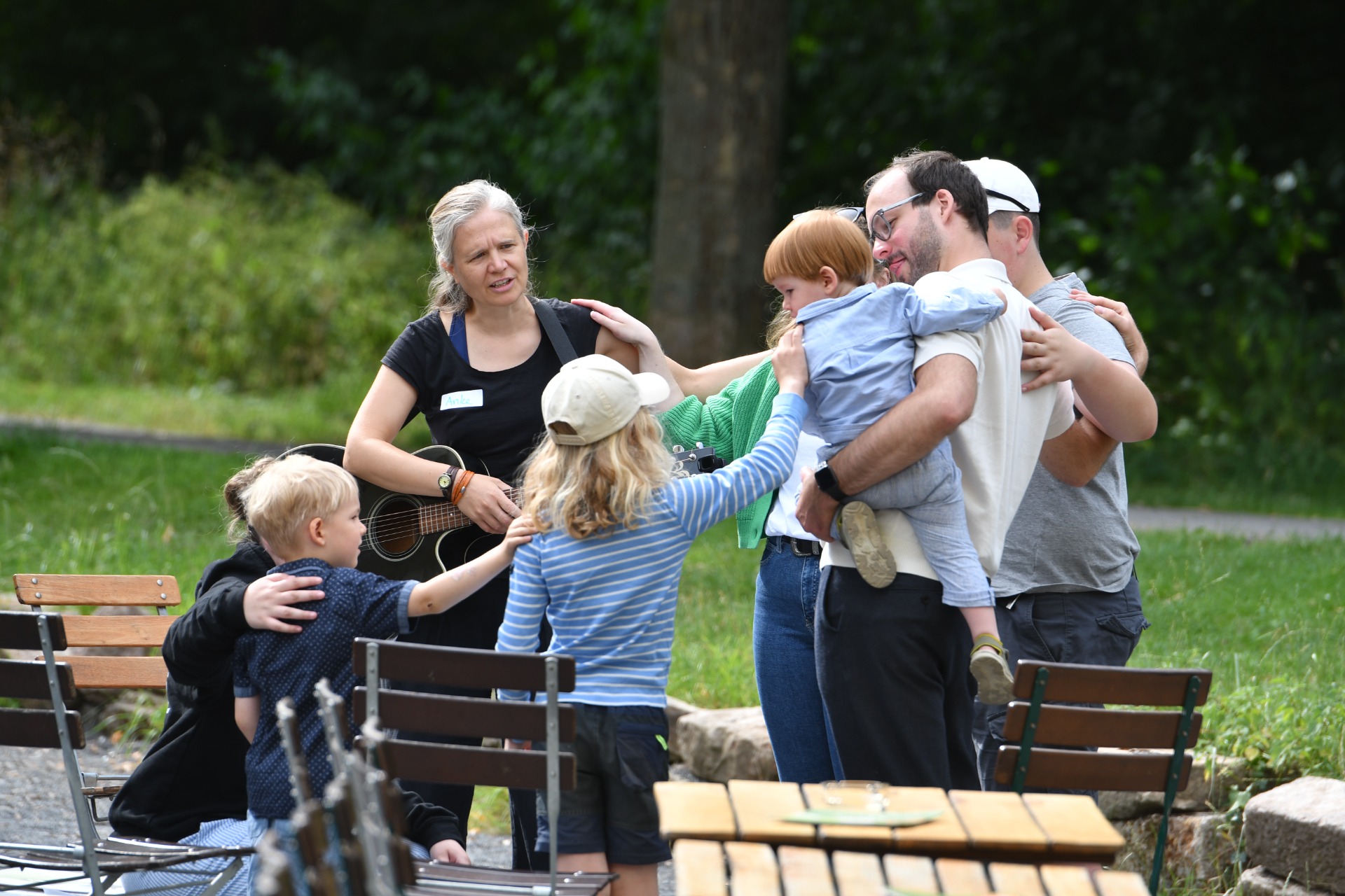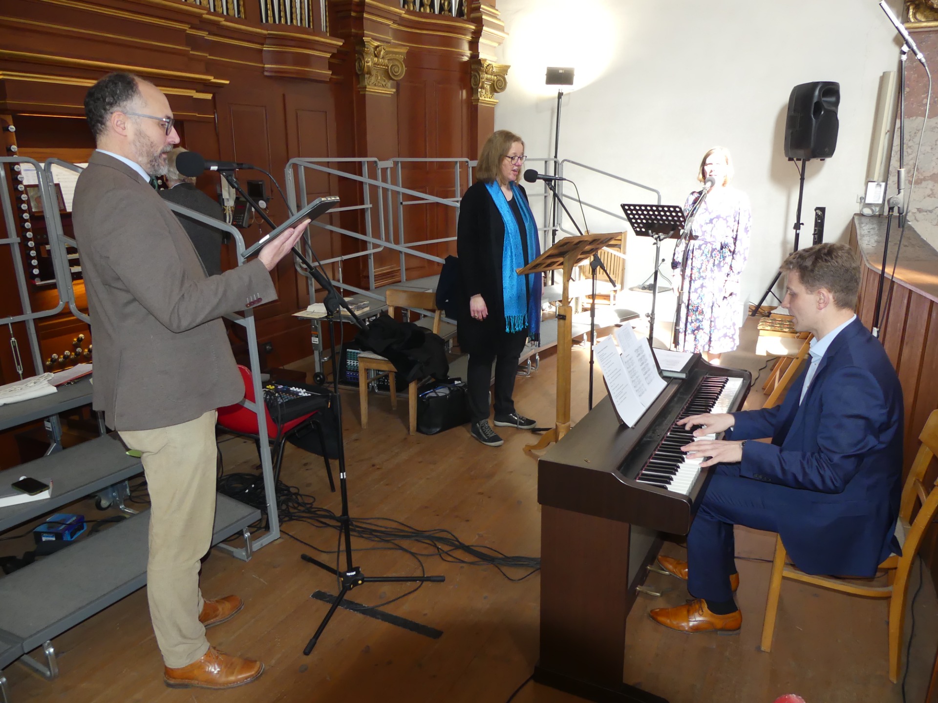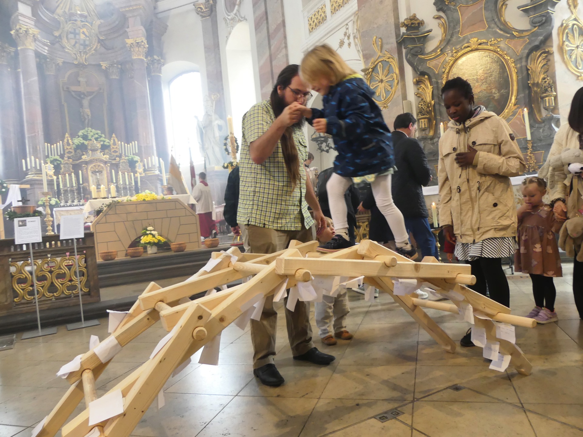 . Jesus die Brücke ins Leben. Mit der Todesnachricht von Papst Franziskus. Das Quartett gestaltet gesanglich den Gottesdienst und die Kinder dürfen über die Brücke laufen.