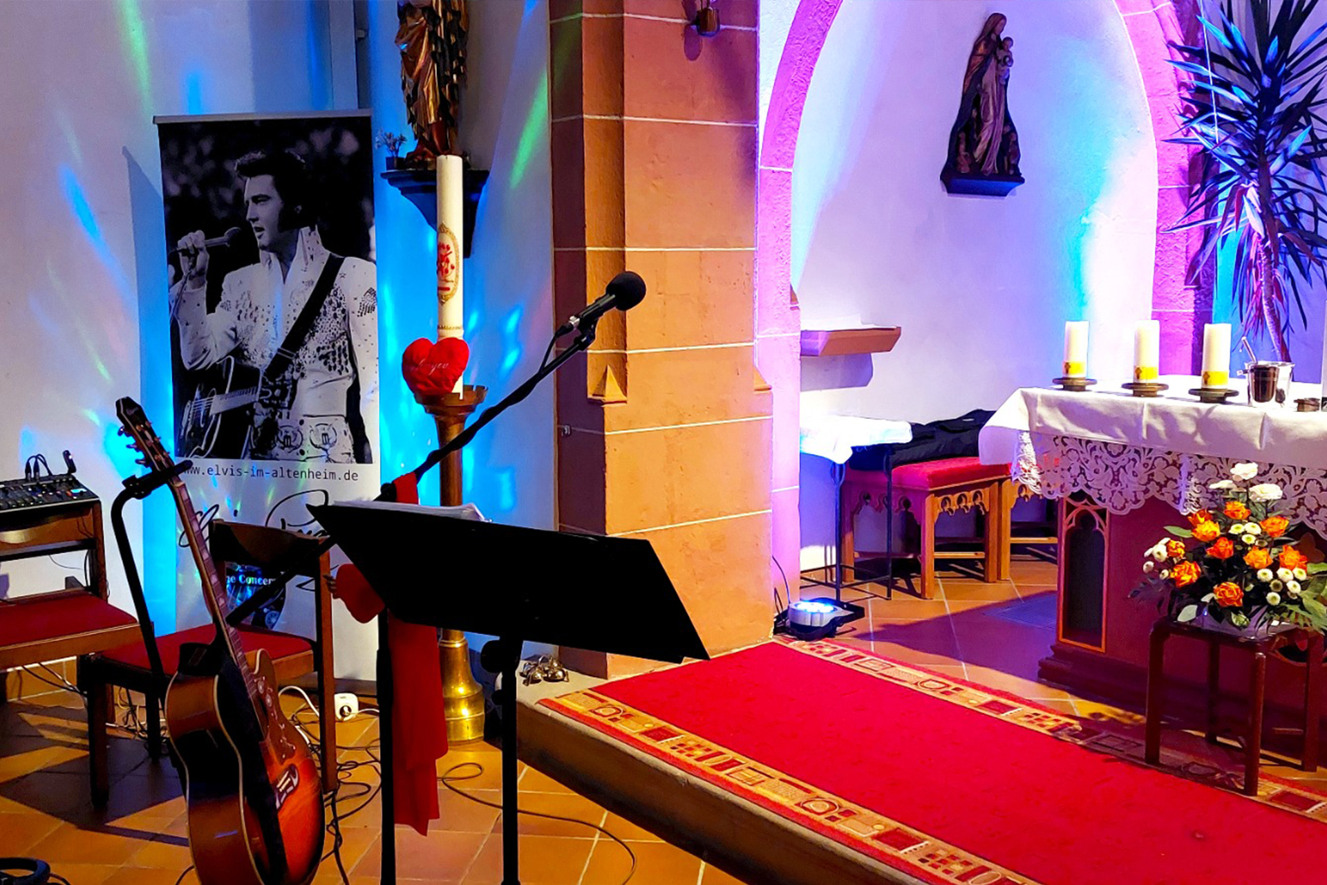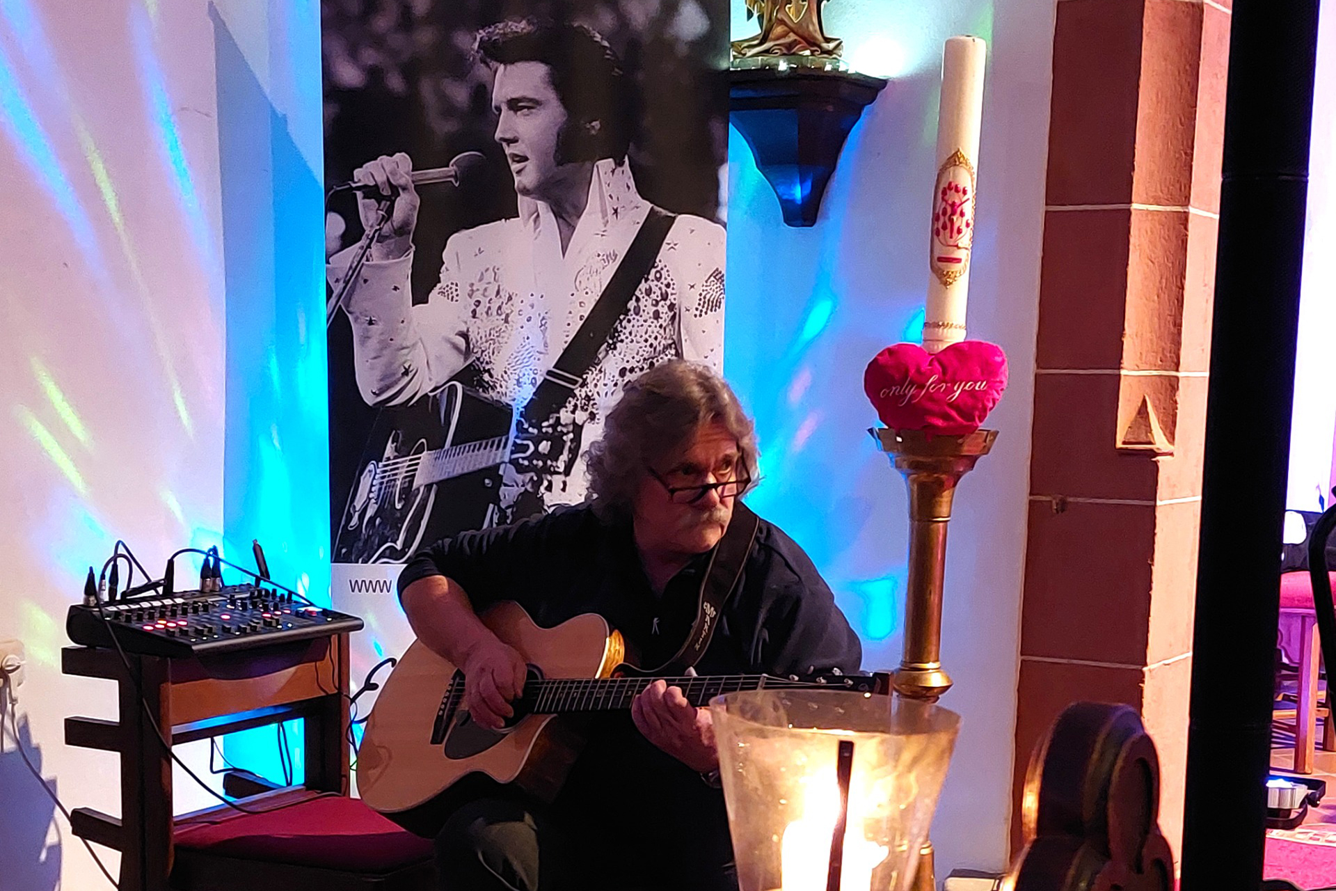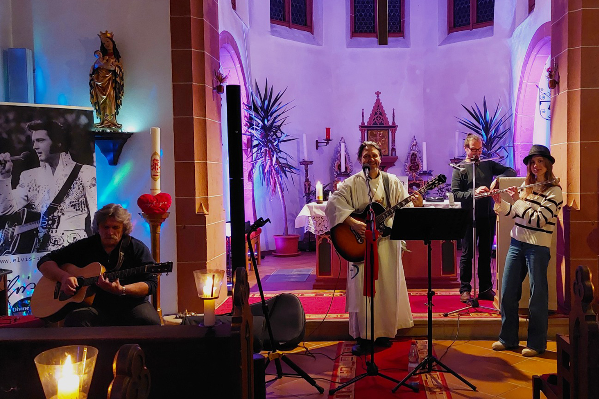 Besonderes Highlight des Abends ist der Auftritt des bekannten Künstlers Christian Gutsch, der als „Berliner Elvis“ gilt und mit seiner charismatischen Stimme und authentischen Bühnenpräsenz seit Jahren Elvis-Fans begeistert. Begleitet wird er von der Band Divine Concern im Rahmen ihres Projekts „Elvis im Altenheim“, die mit ihrem harmonischen Klangbild den festlichen Charakter der Andacht unterstreicht.