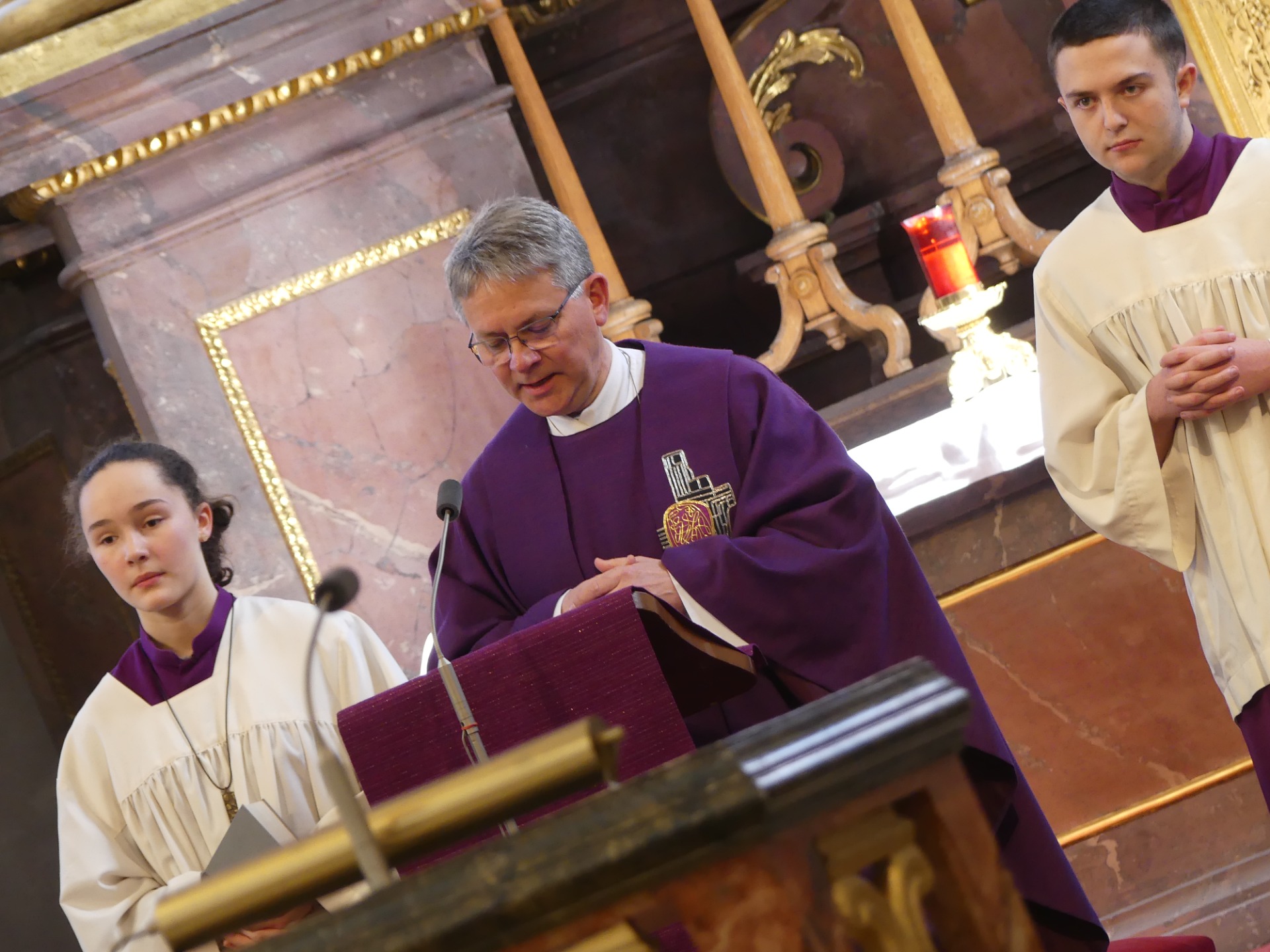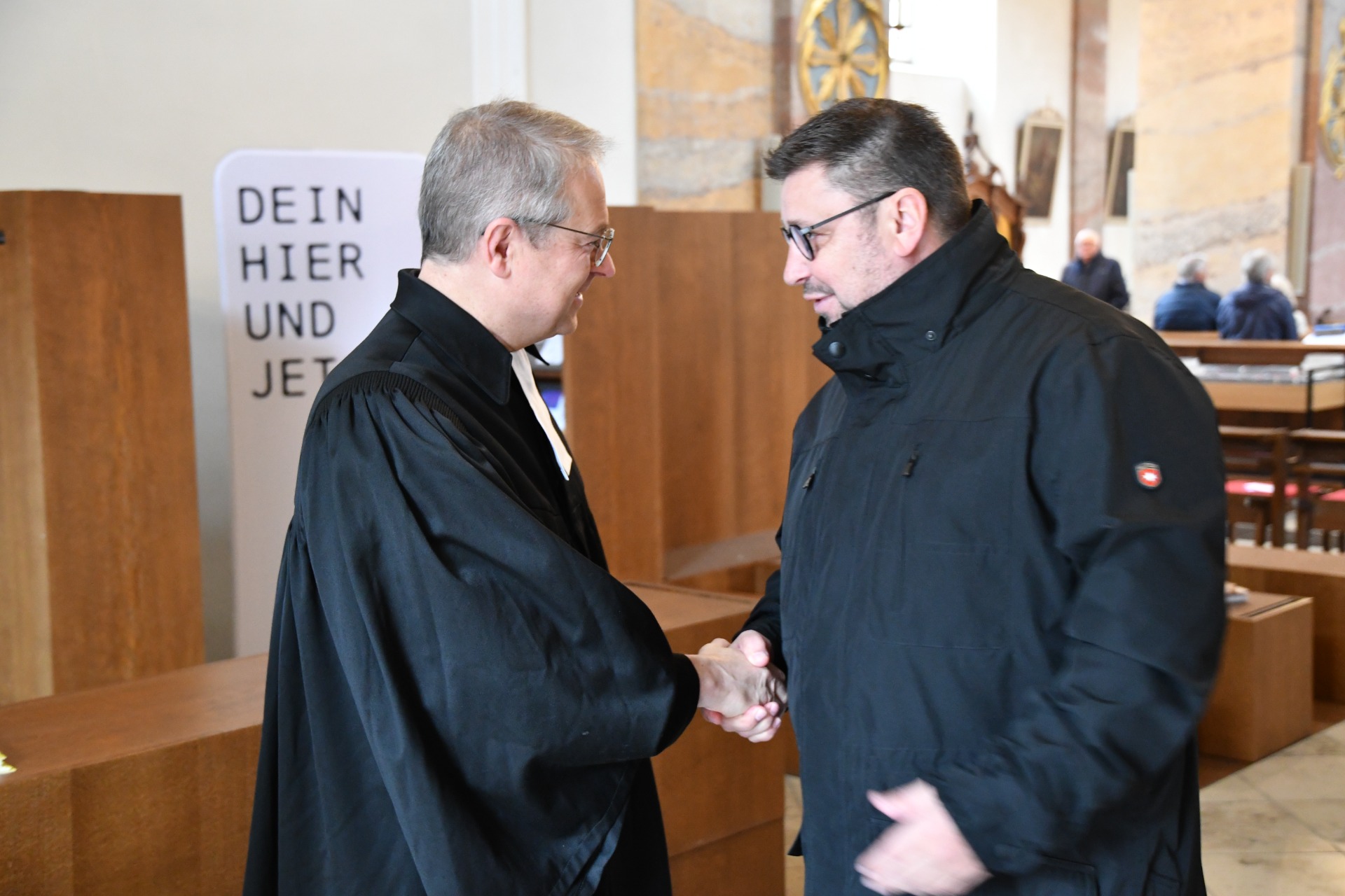 Ein besonderes Erlebnis war der heutige Gottesdienst in der Stadtpfarrkirche von Fulda. Der Gottesdienst wurde im Byzantinischen Ritus gefeiert und Bischof Bohdan Dzyurakh der Apostolische Exarch des byzantinischen Ritus für Deutschland und Skandinavien spendete die Diakonenweihe. Ivan Kolodii, der aus der Ukraine stammt, hat in den letzten drei Jahren seine Ausbildung zum Pastoralreferenten im Bistum Fulda gemacht. Sein Dienstvorgesetzter ist Stadtpfarrer Stefan Buß. Die Besonderheit wird sein, dass Ivan Kolodii in Zukunft in beiden Riten, dem byzantinischen und im römischen, Dienst tun wird. Für den 15.3. 2026 ist ebenfalls in der Stadtpfarrkirche die Priesterweihe geplant. Neben vielen ukrainischen Priestern konzelebrierte auch Stadtpfarrer Stefan Buß. Er dankte am Ende des Bischof für die beindruckende Feier und gratulierte im Namen der Stadtpfarrei dem neuen Diakon, der weiter in der Stadtpfarrei Dienst tun wird. Der Gottesdienst wurde von einer Schola mit liturgischen Gesänge aus der byzantinischen Liturgie gestaltet.