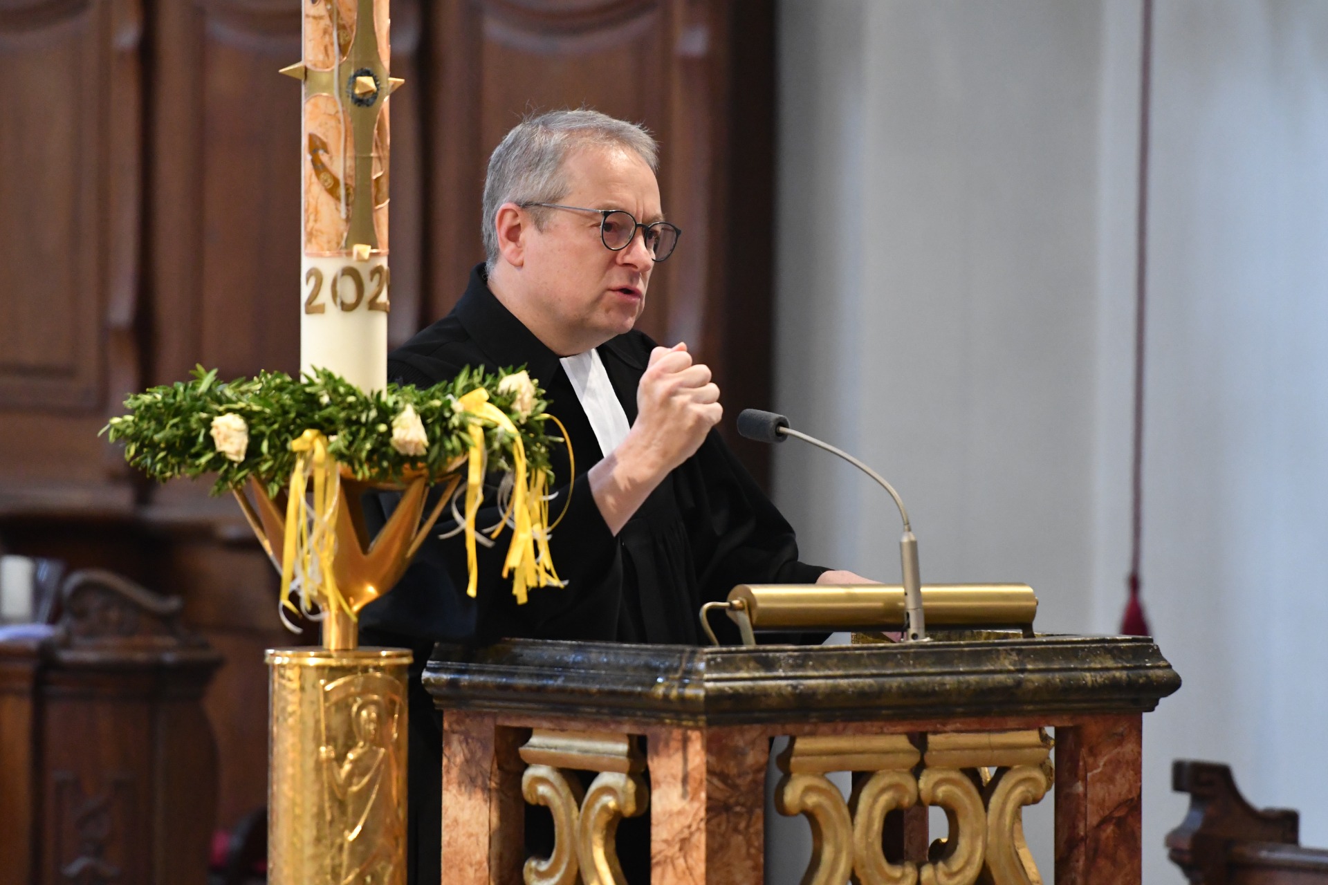 Im feierlichen Auferstehungsamt am Ostersonntagmorgen bilden die „Krönungsmesse“ von W. A. Mozart und Händels „Halleluja“ aus dem Messias mit Chor, Orchester, den Gesangssolisten Tina Bier, Lena Heun, Constantin von Hertwig und Peter Schüler sowie Hans-Joachim Rill an der Chororgel und Ulrich Moormann an der Domorgel einen kirchenmusikalischen Höhepunkt. Das Dirigat liegt in den Händen von Anne Rill. Der Stadtpfarrchor möchte auf die Osterliturgie hinweisen und den Gläubigen die Begegnung mit feierlicher Kirchenmusik ermöglichen und Freude bereiten.