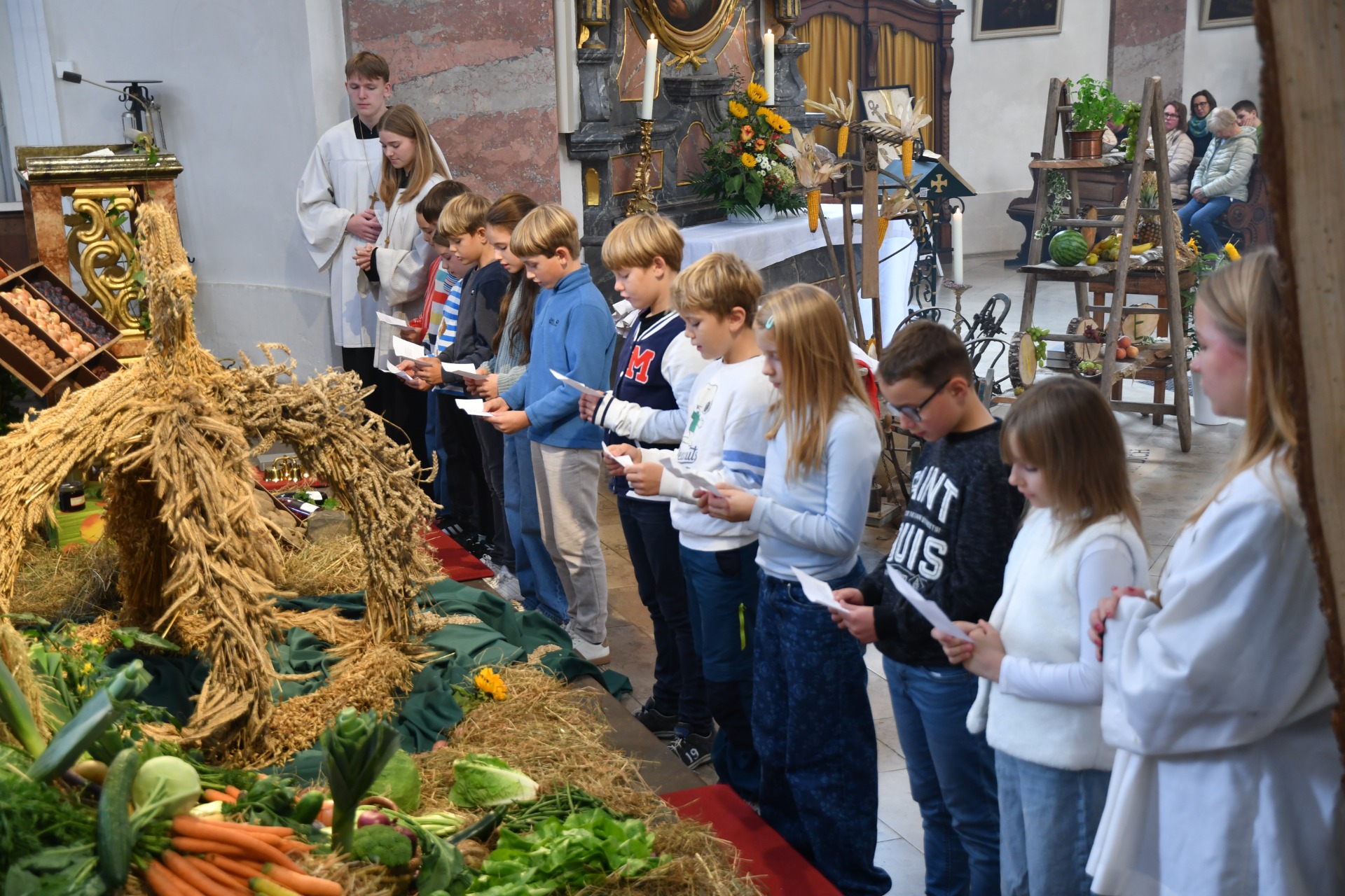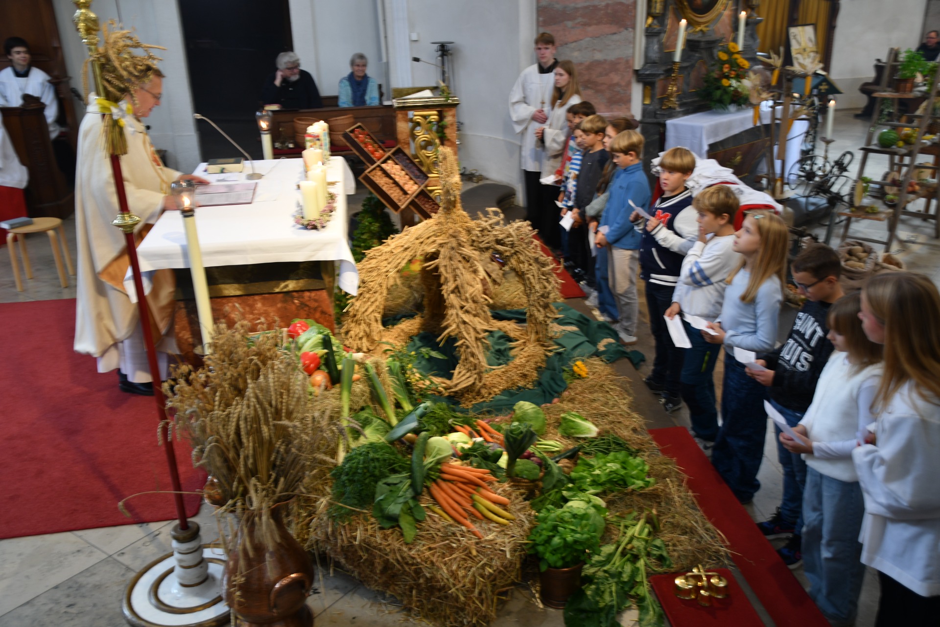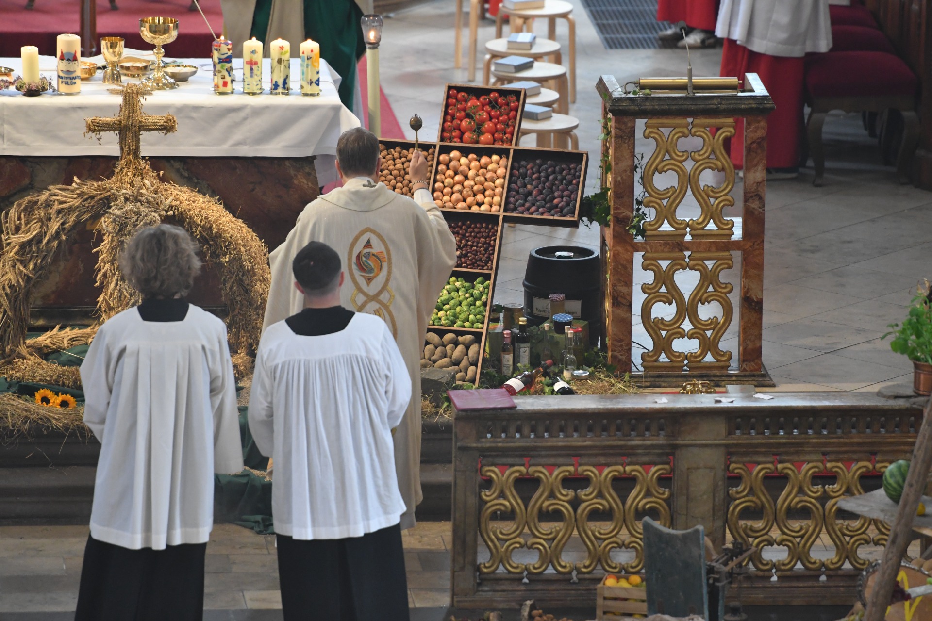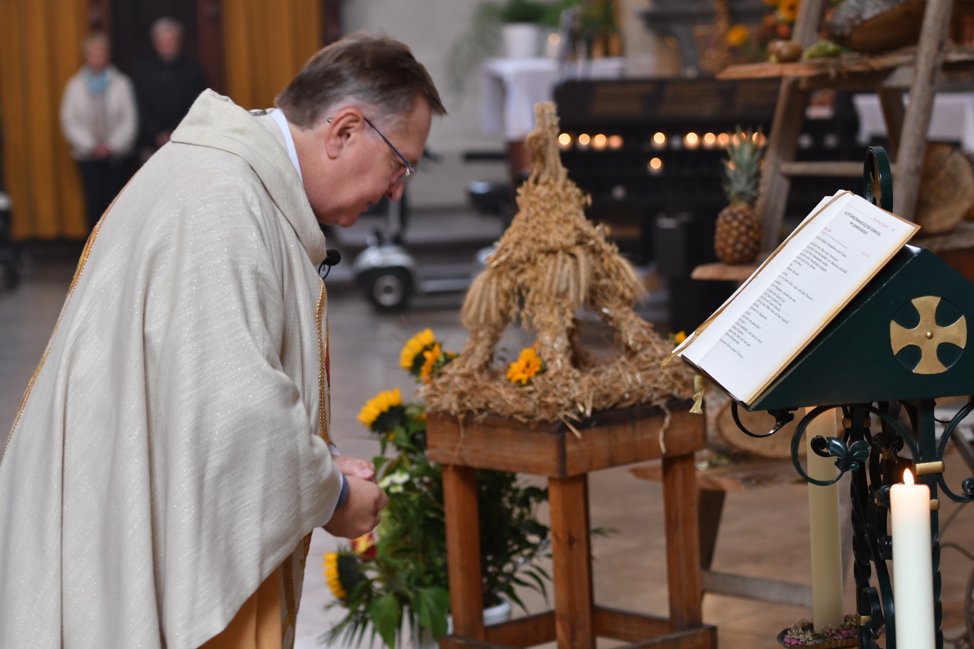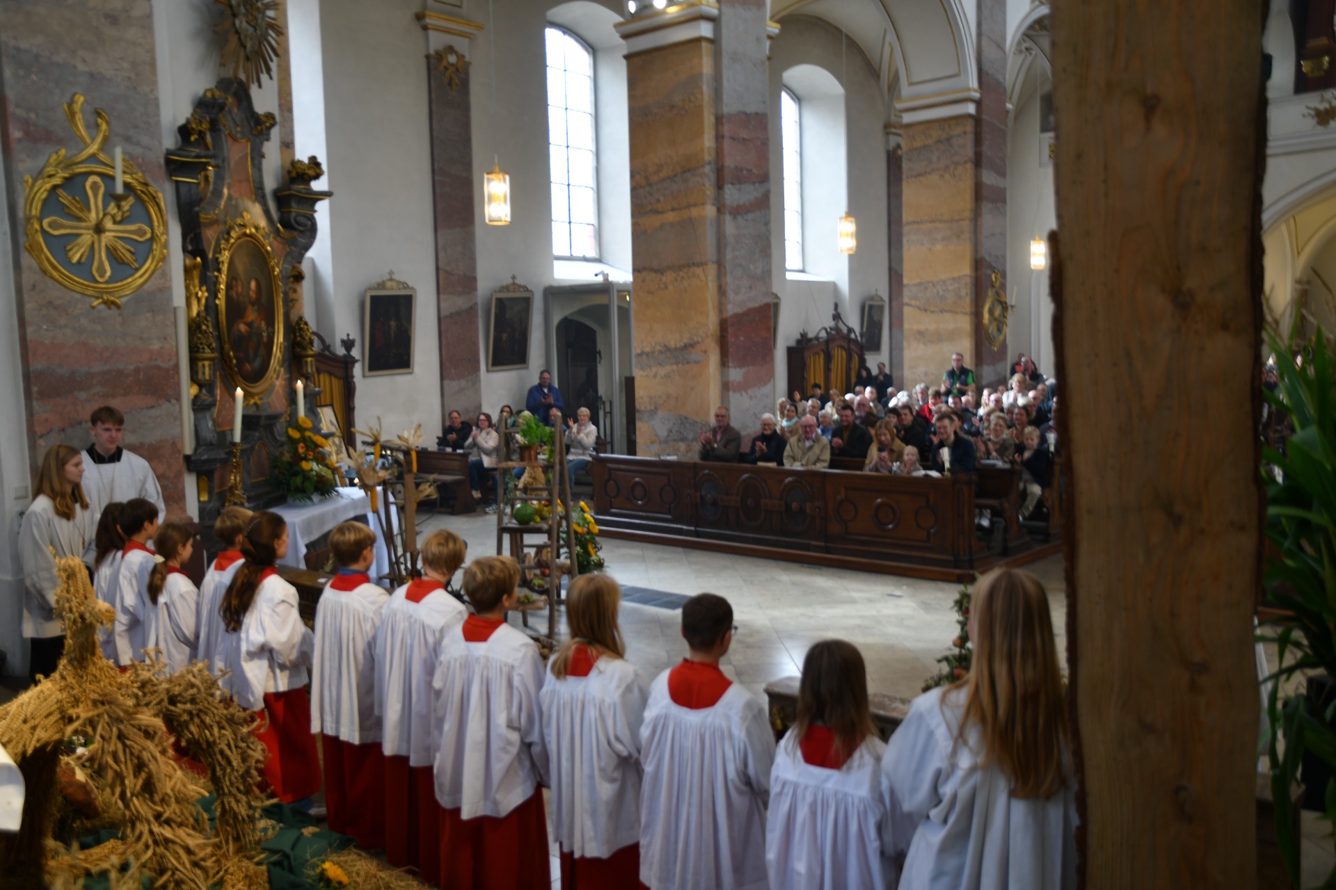 In der Stadt feiern wir wegen dem 3.Oktober und den Herbstferien das Erntedankfest schon morgen. Die Familie Fautsch und unser Küster Robert Tauchmann waren etliche Stunden im Einsatz, um die Kirche wieder ganz toll herzurichten. Morgen feiern wir einen festlichen Gottesdienst um 11 Uhr mit der Einführung von 12 neuen Messdienern und musikalischer Gestaltung einer Jazzmesse durch einen extra dafür ins Leben gerufenen Projektchor