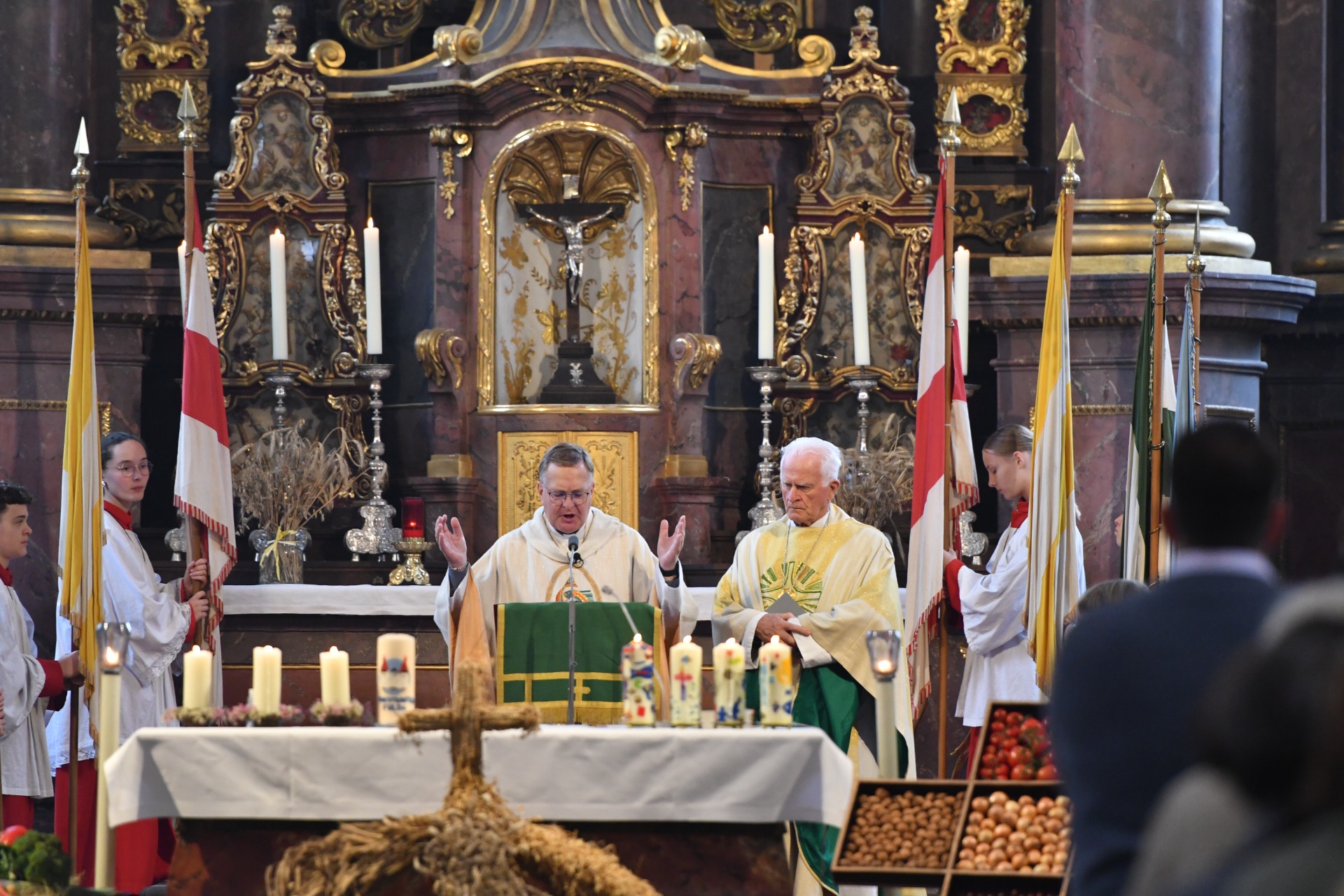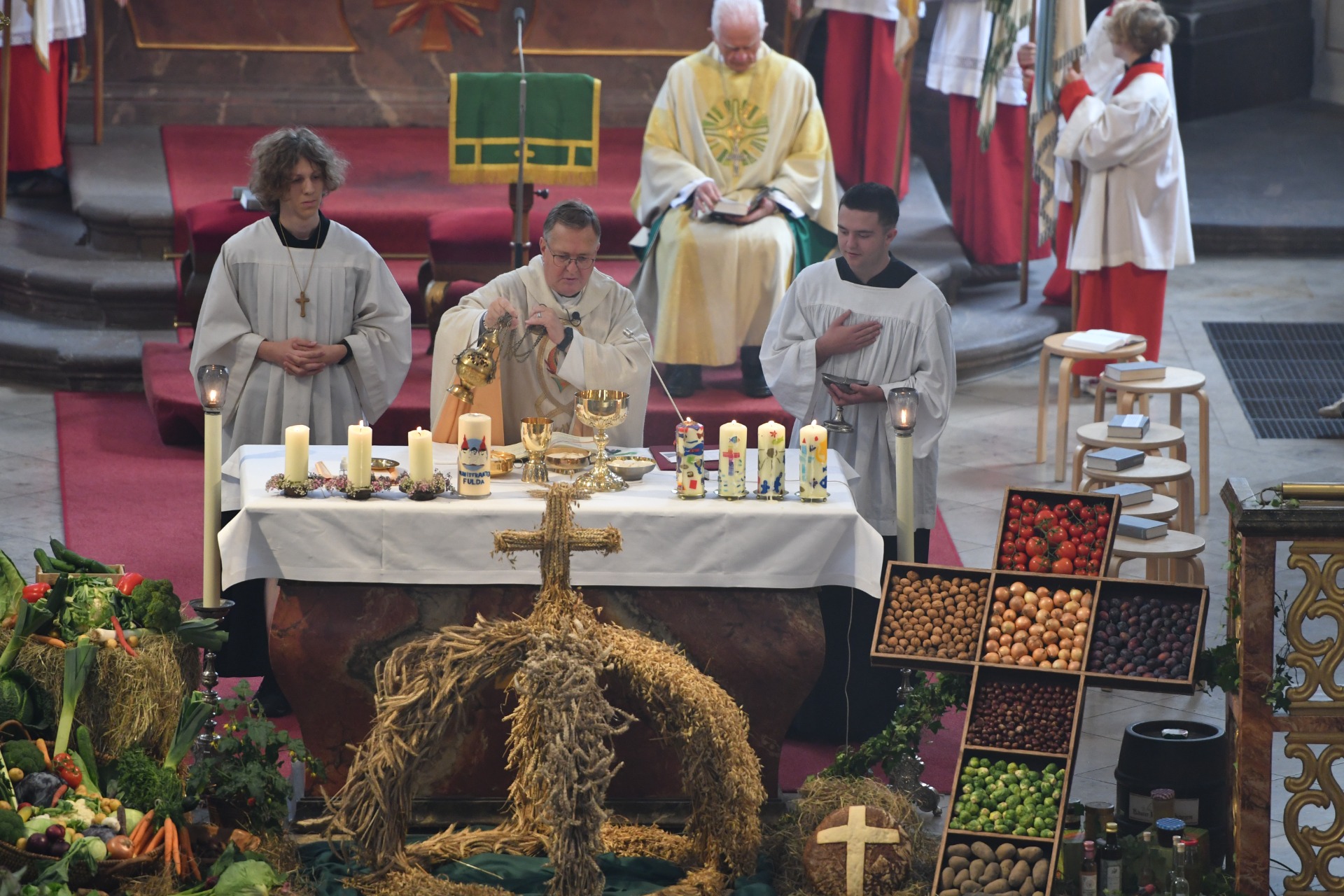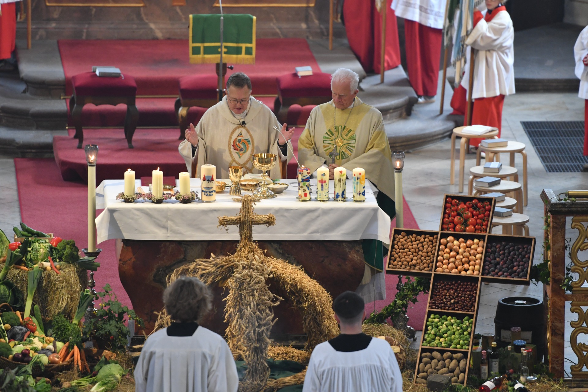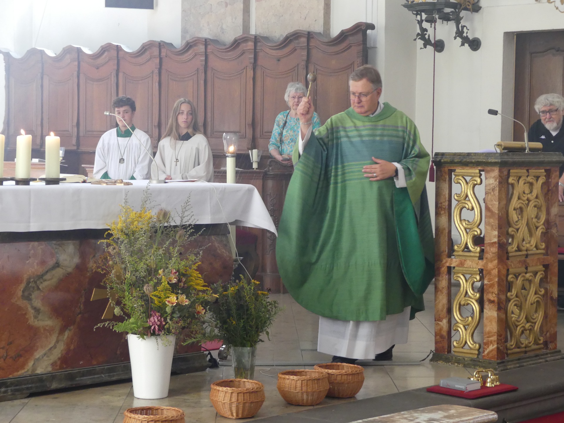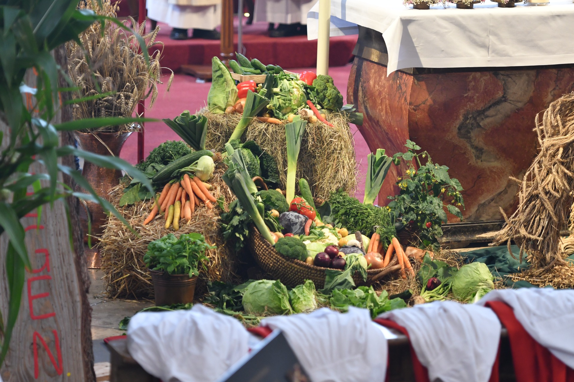In der Stadt feiern wir wegen dem 3.Oktober und den Herbstferien das Erntedankfest schon morgen. Die Familie Fautsch und unser Küster Robert Tauchmann waren etliche Stunden im Einsatz, um die Kirche wieder ganz toll herzurichten. Morgen feiern wir einen festlichen Gottesdienst um 11 Uhr mit der Einführung von 12 neuen Messdienern und musikalischer Gestaltung einer Jazzmesse durch einen extra dafür ins Leben gerufenen Projektchor