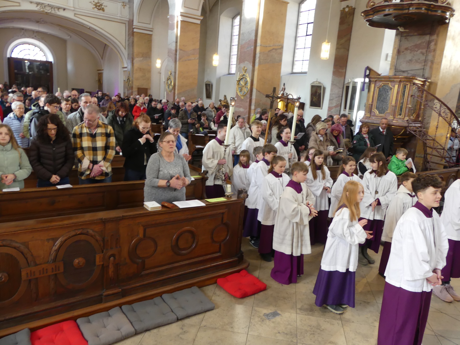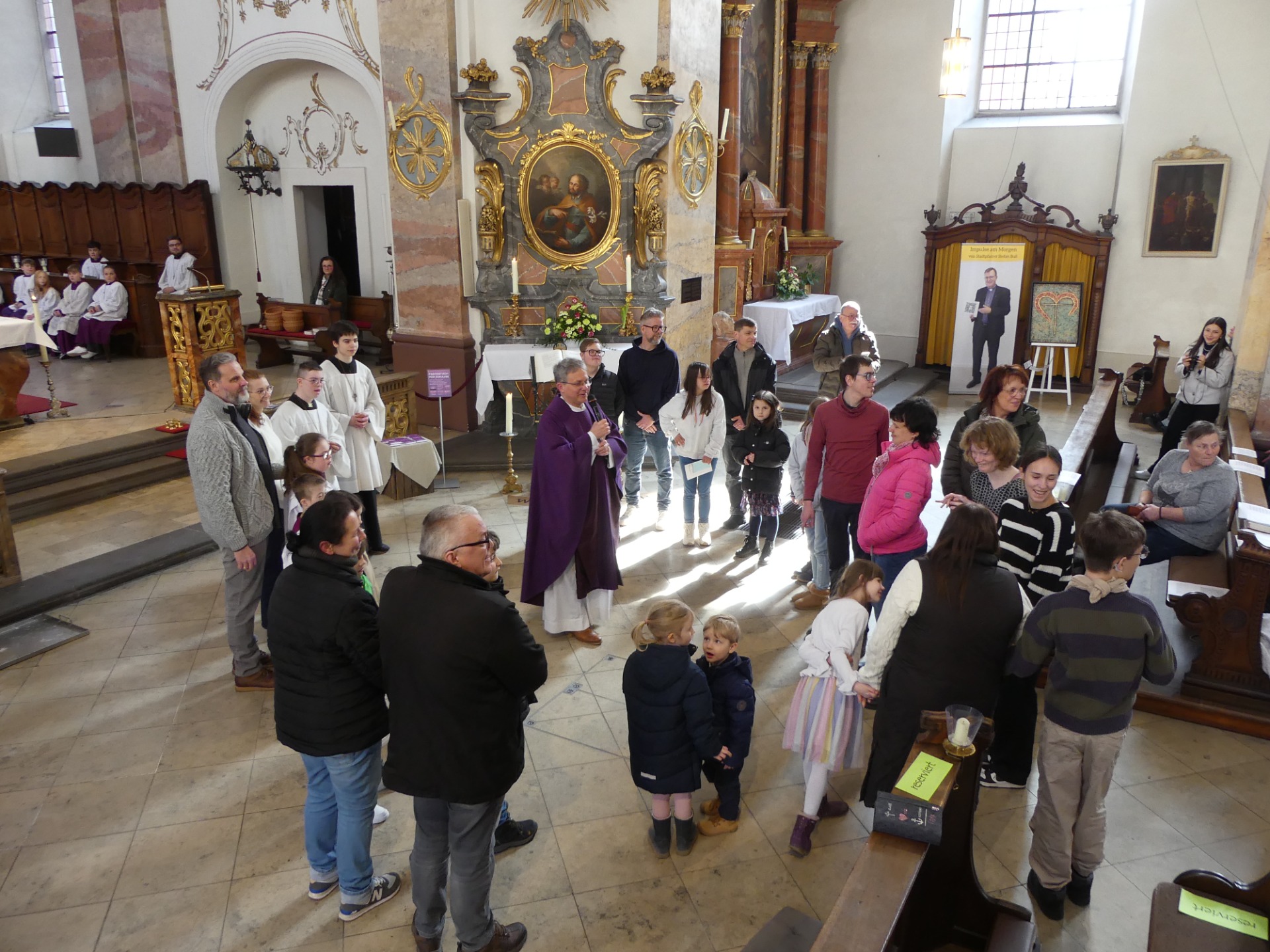 Heute Abend fand in der Stadtpfarrkirche der jährliche Valentinsgottesdienst mit Paarsegnung statt. Gemeindereferentin Larissa Backhaus und Diakon Franz Meyer leiteten den Gottesdienst. Die KöniXkinder gestalteten musikalisch. Anschließend konnten die Paare den Einzelsegen empfangen.