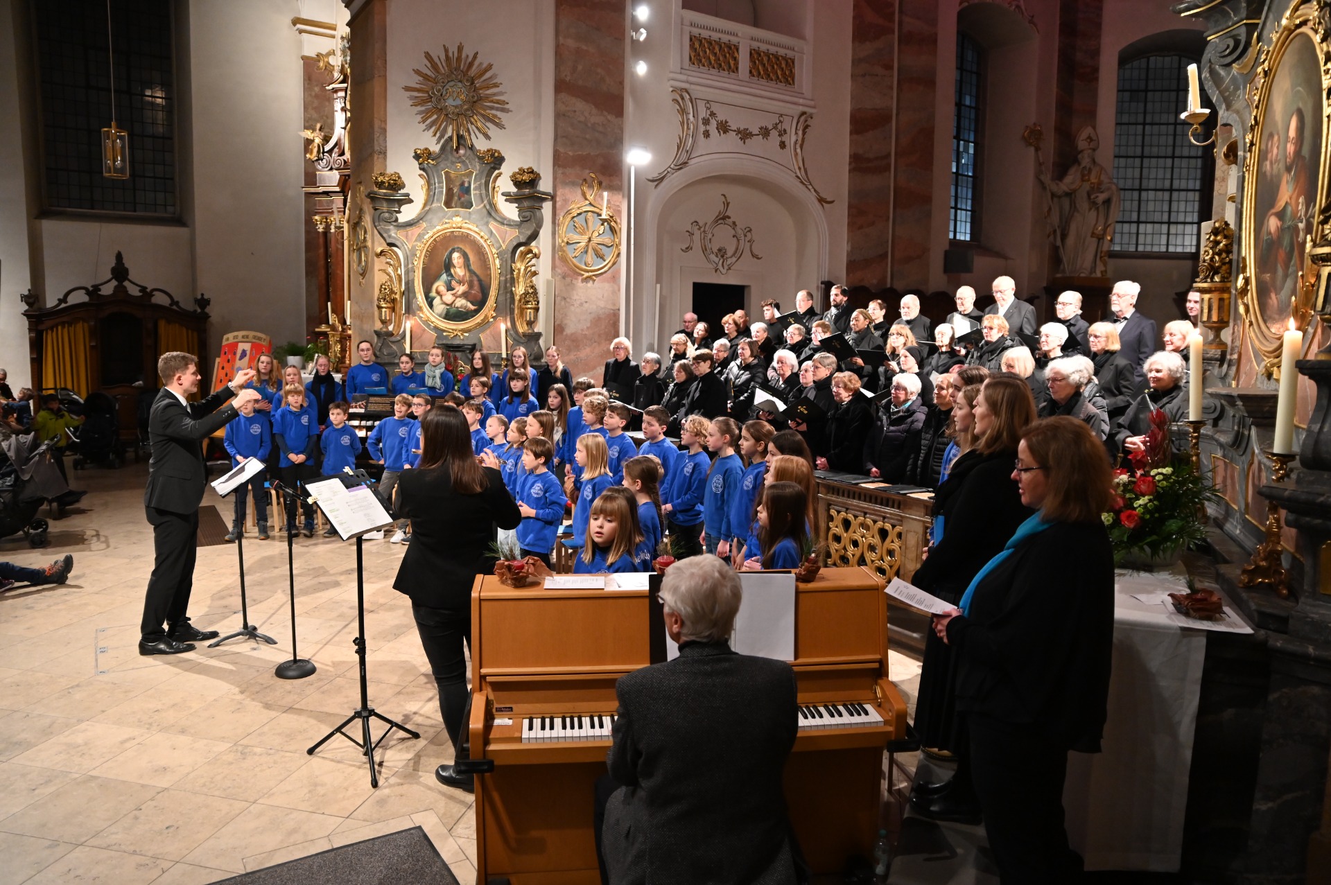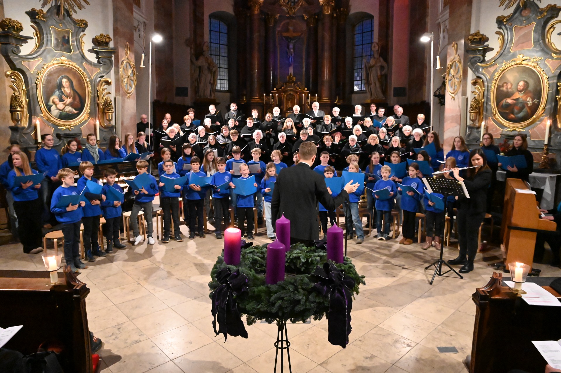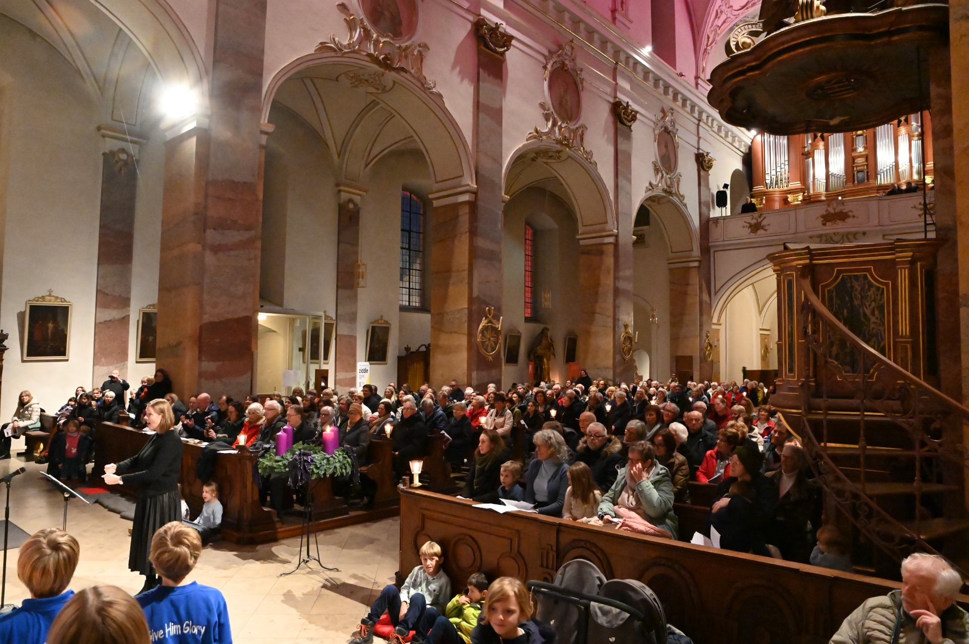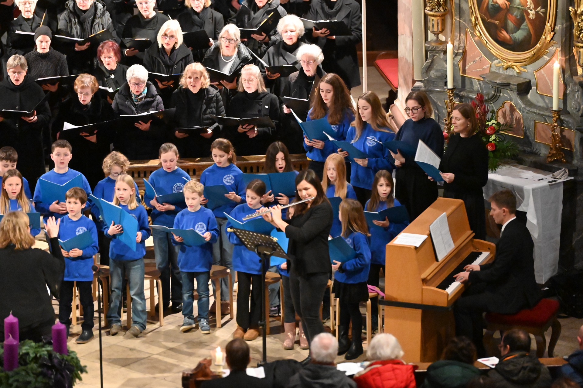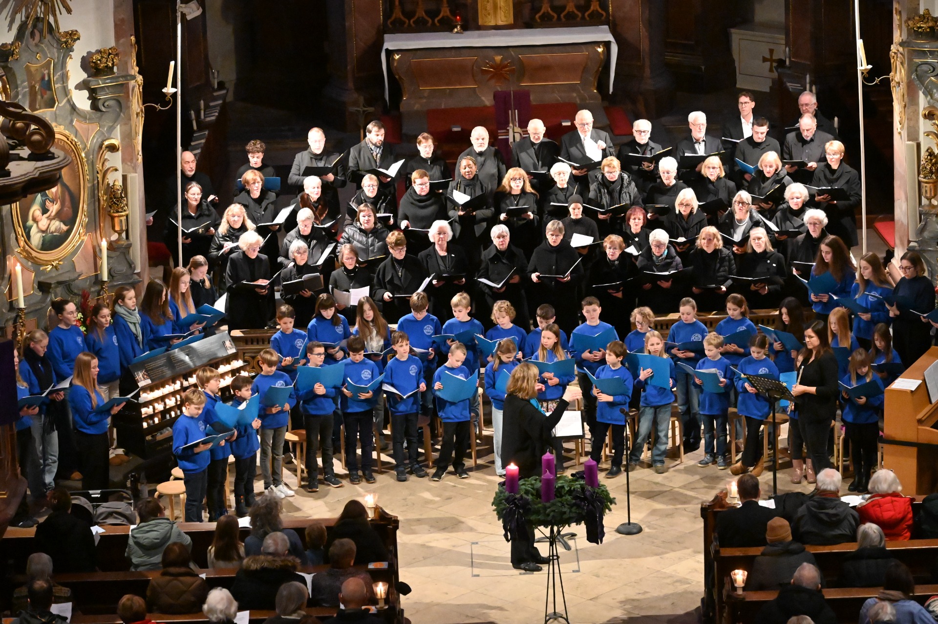 Der Stadtpfarrchor und der Kinder- und Jugendchor unter der leitung von Anne Rioll und Johannes Haubs luden in die Stadtpfarrkirche zur Mitsingstunde im Advent ein. Jochen Rill an der Orgel und Katharina Sonta mit der Querflöte begleiteten. Stadtpfarrer Stefan Buß gab kurze Adventsimpulse und am ende den Segen für eine gute Adventszeit