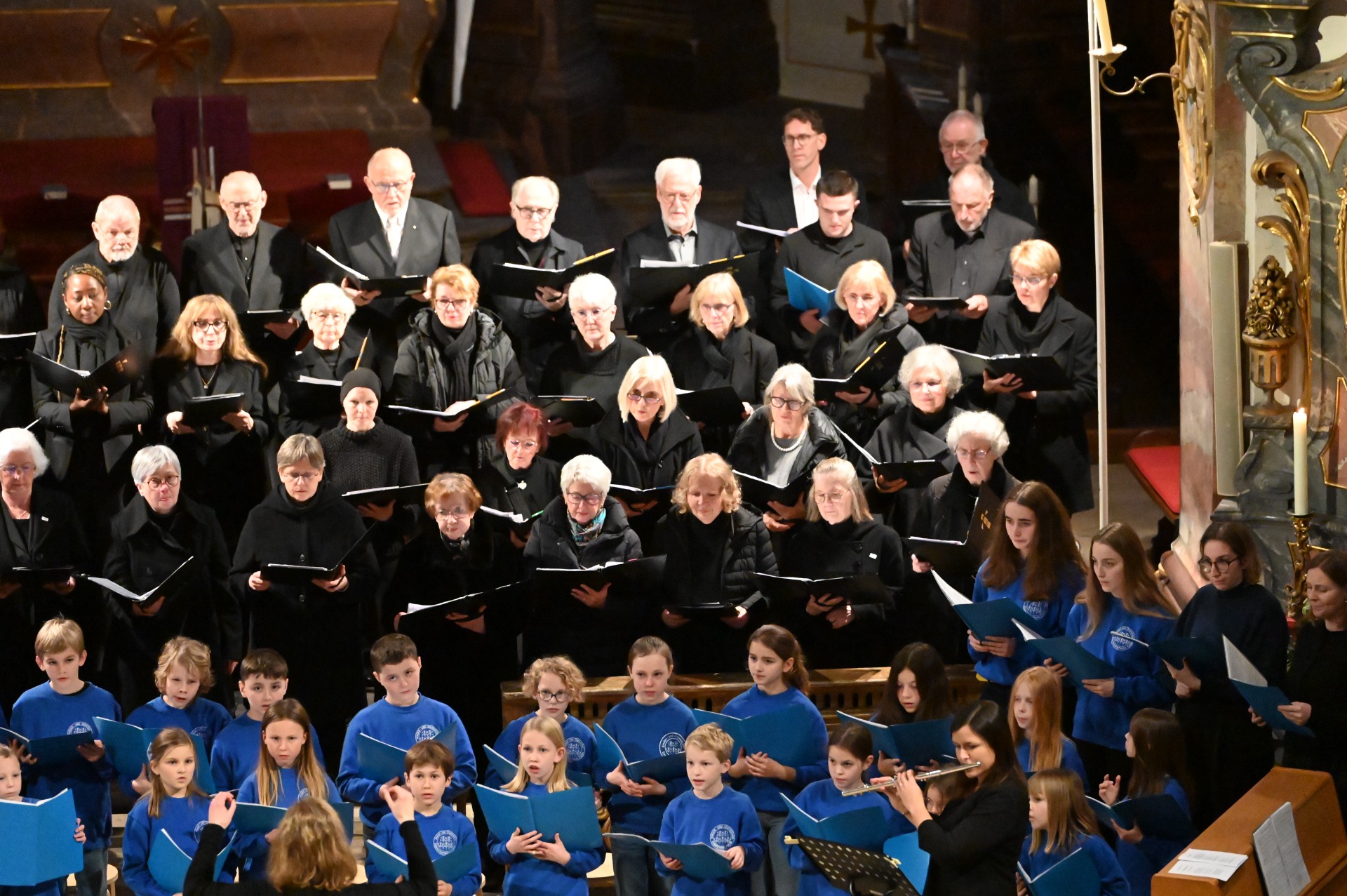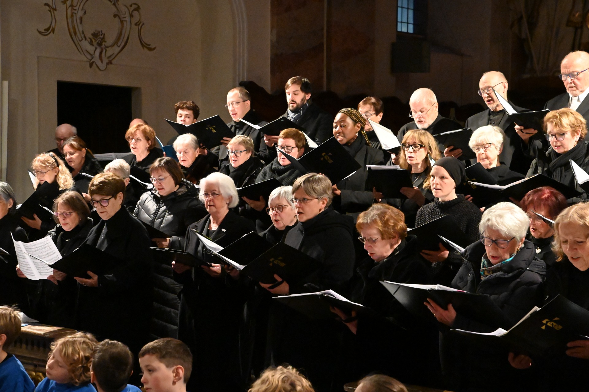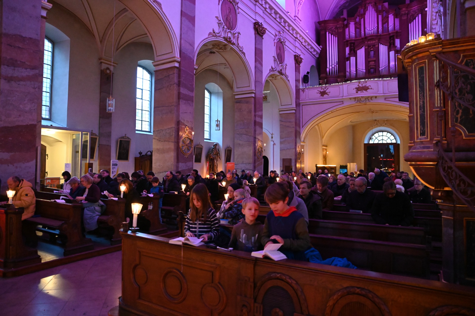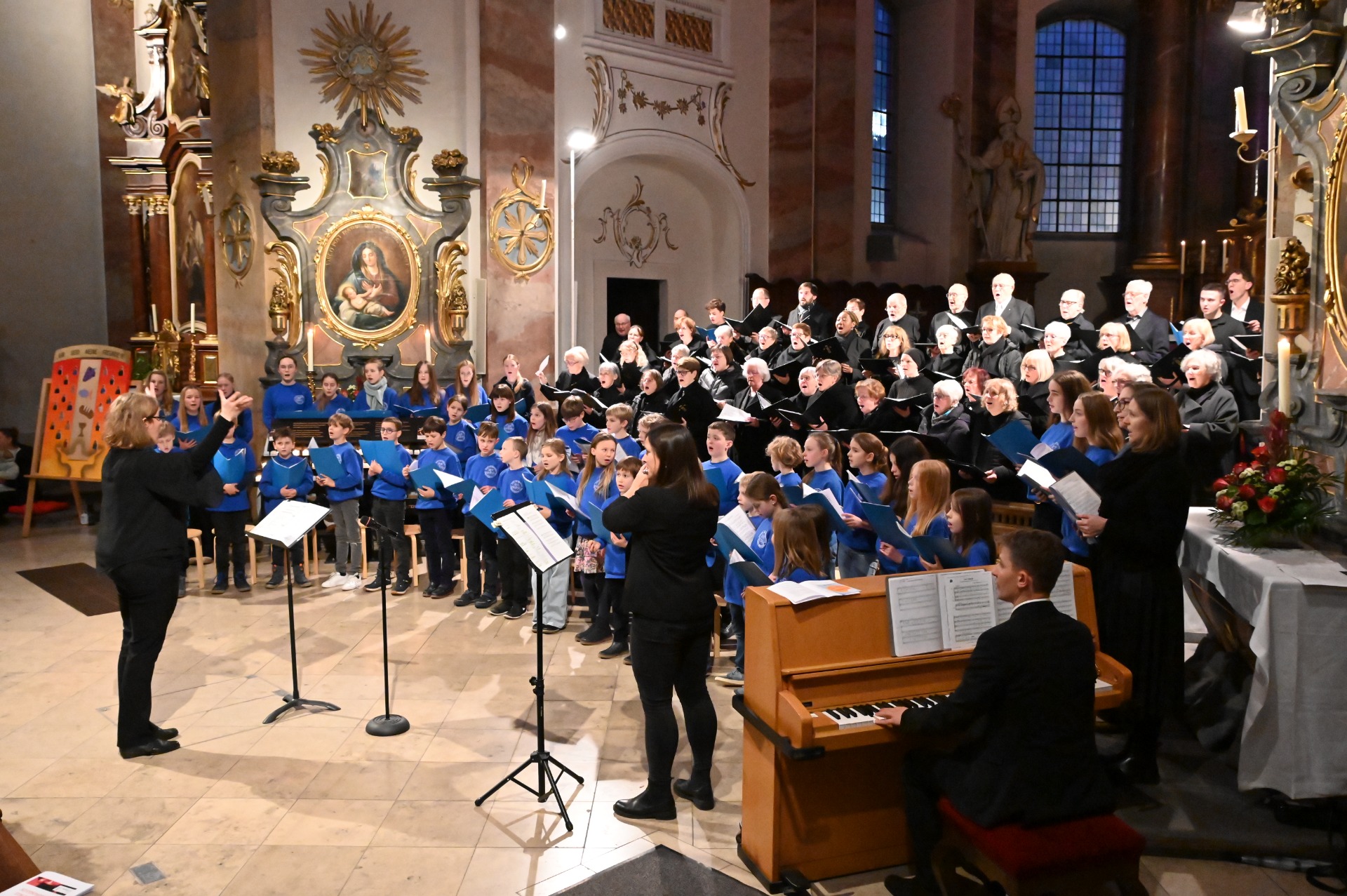 Der Stadtpfarrchor und der Kinder- und Jugendchor unter der leitung von Anne Rioll und Johannes Haubs luden in die Stadtpfarrkirche zur Mitsingstunde im Advent ein. Jochen Rill an der Orgel und Katharina Sonta mit der Querflöte begleiteten. Stadtpfarrer Stefan Buß gab kurze Adventsimpulse und am ende den Segen für eine gute Adventszeit