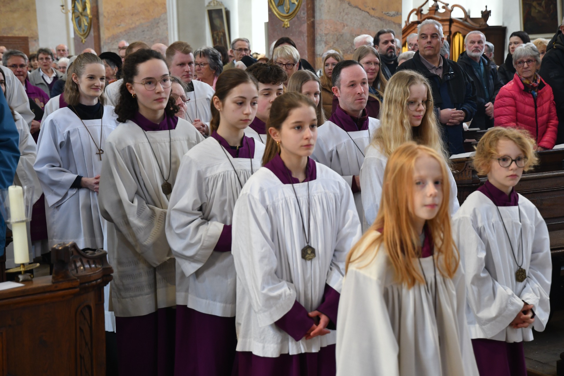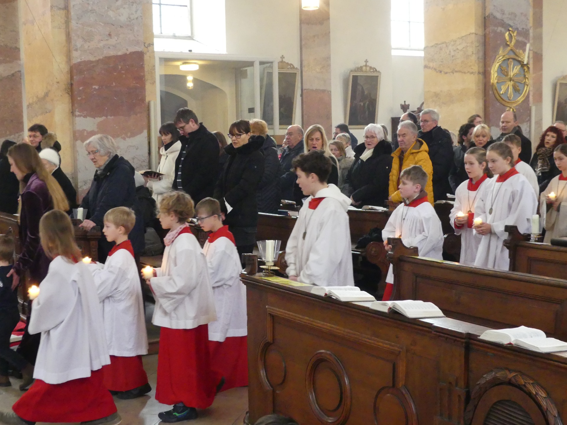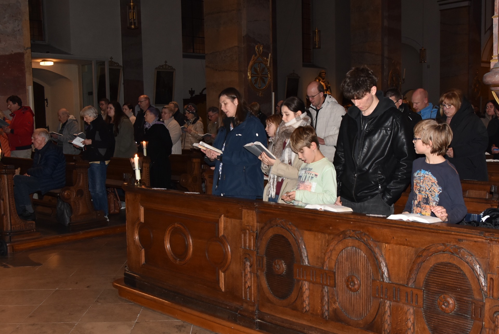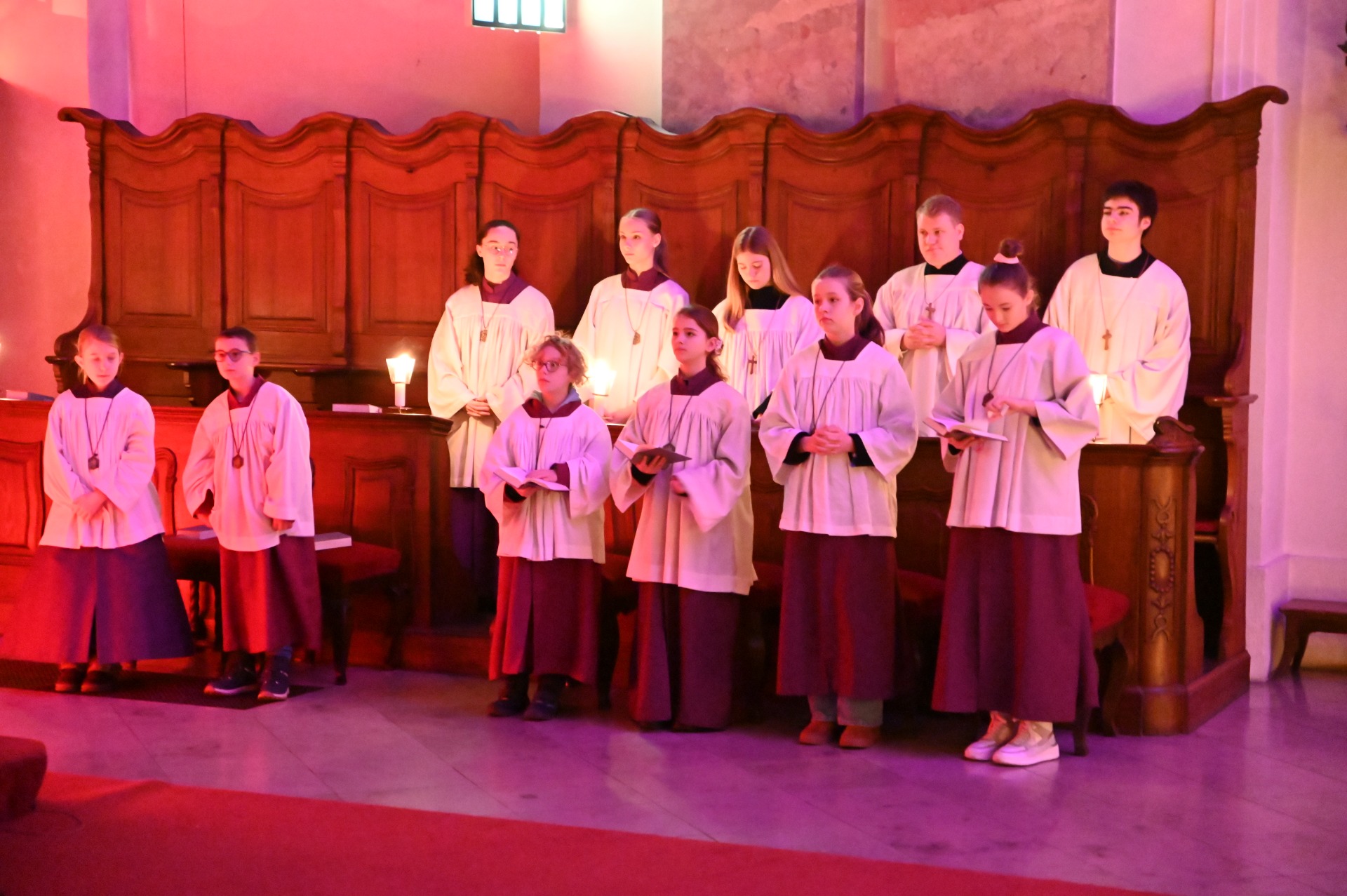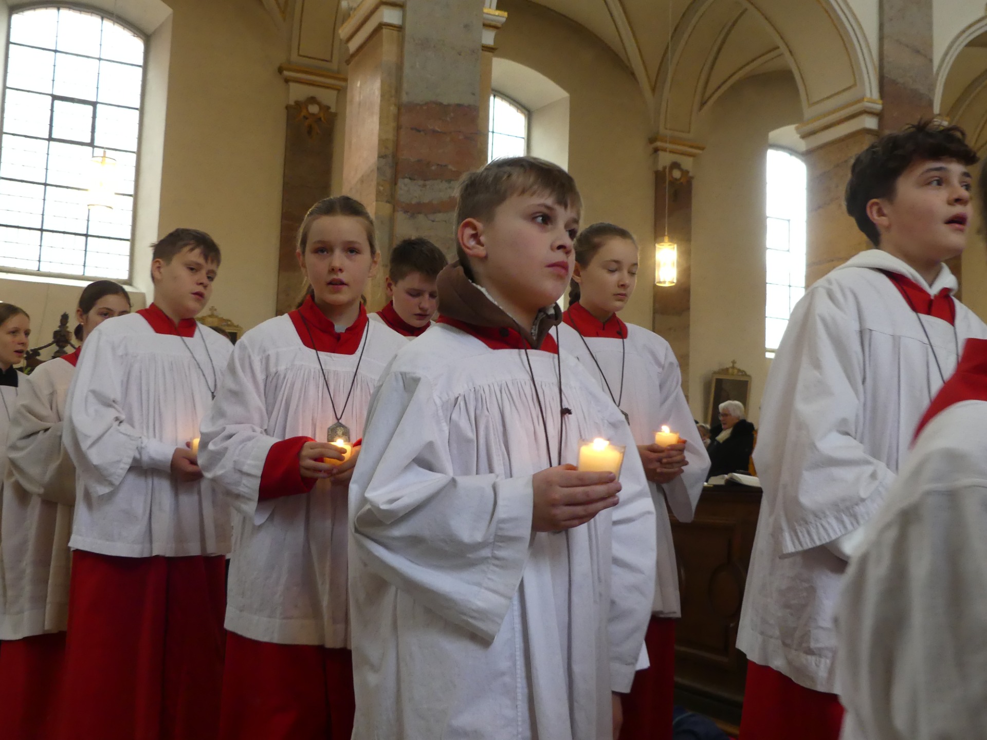 Der Stadtpfarrchor und der Kinder- und Jugendchor unter der leitung von Anne Rioll und Johannes Haubs luden in die Stadtpfarrkirche zur Mitsingstunde im Advent ein. Jochen Rill an der Orgel und Katharina Sonta mit der Querflöte begleiteten. Stadtpfarrer Stefan Buß gab kurze Adventsimpulse und am ende den Segen für eine gute Adventszeit